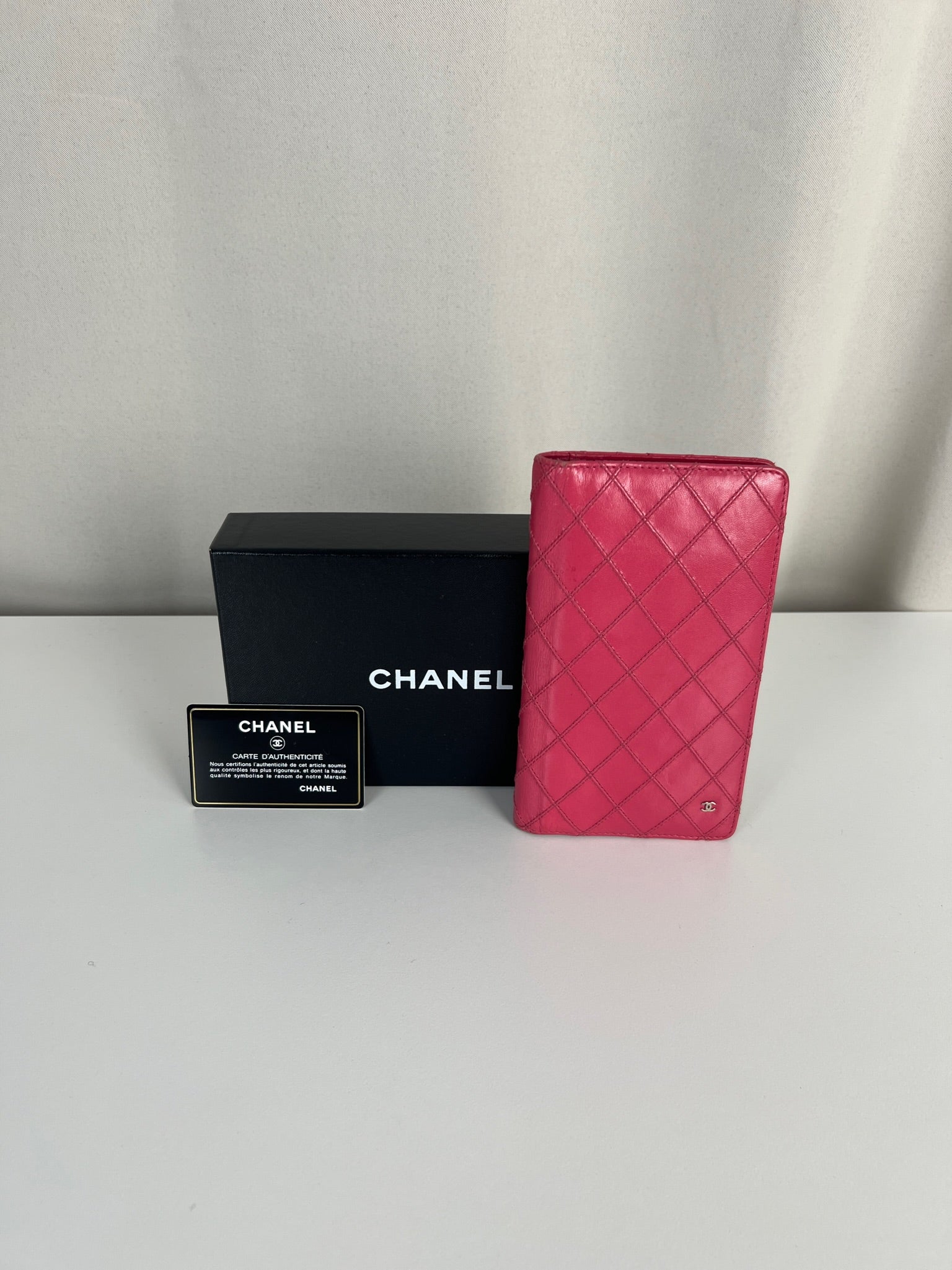 Chanel pink classic long wallet lambskin leather