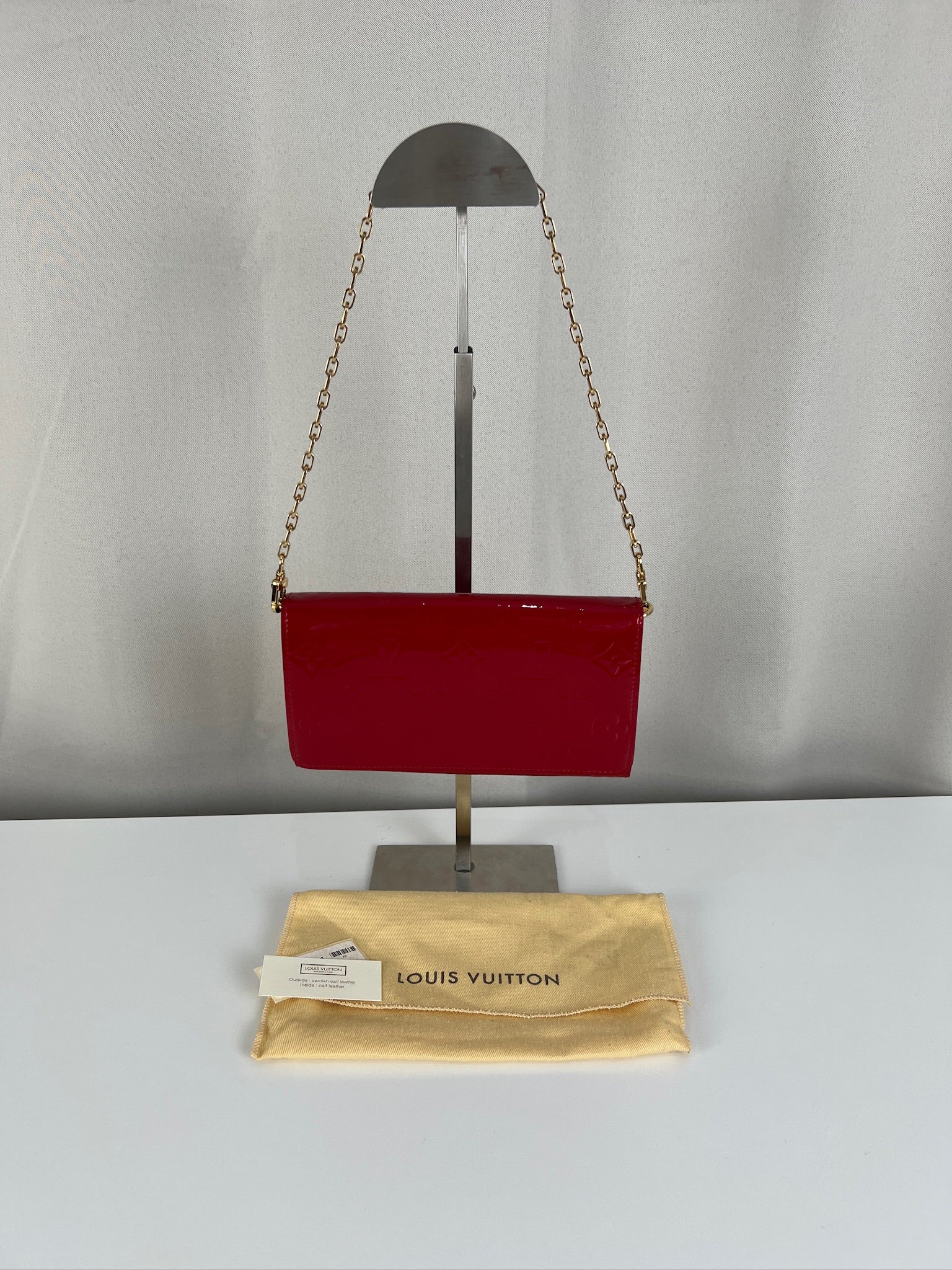 Louis Vuitton red patent leather wallet on chain
