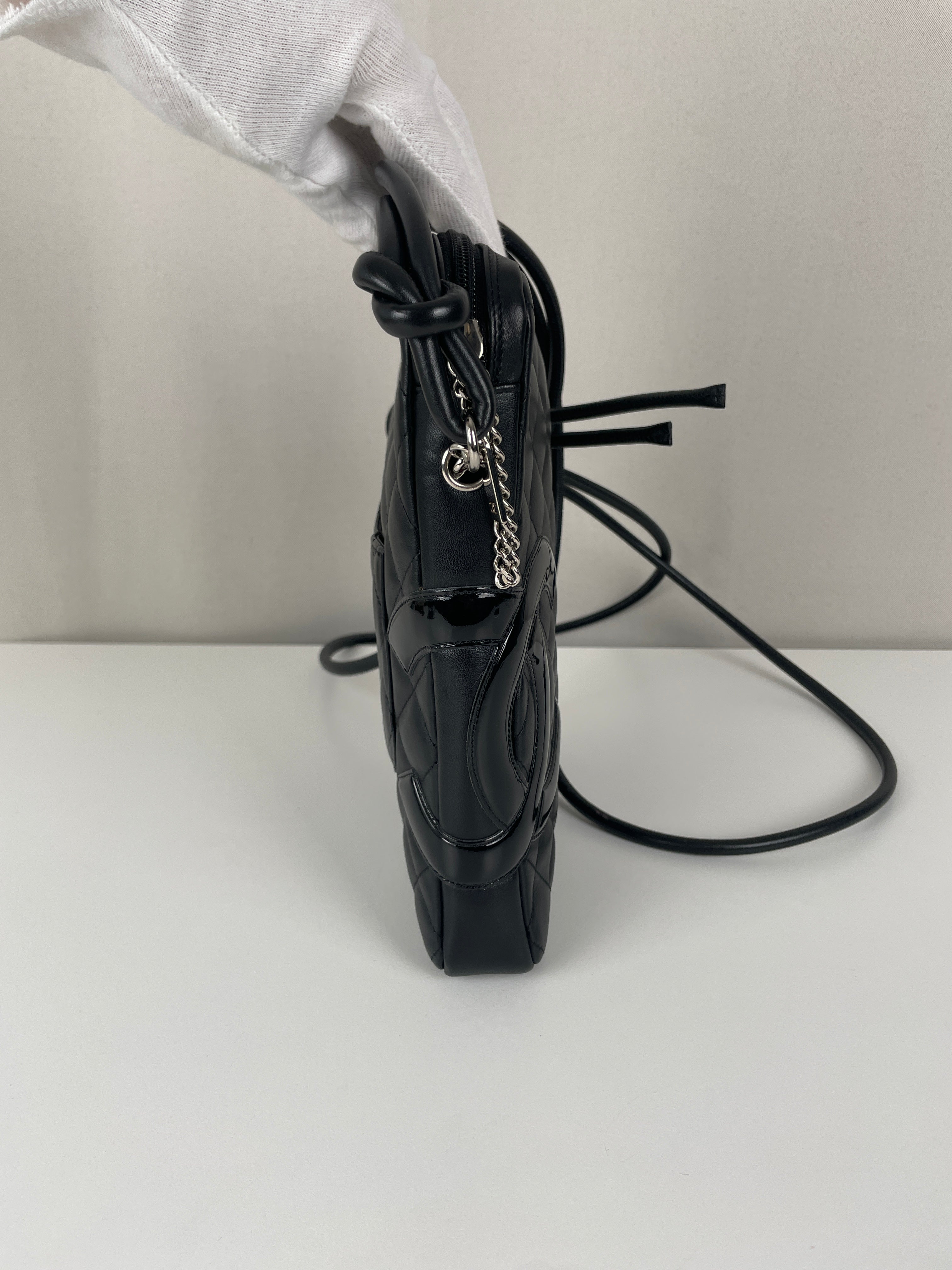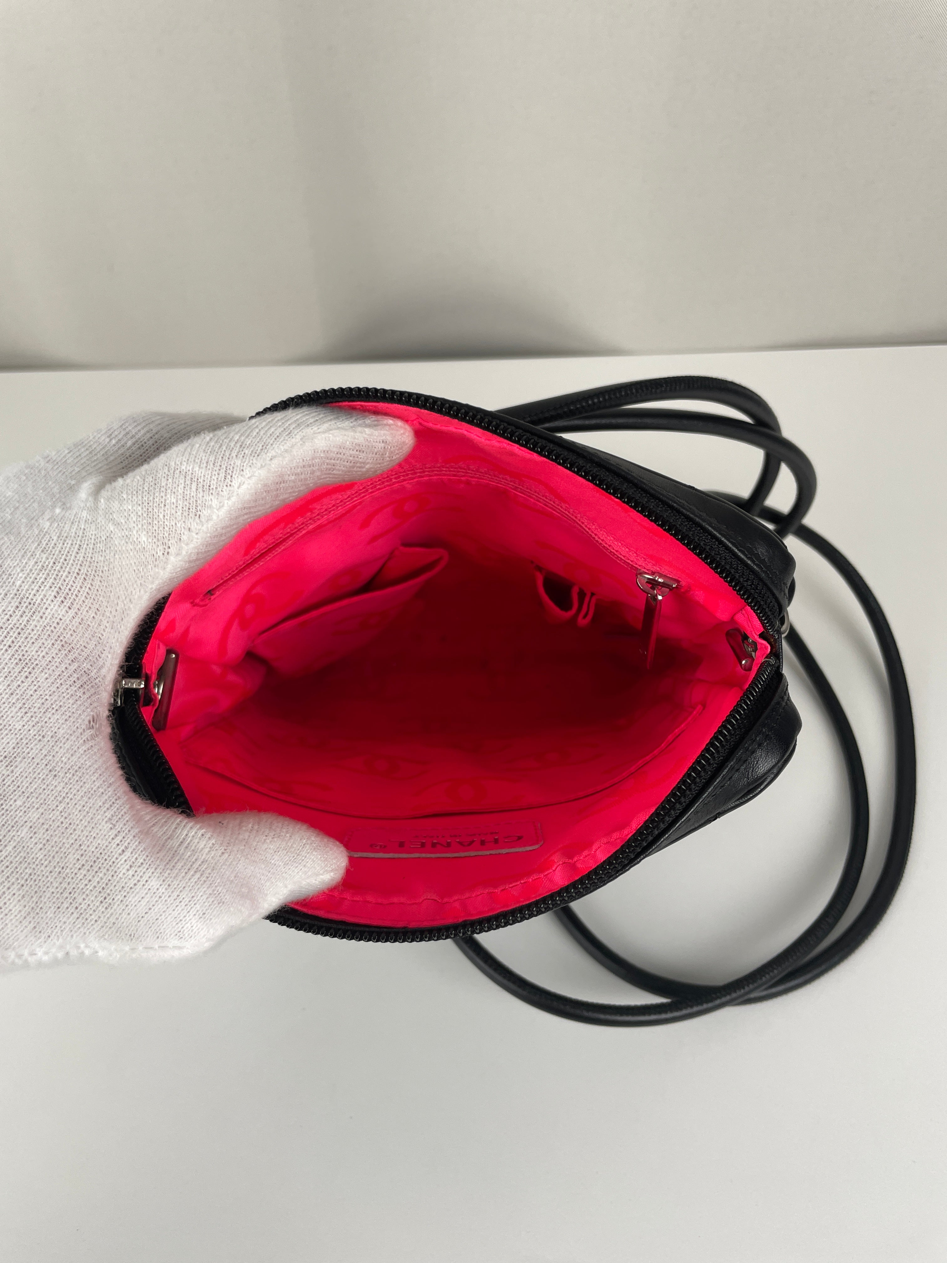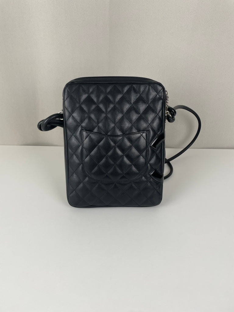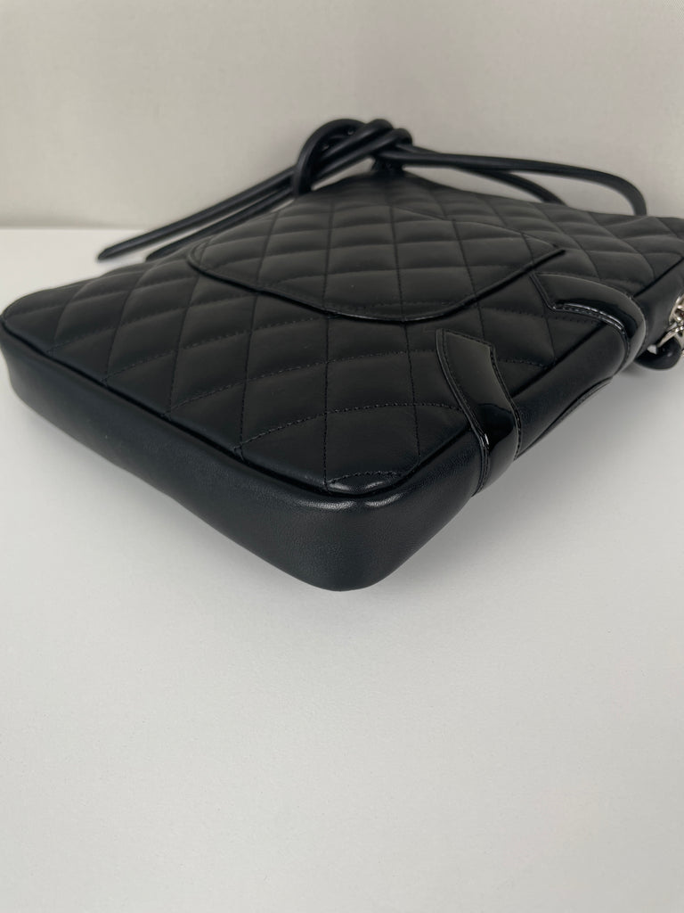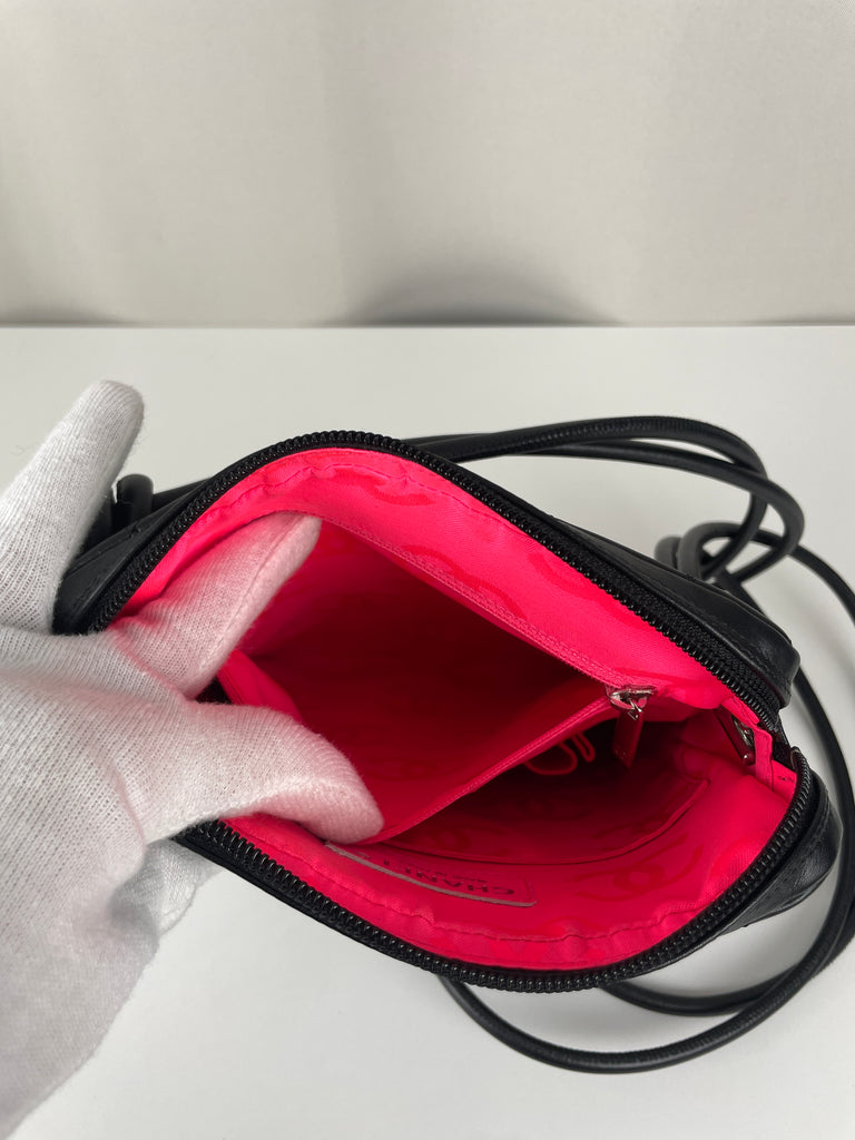The Chanel Cambon collection represents one of the most coveted and distinctive lines from the early 2000s. This black leather pochette from 2005-2006 showcases Chanel's exceptional craftsmanship with its signature quilted pattern and iconic CC logo. The Cambon line, with its bold graphic aesthetic, marked a modern evolution in Chanel's design heritage. This vintage piece embodies nearly two decades of authentic luxury character while maintaining excellent structural integrity and timeless Parisian elegance.
