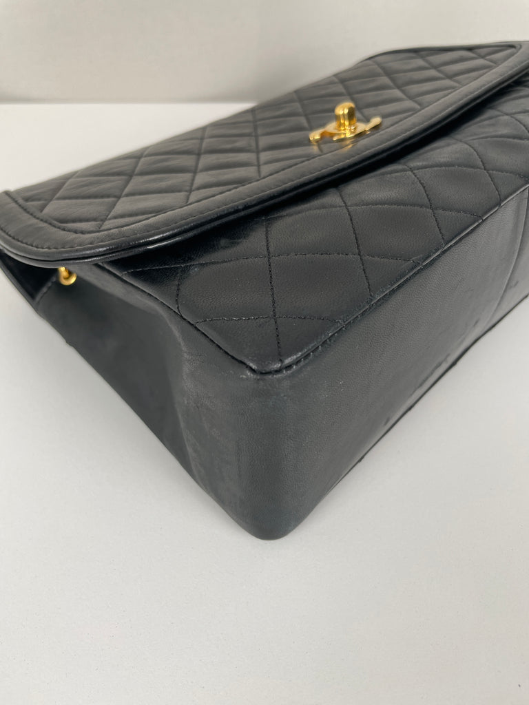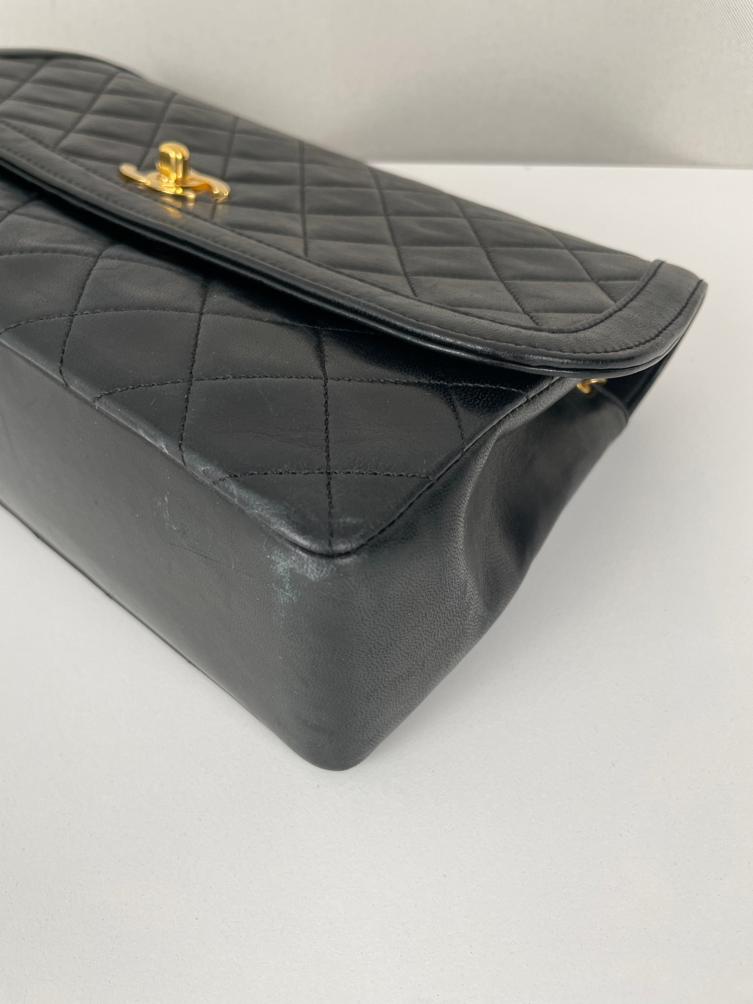 The vintage Single Flap represents one of Chanel's most iconic and timeless designs from the golden era of luxury fashion. This black quilted leather version from 1989-1991 showcases over three decades of authentic character with the signature diamond quilting and classic chain strap that defined Chanel's revolutionary handbag design. A coveted collector's piece that embodies Chanel's heritage craftsmanship while offering the sophisticated elegance that has made this silhouette a fashion icon for generations.