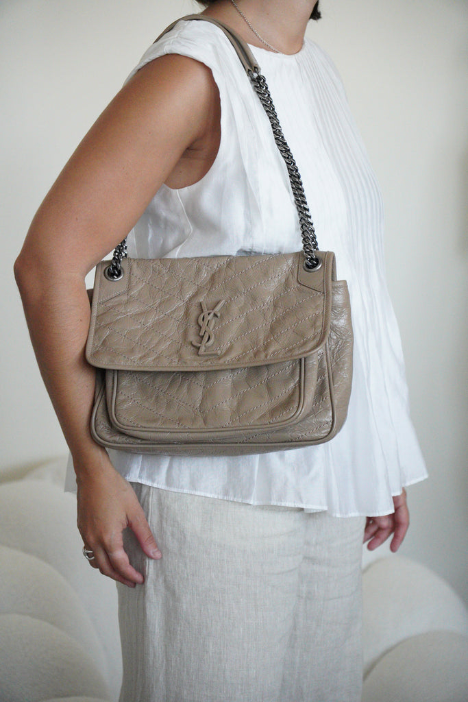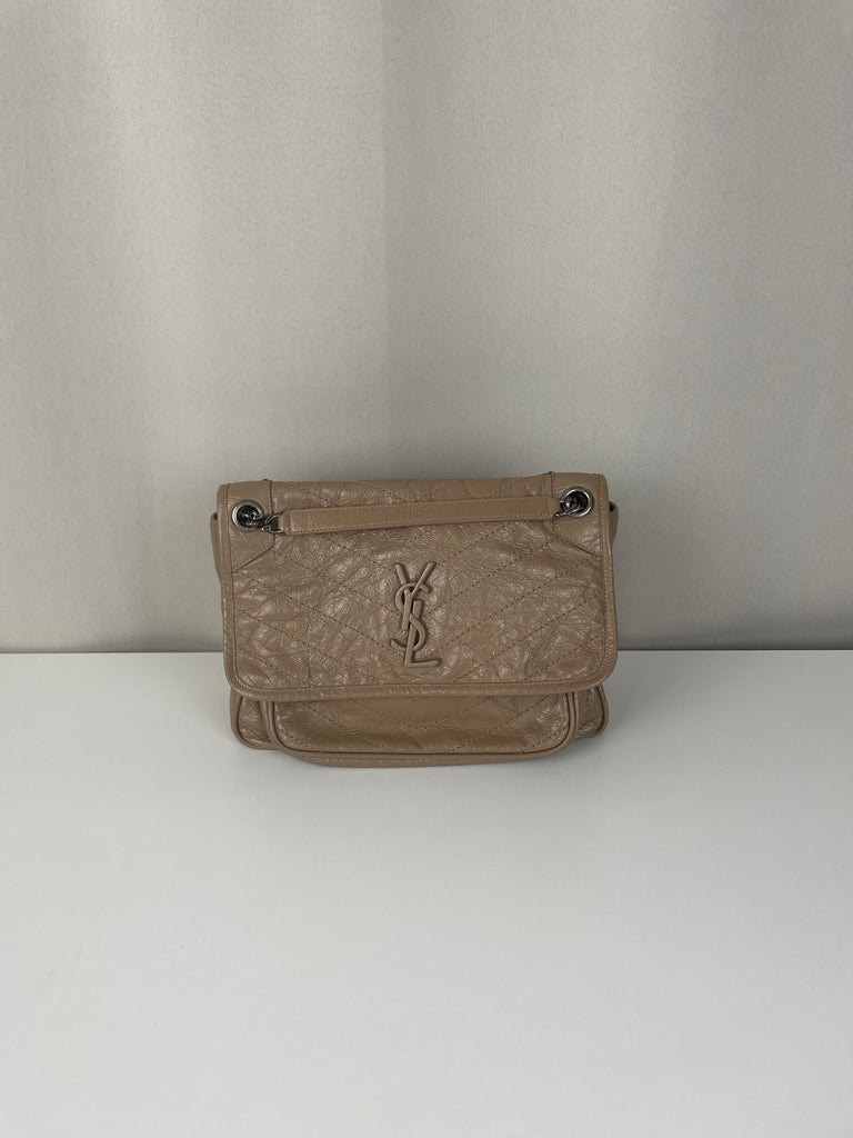 Saint Laurent Niki Medium beige leather bag silver hardware