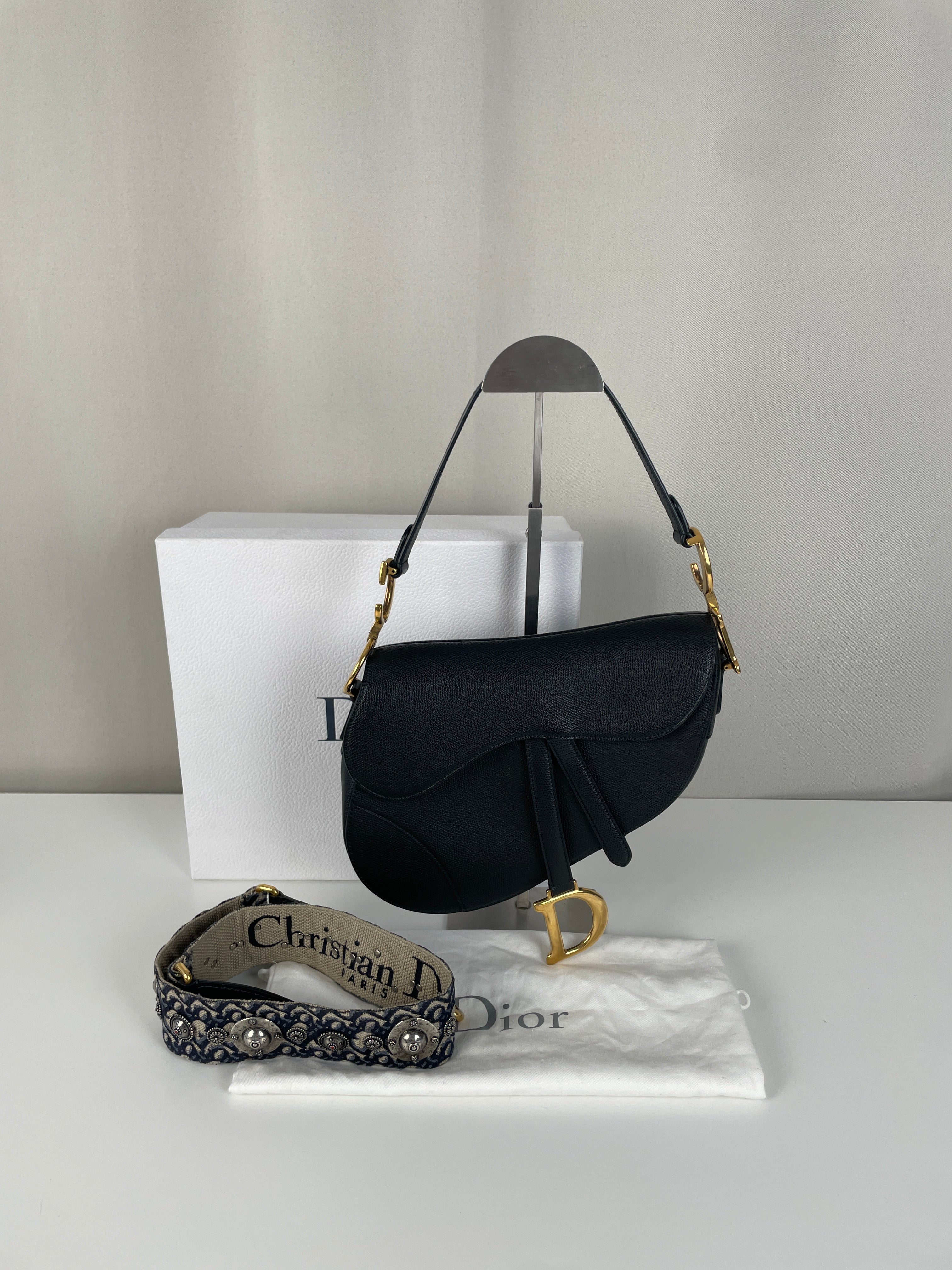 Dior Saddle bag black grained leather with strap