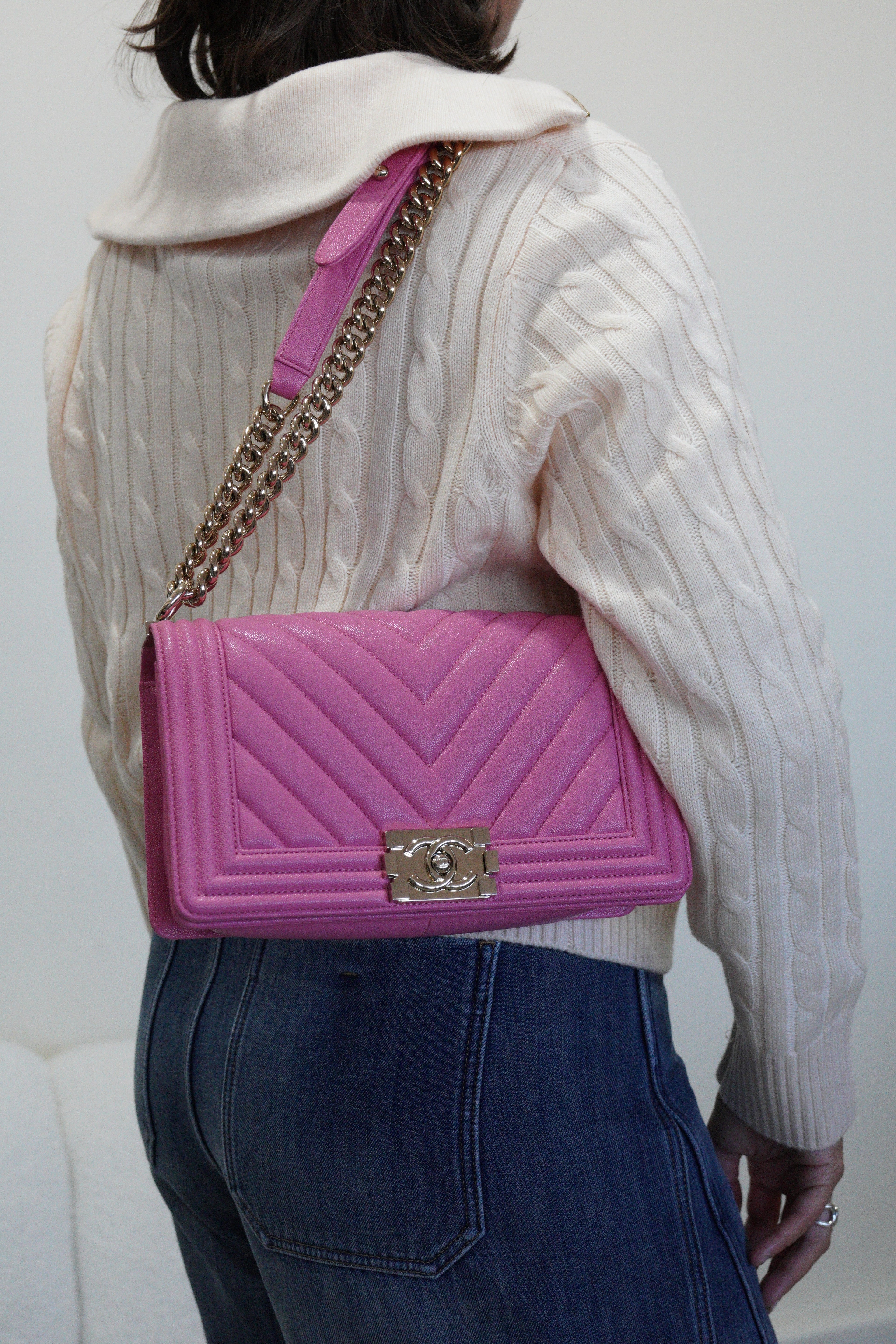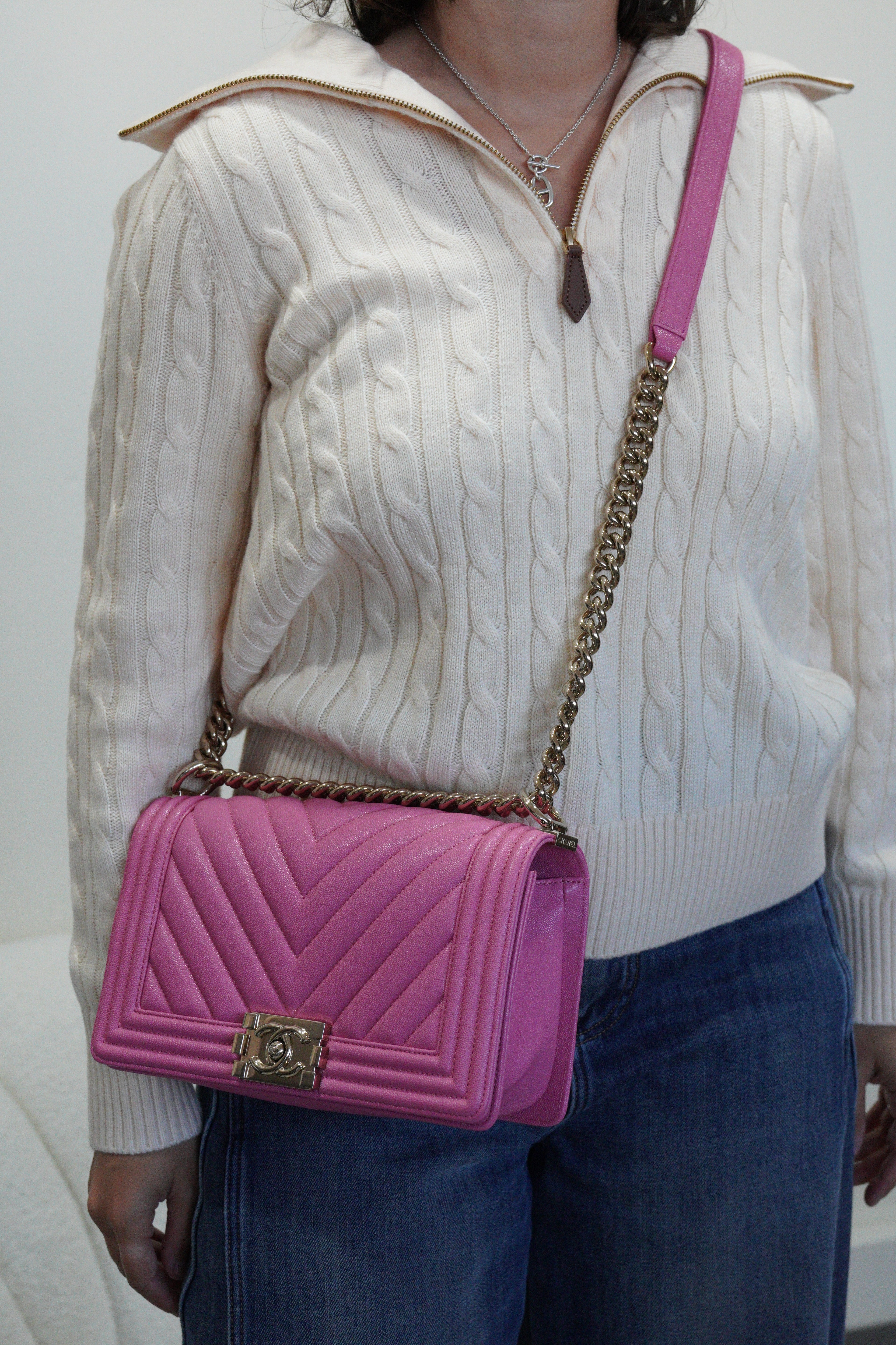 Advanced authentication technology, including Entrupy when applicable, is used for bag verification.