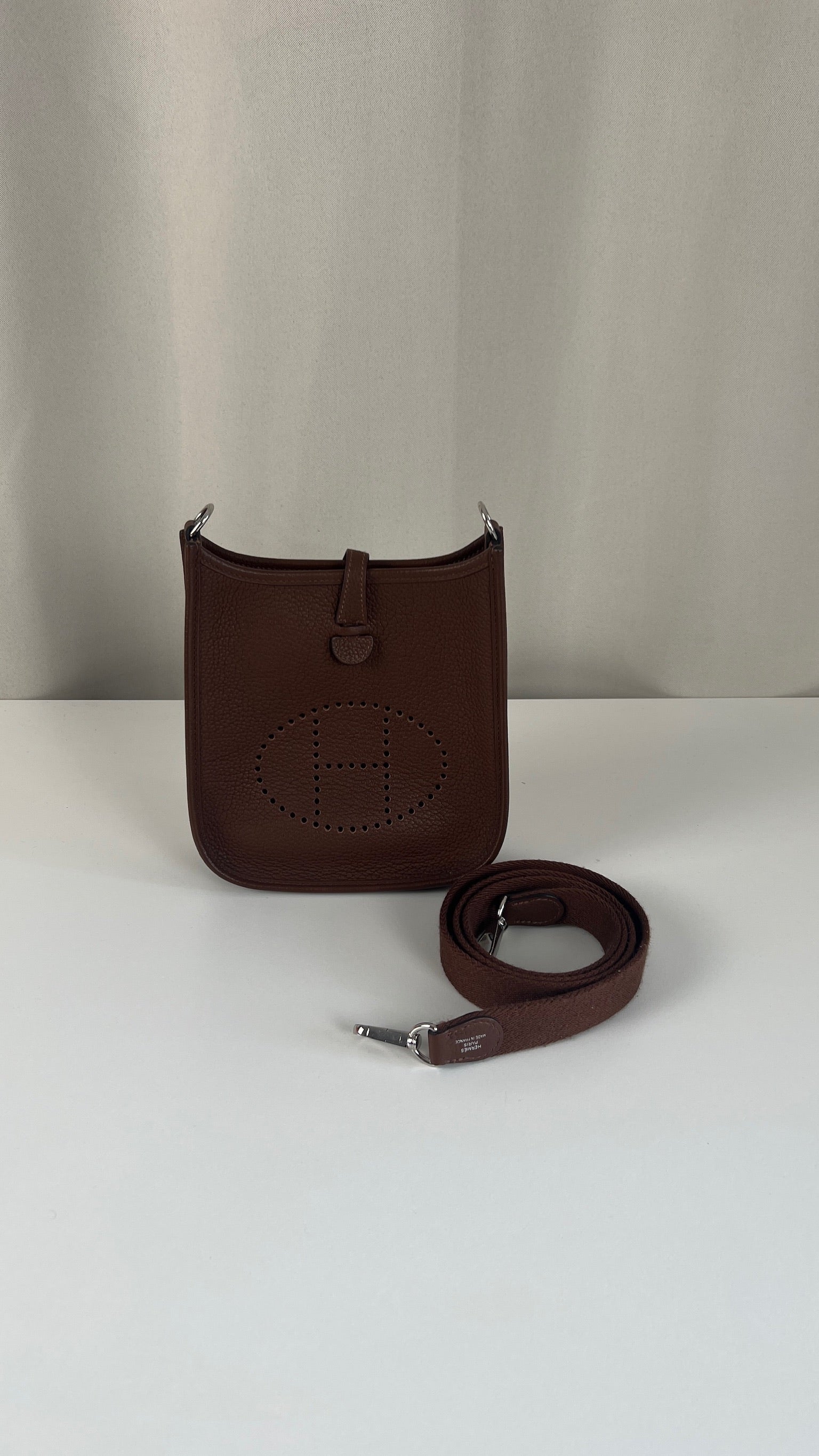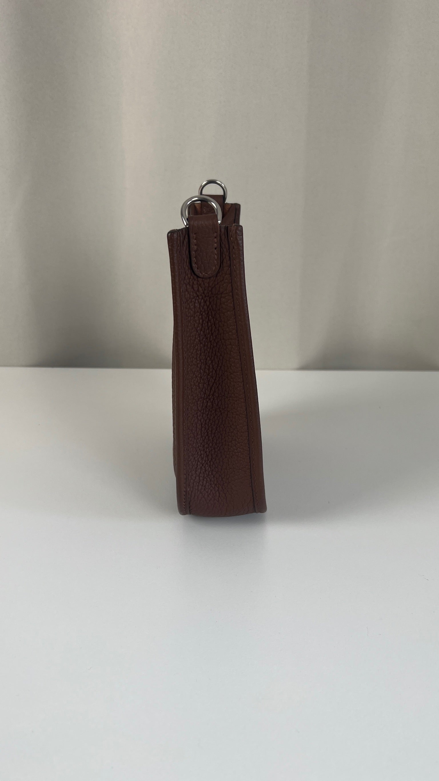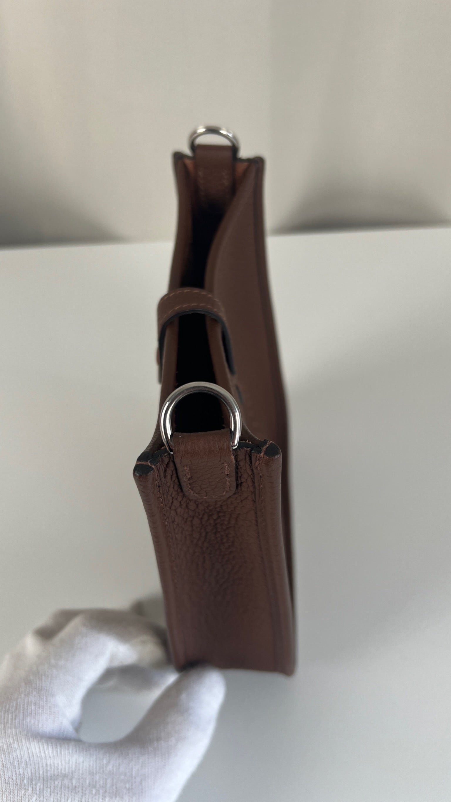 This Hermes Evelyn tpm 16 is in excellent condition. It's the color Cacao. The leather is in very good condition. The inside is also very good. The strap is in very good condition with only minor signs of wear. Otherwise excellent ! It comes with box, dustbag, papers and invoice. The bag went to the Hermès spa before being online it's really good !