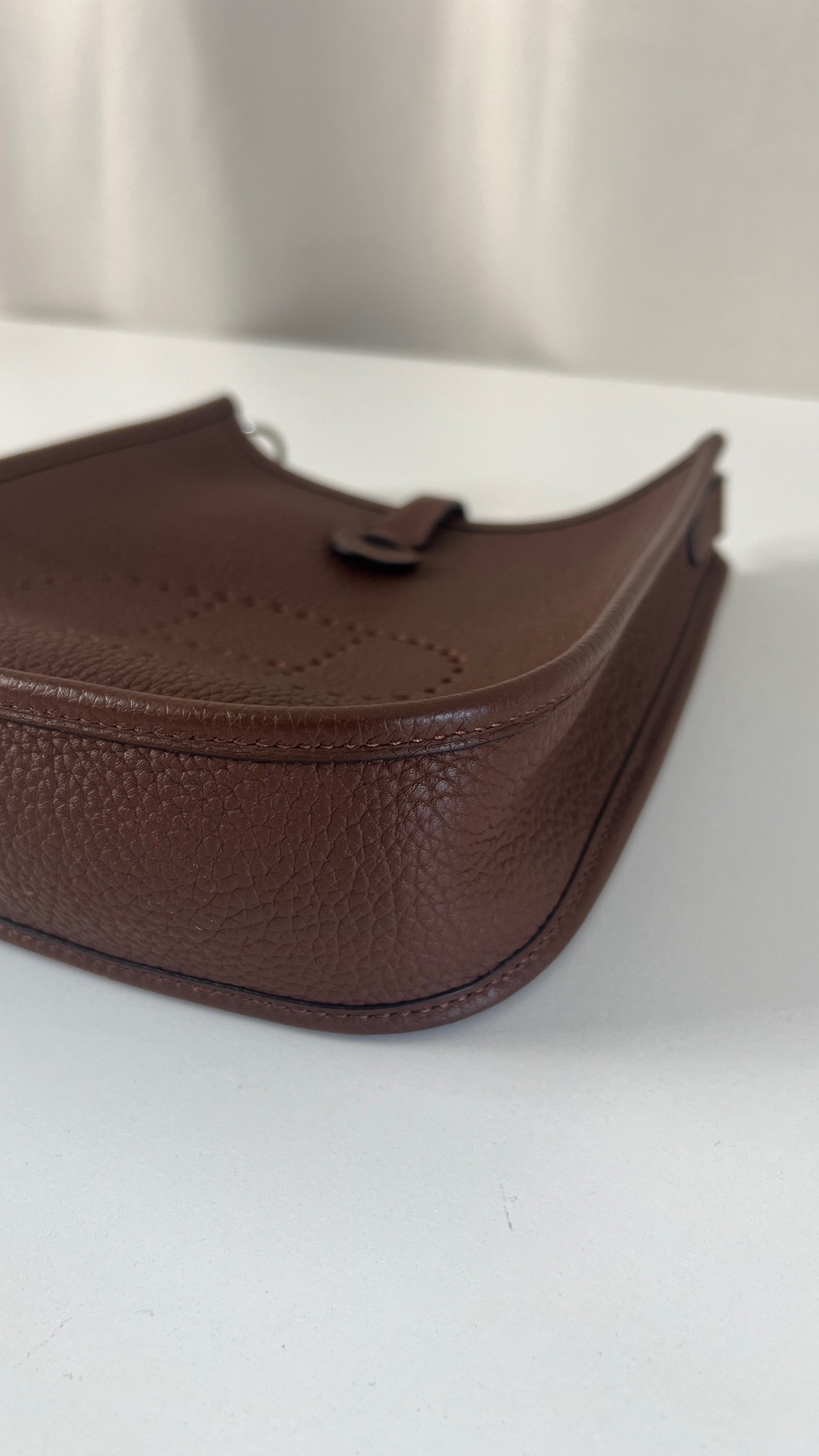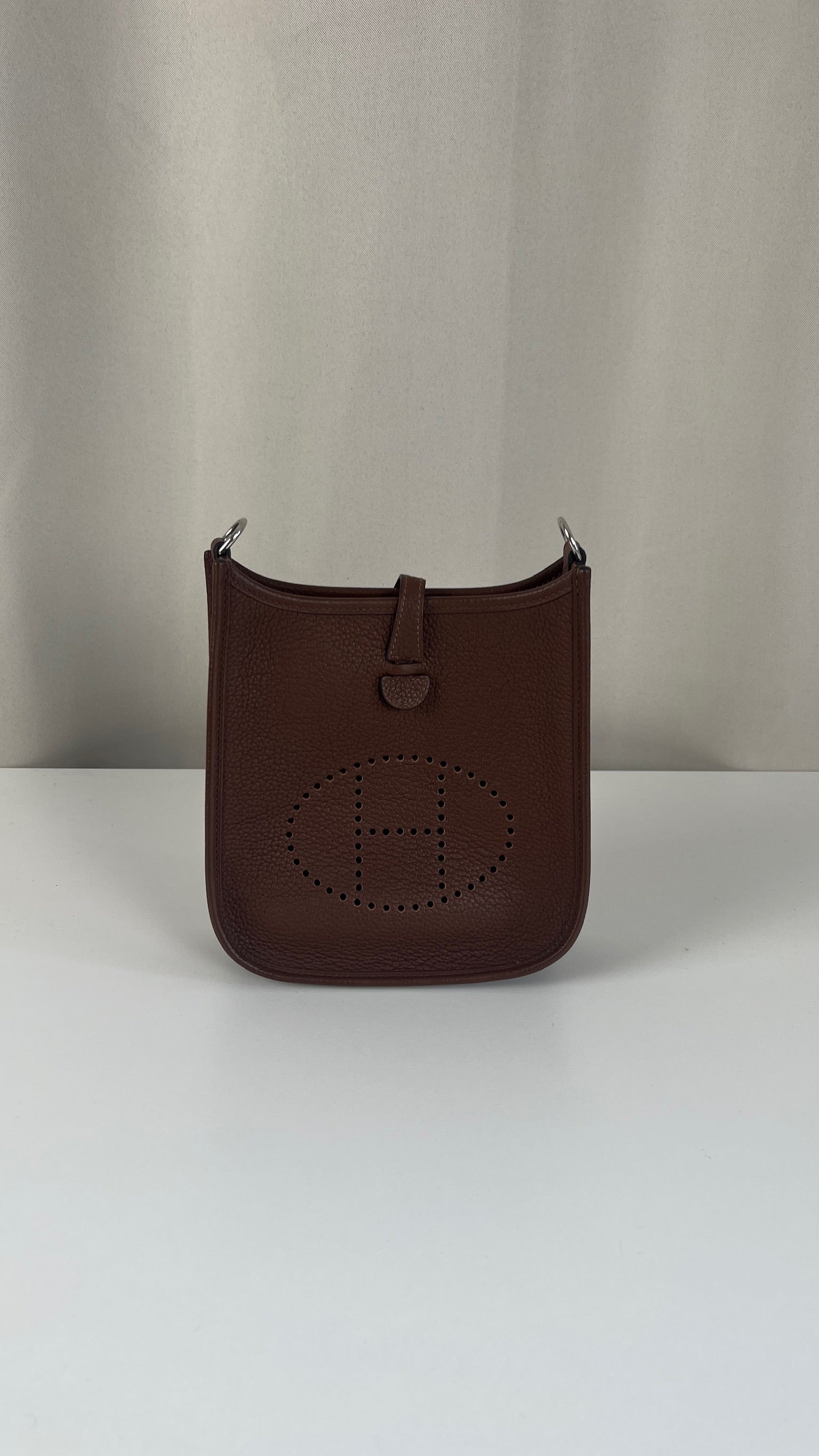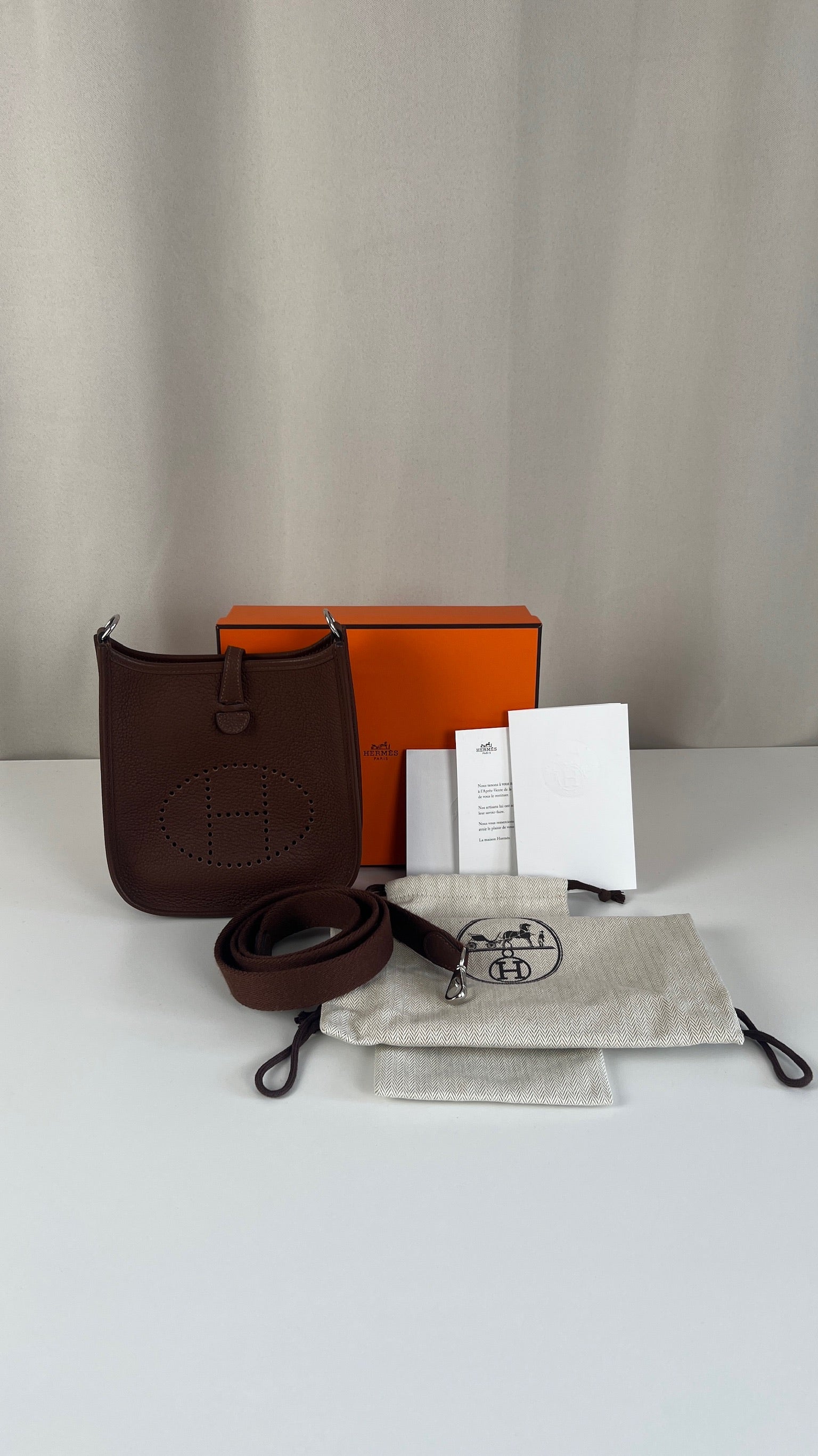 This Hermes Evelyn tpm 16 is in excellent condition. It's the color Cacao. The leather is in very good condition. The inside is also very good. The strap is in very good condition with only minor signs of wear. Otherwise excellent ! It comes with box, dustbag, papers and invoice. The bag went to the Hermès spa before being online it's really good !