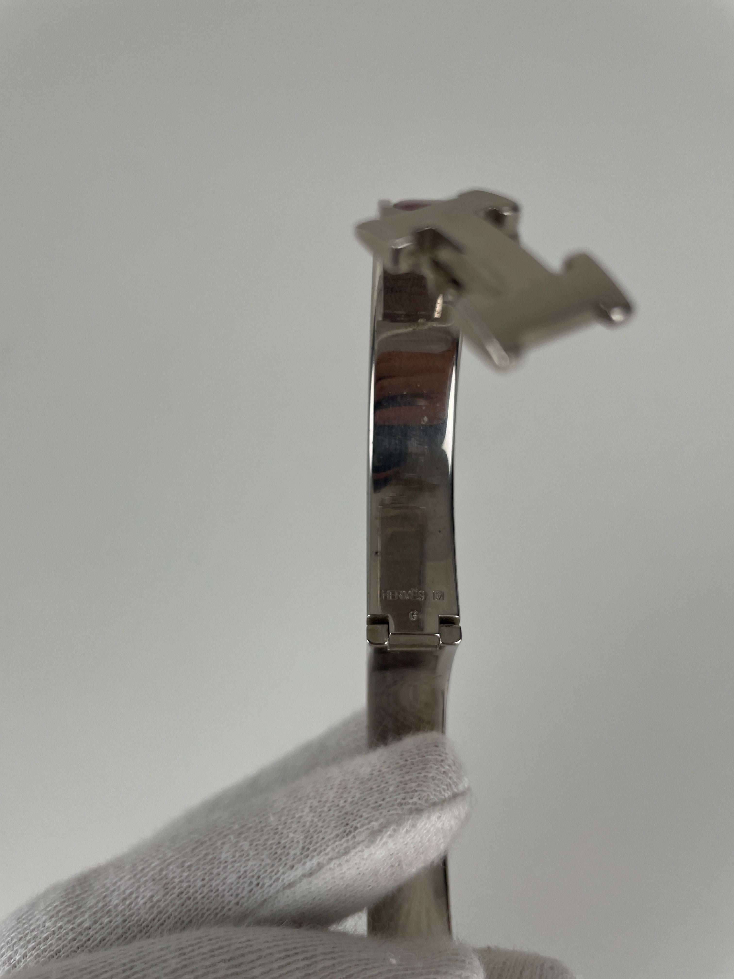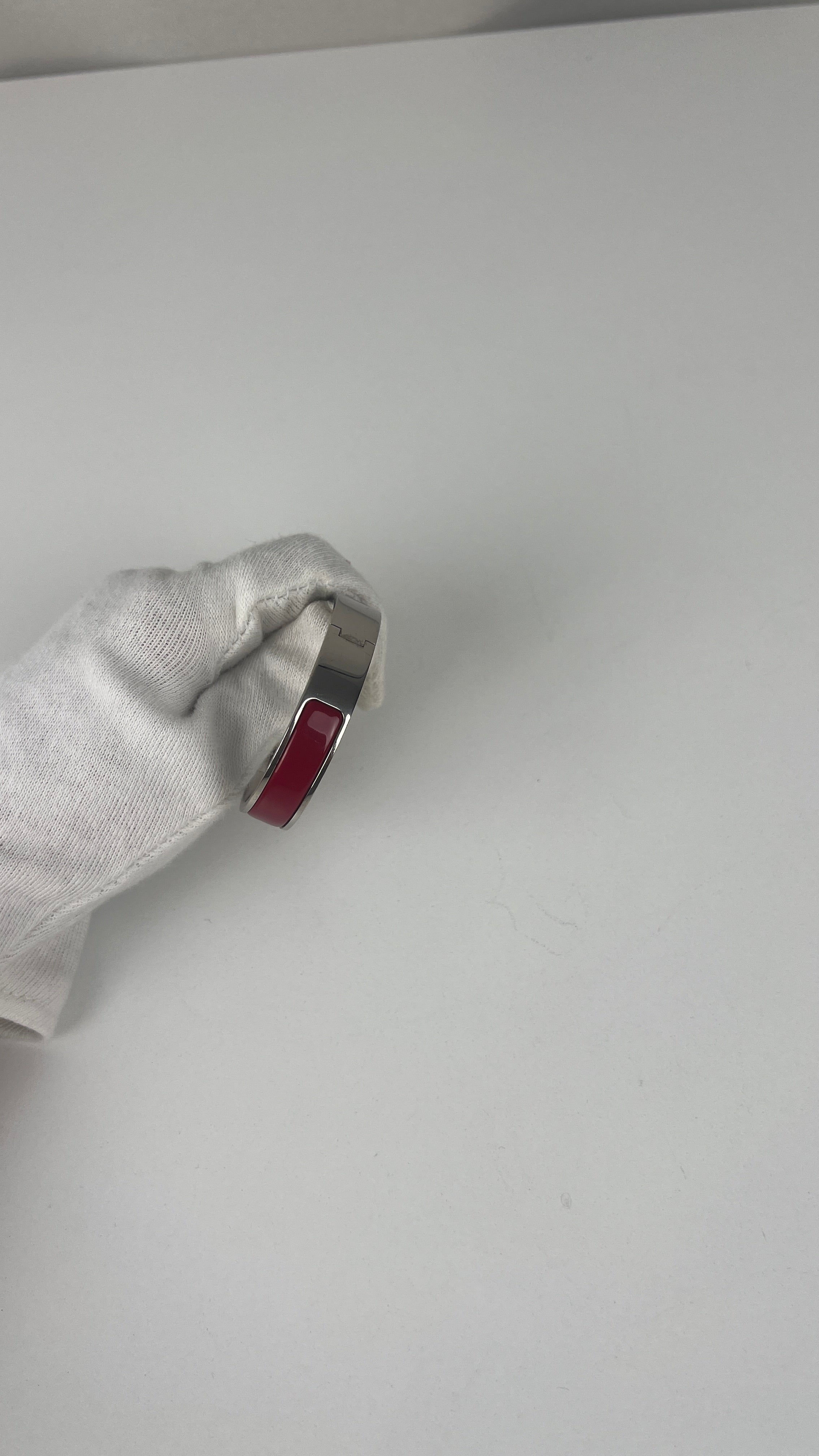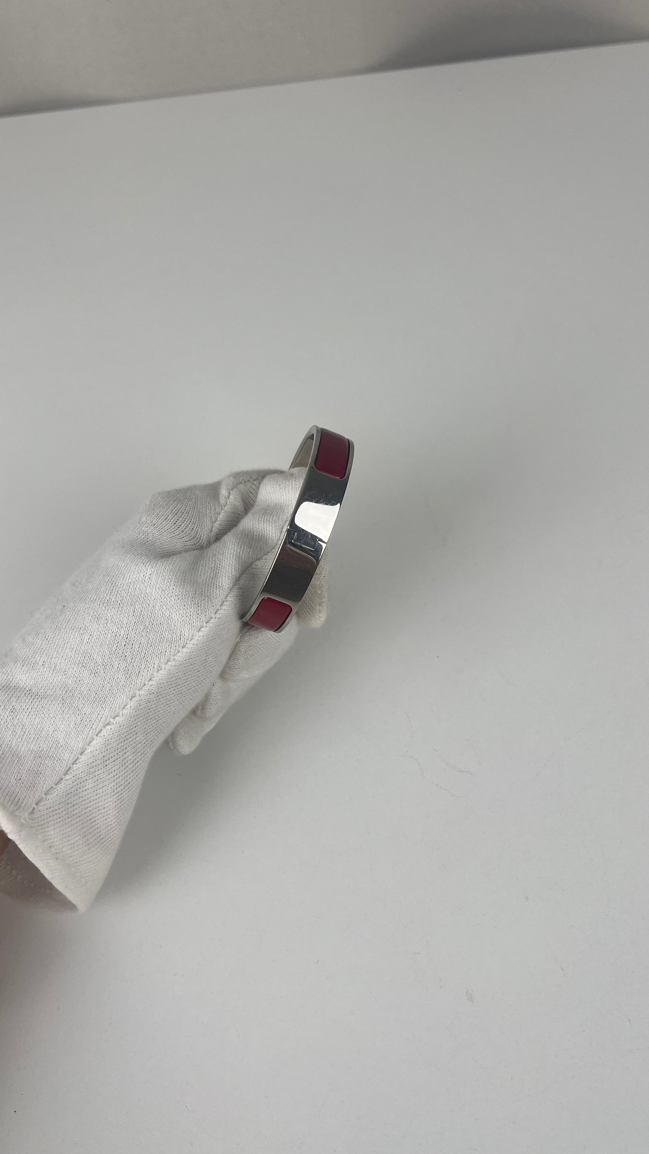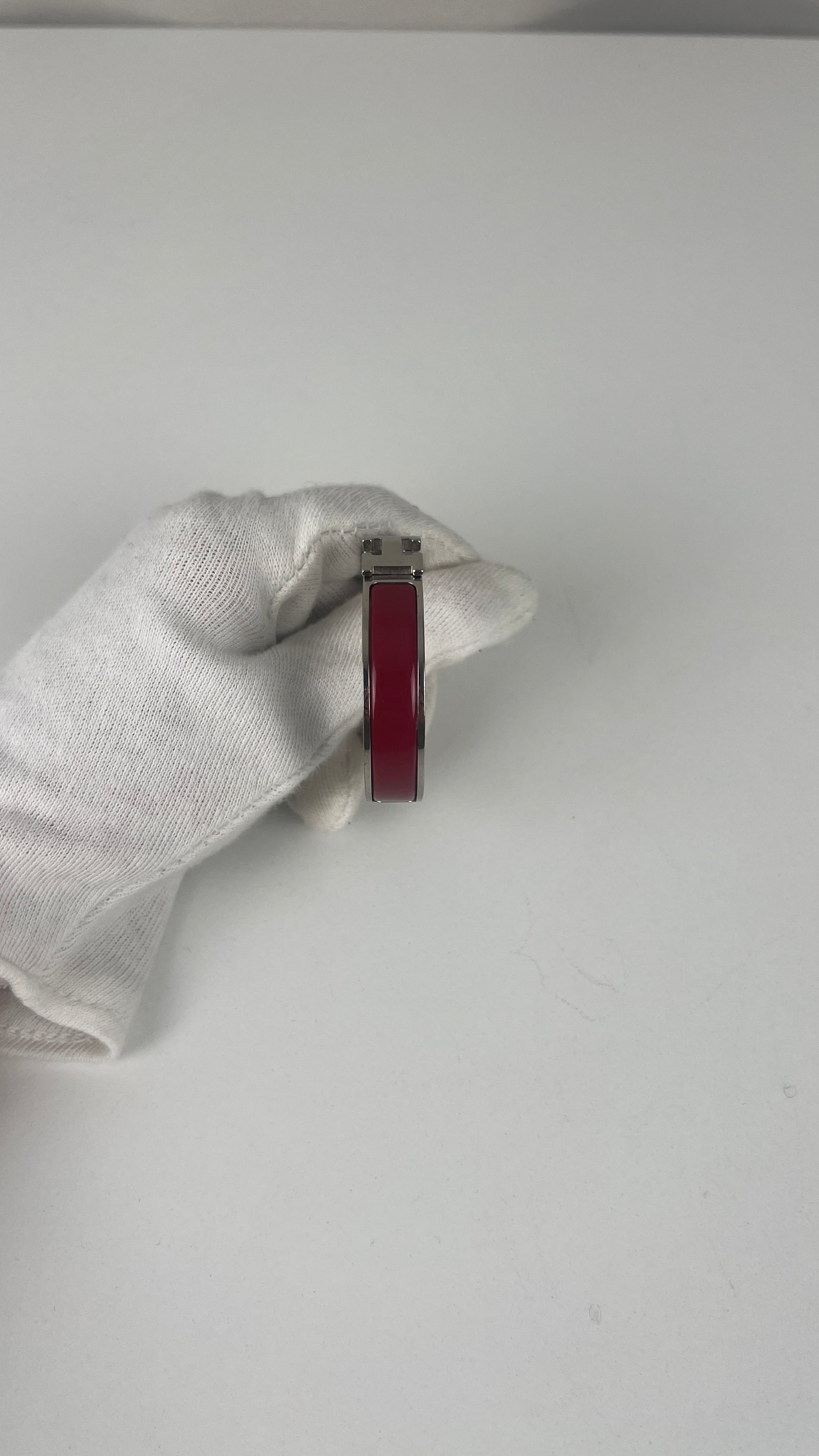 The Click H is one of Hermès' most iconic and contemporary accessory designs. This red and silver edition showcases the maison's exceptional craftsmanship and modern sophistication. A distinctive piece that embodies Hermès' heritage of luxury accessories and represents the perfect blend of functionality with elegant simplicity in the signature H design.