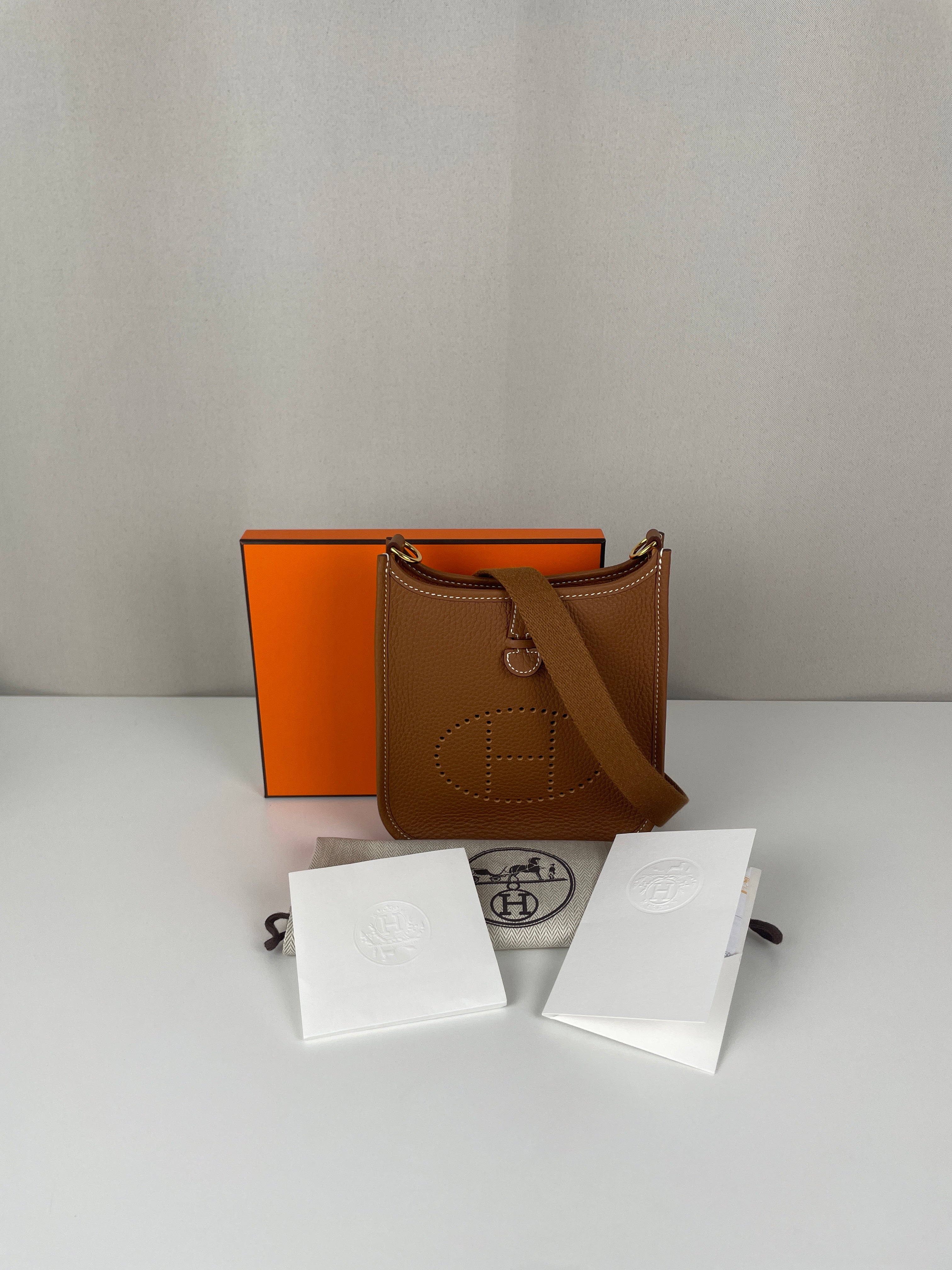 Hermès Mini Evelyne TPM 16 gold brown leather bag gold hardware
