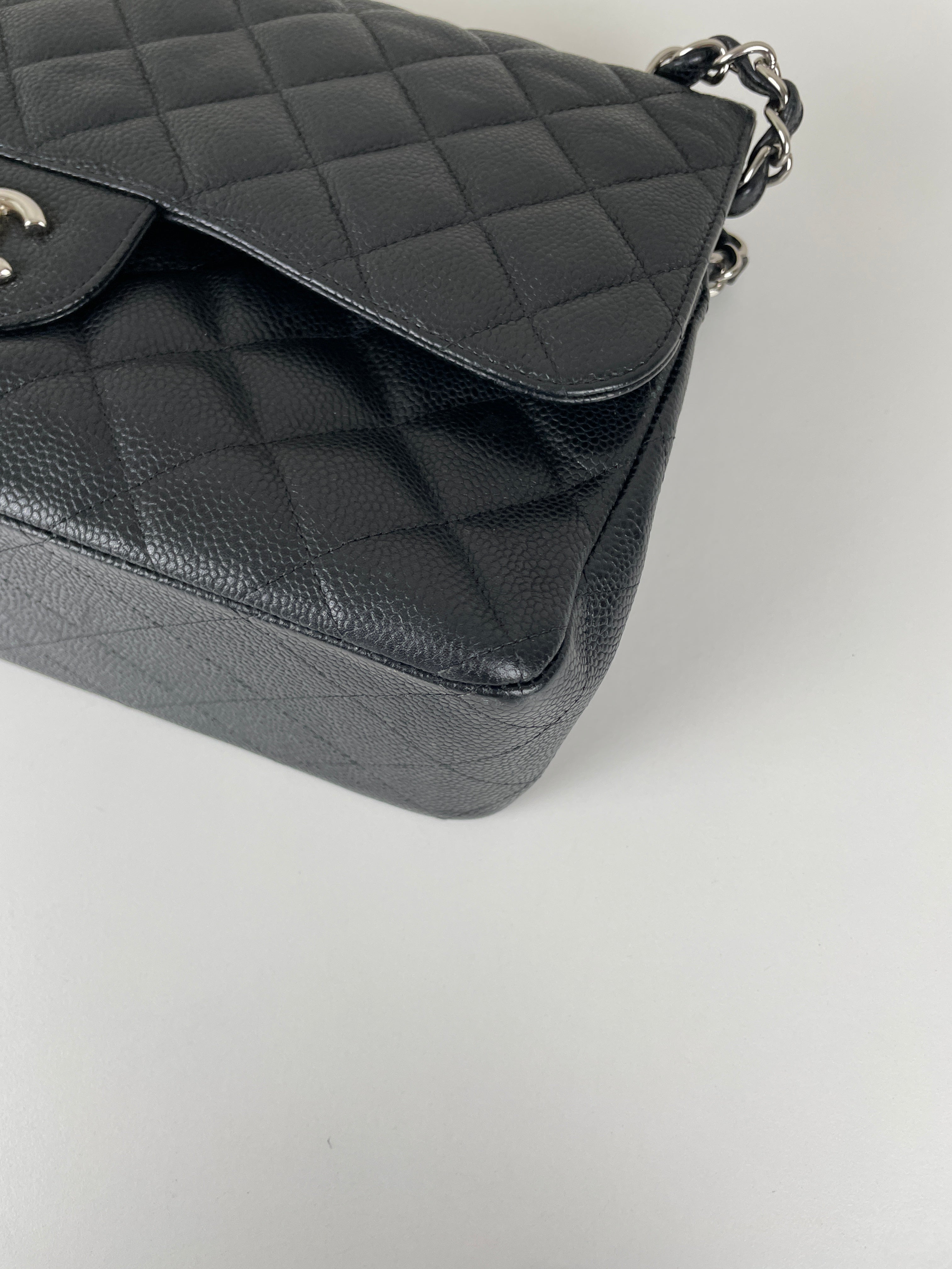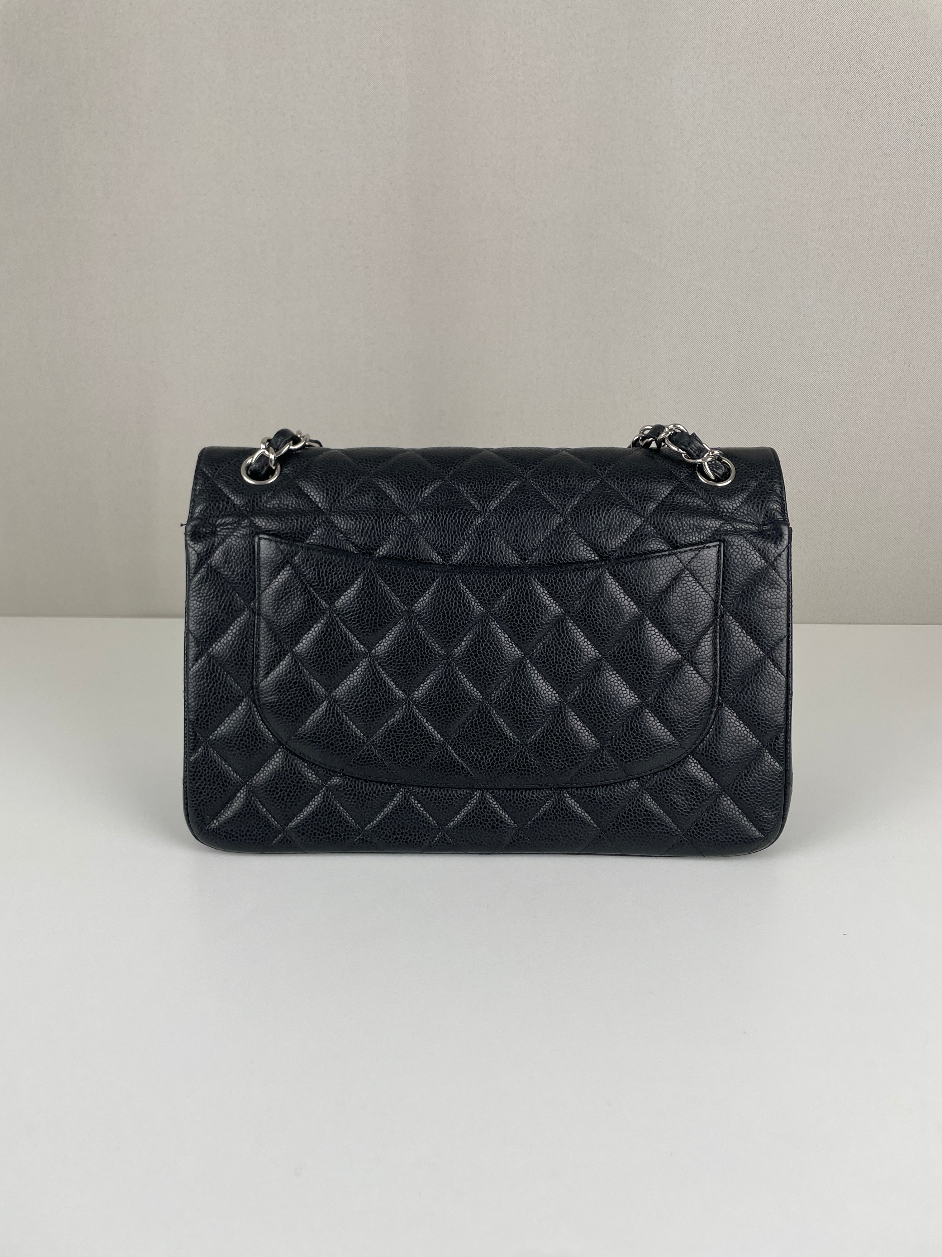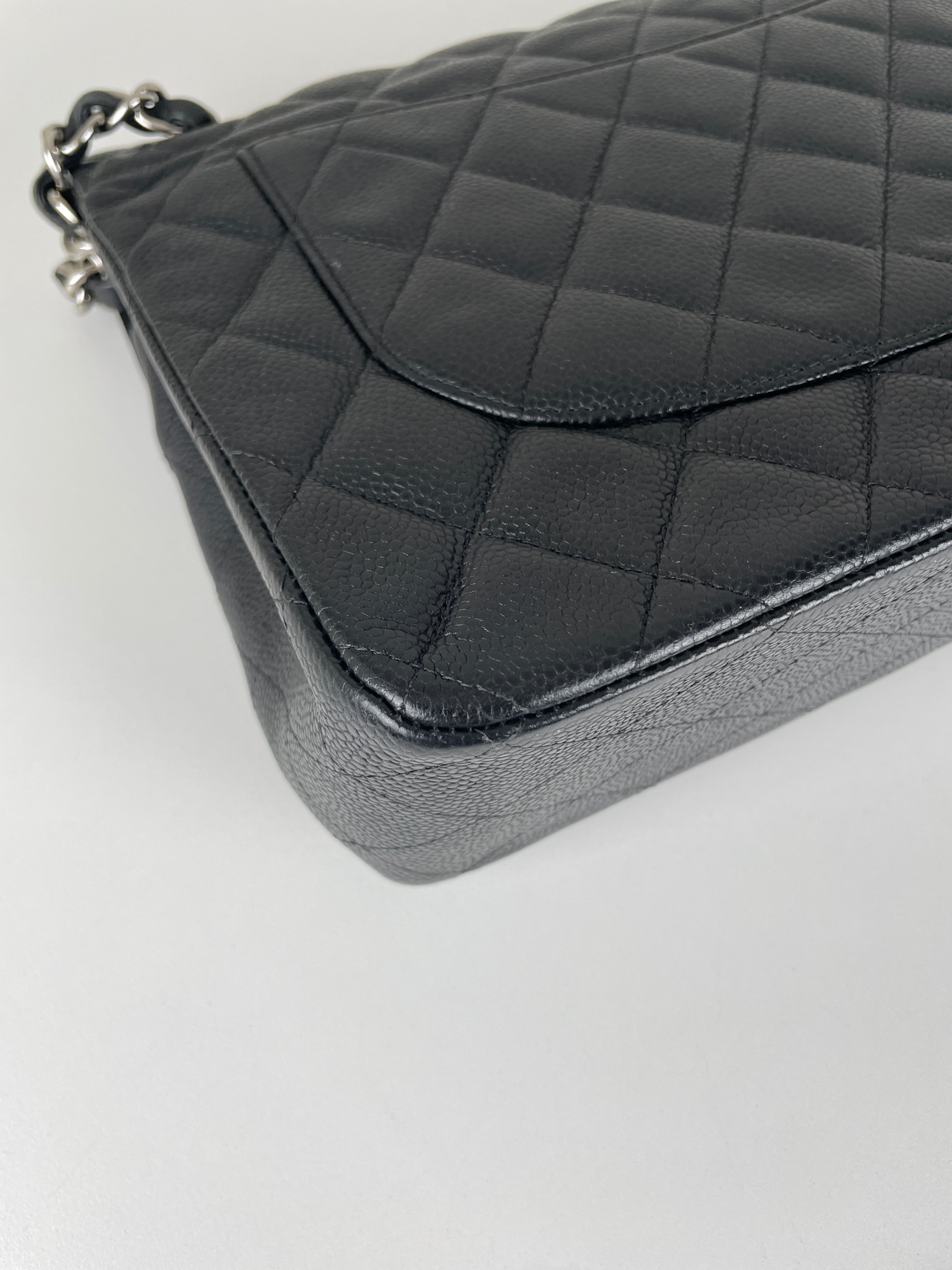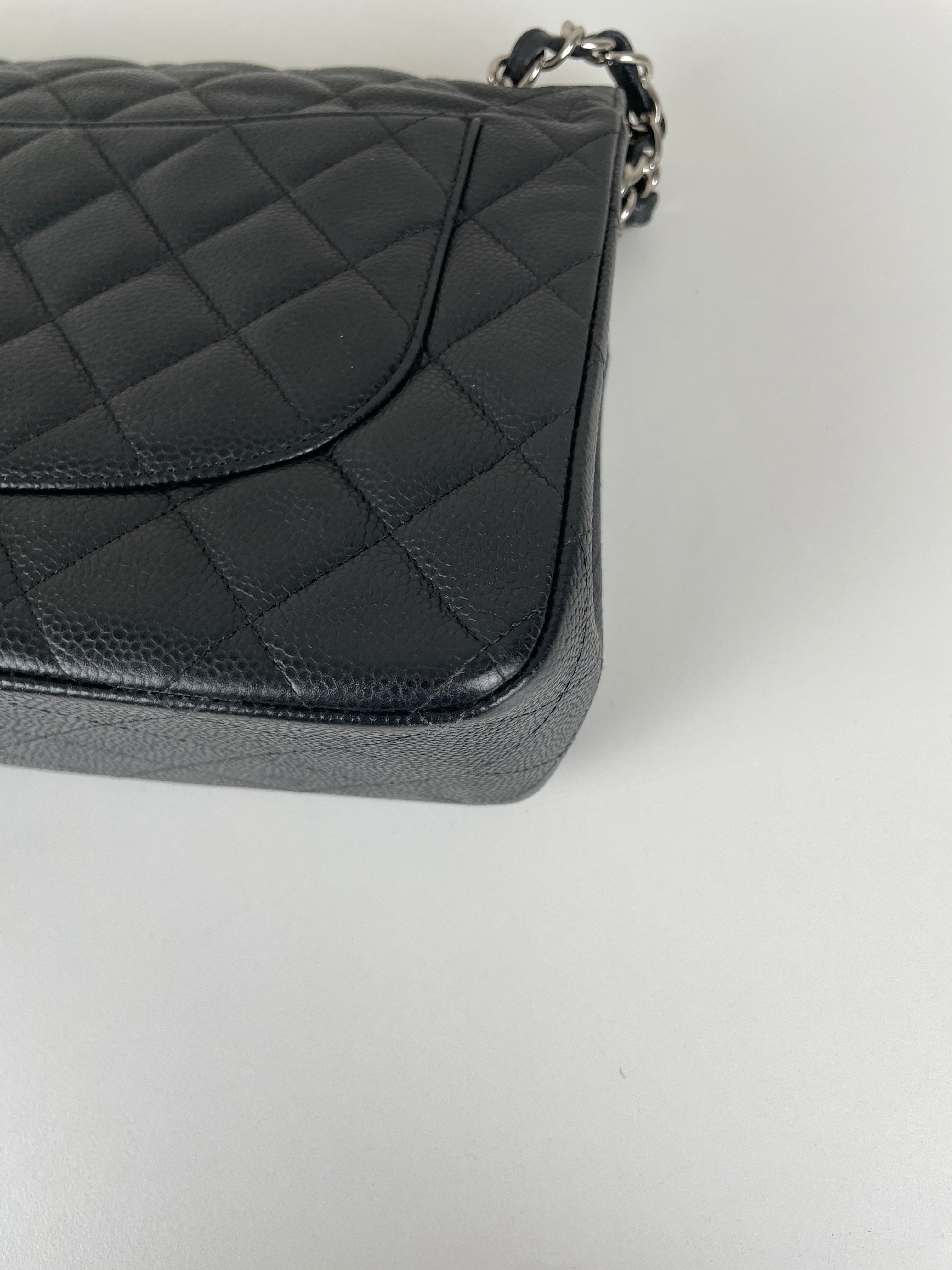 Chanel Jumbo Caviar Leather black silver