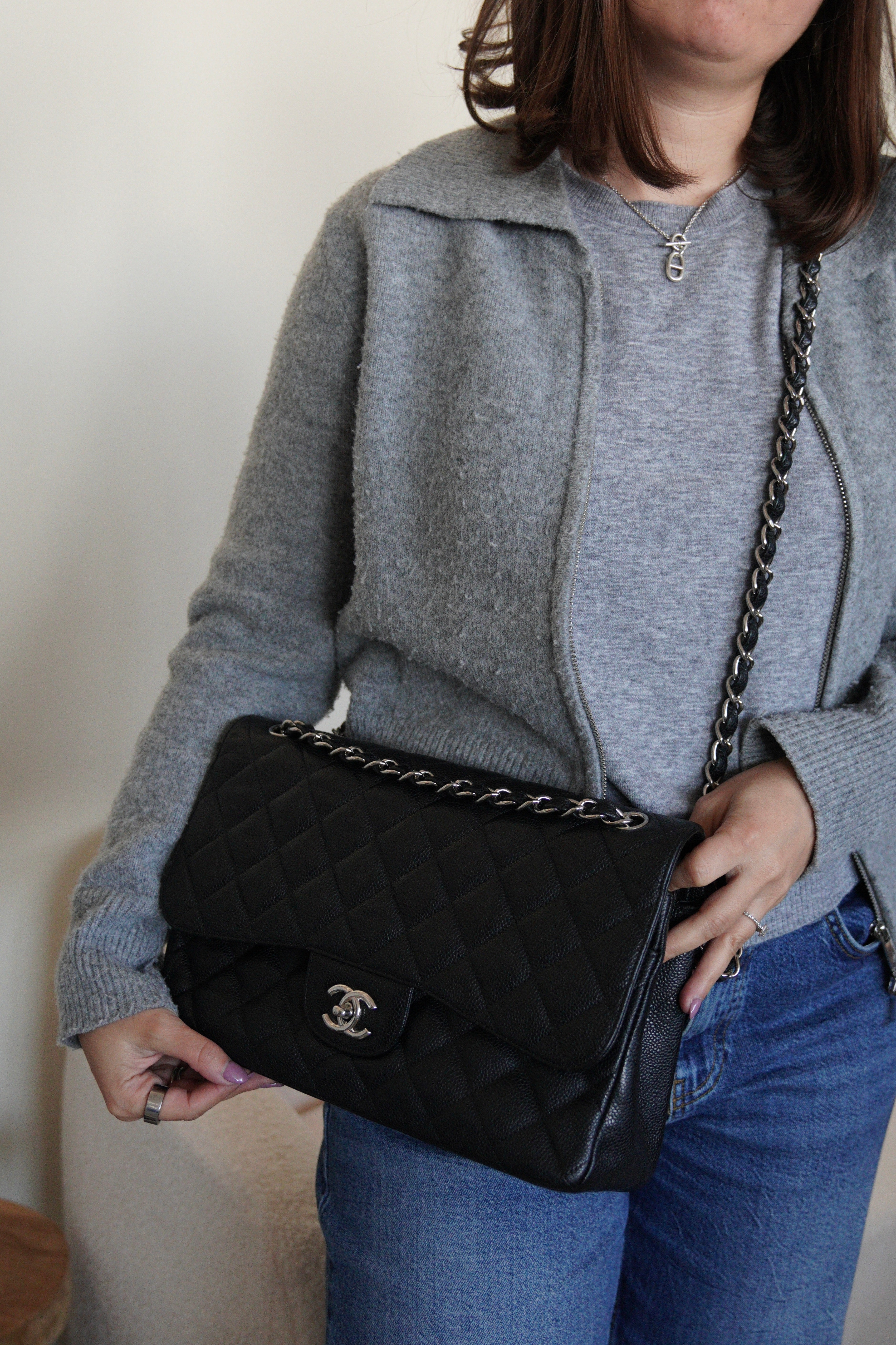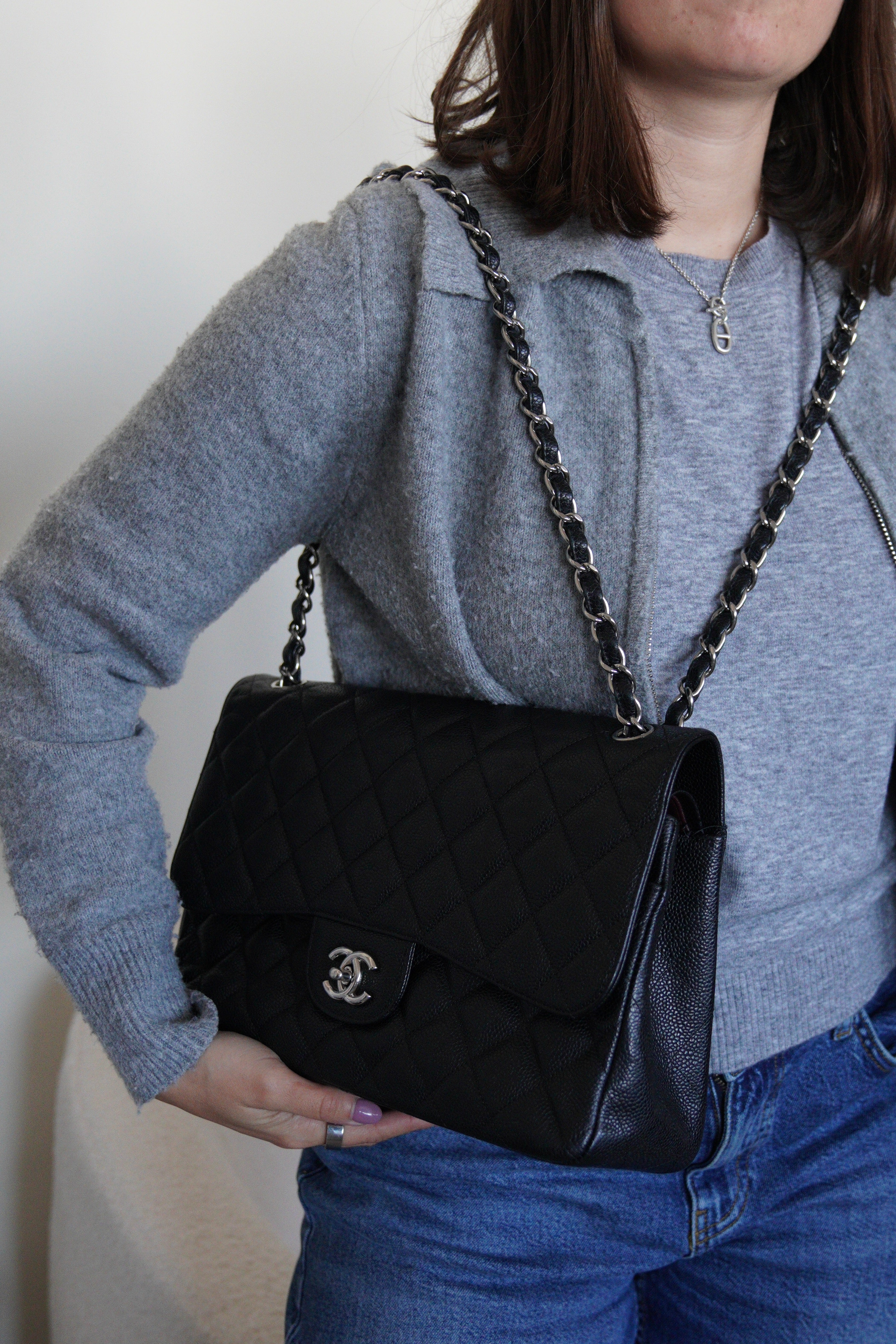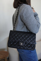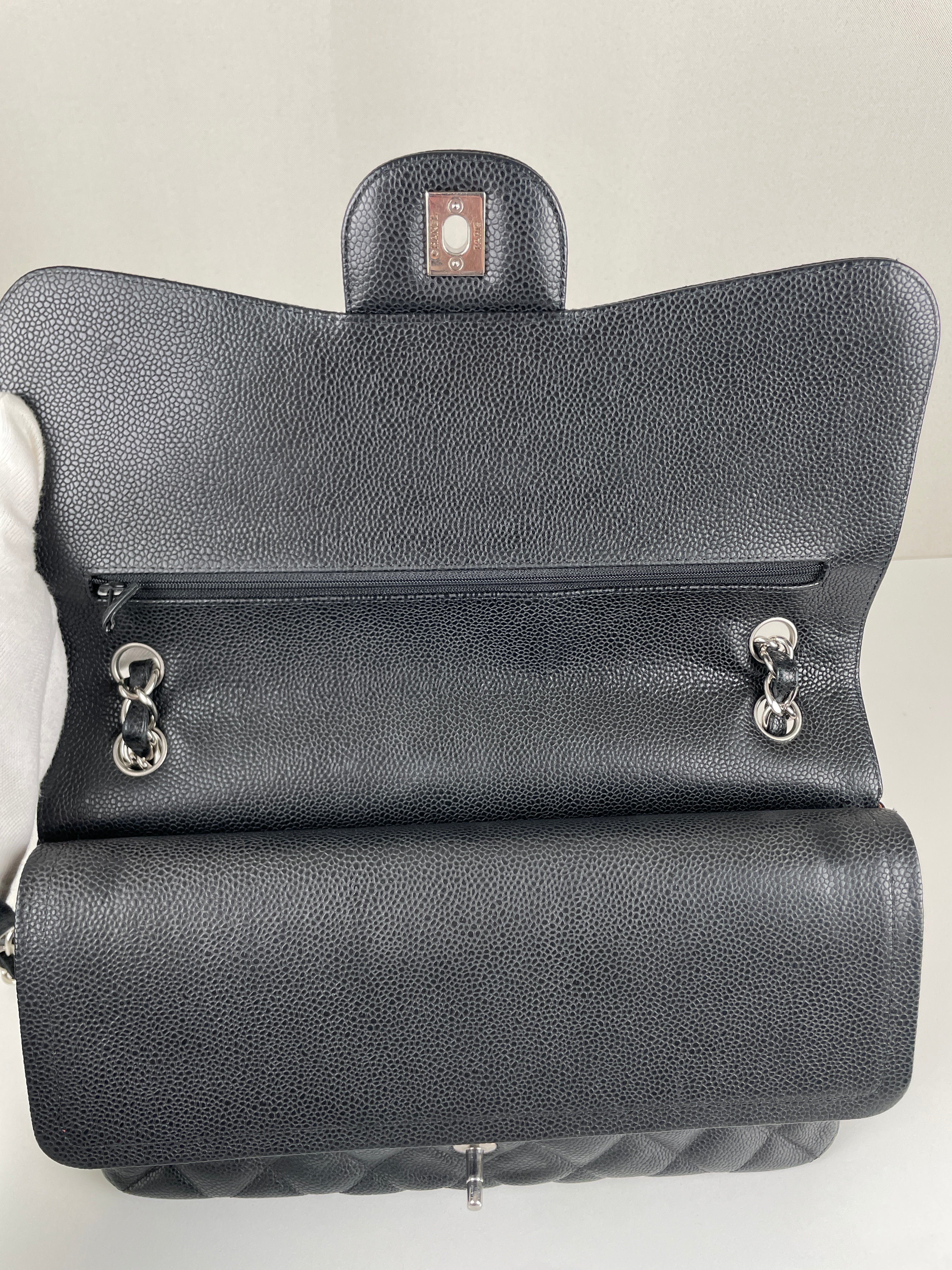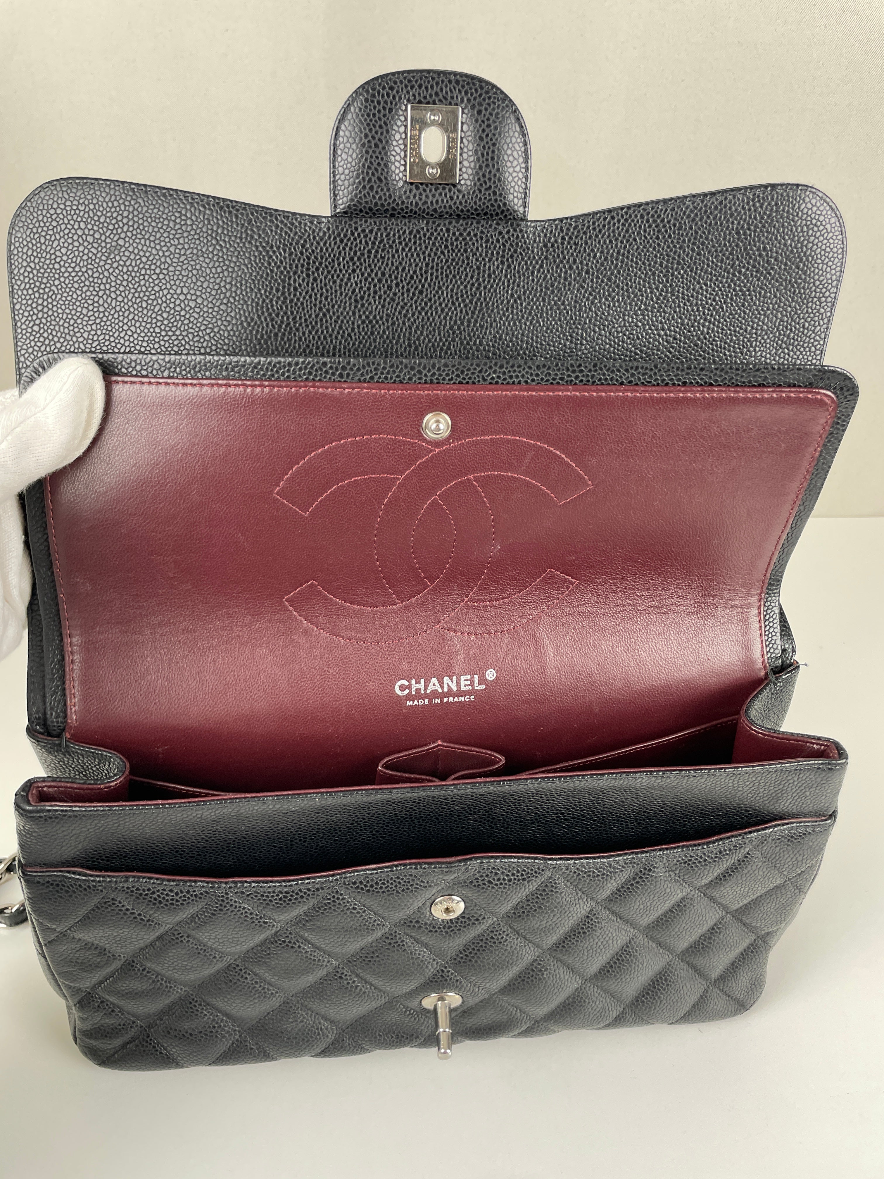 Chanel Jumbo Caviar Leather black silver