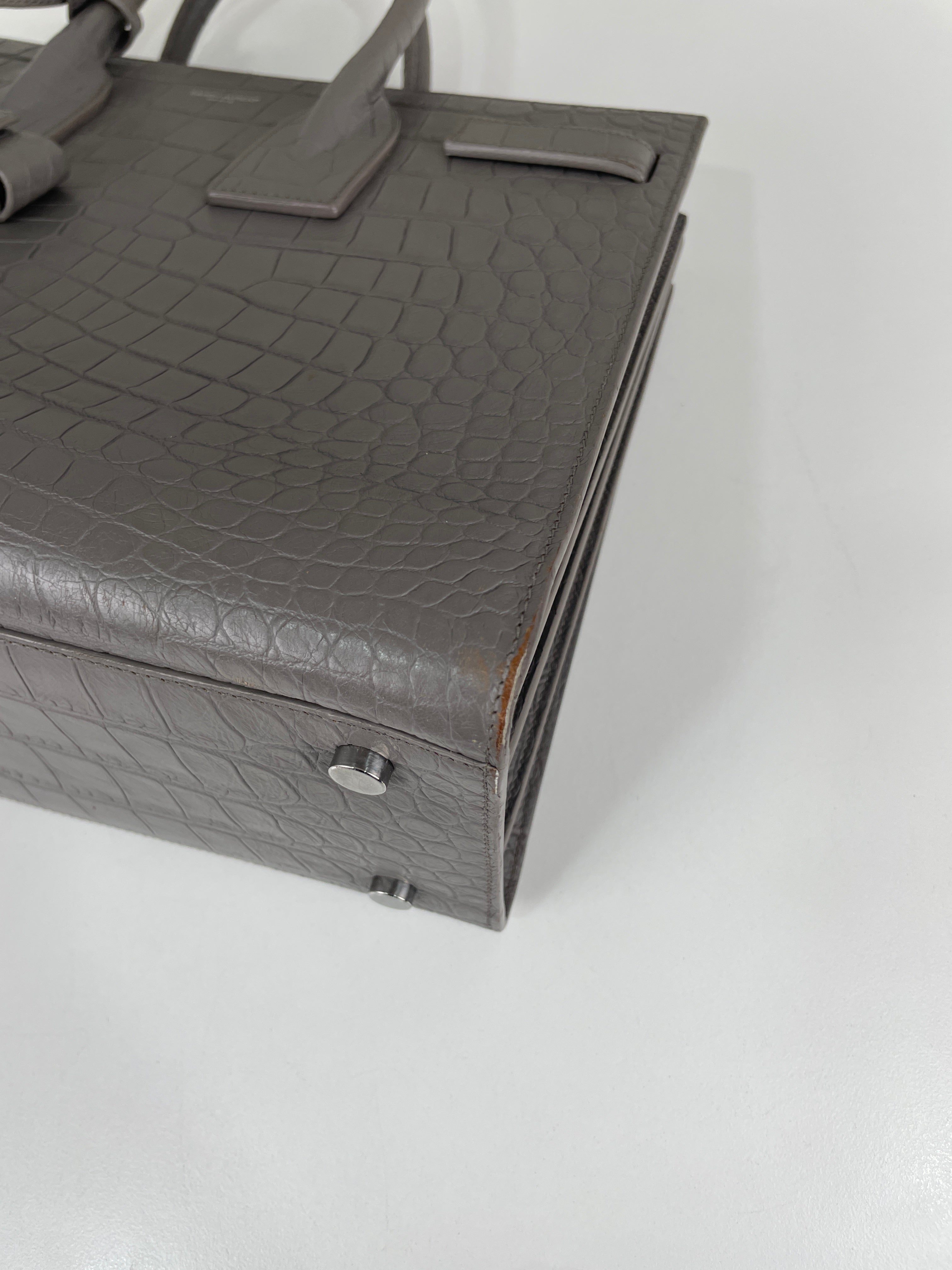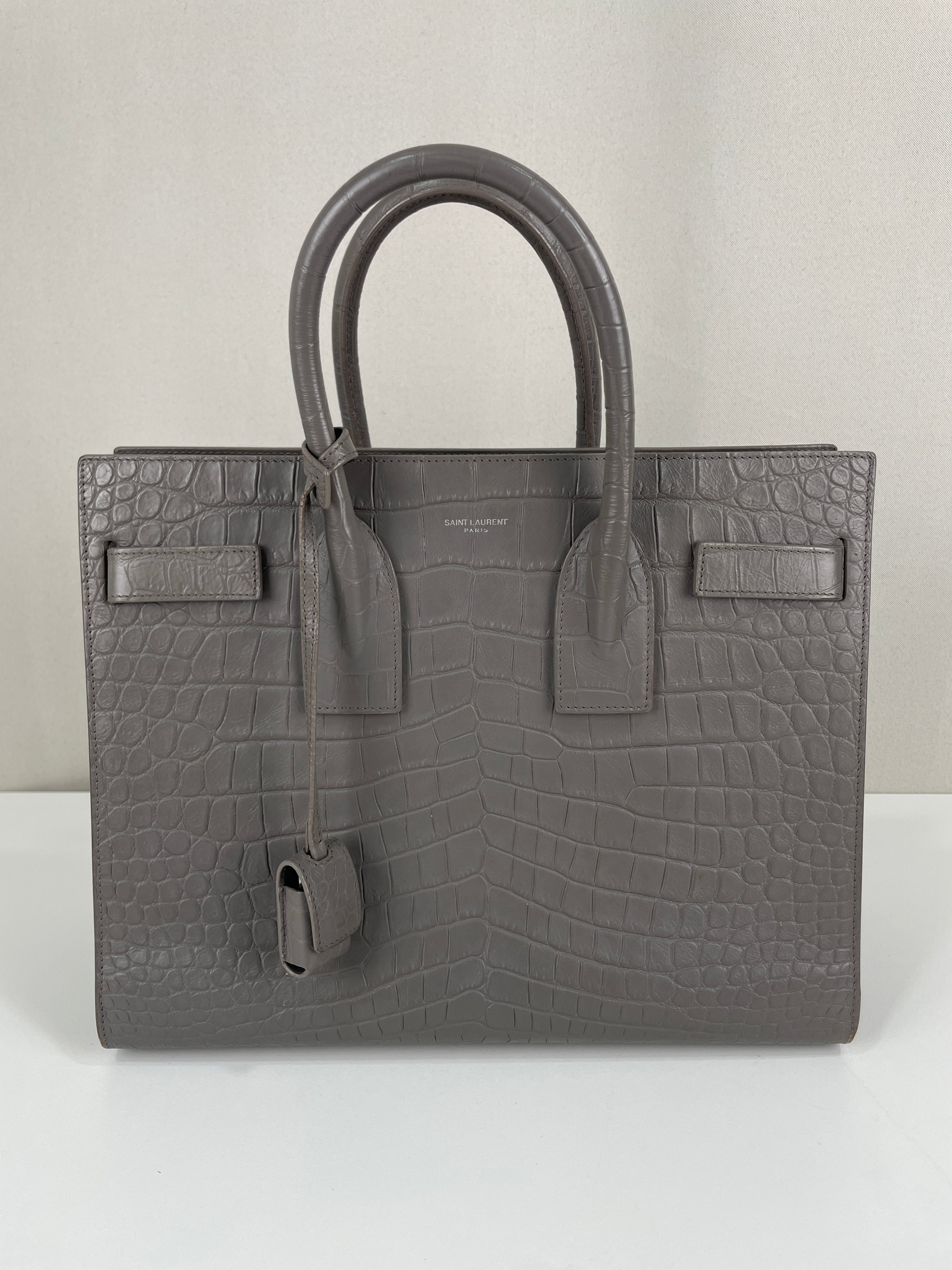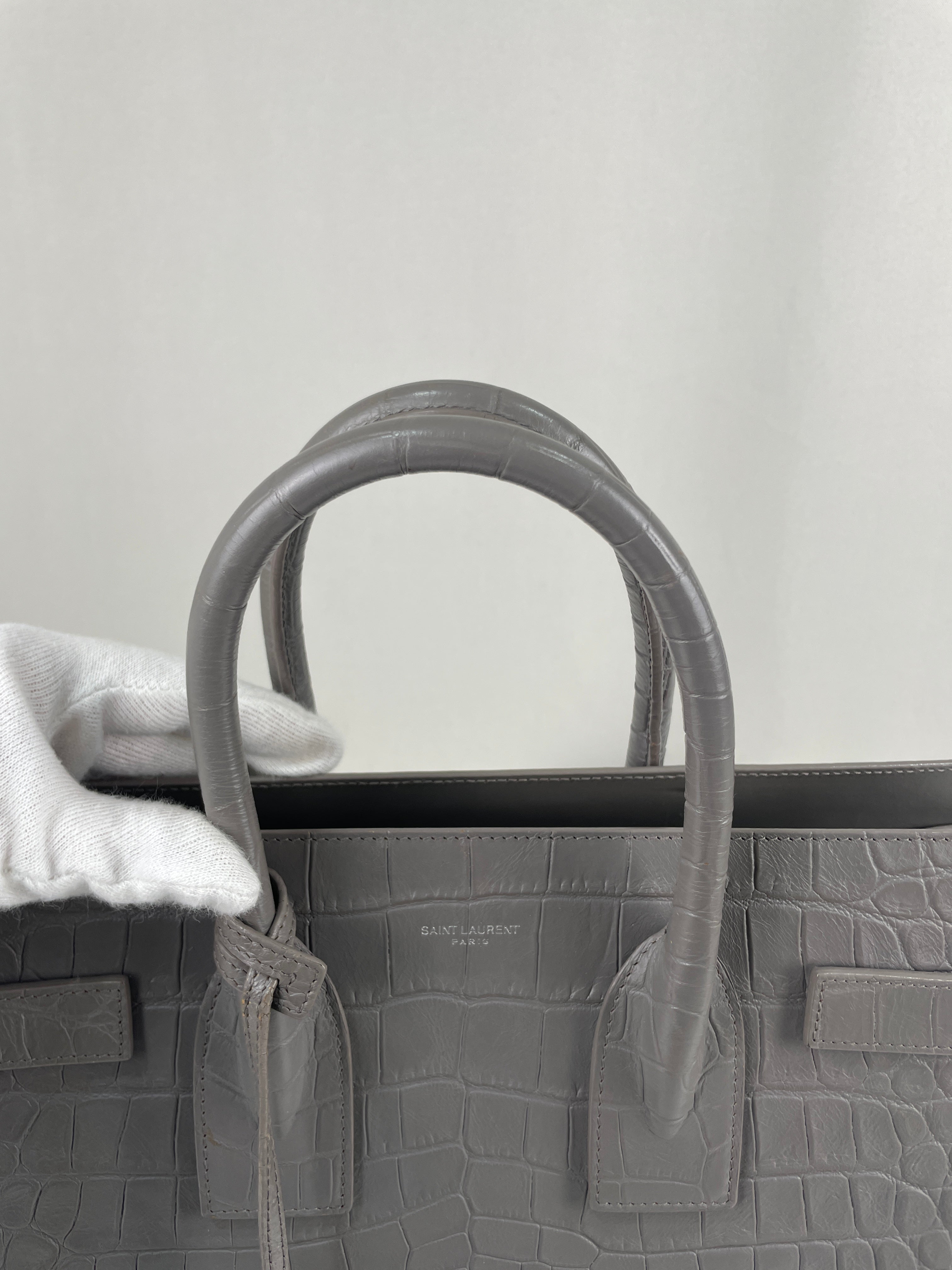 Saint Laurent Sac de Jour small grey embossed leather bag