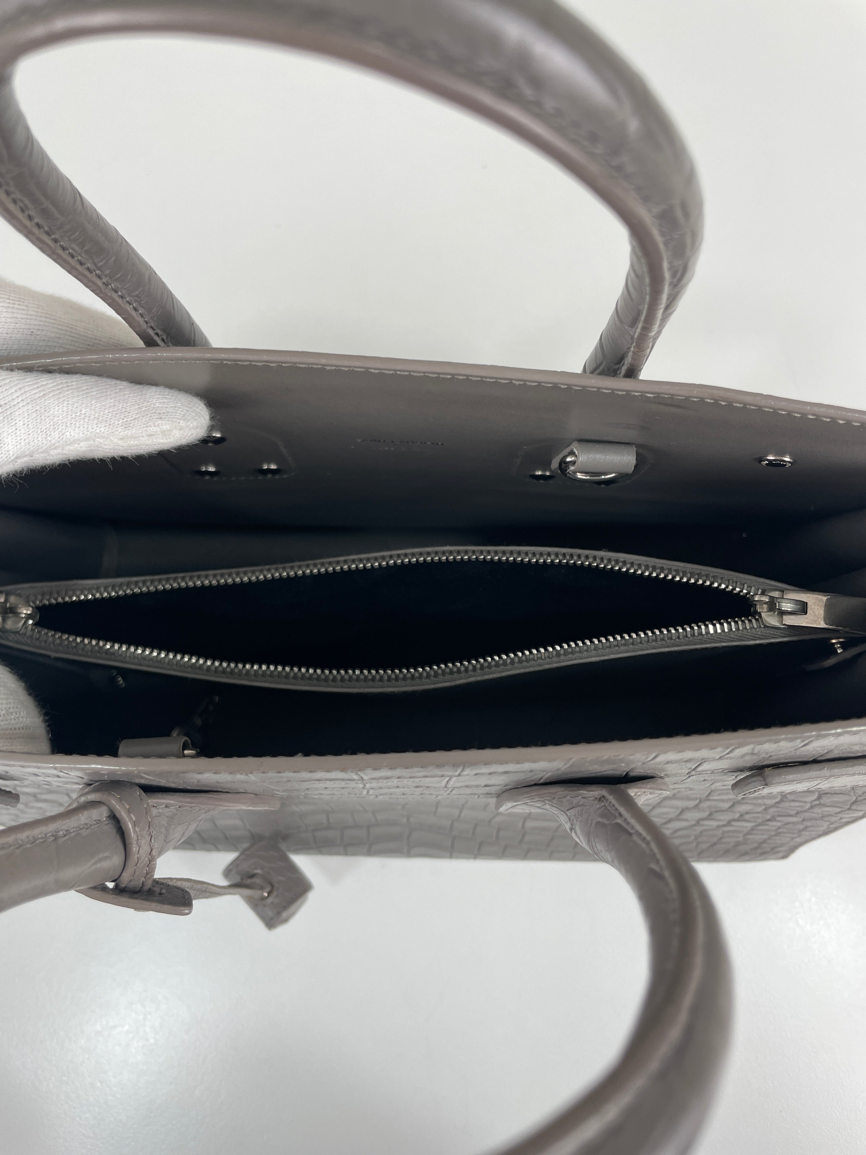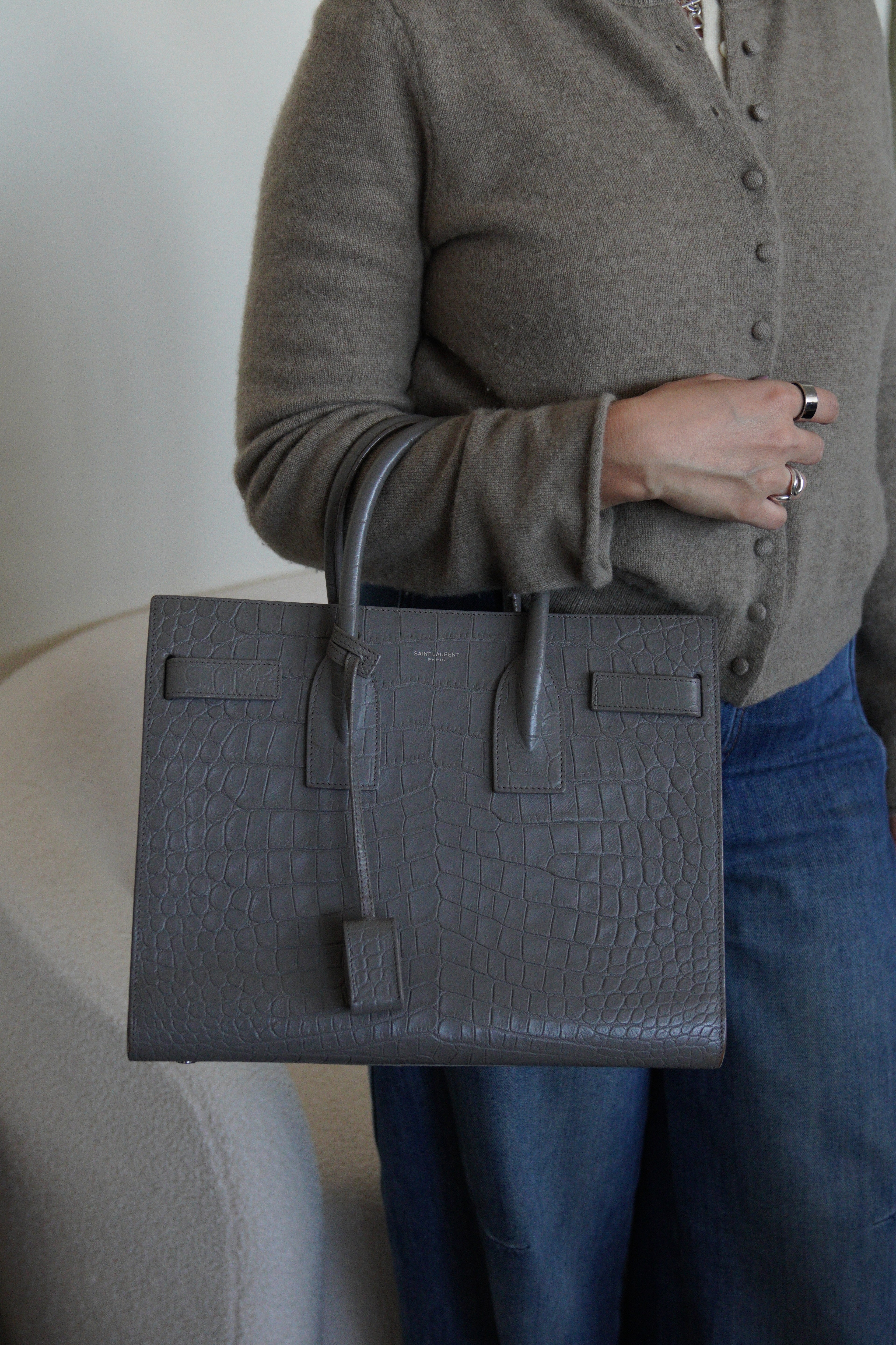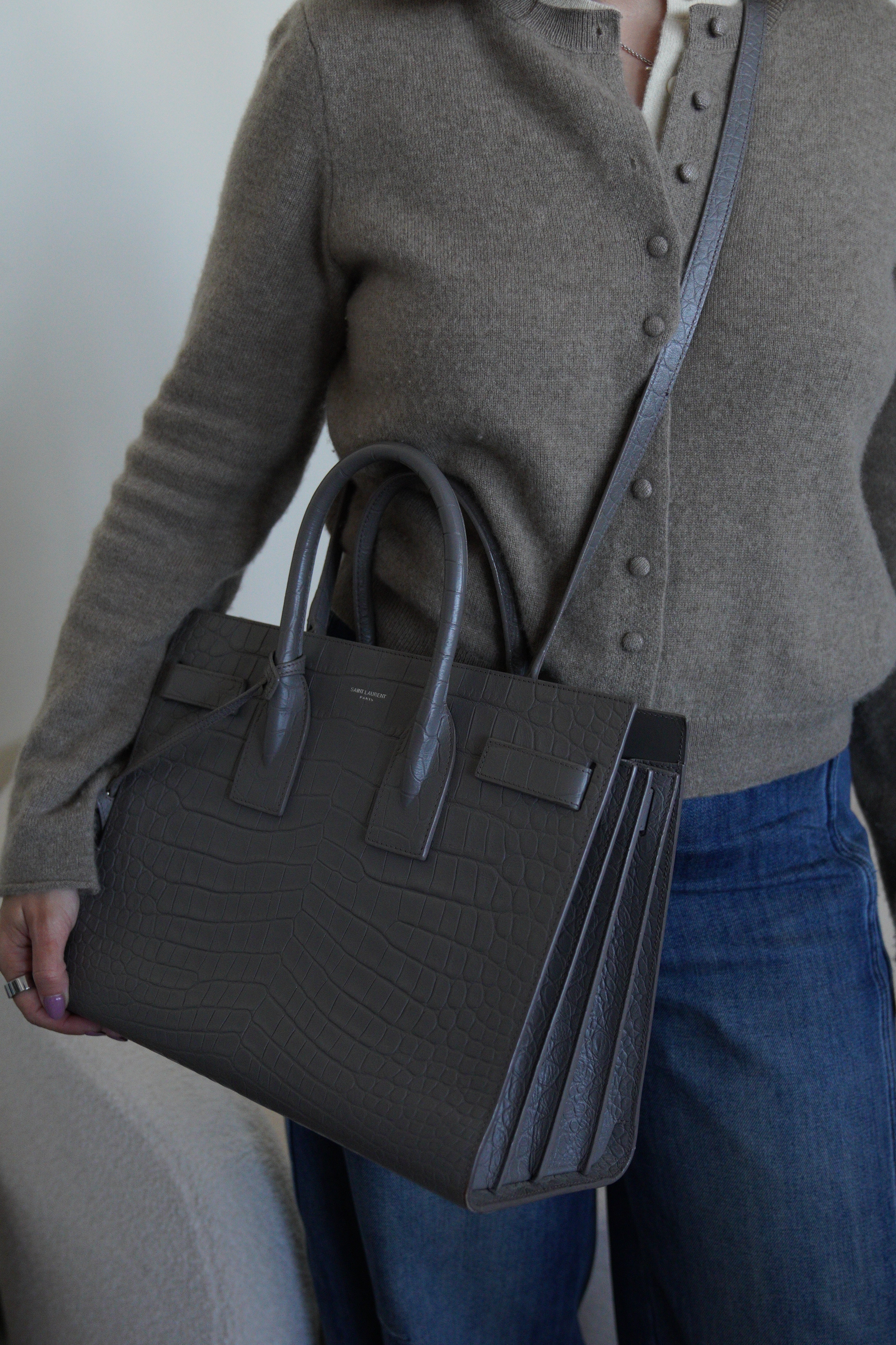 Saint Laurent Sac de Jour small grey embossed leather bag