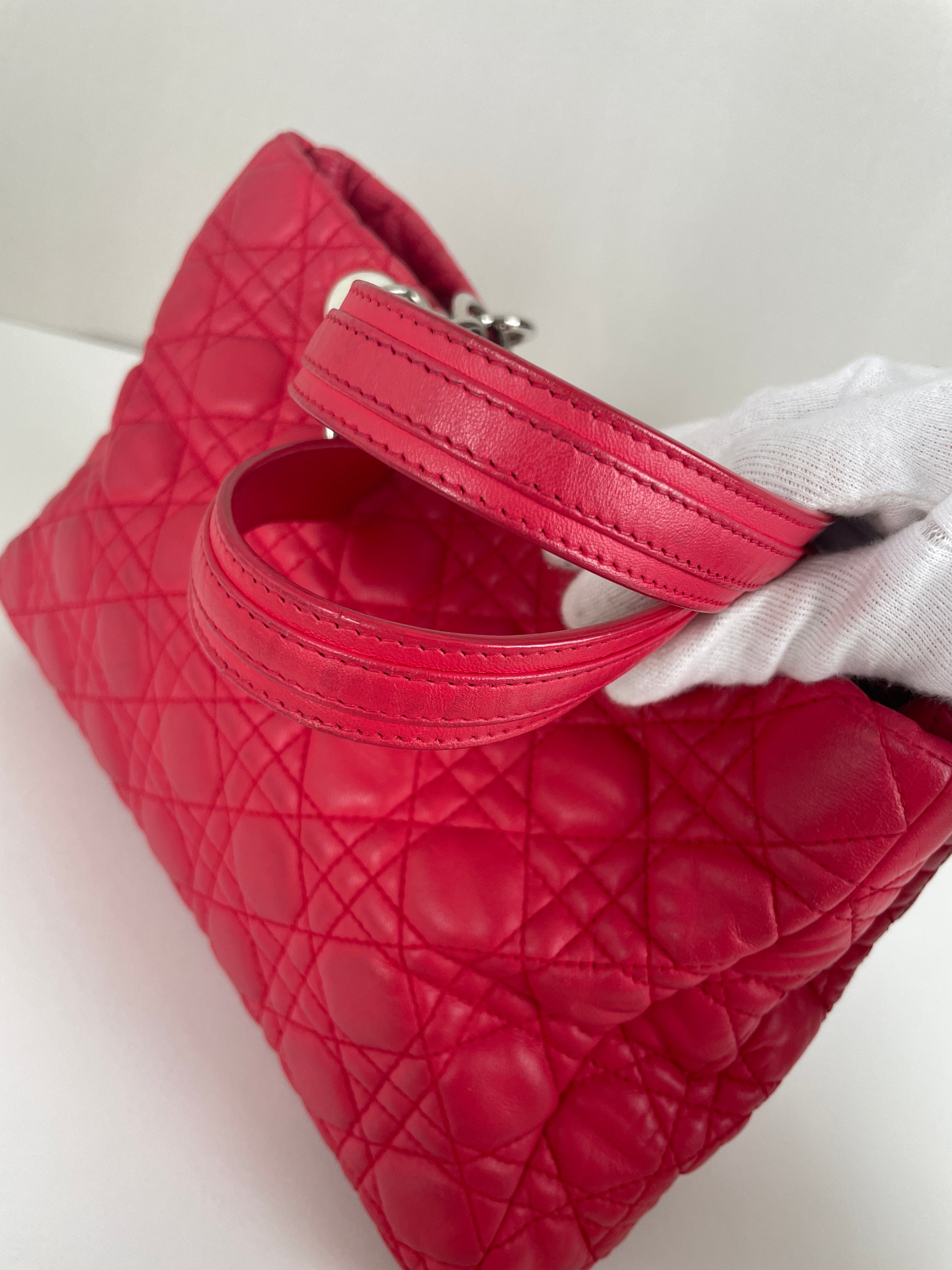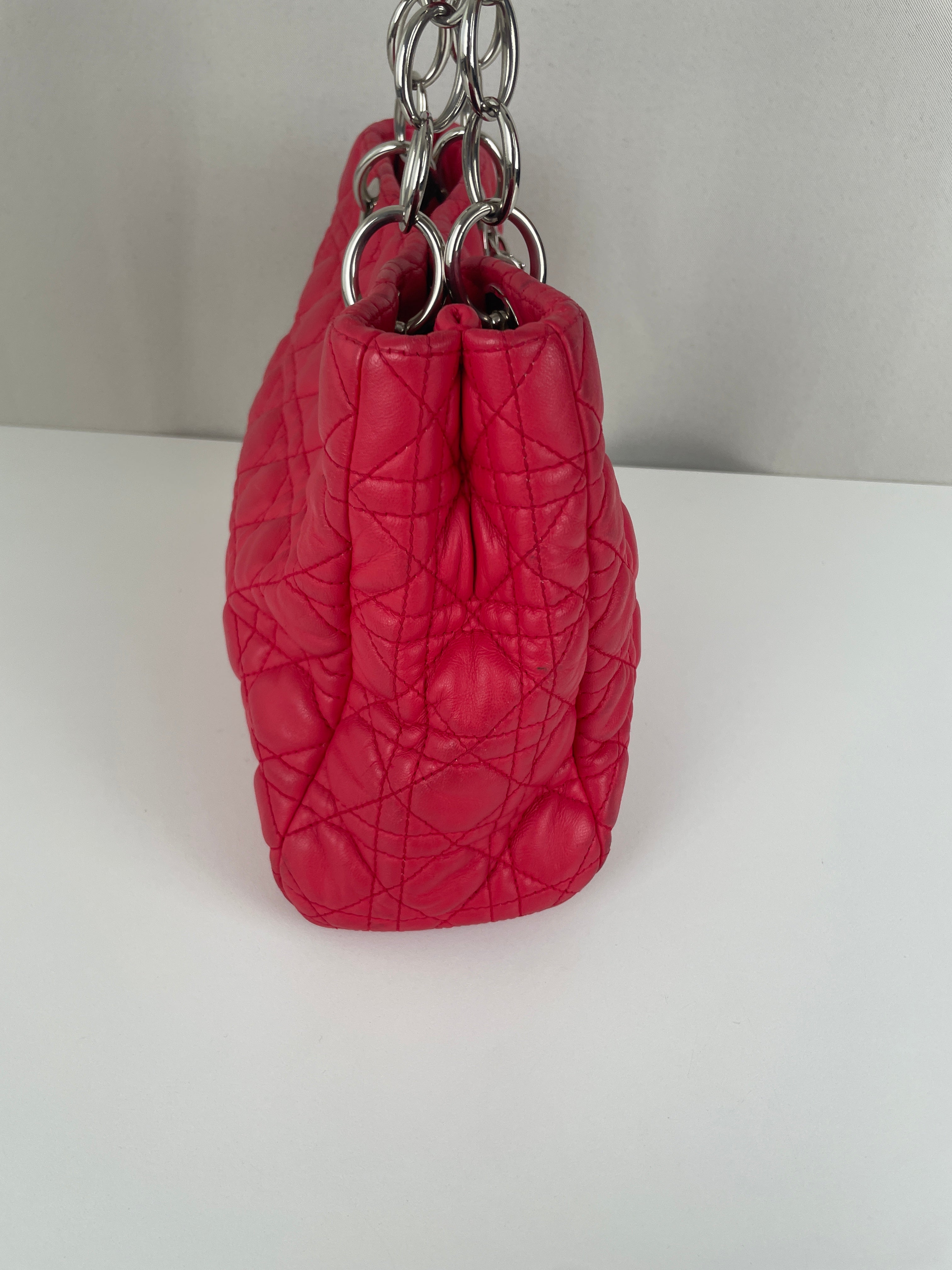 The Lady Dior Soft in pink leather is a timeless icon of the Maison Dior. Recognized for its refined design and the legendary "Cannage" stitching, it embodies Parisian elegance. This piece remains in good overall condition, with slight signs of wear that add authentic charm. A perfect addition for any collector or luxury lover.