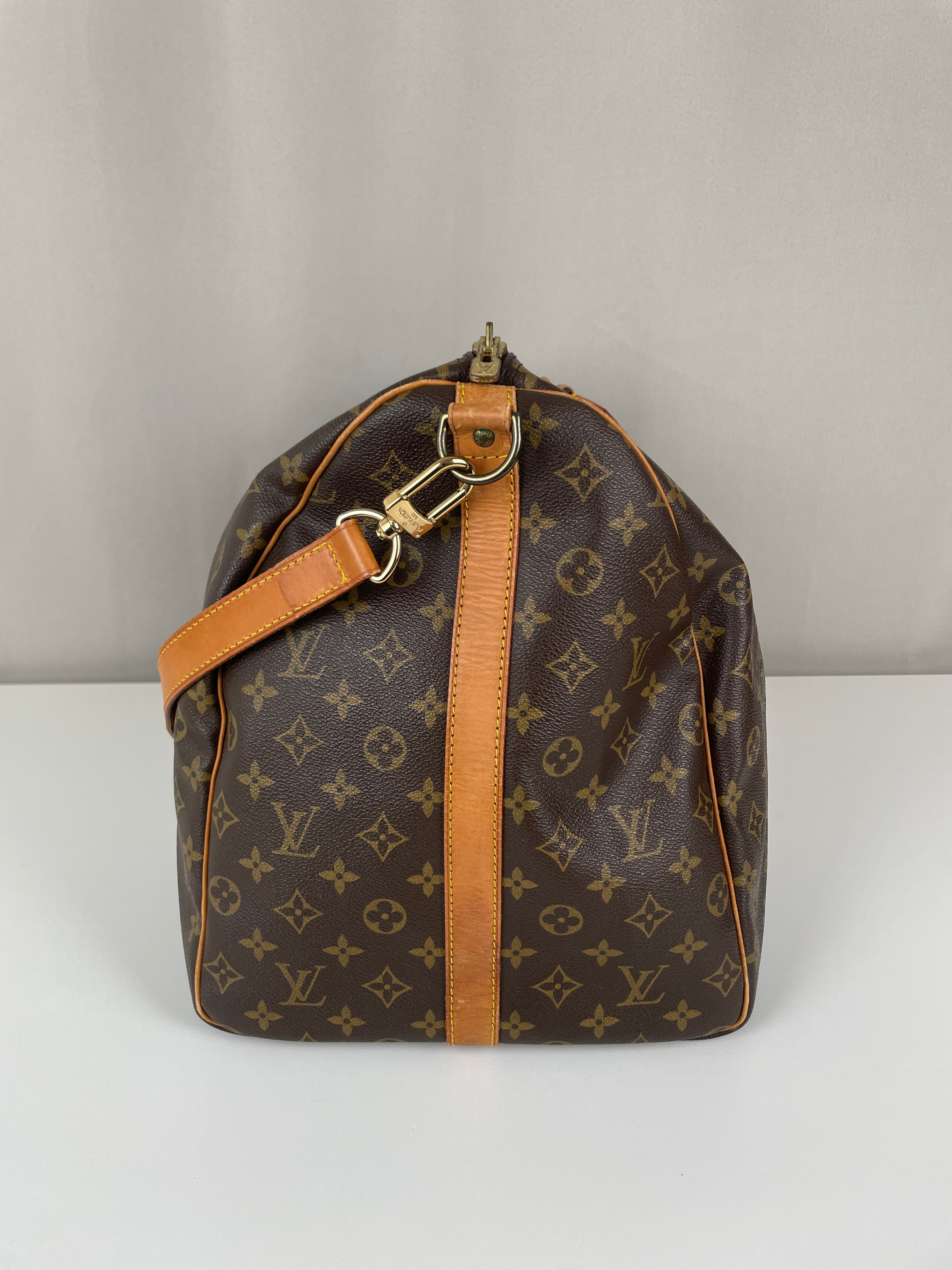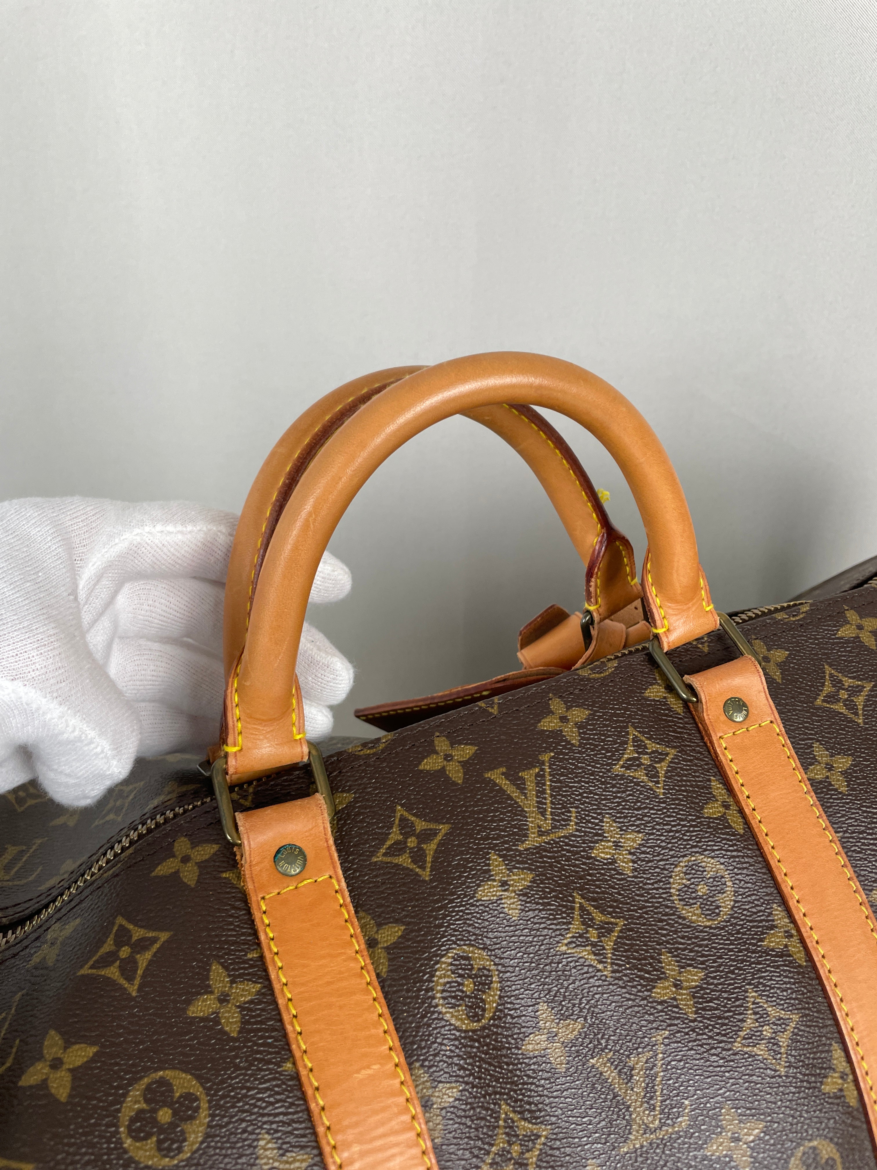 This Louis Vuitton Keepall bandoulière is in good / very good condition. The canvas is in very good condition. The corners are in good condition. The handles are in very good condition, the leather has natural trace of wear. The inside is in very good condition.