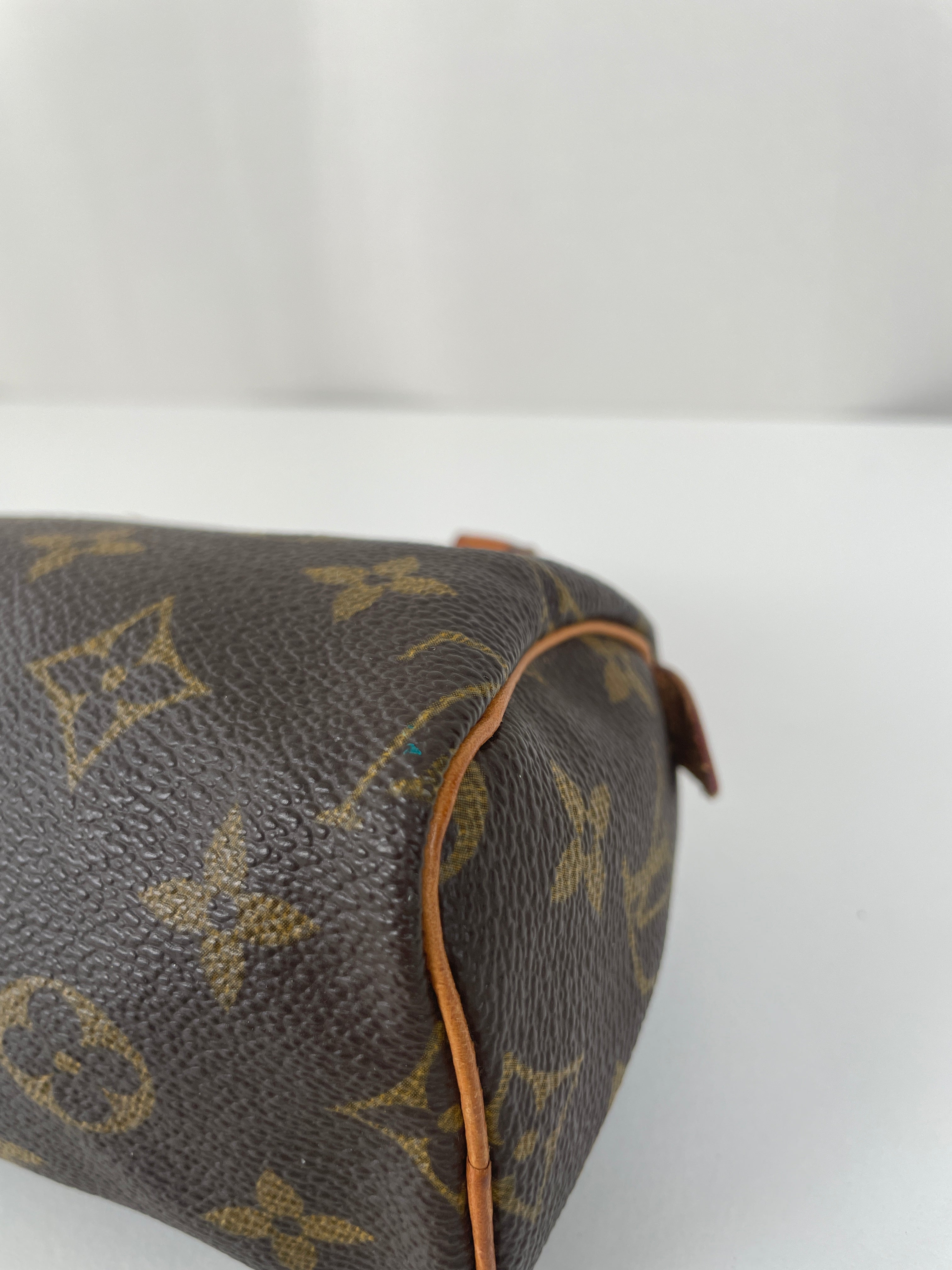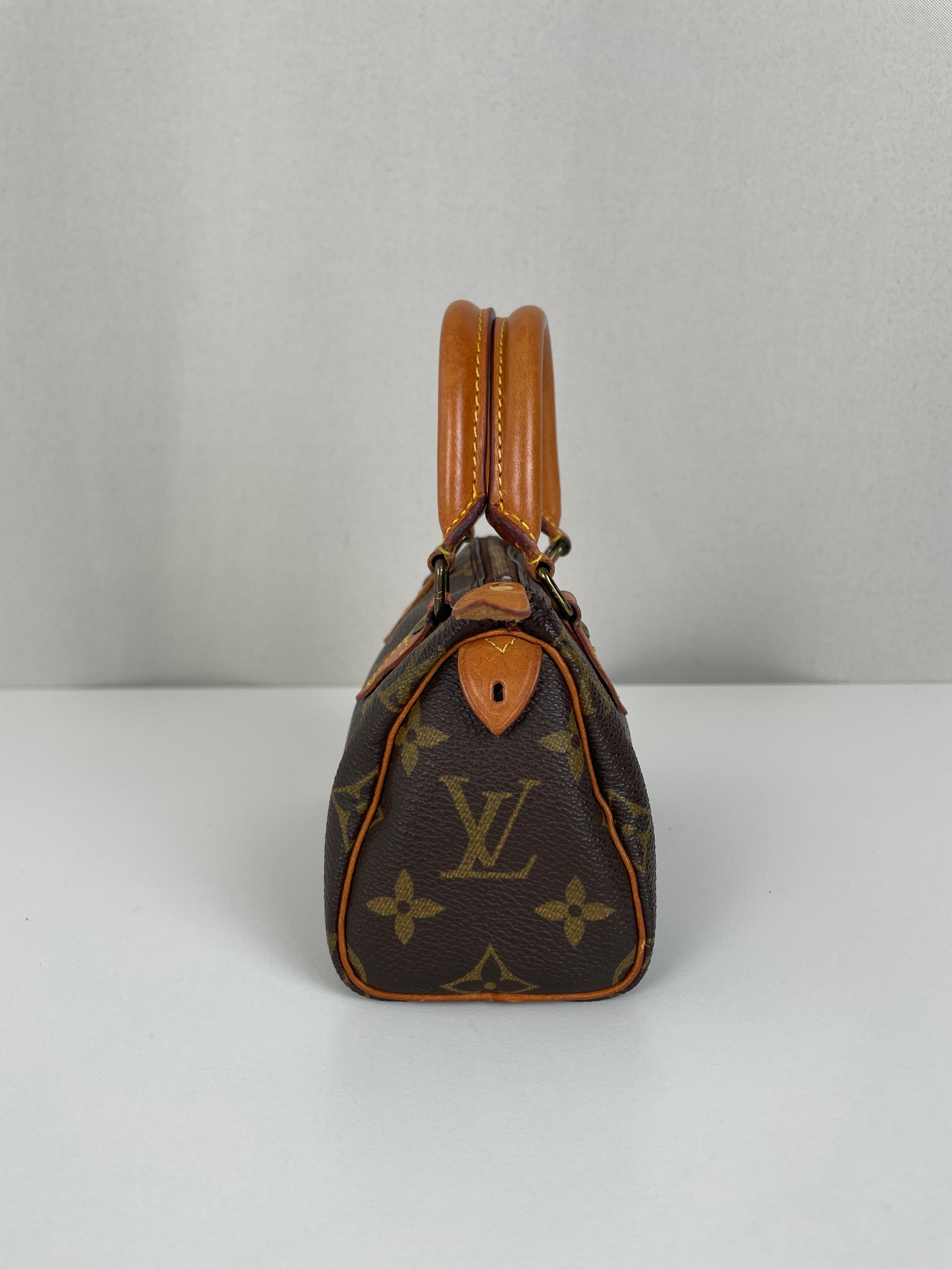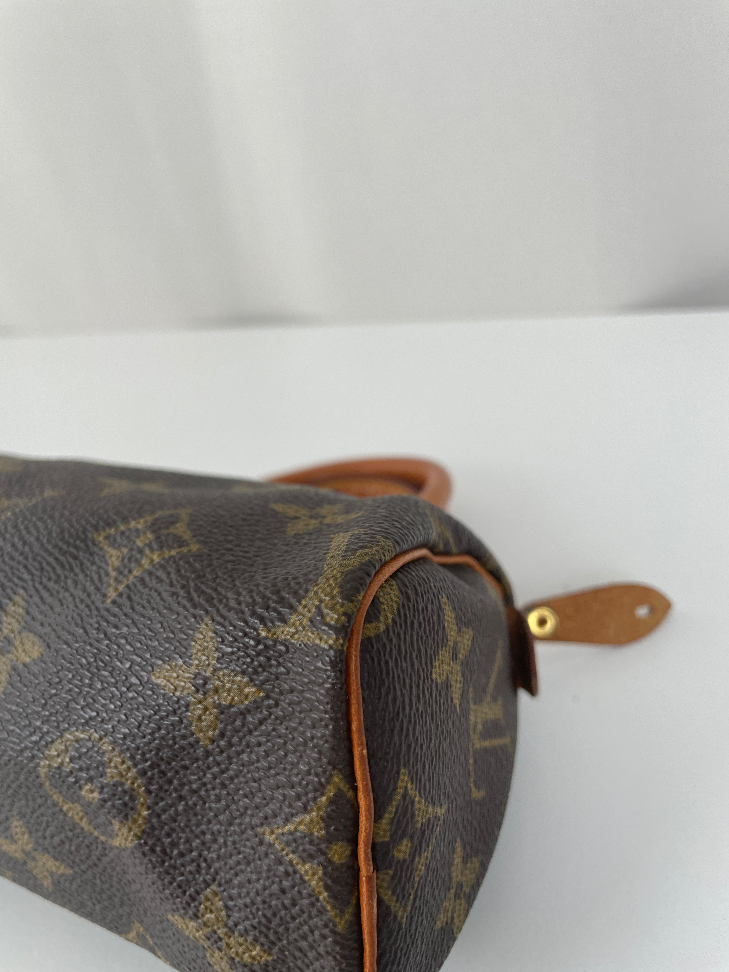 The Louis Vuitton Mini Speedy in Monogram canvas is a cult favorite among collectors and fashion lovers. Compact yet surprisingly functional, it carries your essentials with ease while making a strong style statement. This piece is in beautiful condition overall, ideal for daily wear or as a collector's gem.