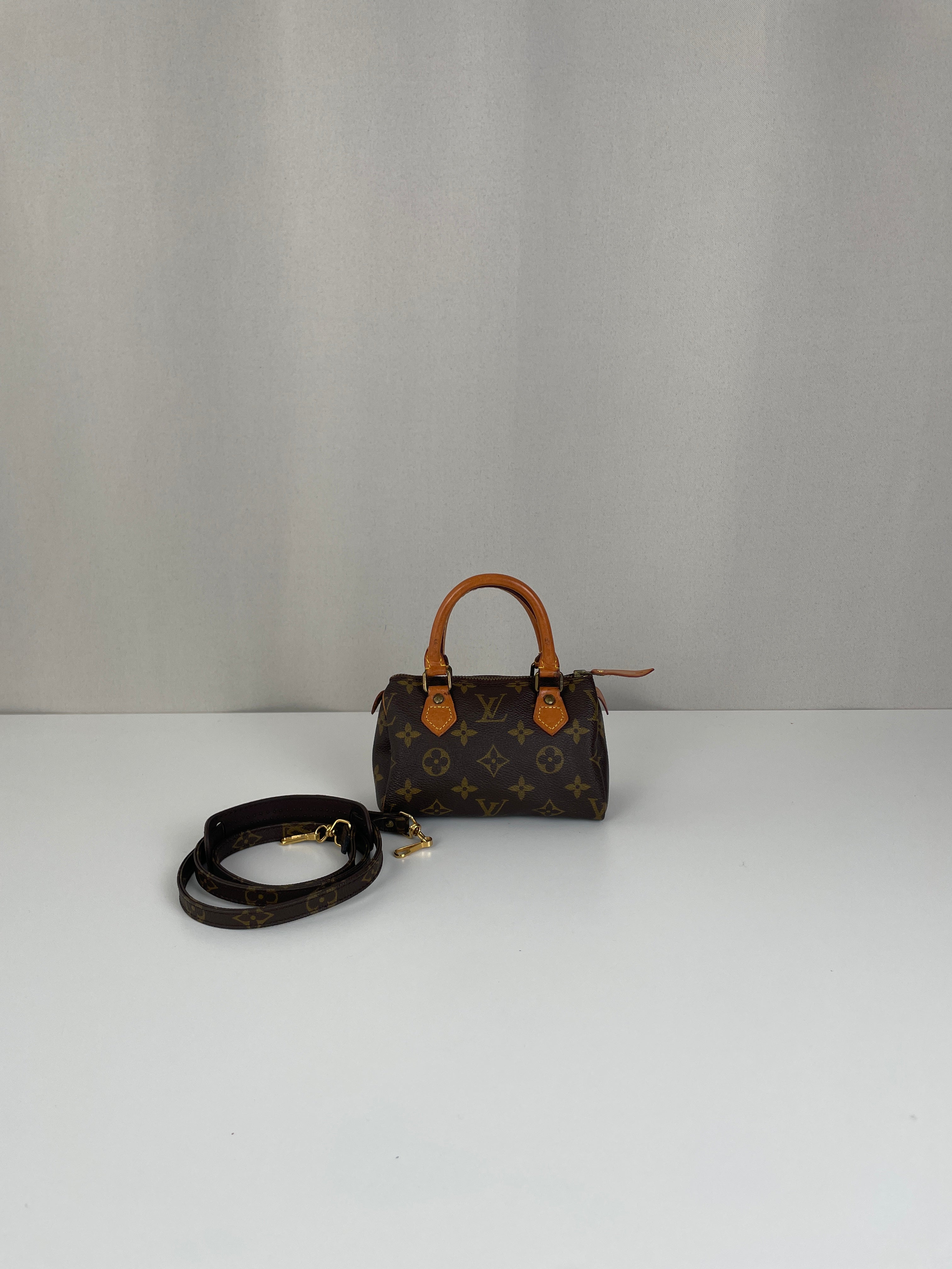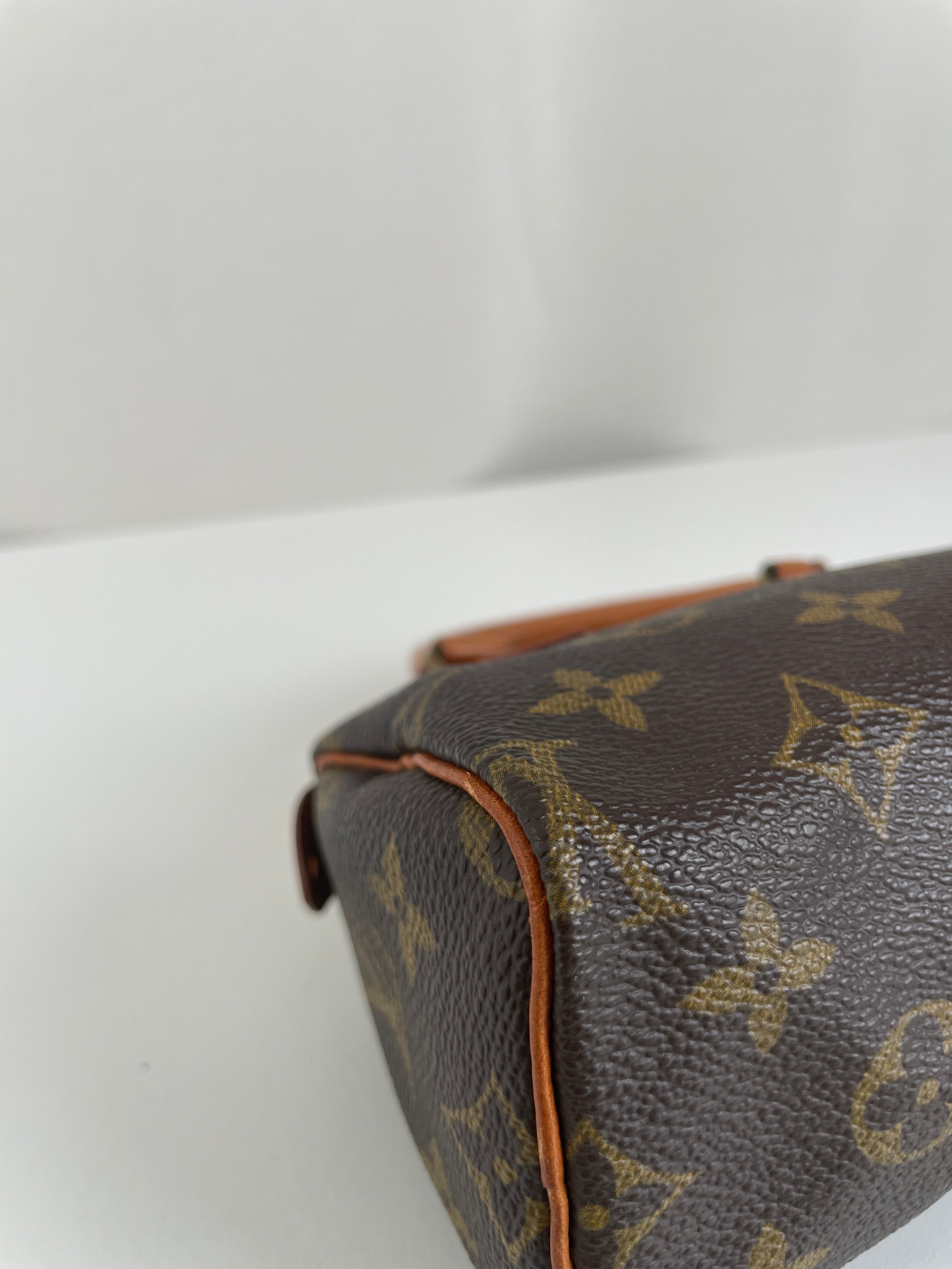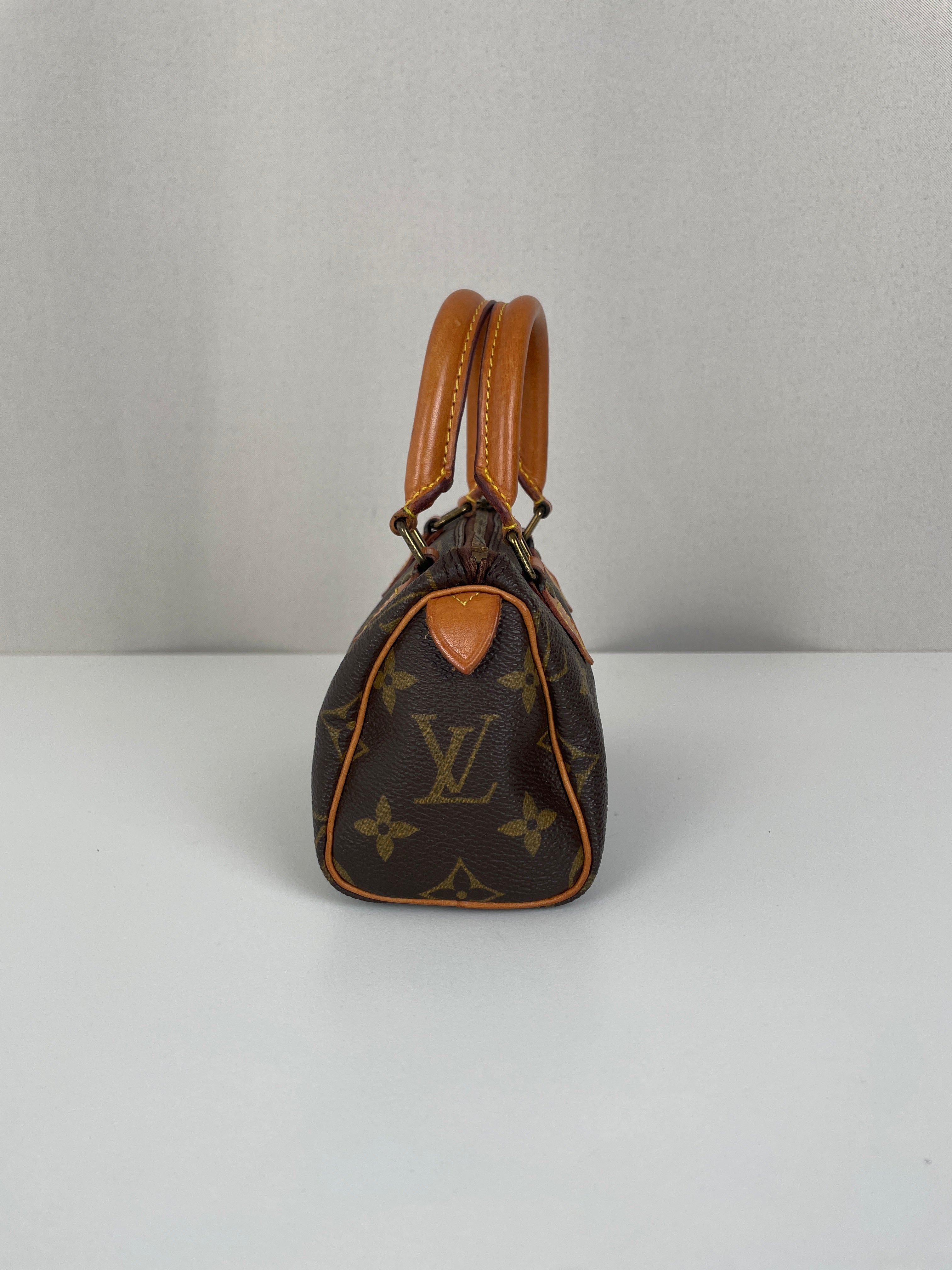 The Louis Vuitton Mini Speedy in Monogram canvas is a cult favorite among collectors and fashion lovers. Compact yet surprisingly functional, it carries your essentials with ease while making a strong style statement. This piece is in beautiful condition overall, ideal for daily wear or as a collector's gem.