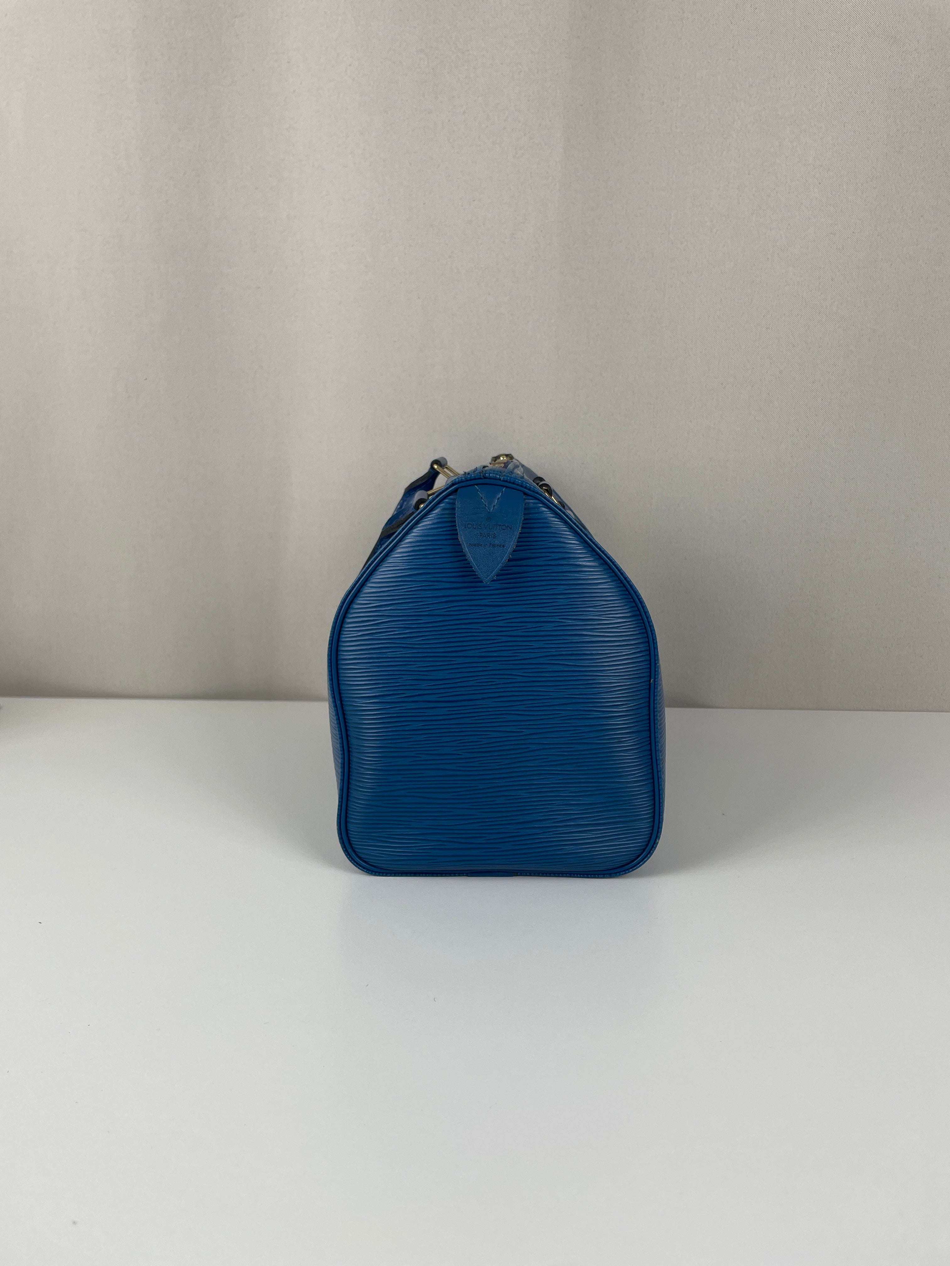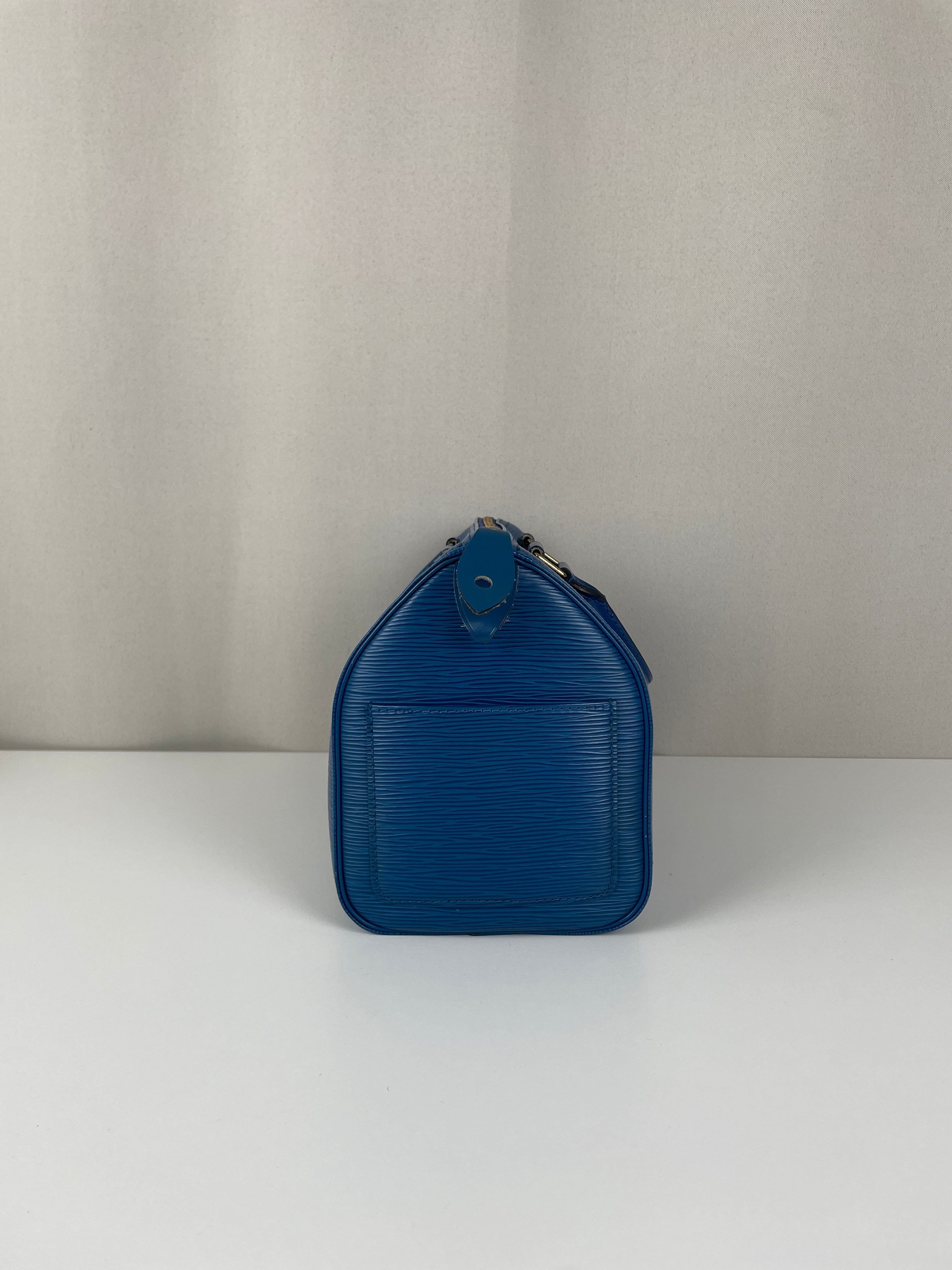 This Louis Vuitton Speedy 25 Epi Leather is in very good condition. The corners are a little bit rubbed and the leather has little traces related to the use of the bag. The interior is in good condition.