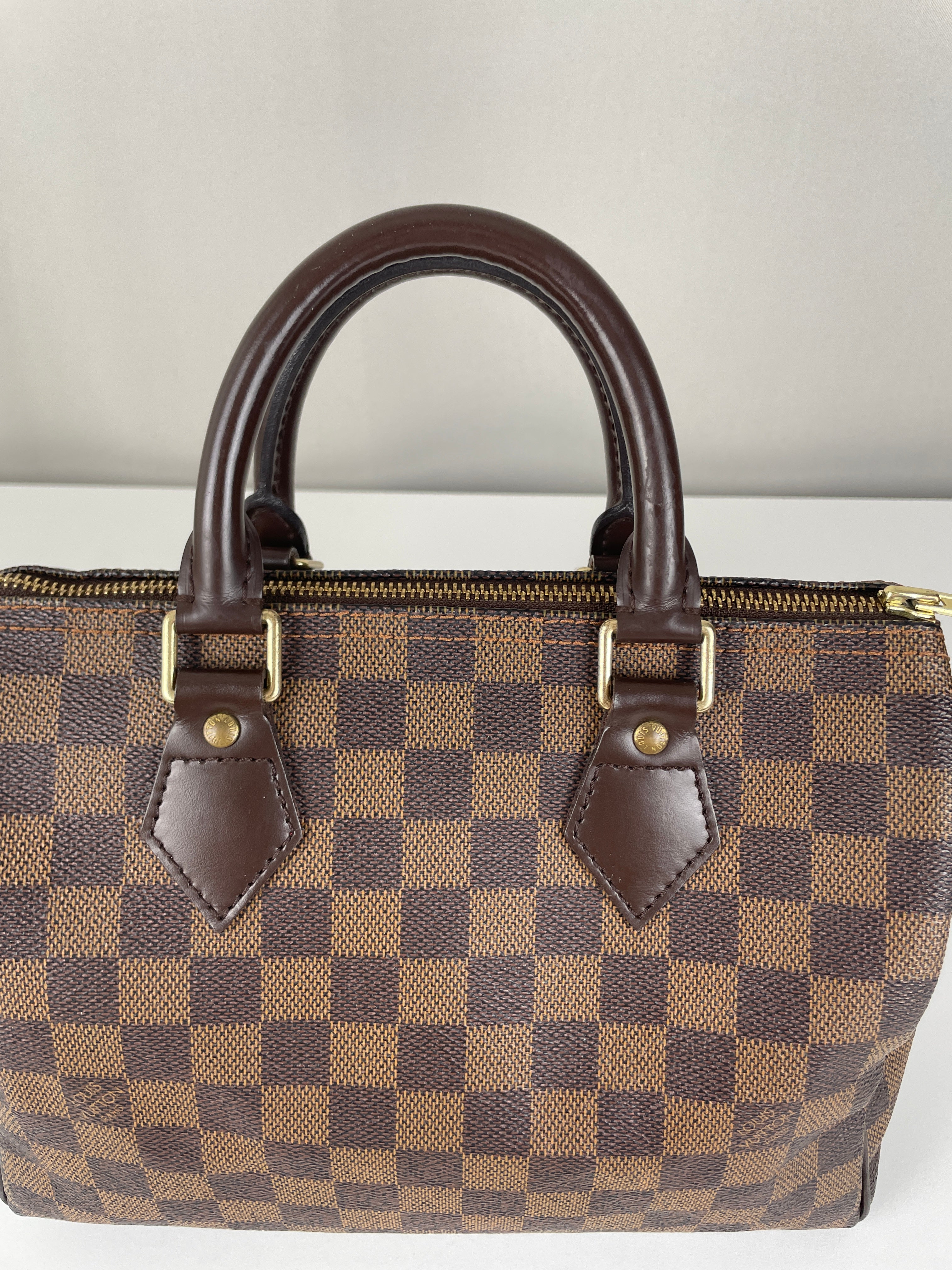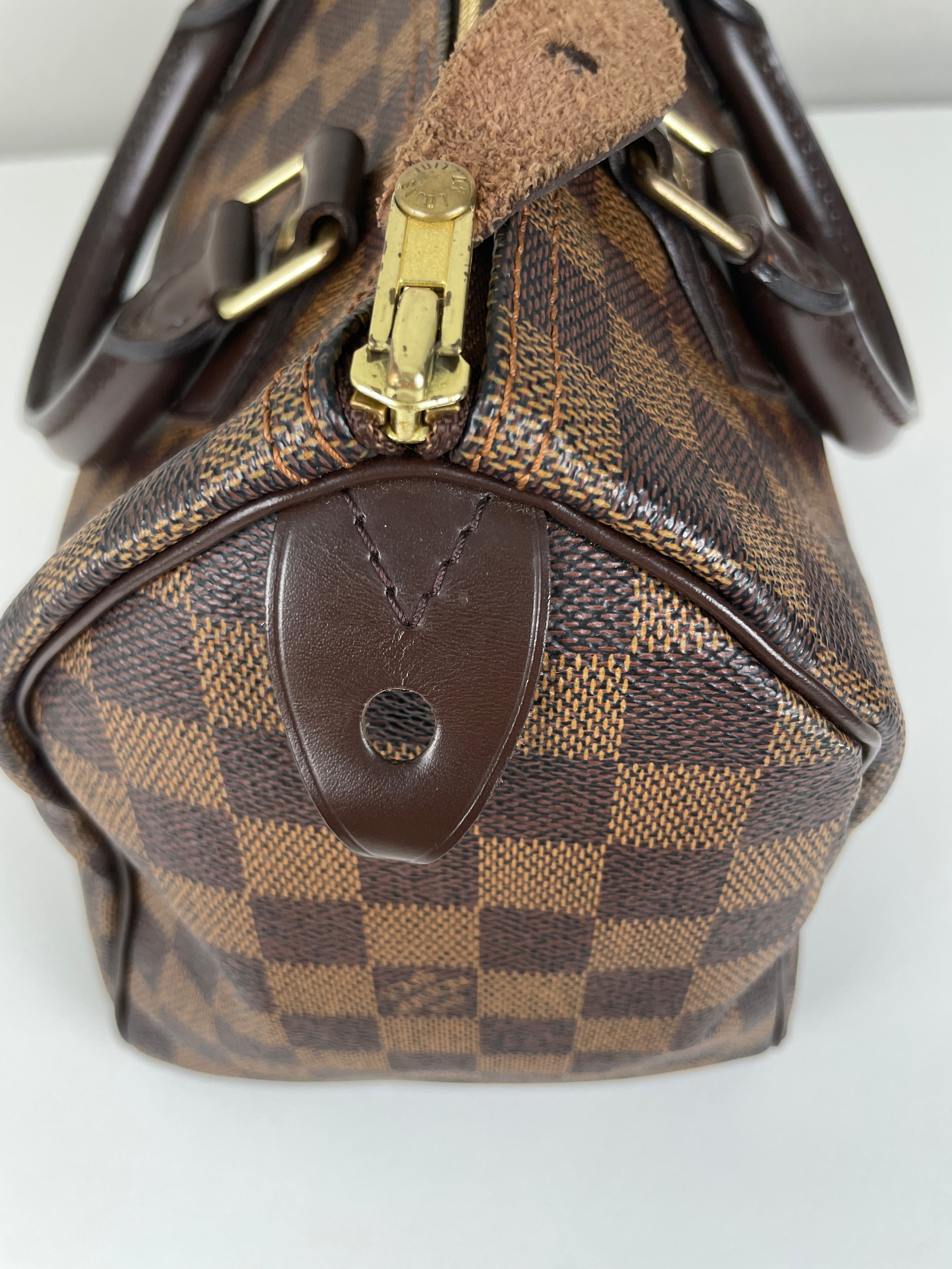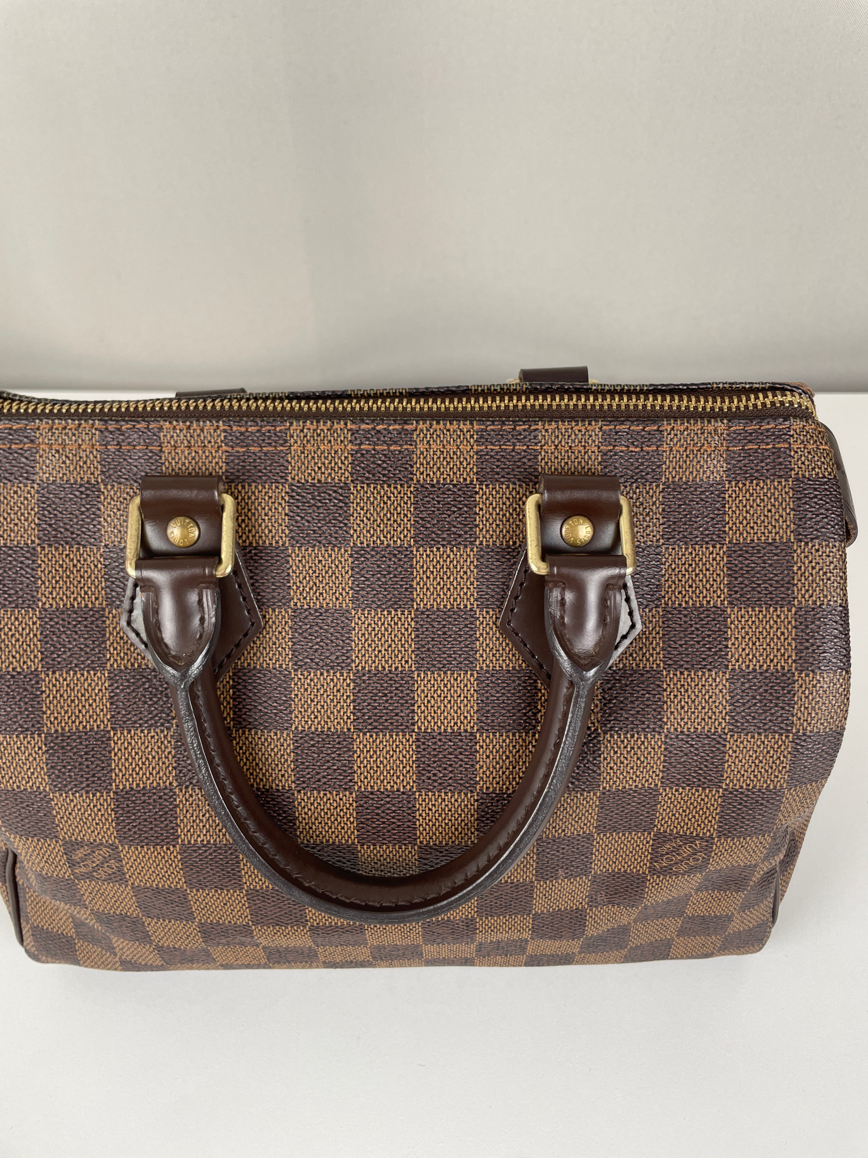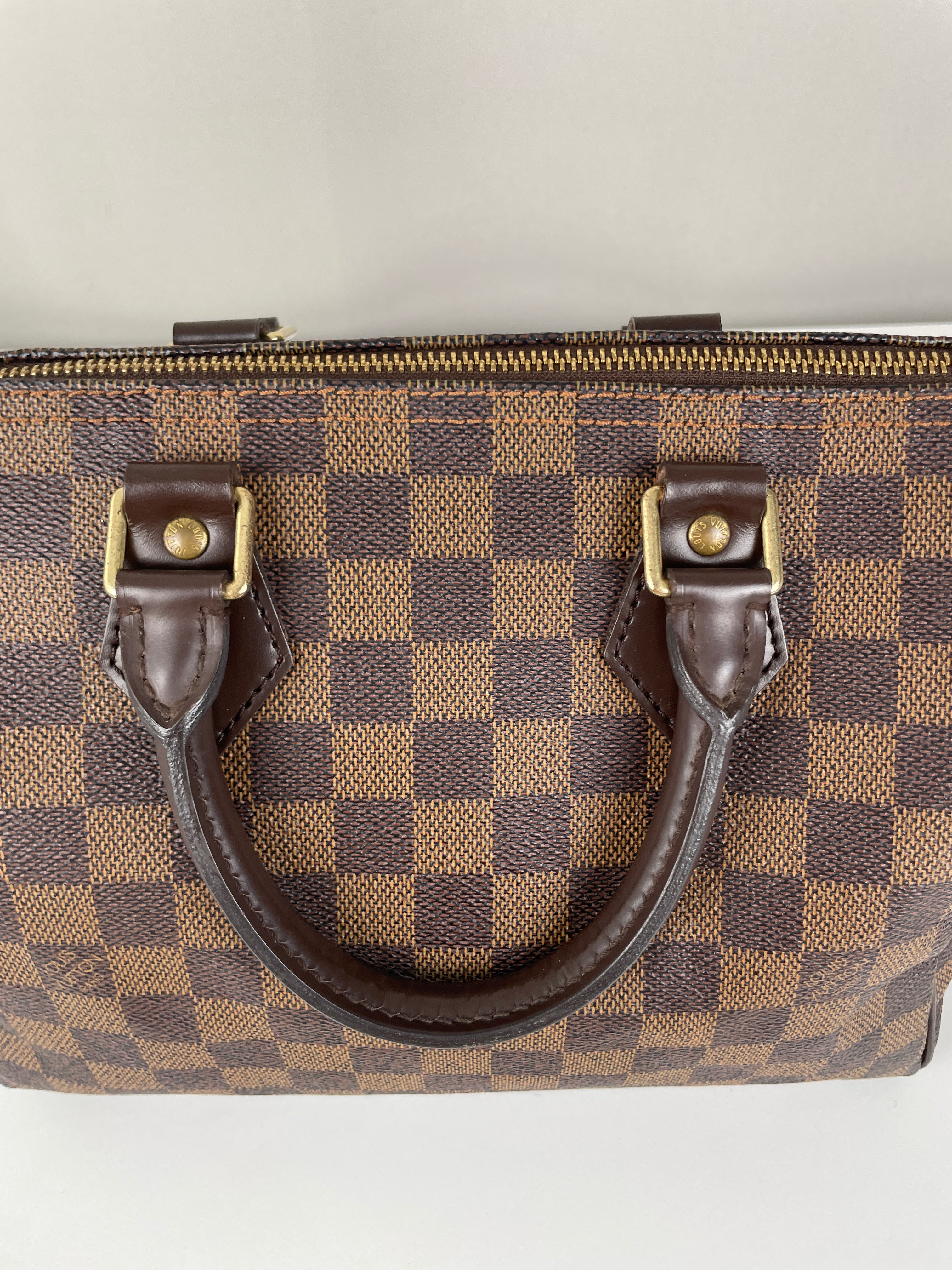 This Louis Vuitton Speedy 25 damier ebene brown is very good condition. The canvas and the corners are in very good condition. The handles are in perfect condition.The interior is in very good condition and the hardware is a bit rubbed.