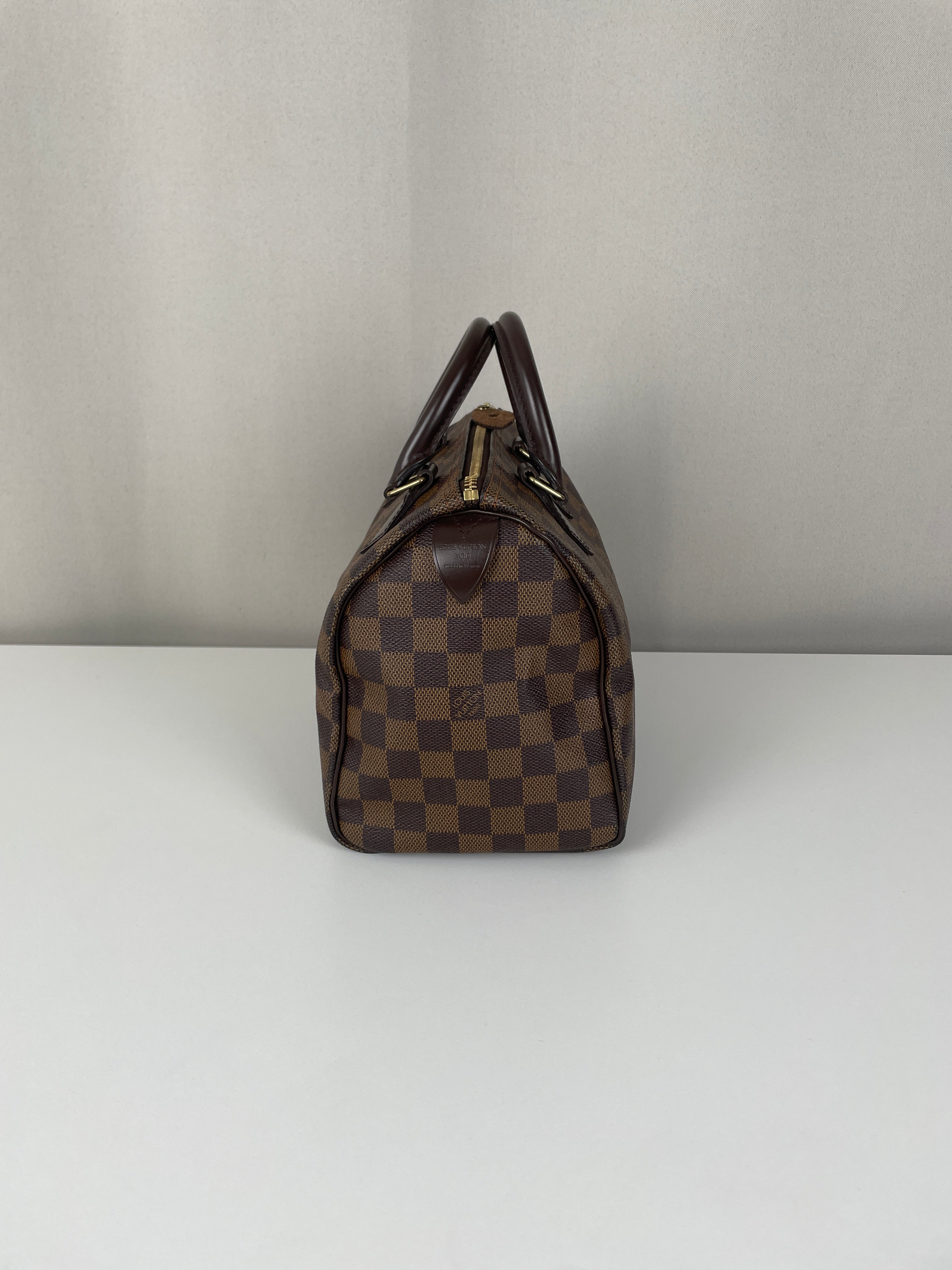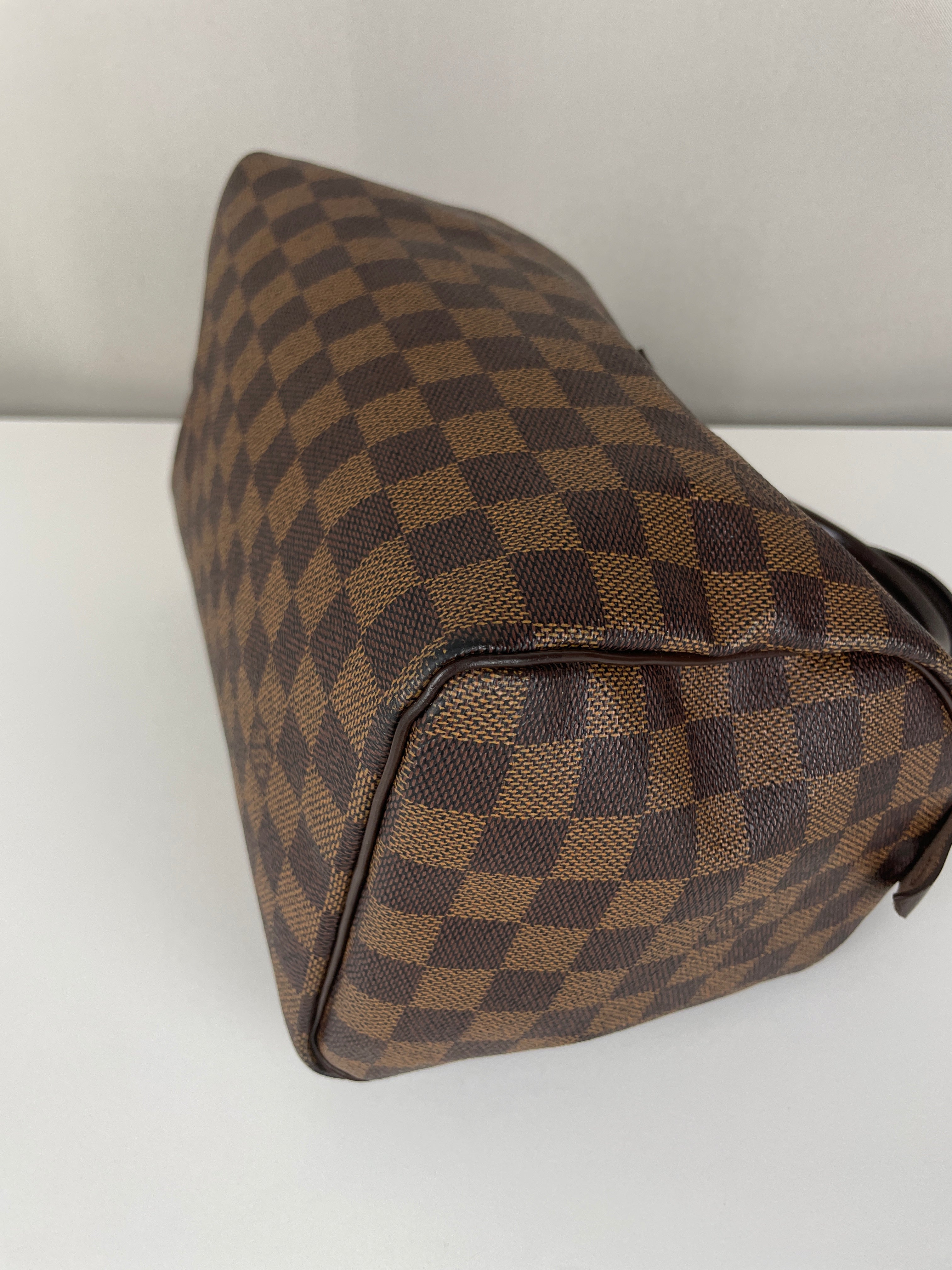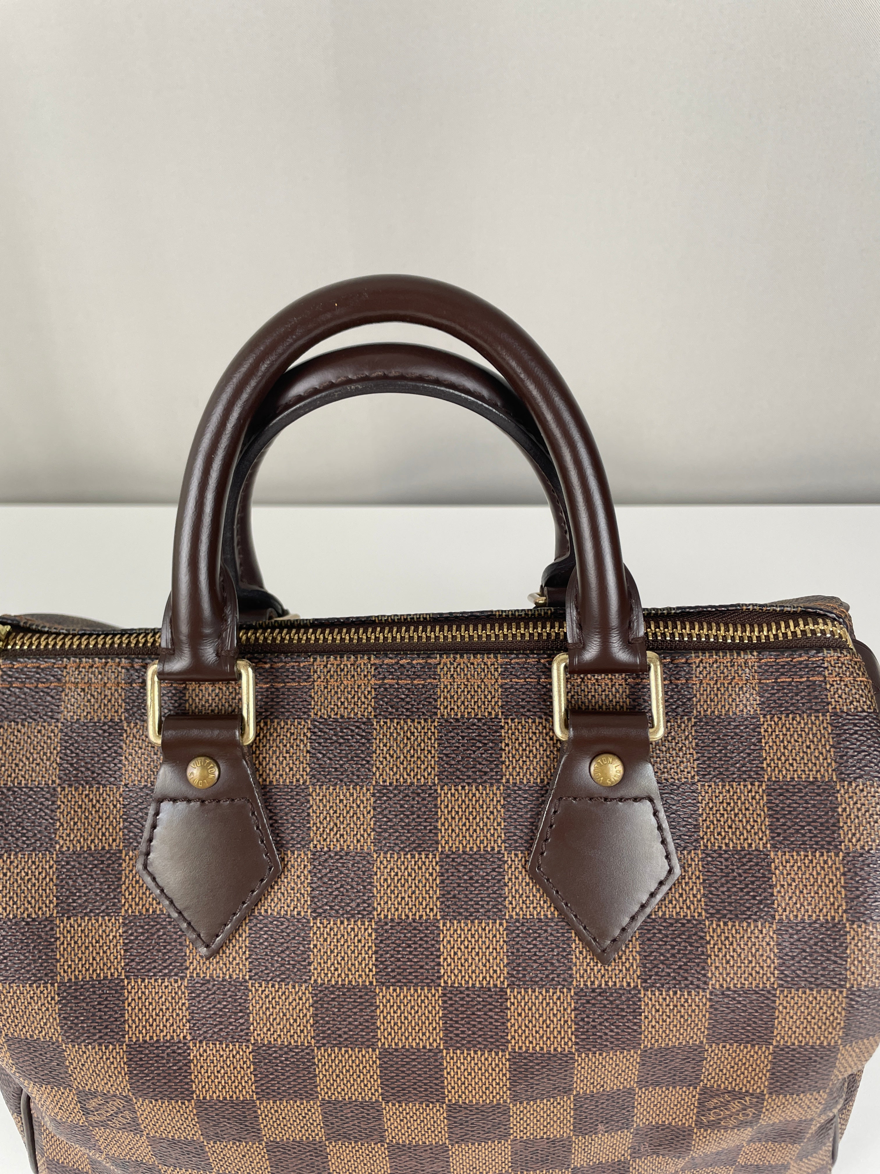 This Louis Vuitton Speedy 25 damier ebene brown is very good condition. The canvas and the corners are in very good condition. The handles are in perfect condition.The interior is in very good condition and the hardware is a bit rubbed.