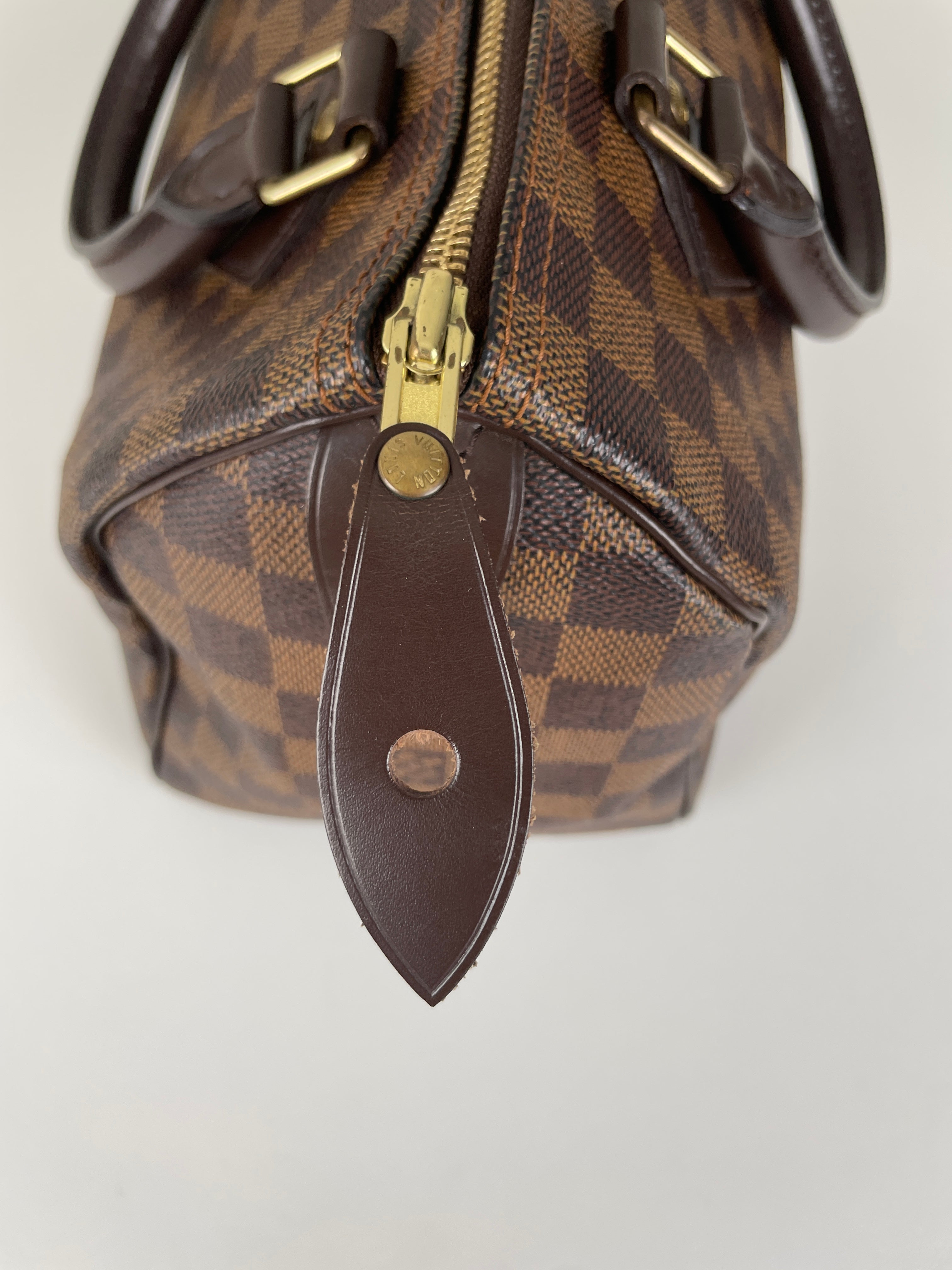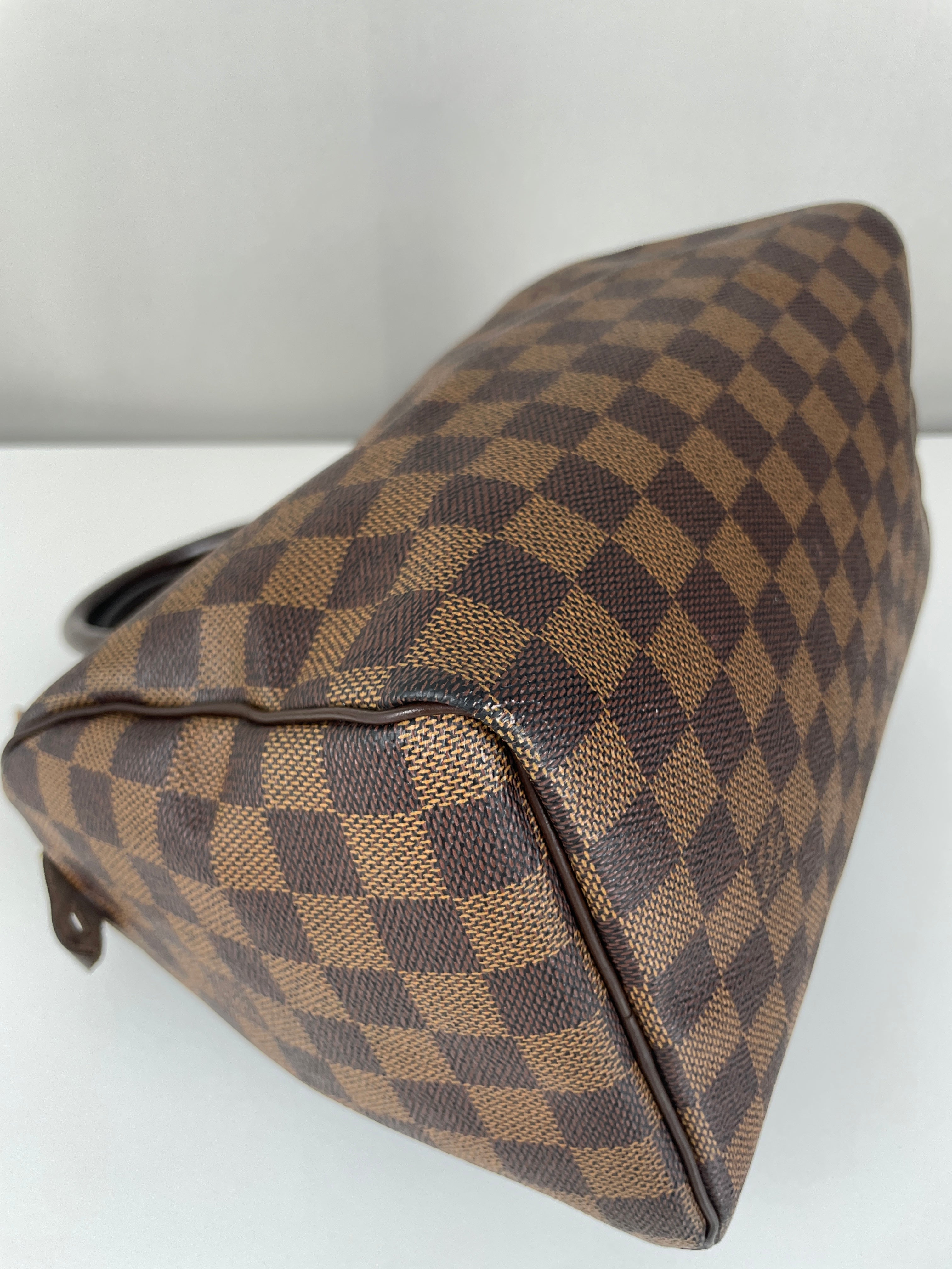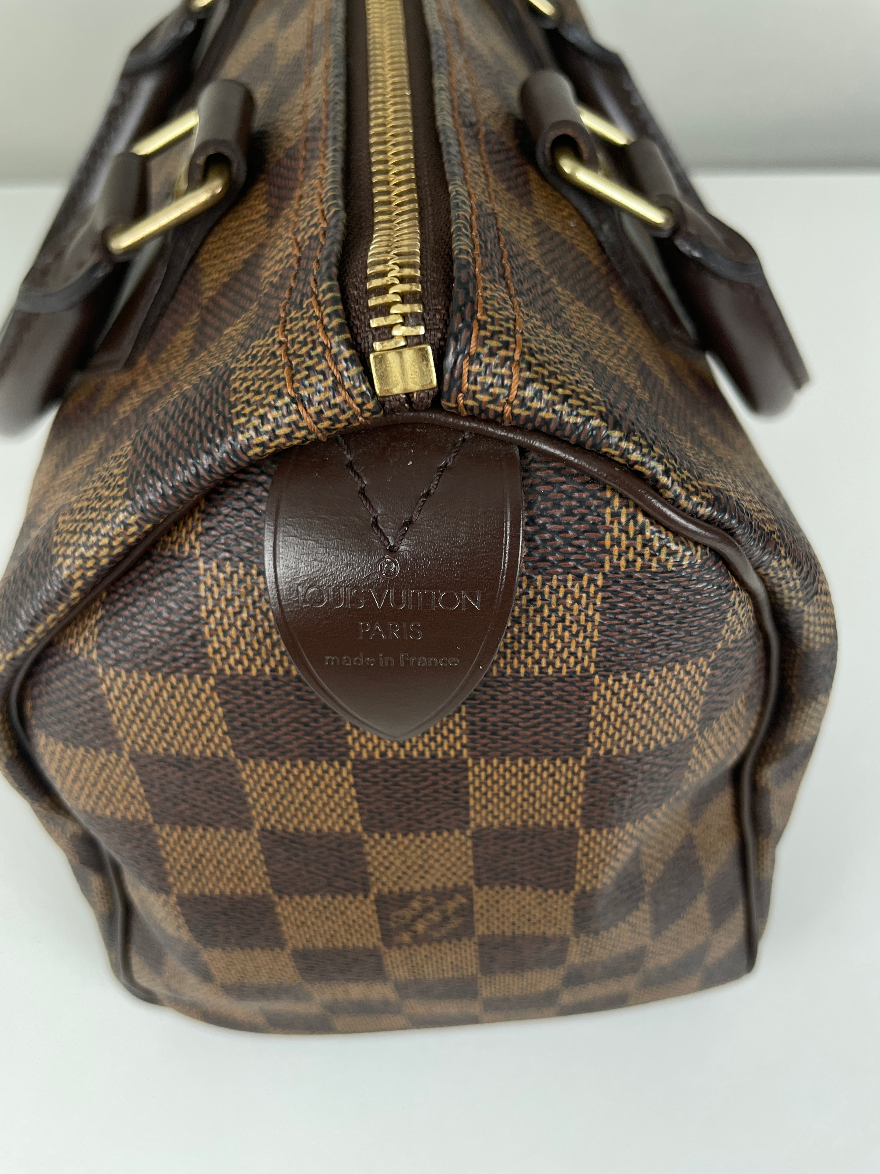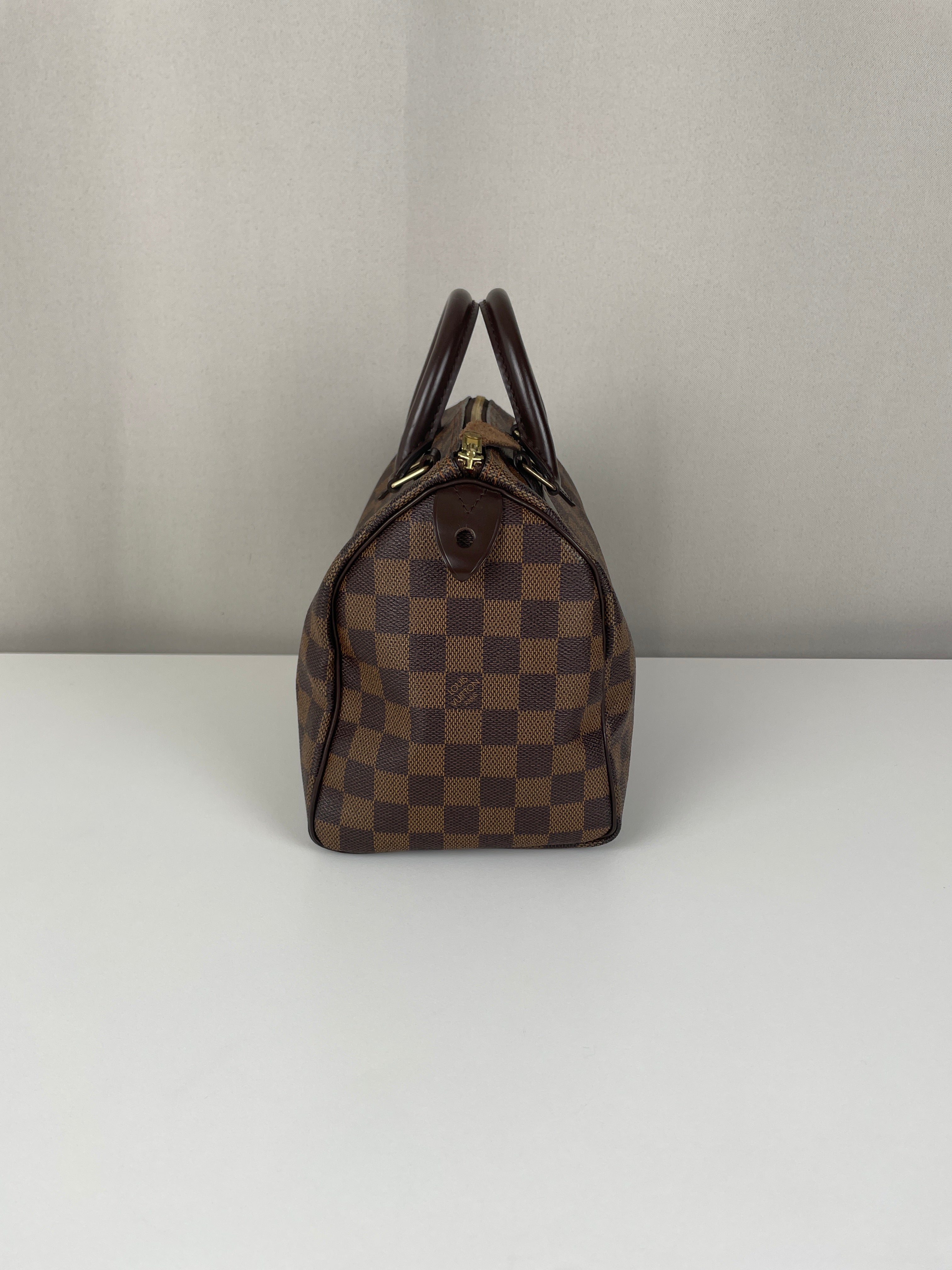 This Louis Vuitton Speedy 25 damier ebene brown is very good condition. The canvas and the corners are in very good condition. The handles are in perfect condition.The interior is in very good condition and the hardware is a bit rubbed.