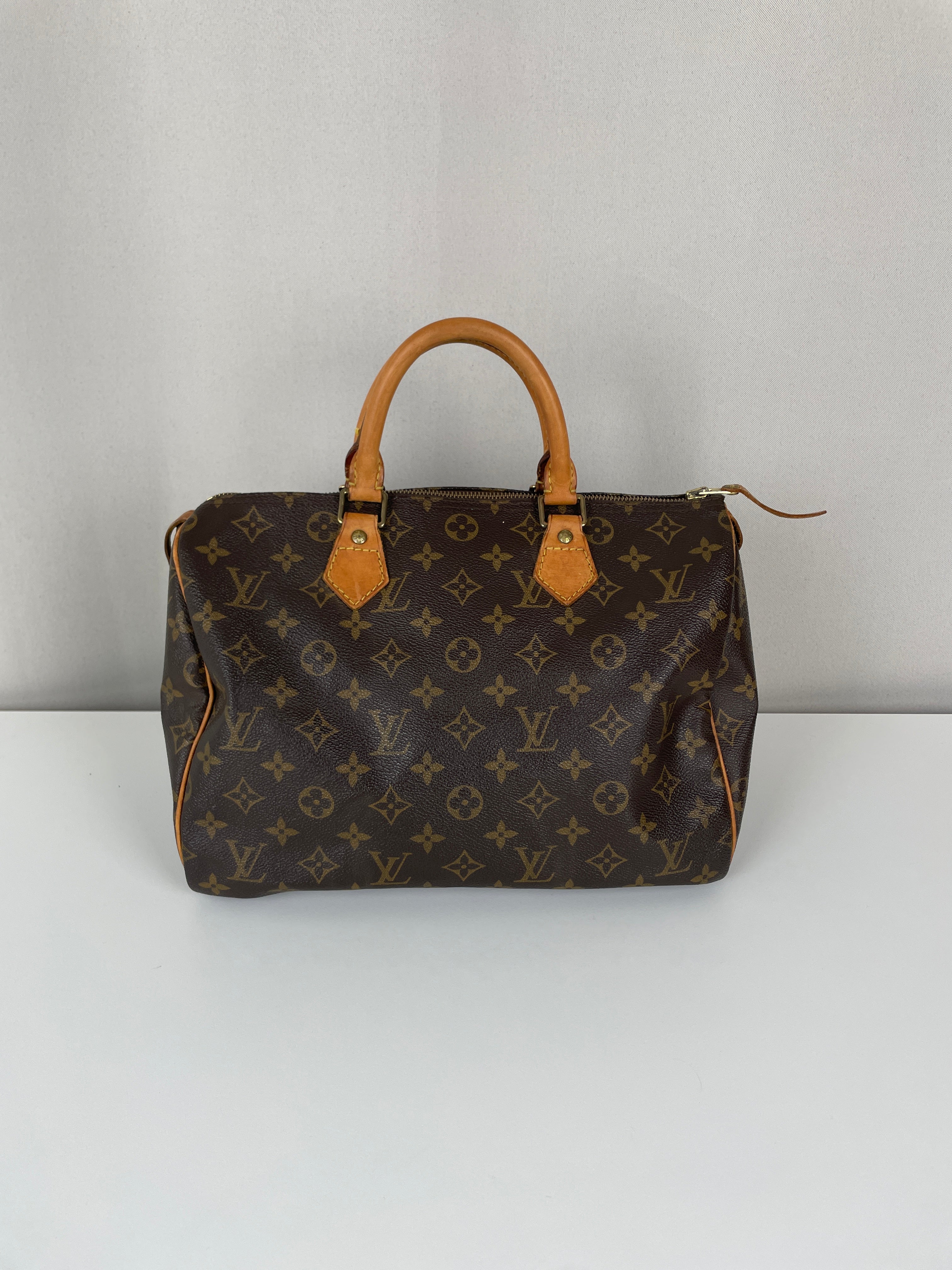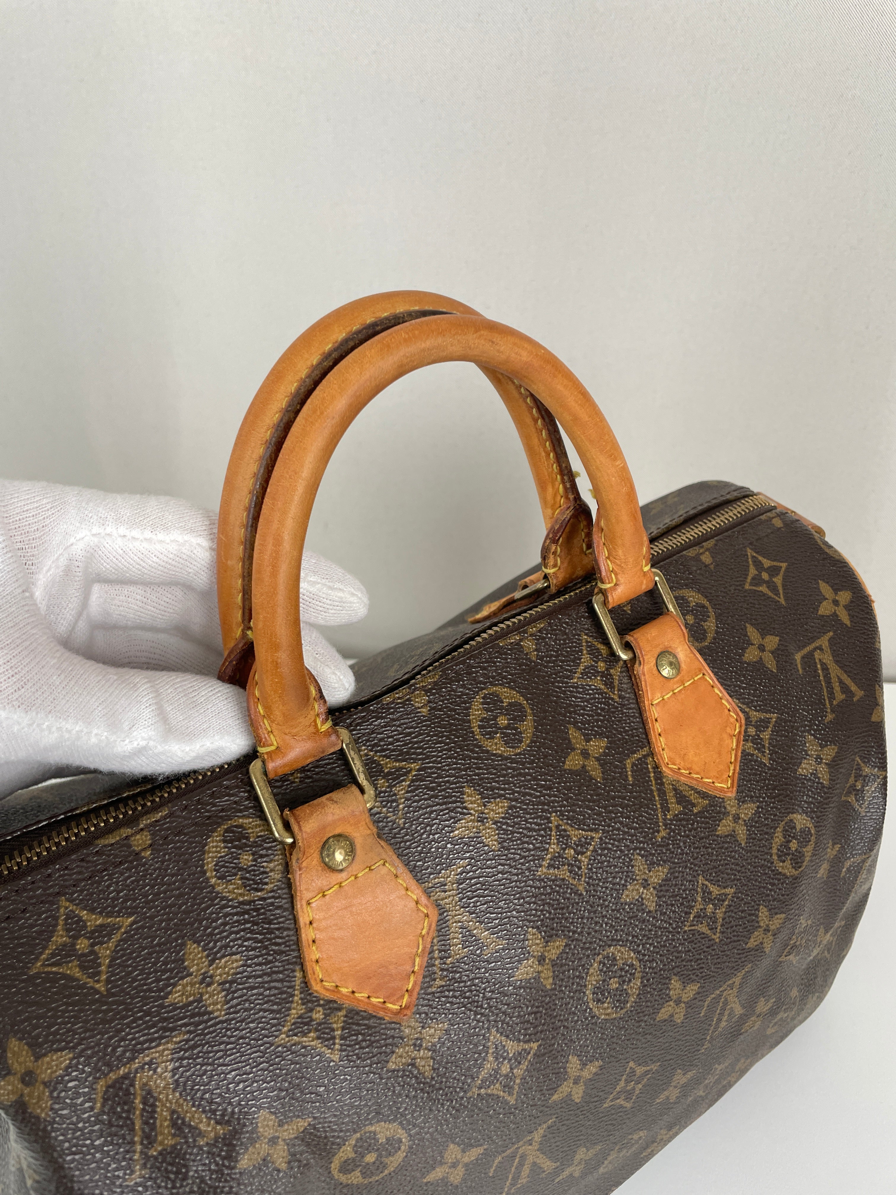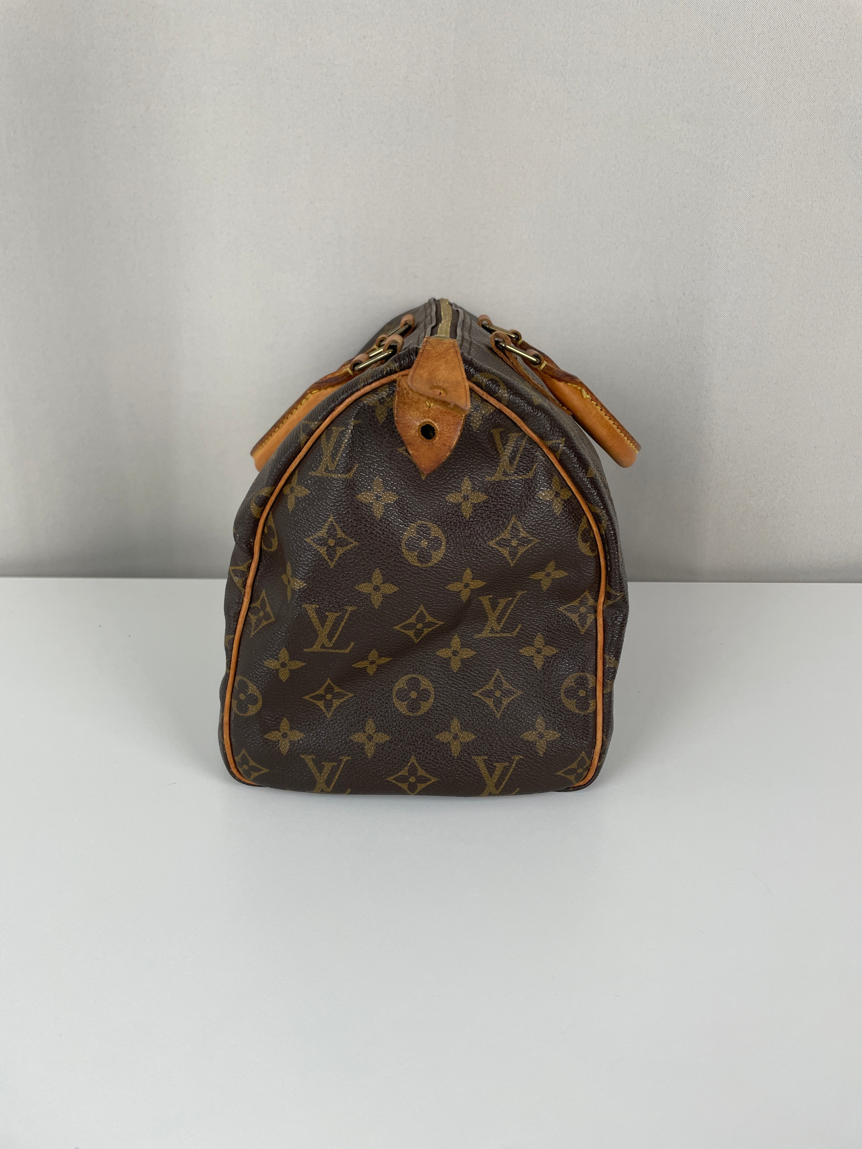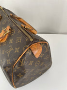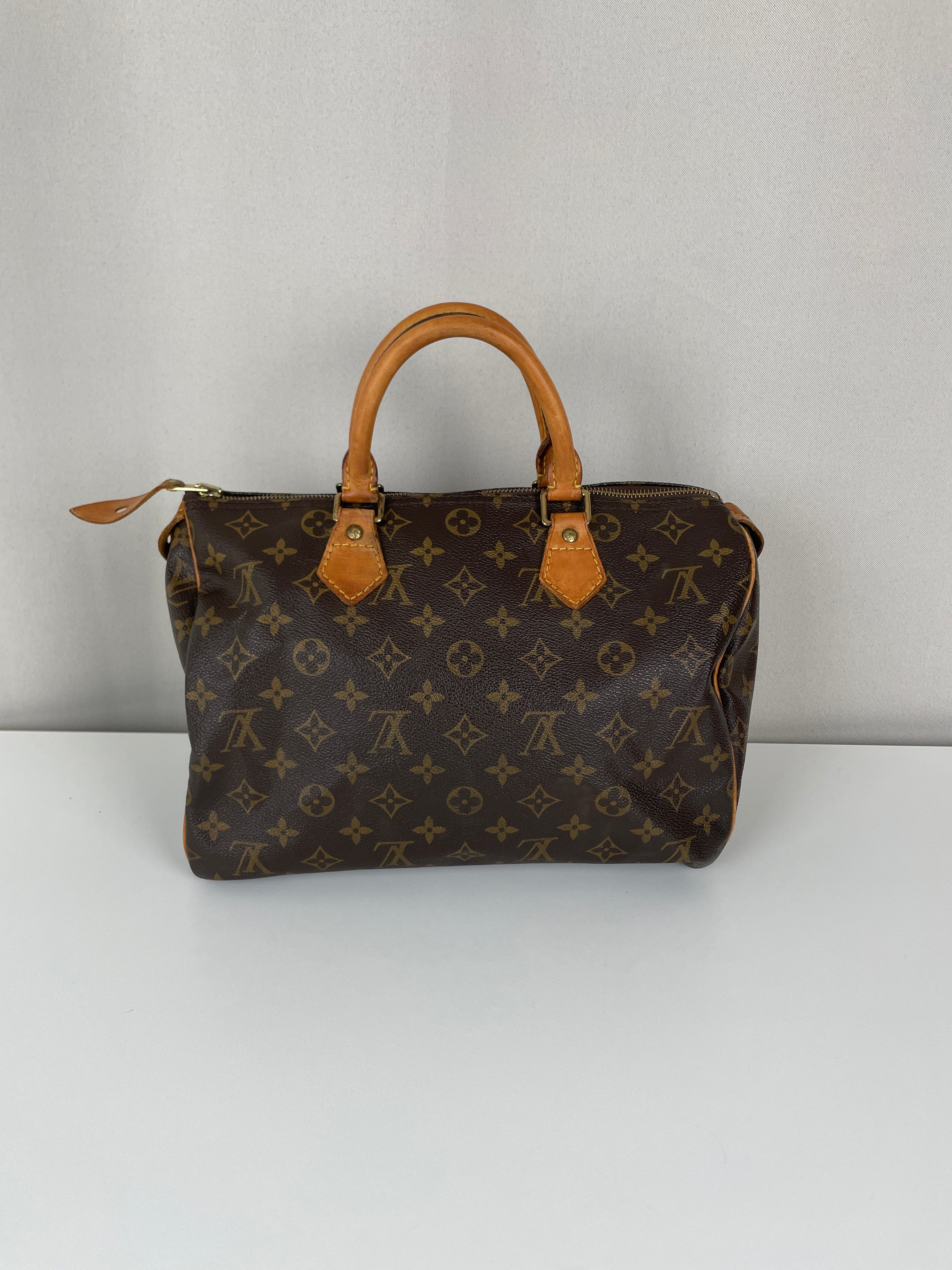 The Louis Vuitton Speedy 30 in Monogram canvas is an icon of luxury. Lightweight, spacious, and durable, it is ideal for everyday wear. This vintage piece remains beautifully preserved, with natural leather patina adding unique charm. A must-have for any luxury handbag collection.