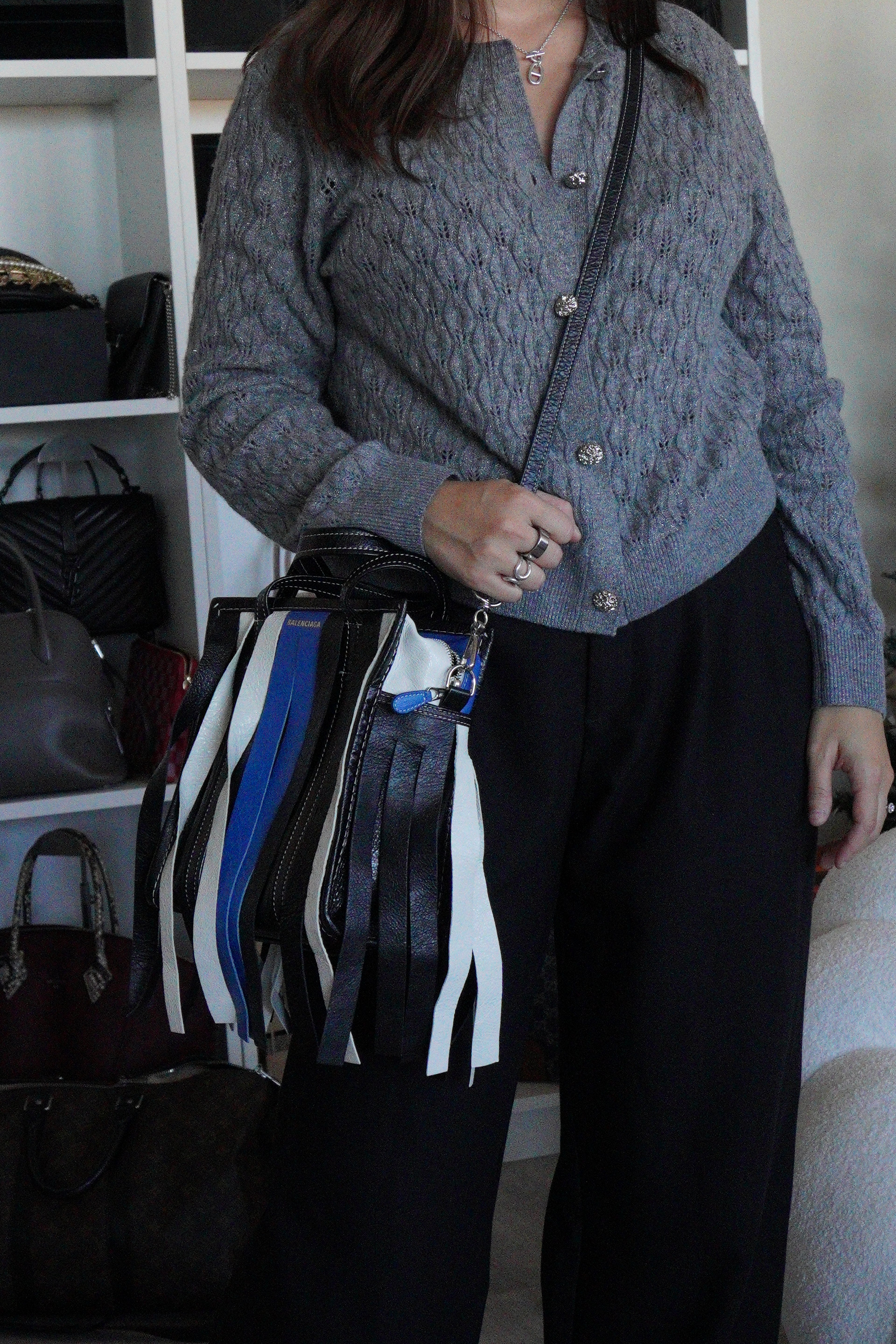 Balenciaga fringed Bazar bag Leather Black White and Blue