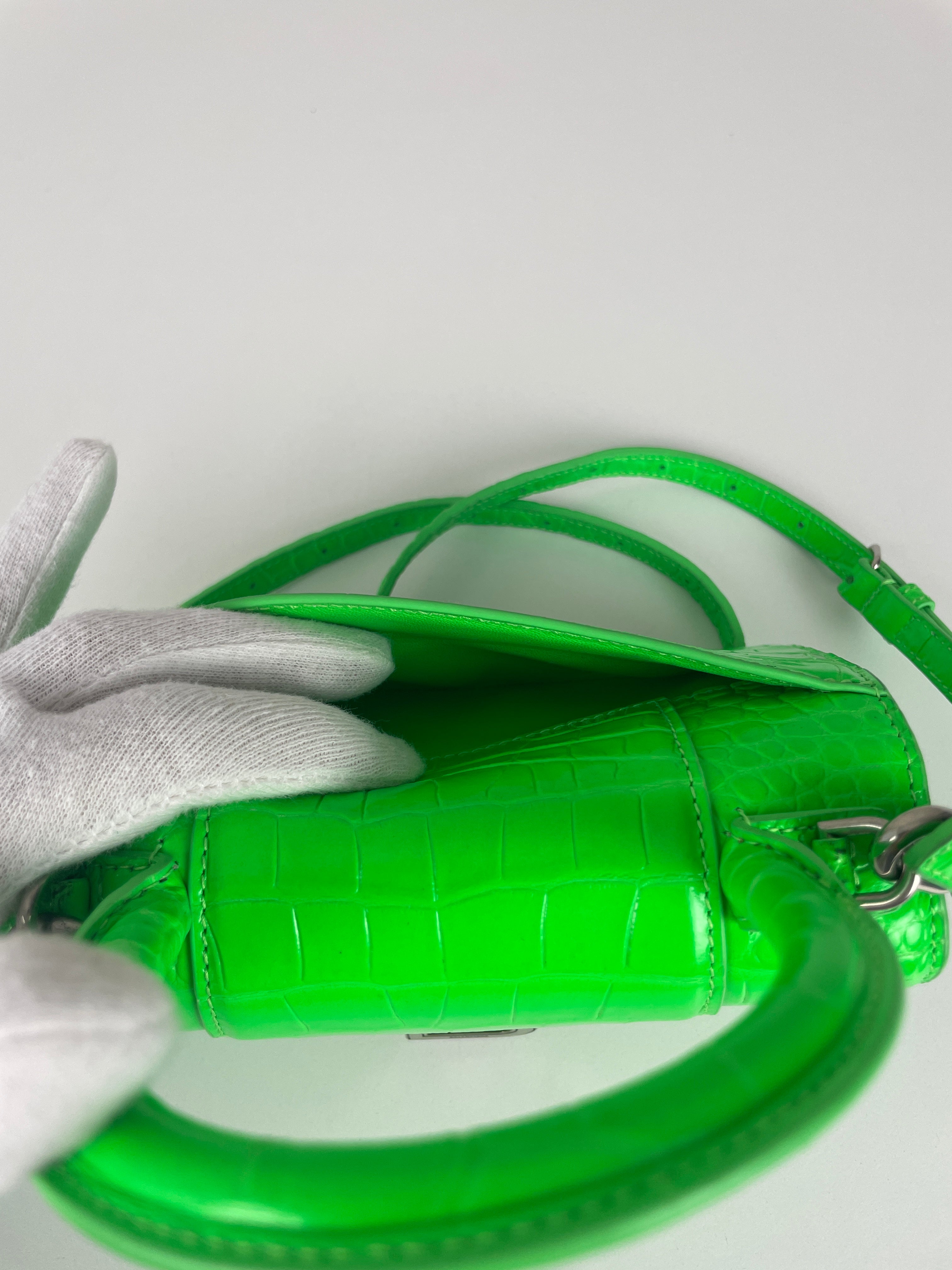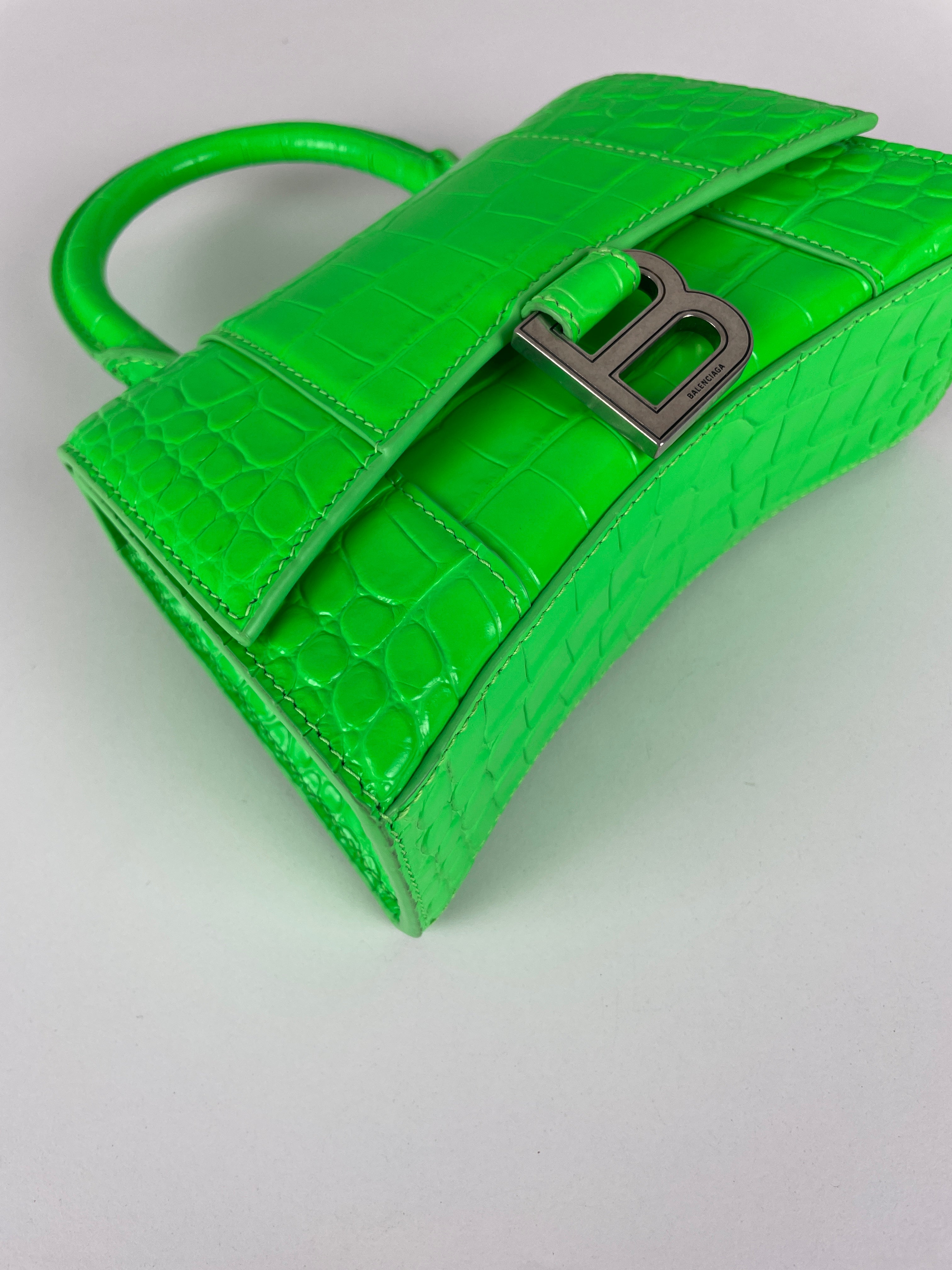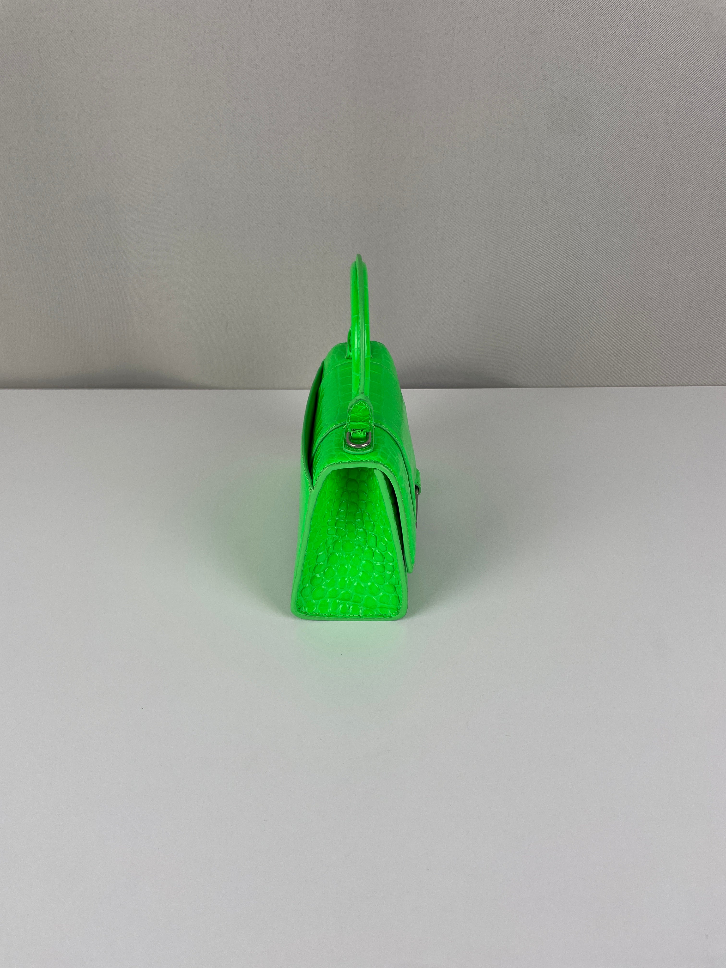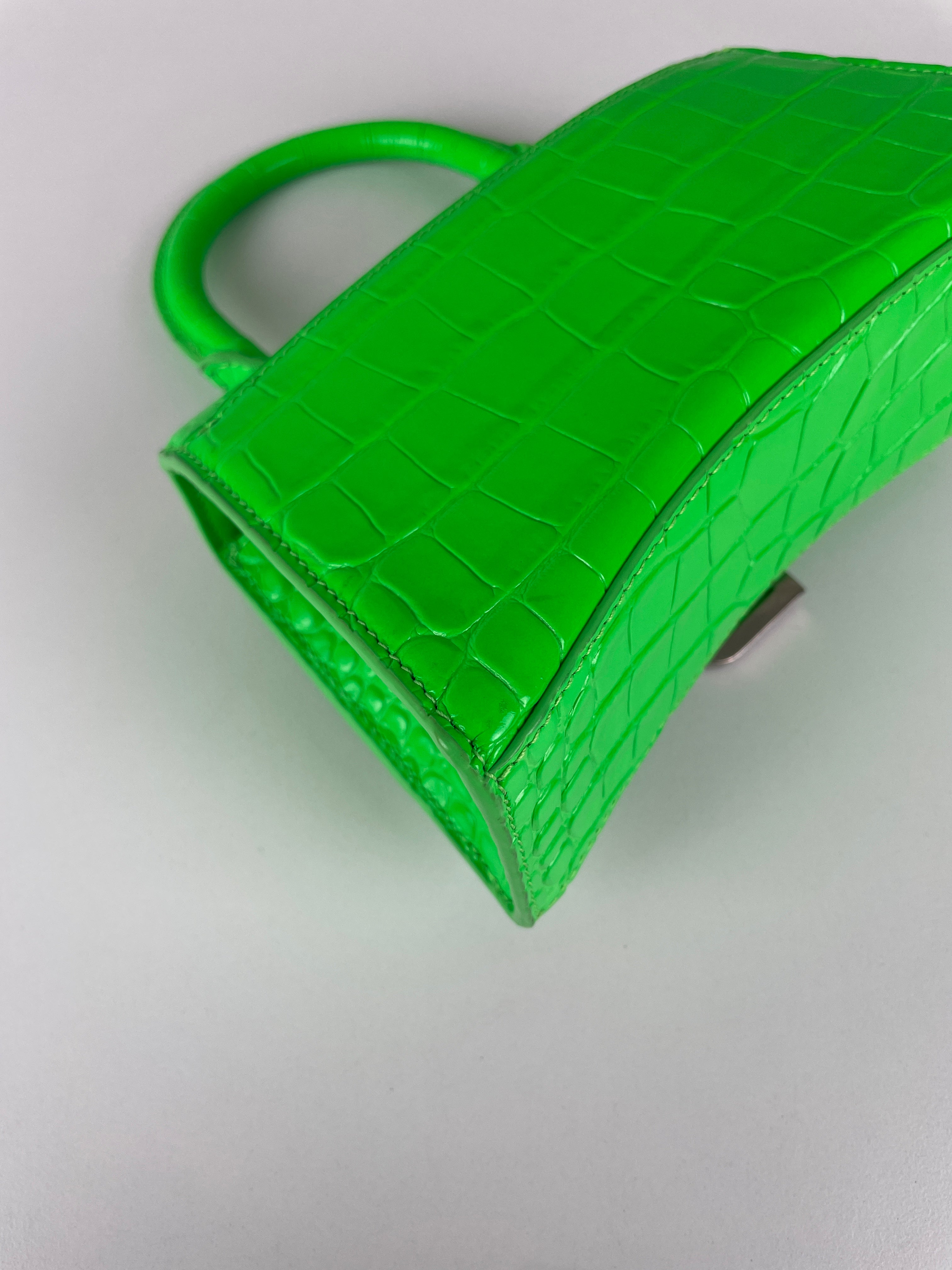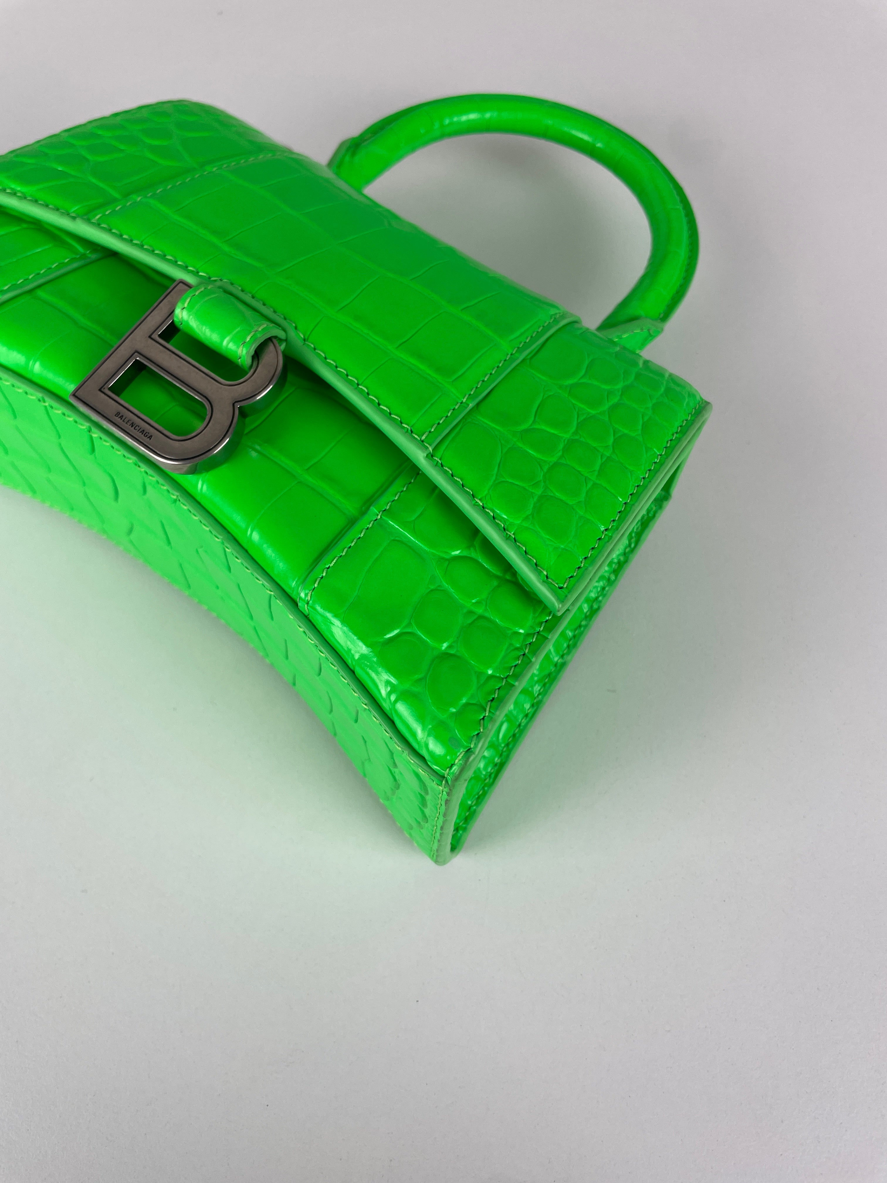 Balenciaga Hourglass XS neon green crocodile embossed leather bag