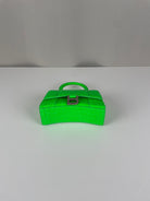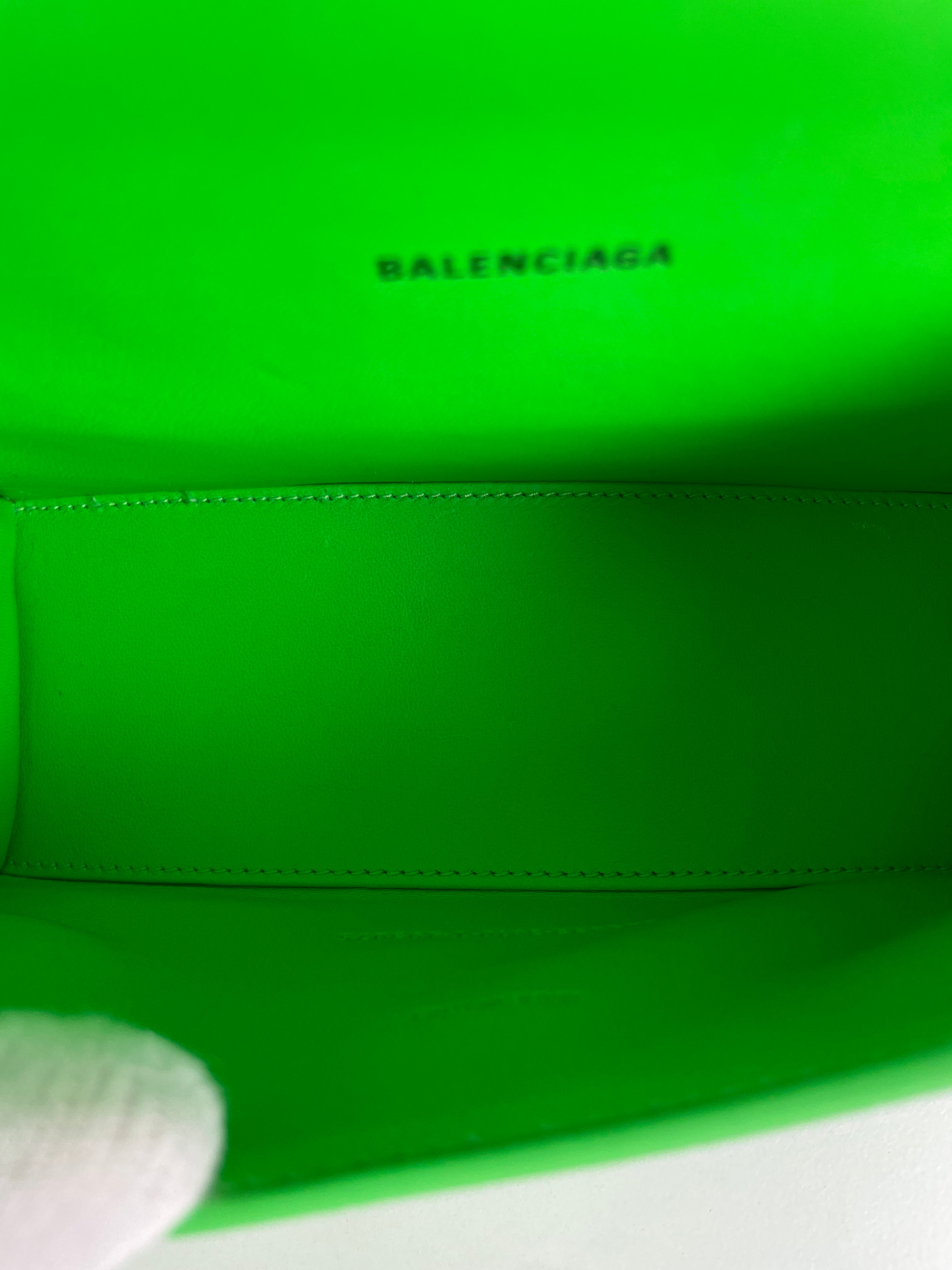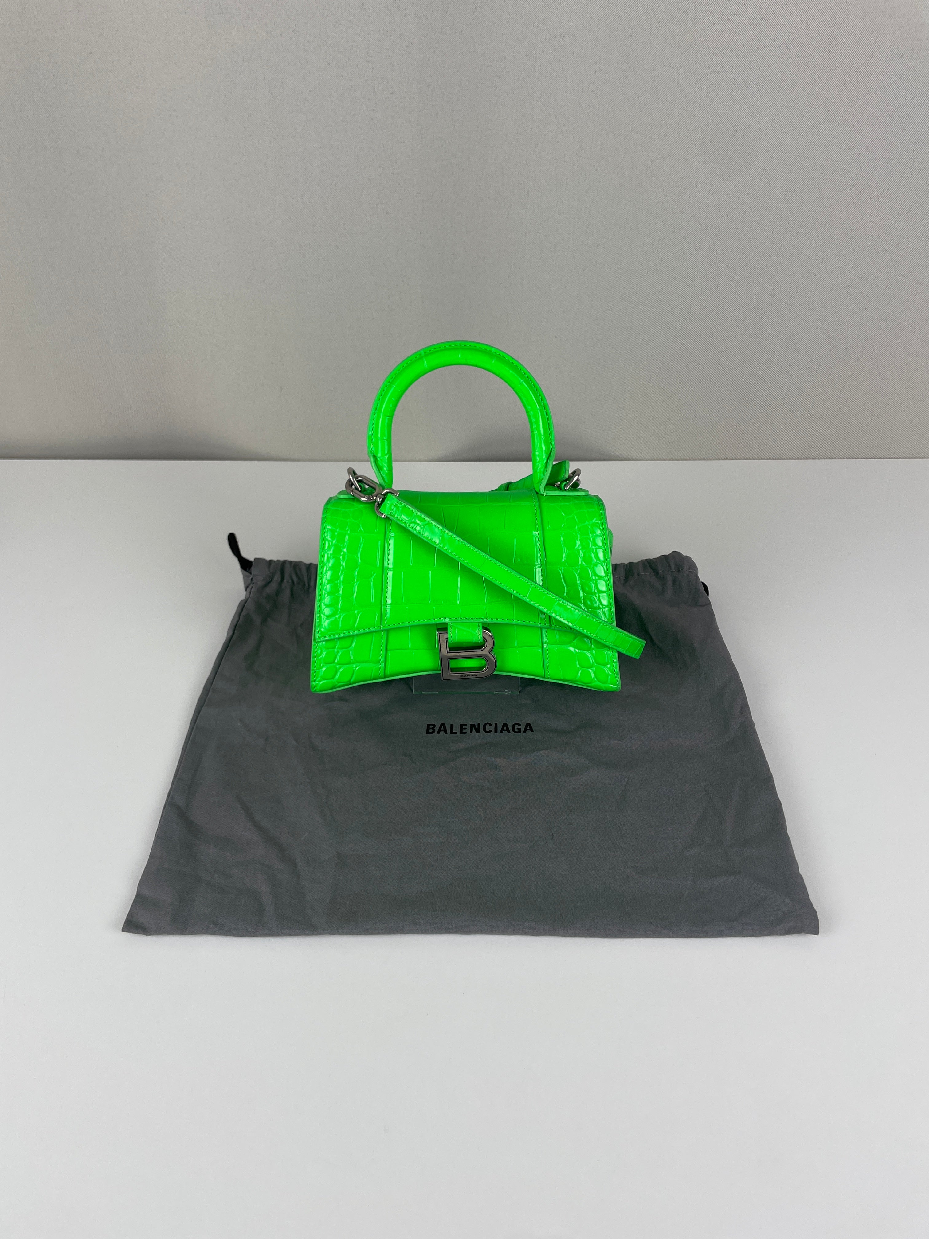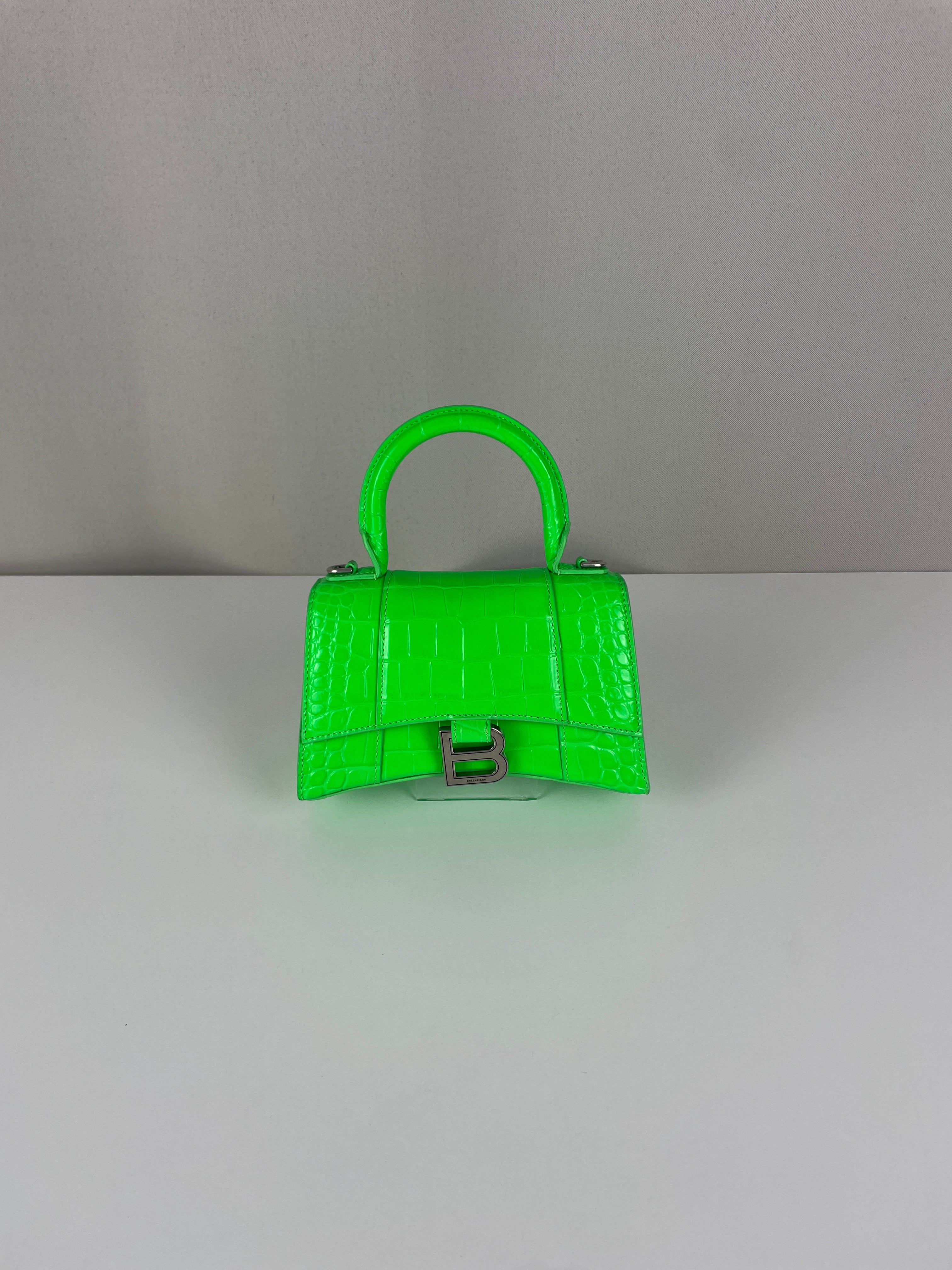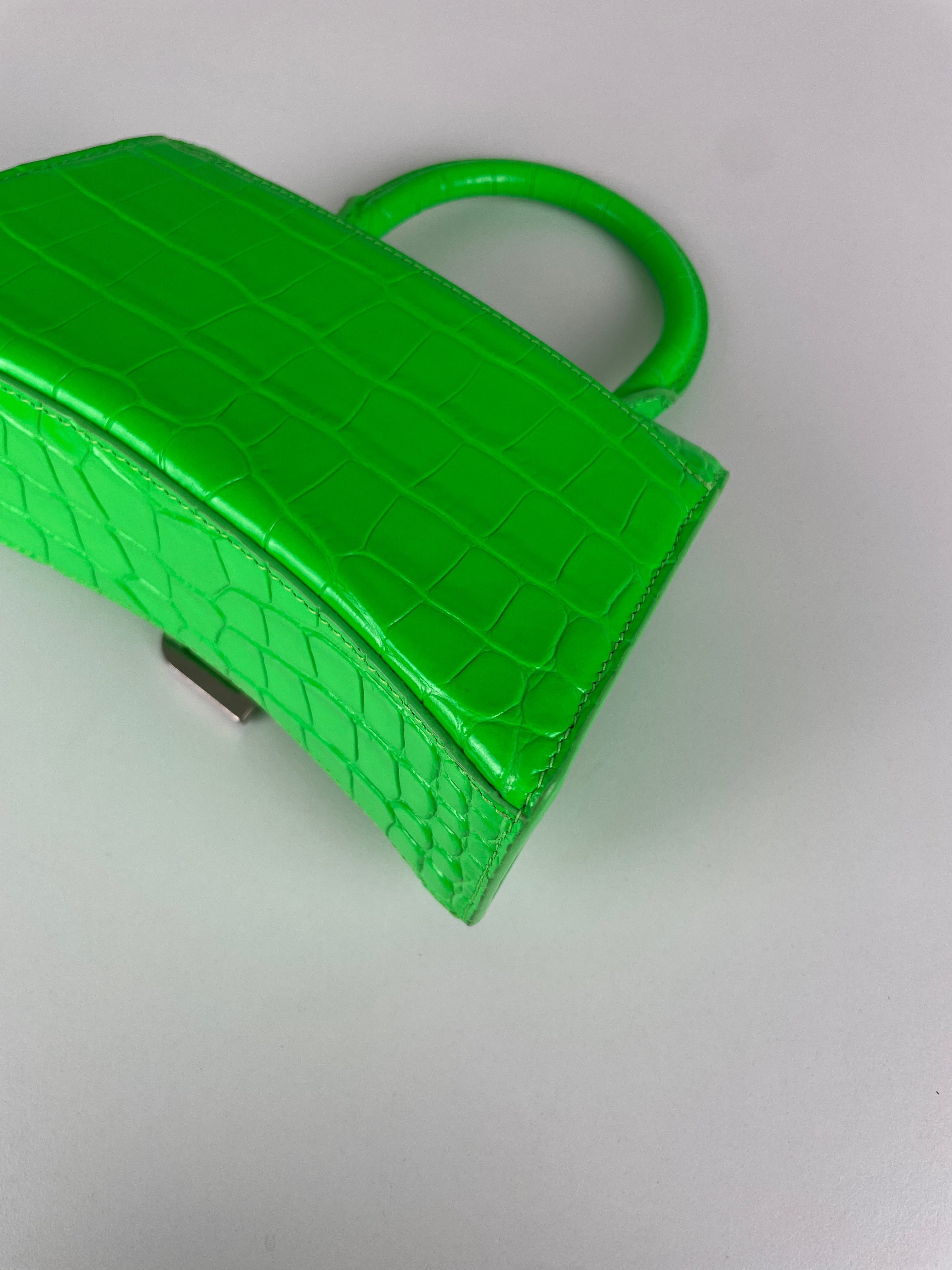 Balenciaga Hourglass XS neon green crocodile embossed leather bag
