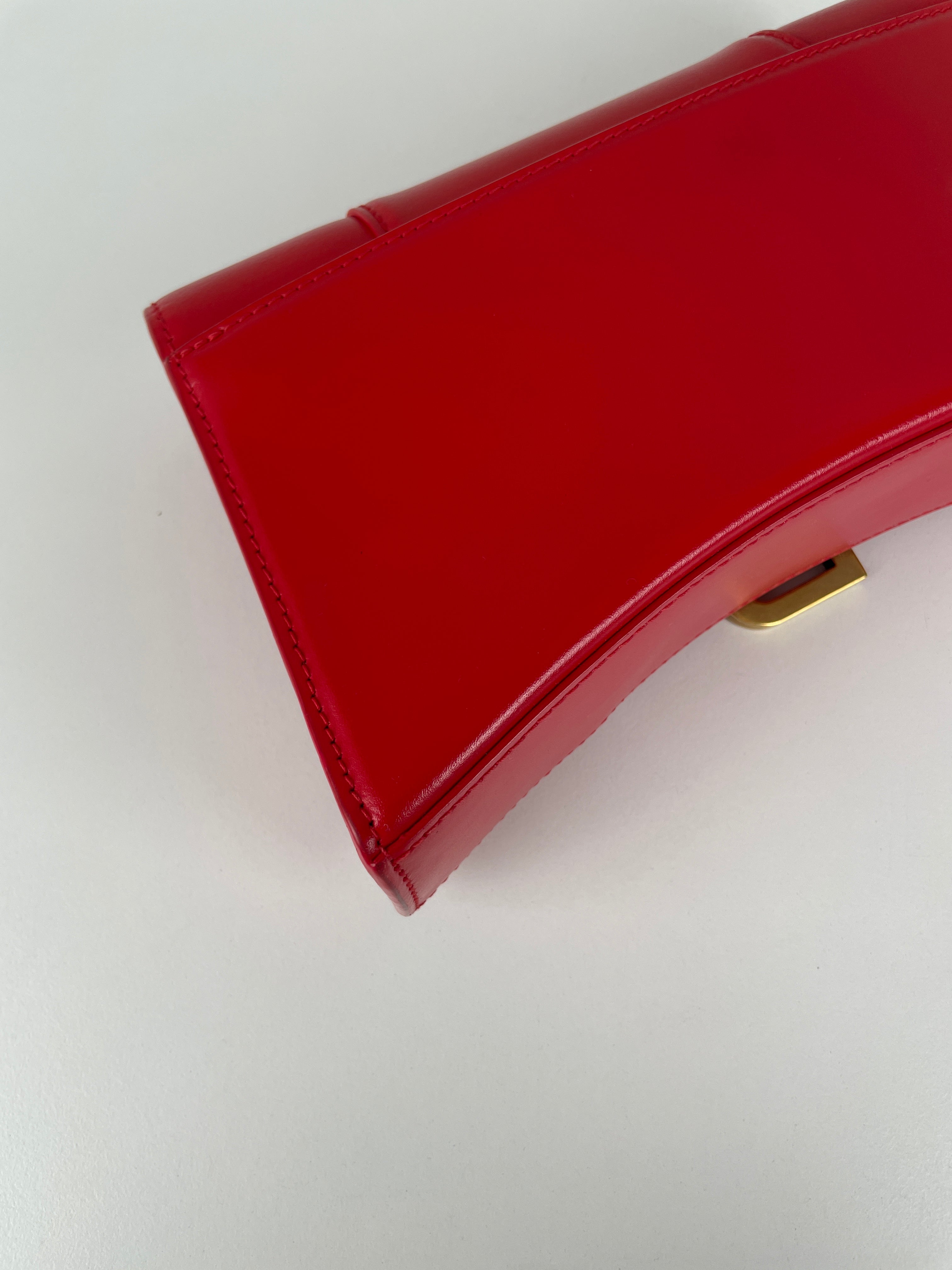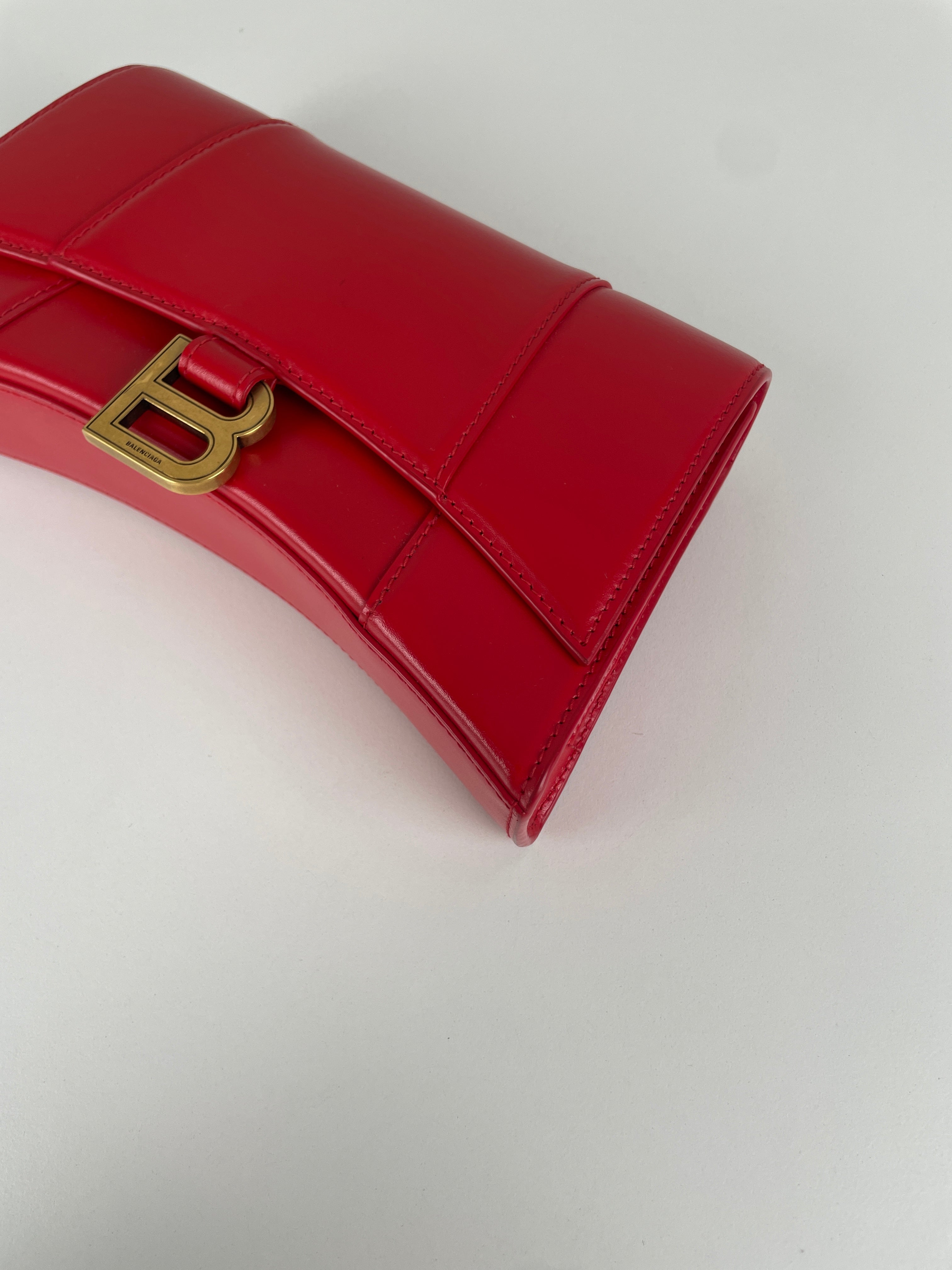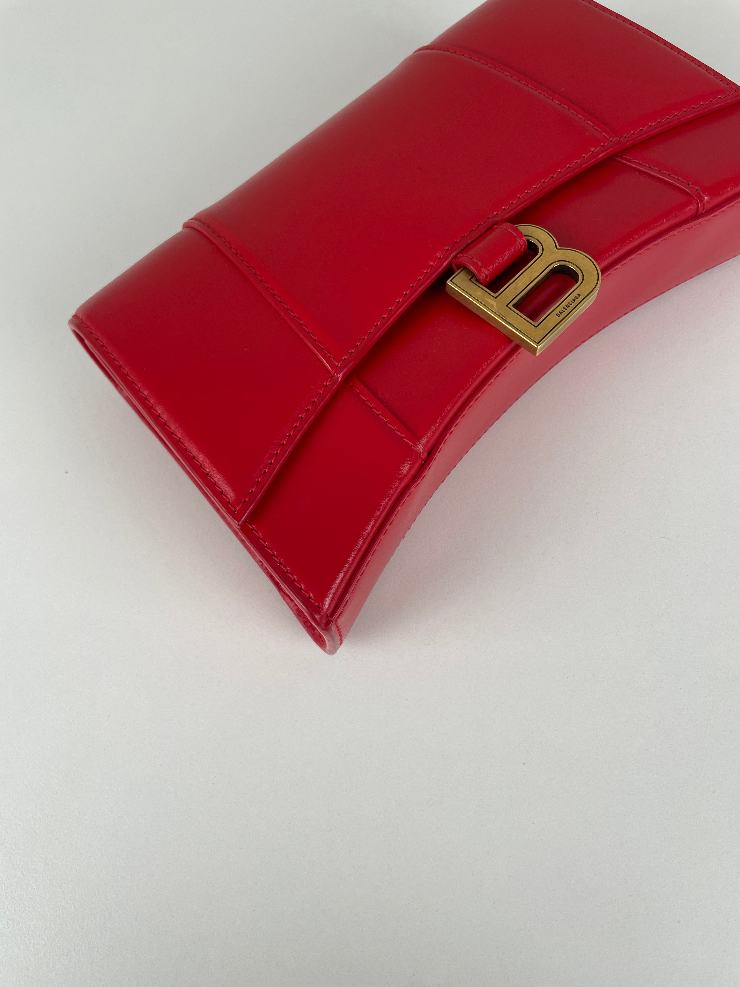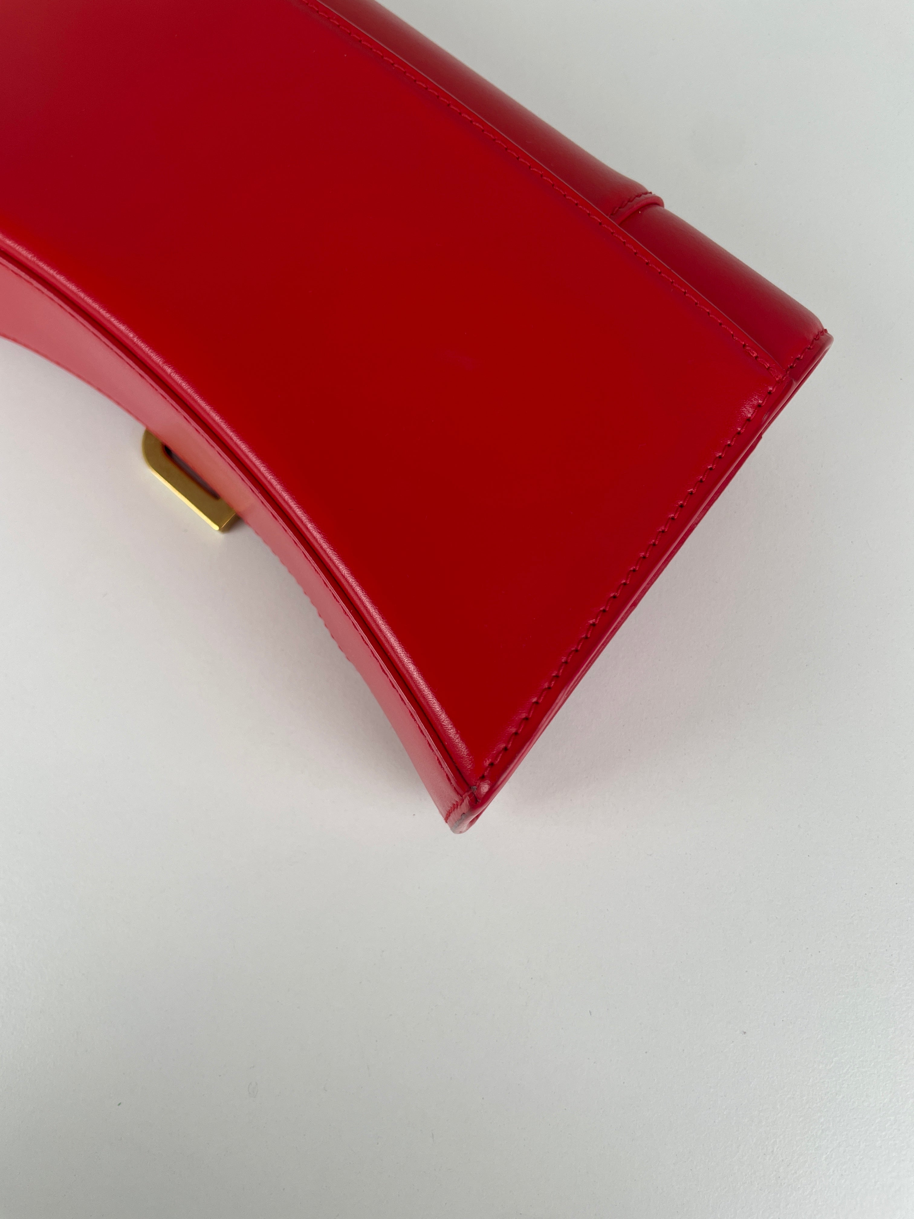 The Hourglass represents Balenciaga's contemporary interpretation of sculptural luxury with its distinctive curved silhouette that defines modern handbag design. This red leather version showcases the maison's exceptional craftsmanship with the iconic hourglass shape that has become synonymous with Demna Gvasalia's vision for the house. A statement piece that embodies Balenciaga's avant-garde aesthetic while offering sophisticated functionality with its compact proportions and architectural construction perfect for contemporary style.