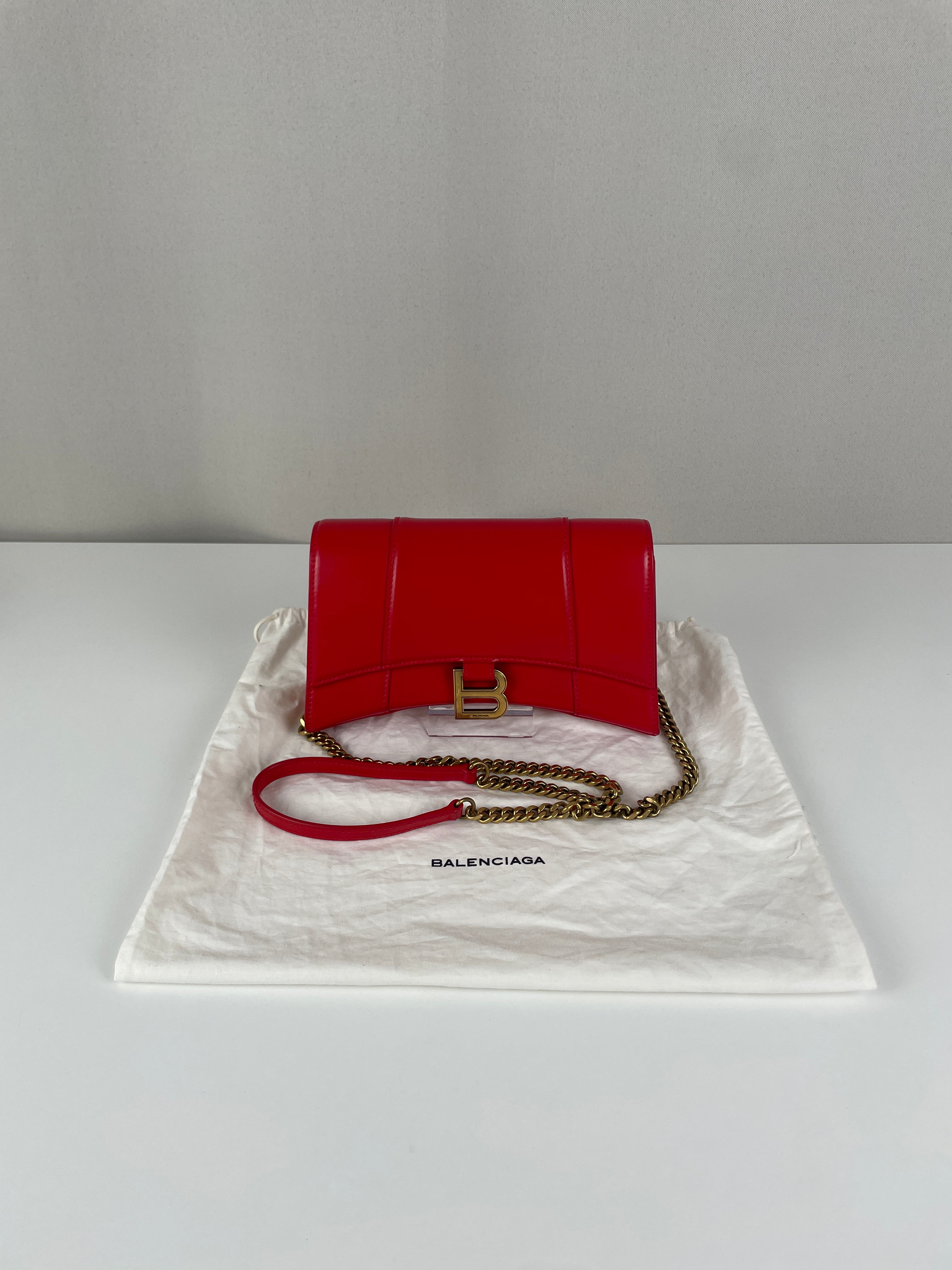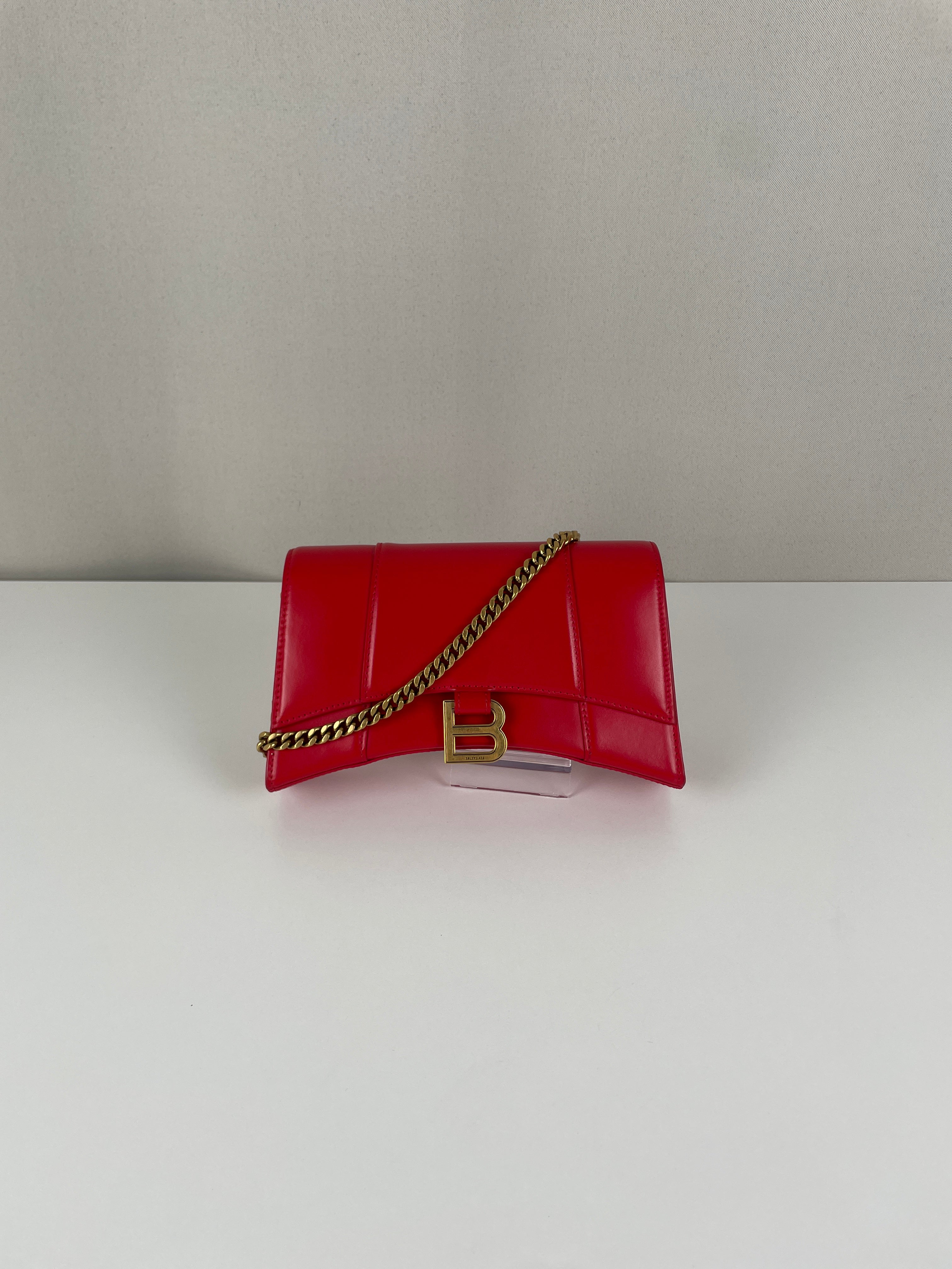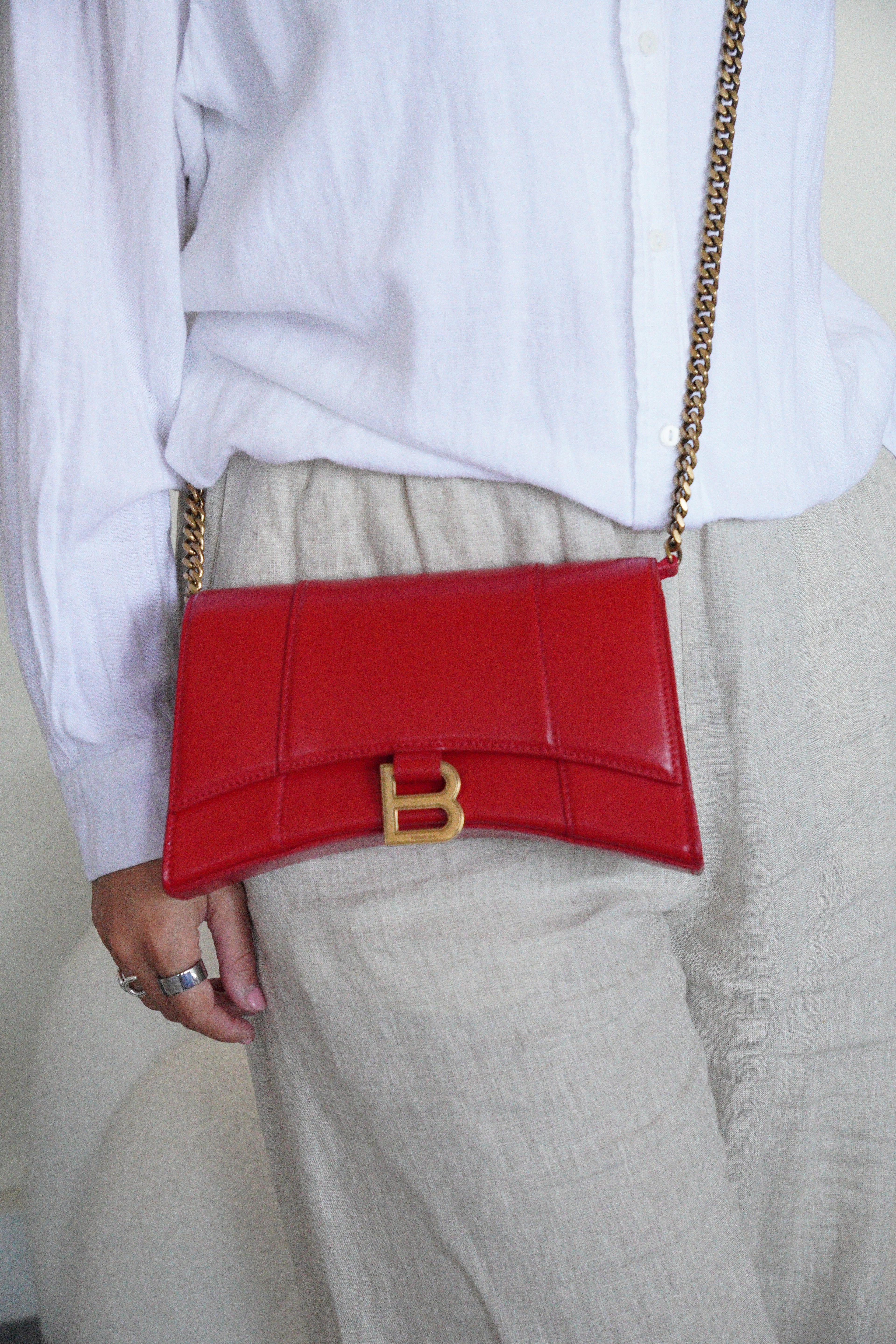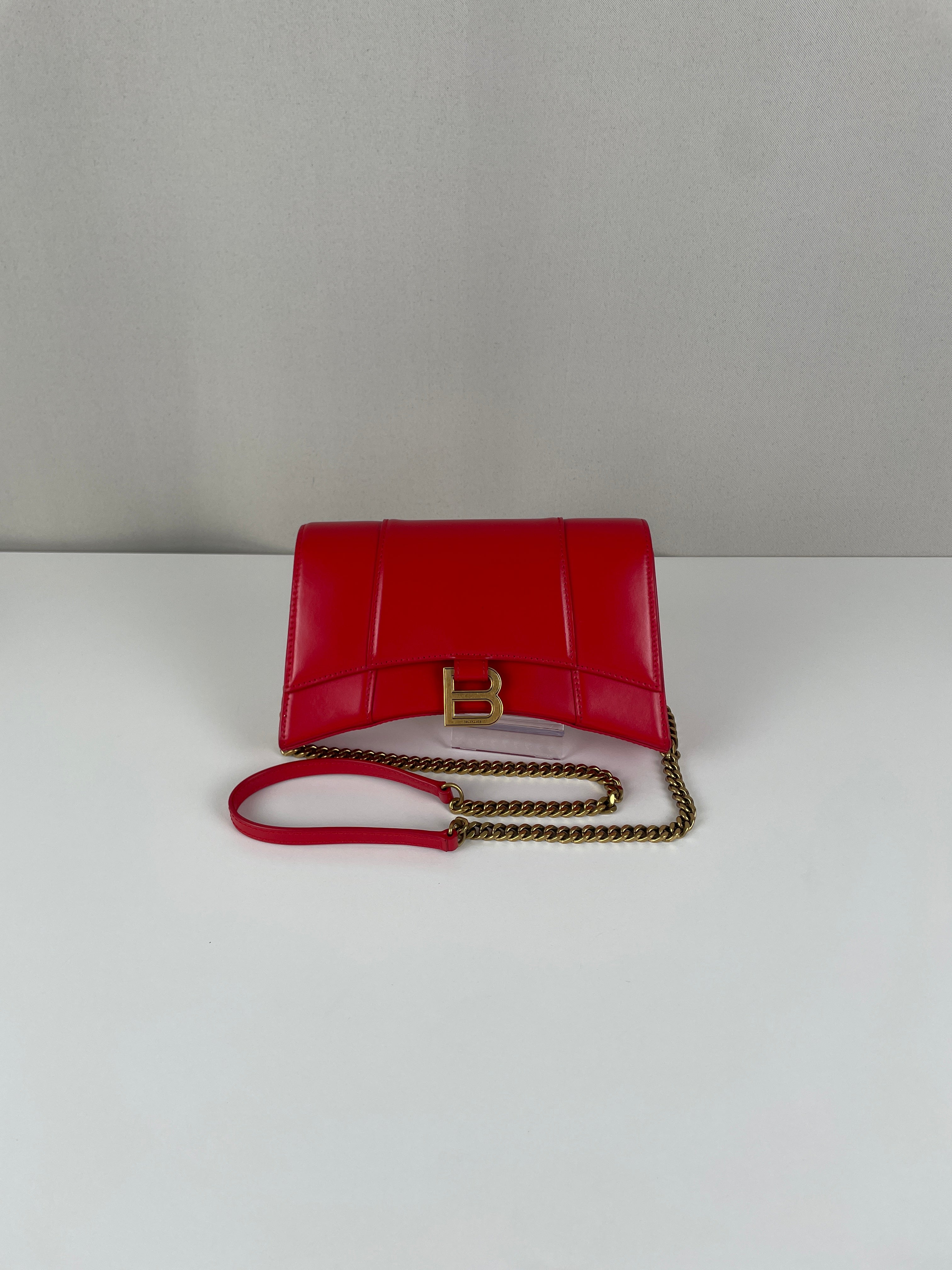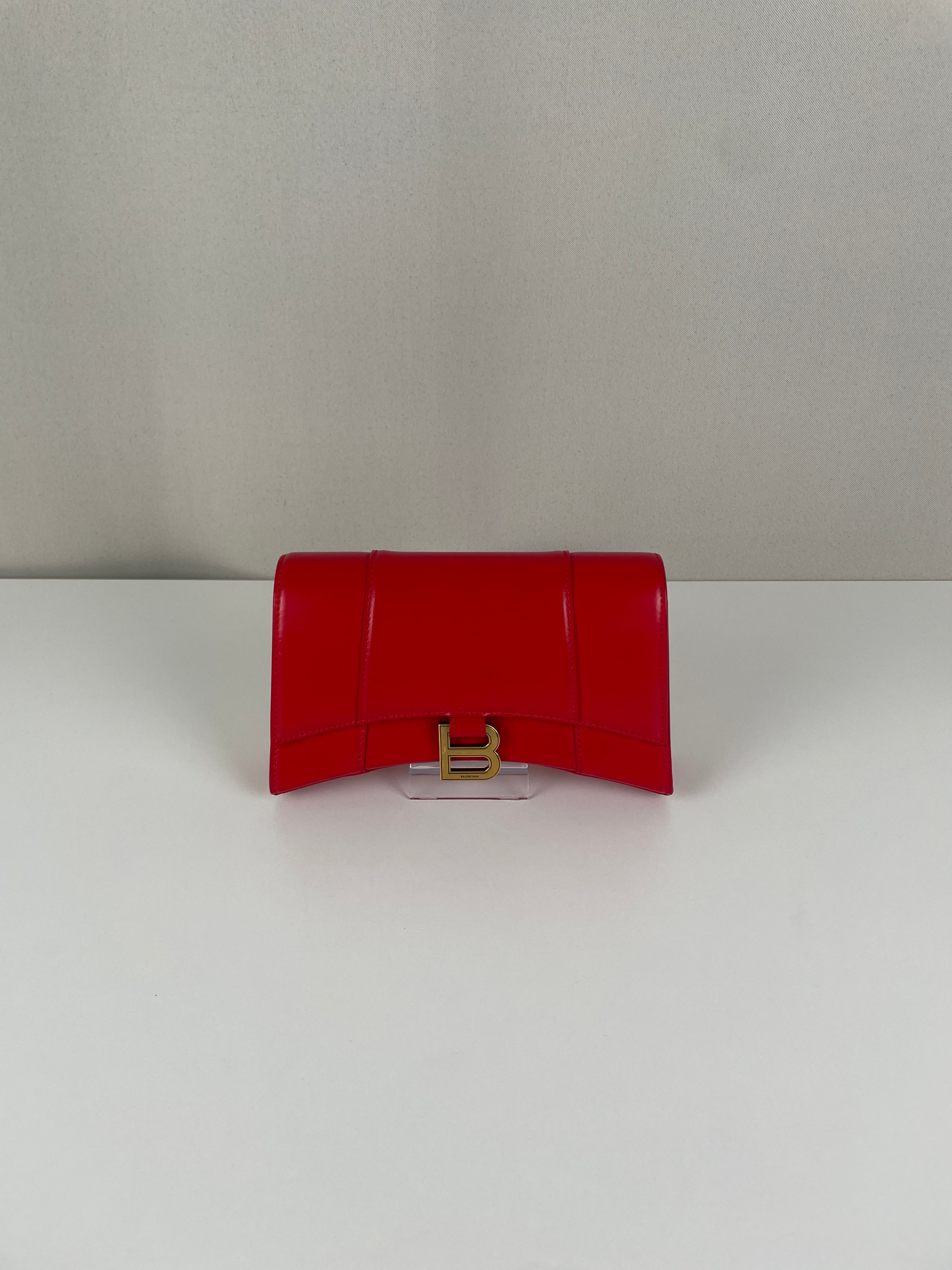 The Hourglass represents Balenciaga's contemporary interpretation of sculptural luxury with its distinctive curved silhouette that defines modern handbag design. This red leather version showcases the maison's exceptional craftsmanship with the iconic hourglass shape that has become synonymous with Demna Gvasalia's vision for the house. A statement piece that embodies Balenciaga's avant-garde aesthetic while offering sophisticated functionality with its compact proportions and architectural construction perfect for contemporary style.