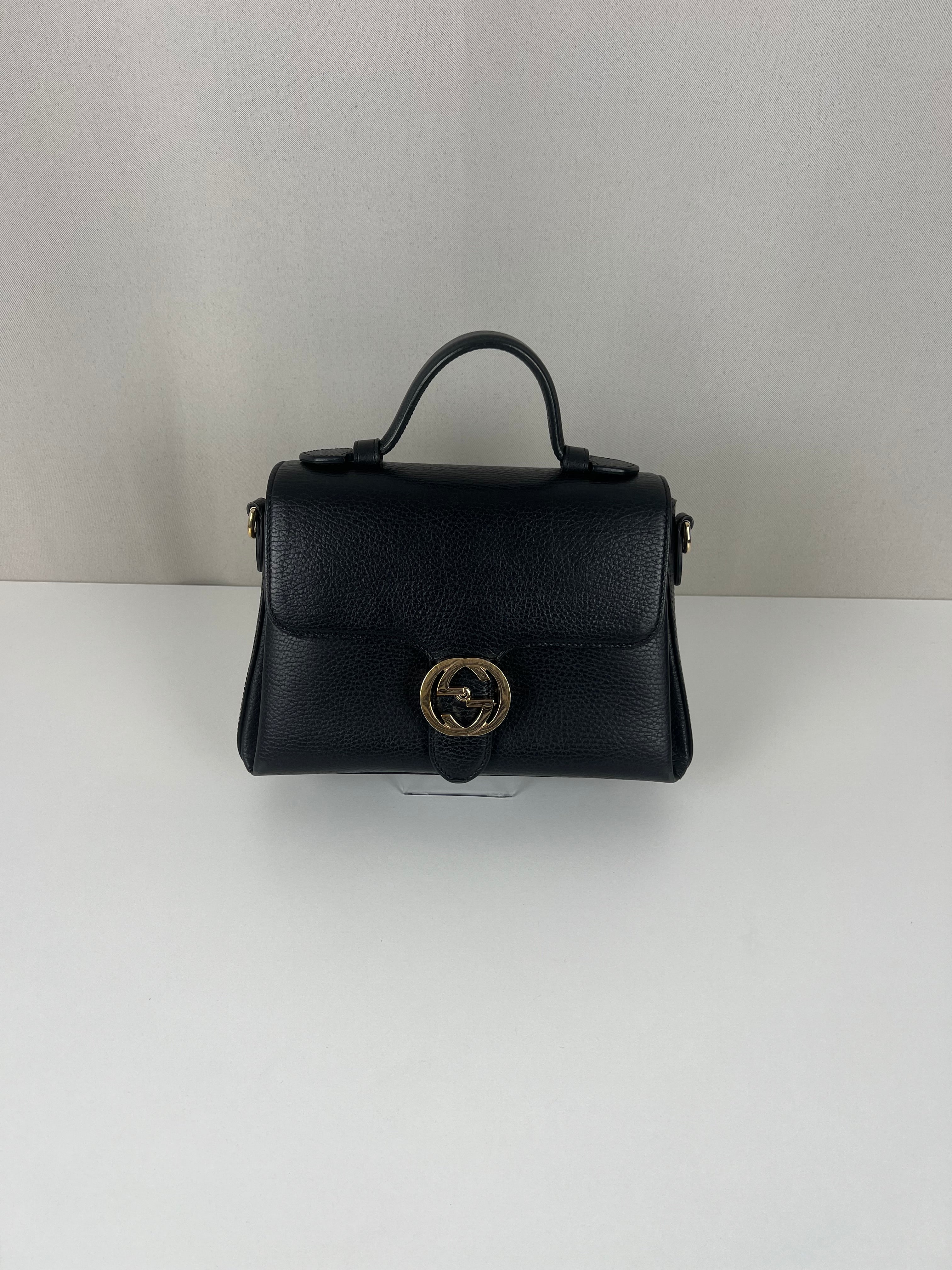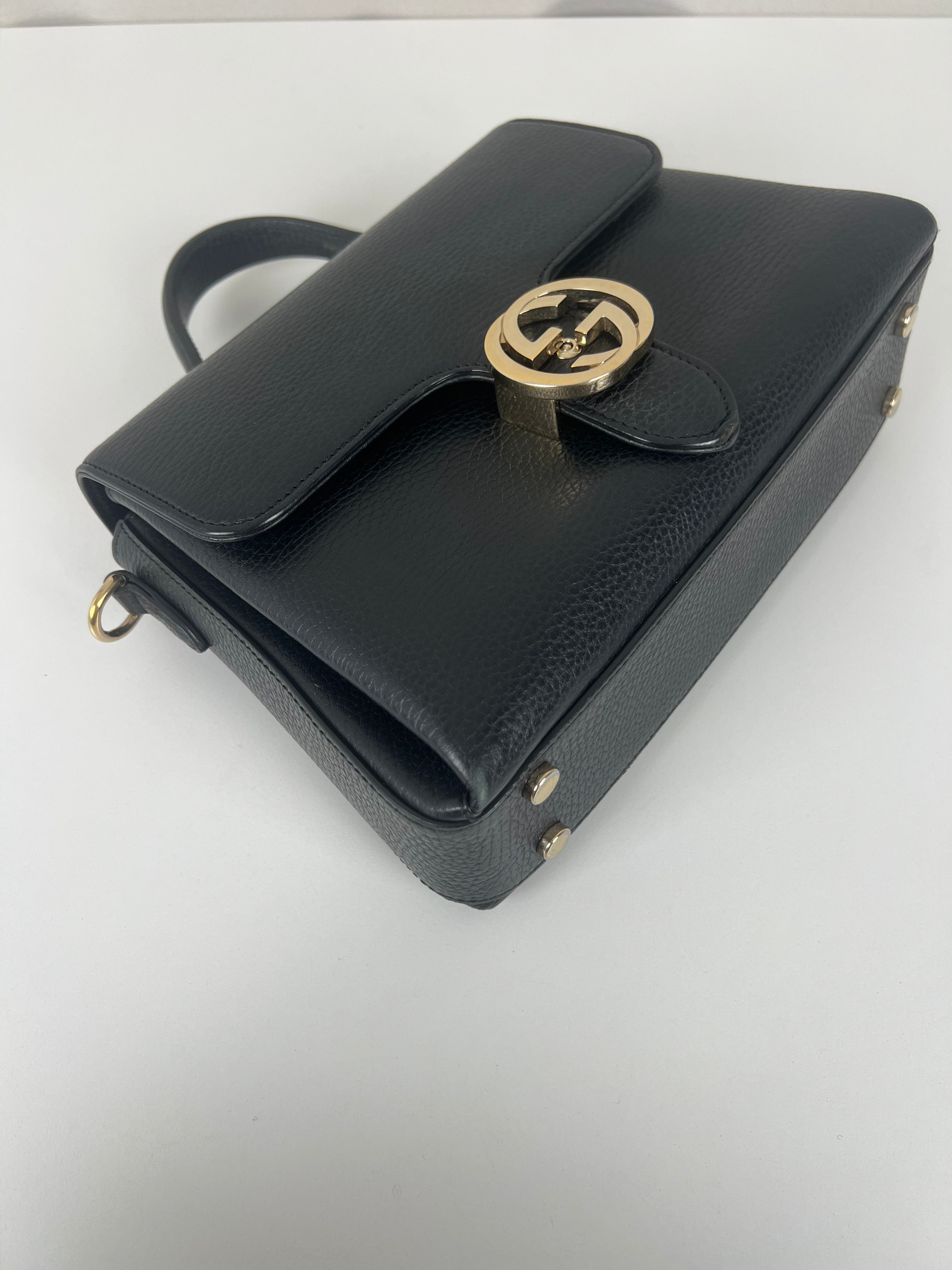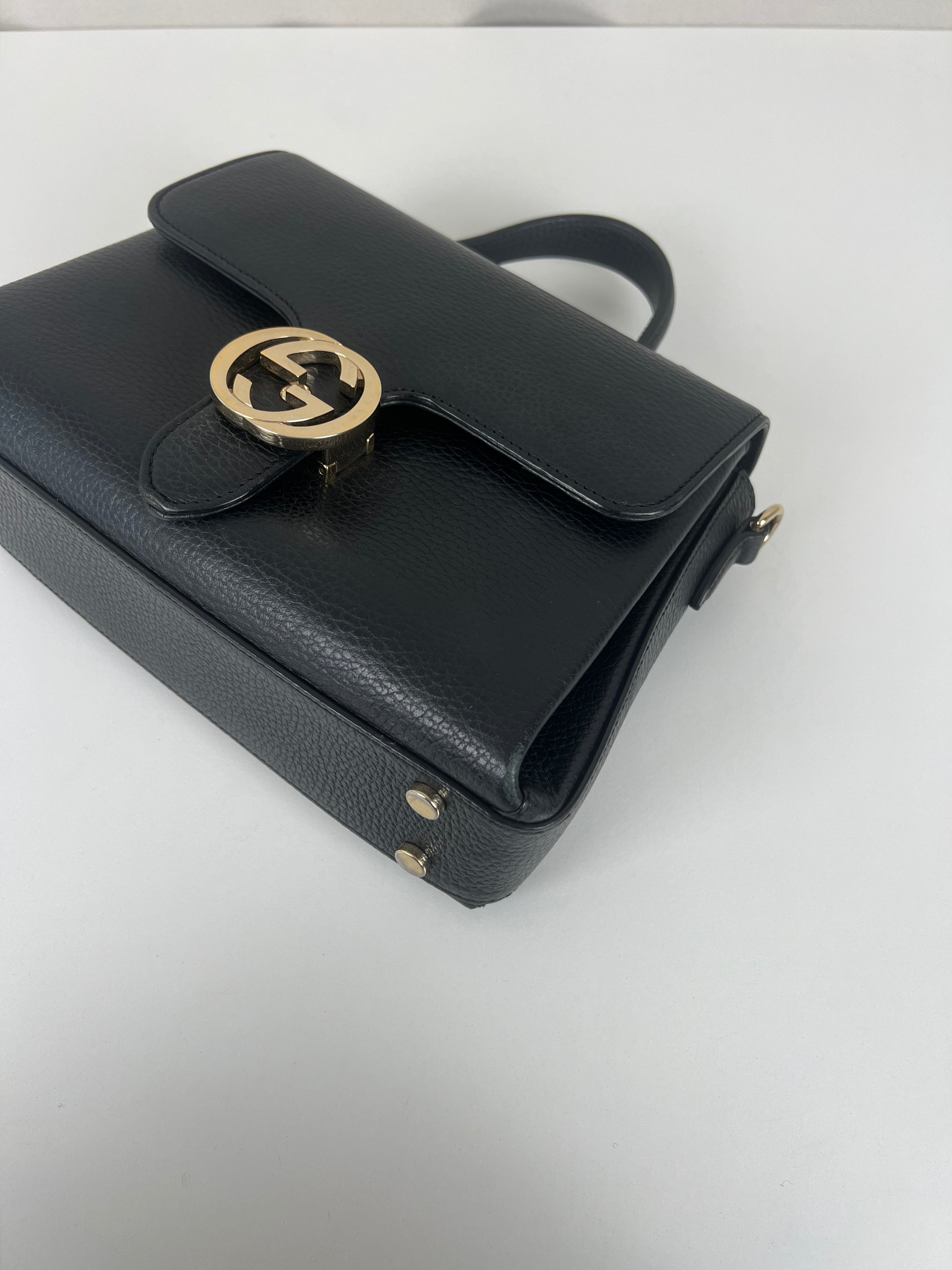 Gucci interlocking top handle bag black champagne hardware