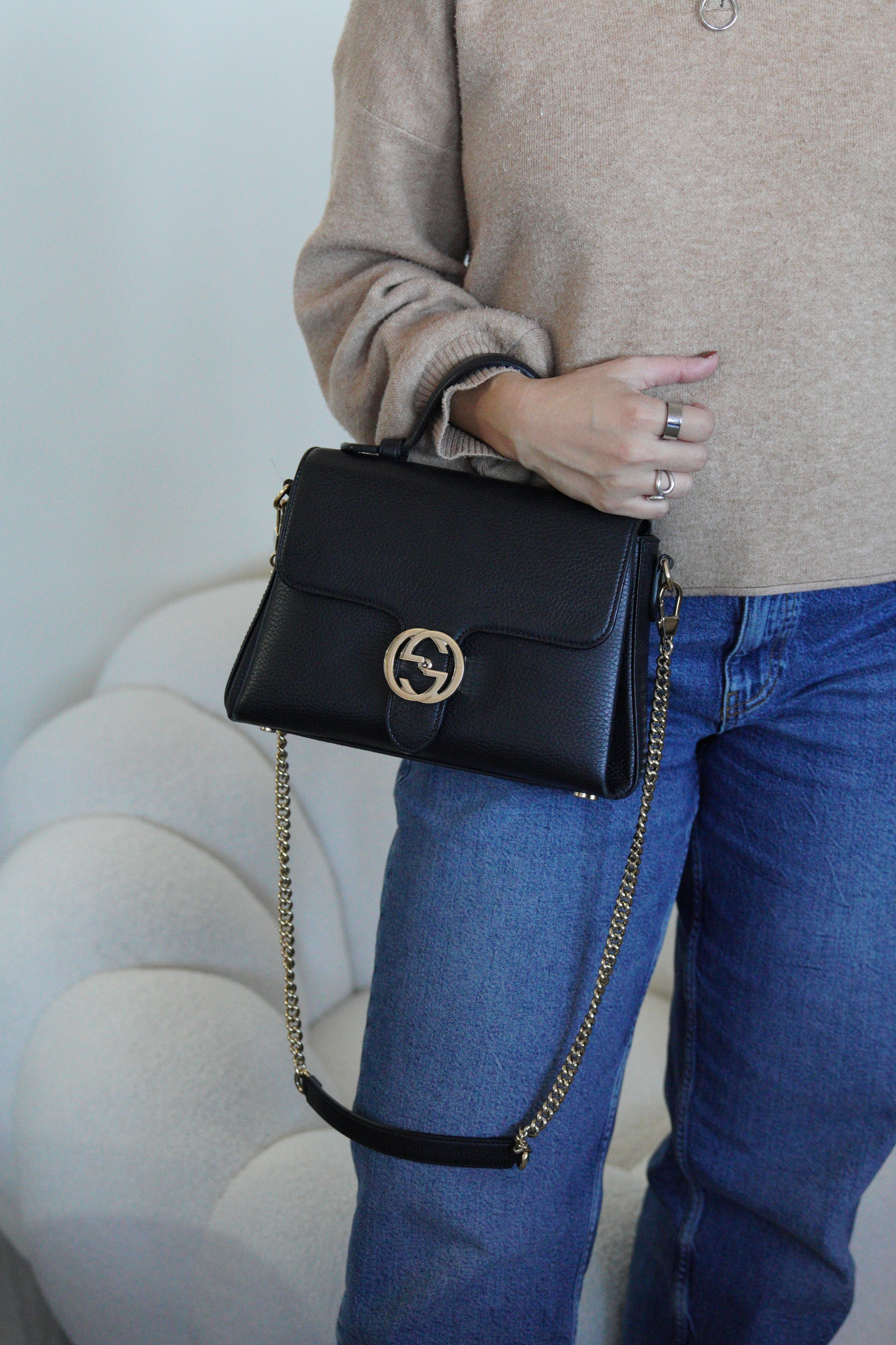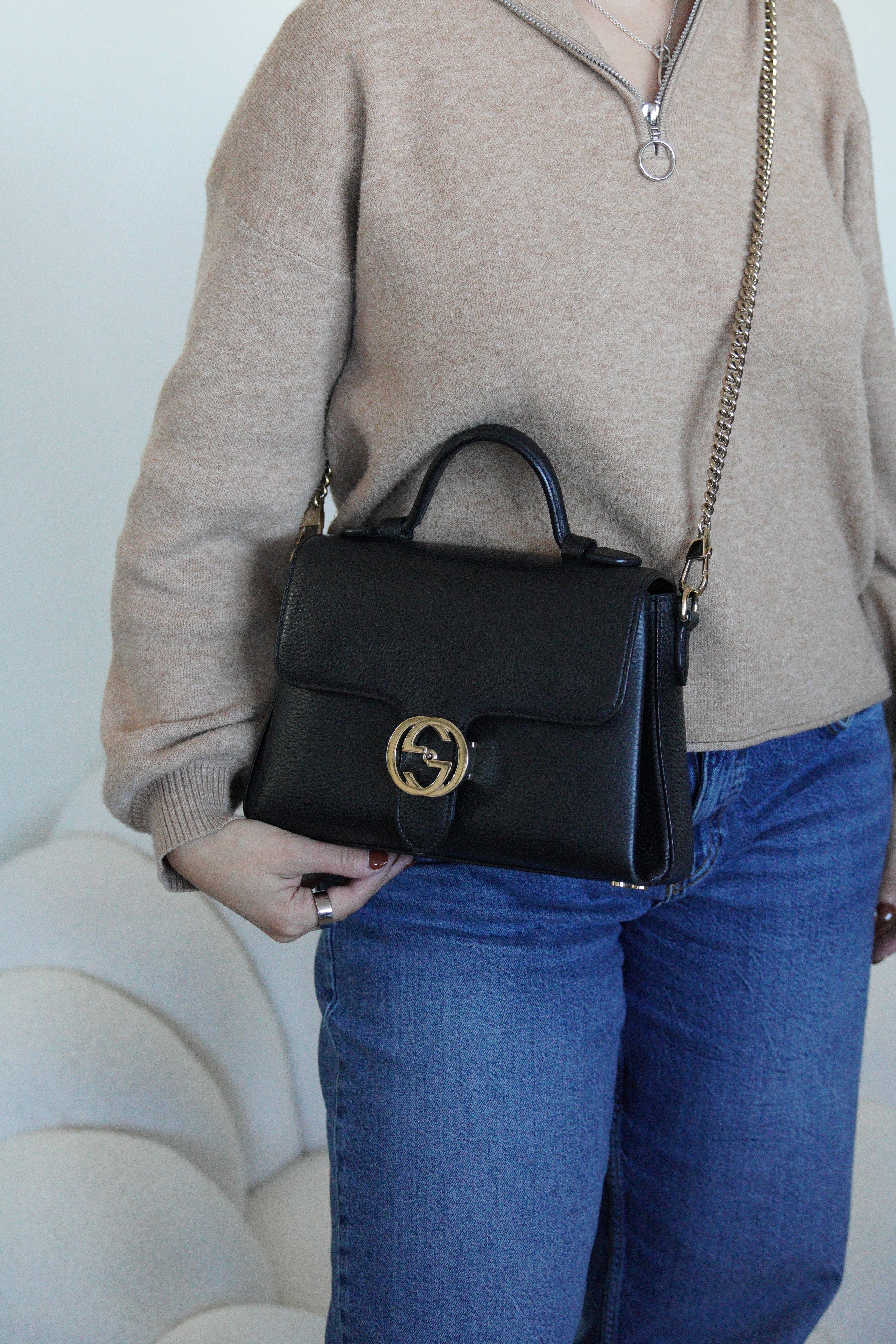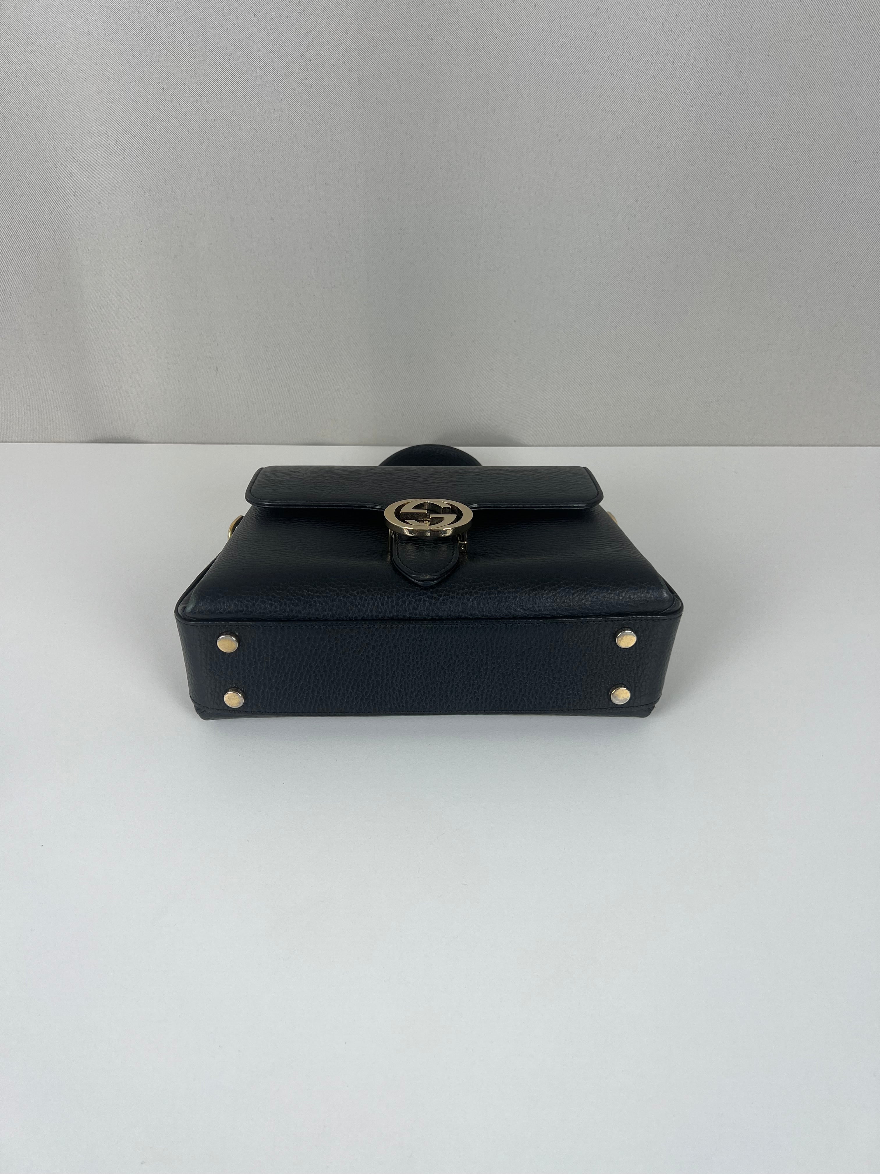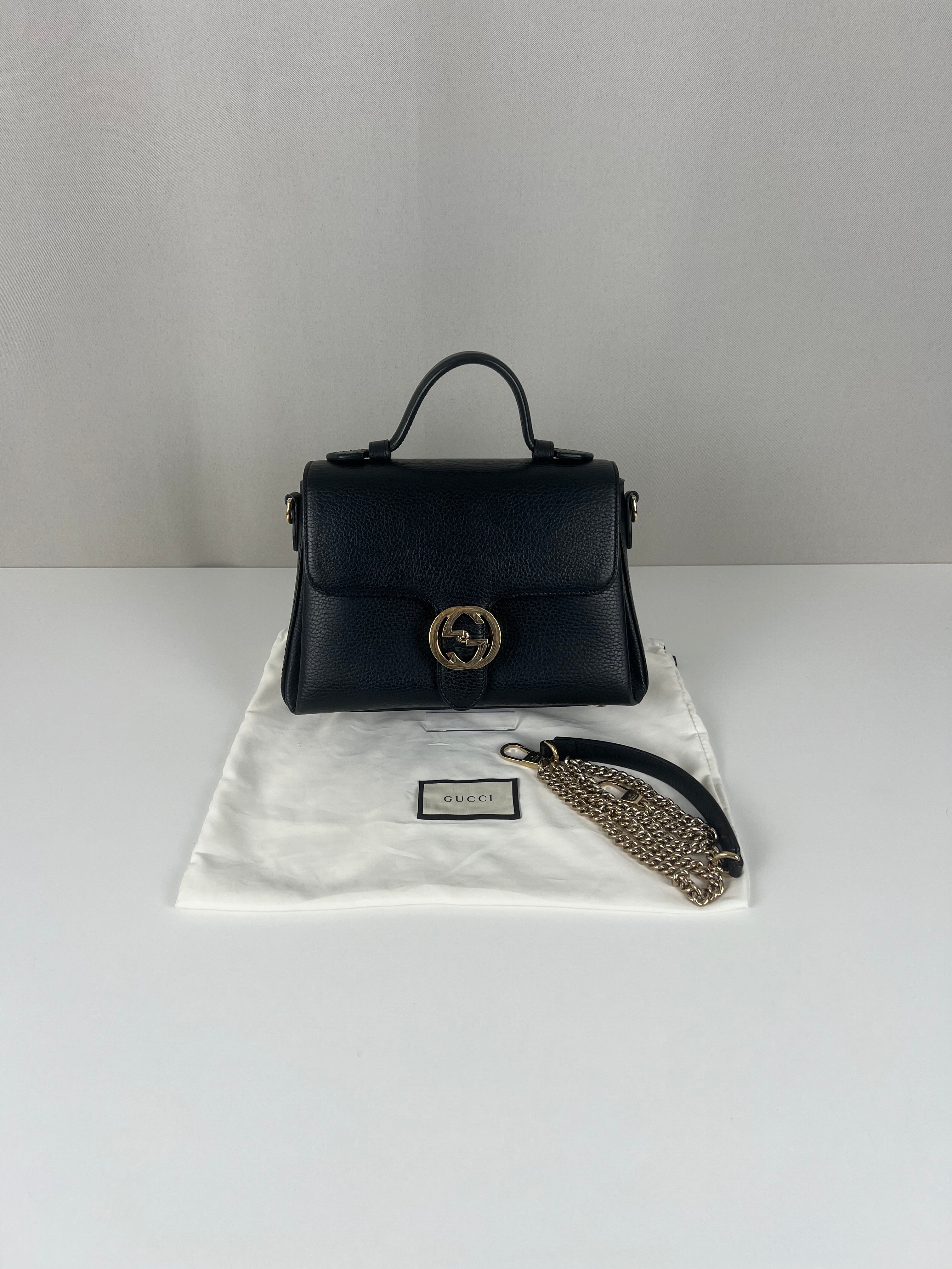 Gucci interlocking top handle bag black champagne hardware