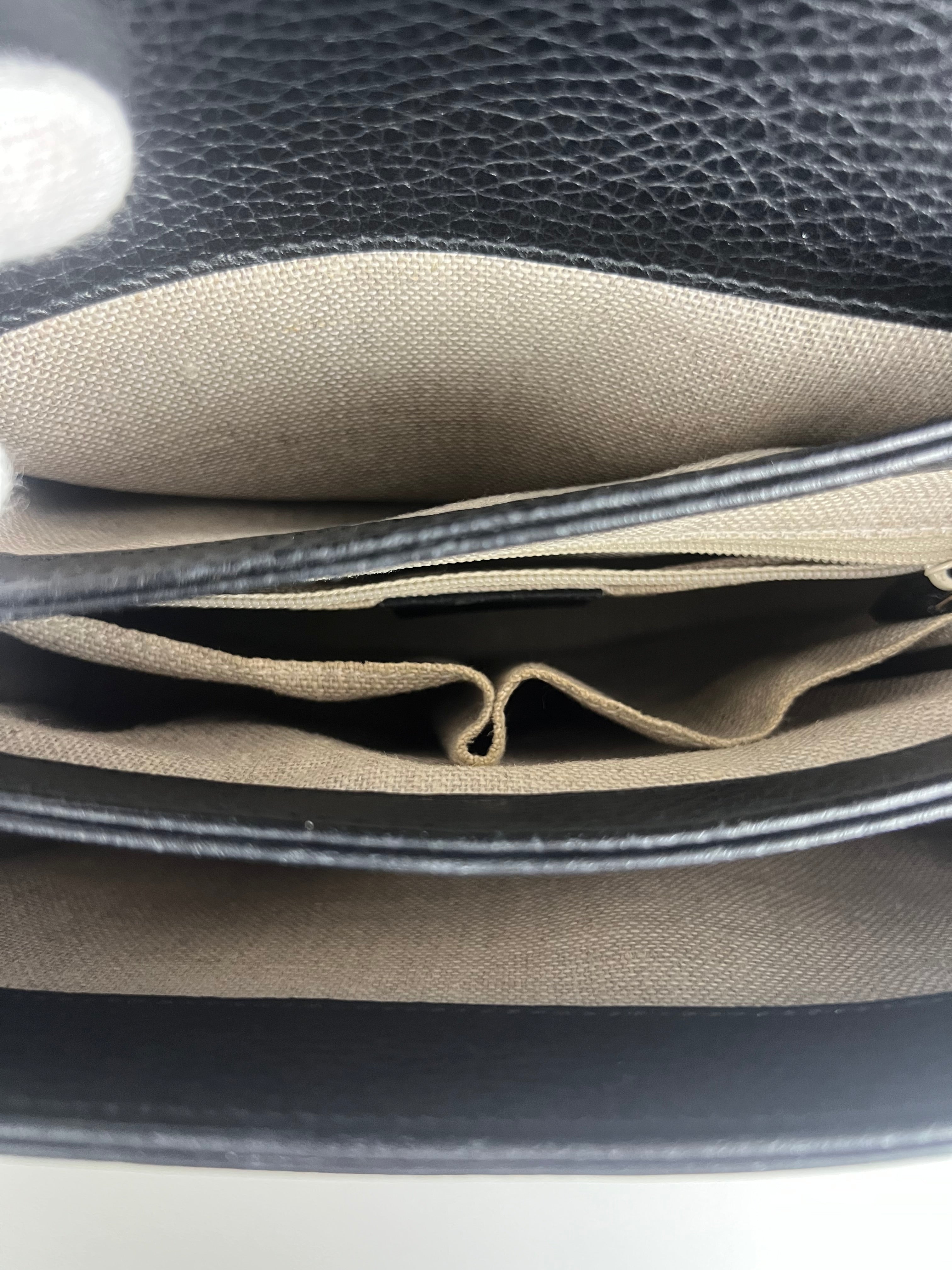 - Hardware: Good condition, gold-tone hardware shows slight tarnishing