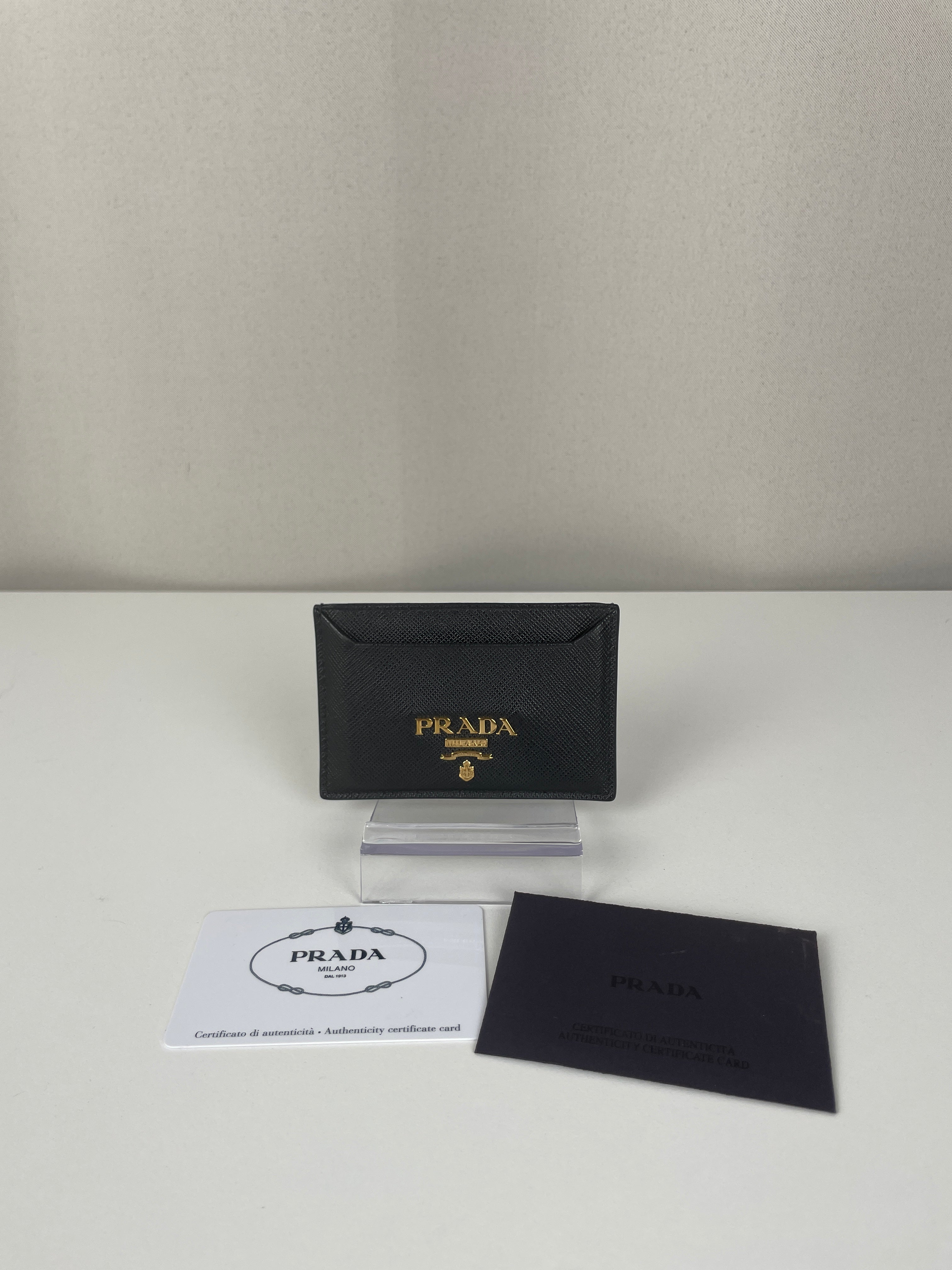 The card holder is one of Prada's most practical and refined accessories. This black leather edition showcases the maison's exceptional craftsmanship and minimalist elegance. A sophisticated piece that embodies Prada's contemporary luxury and represents the perfect blend of functionality and Italian style.