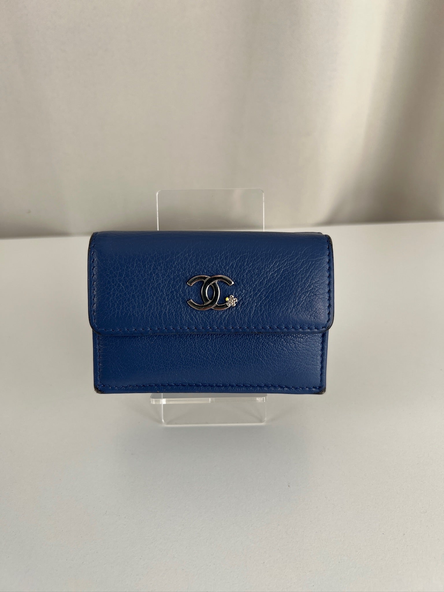 Chanel Blue Leather Bi-Fold Wallet Silver Hardware