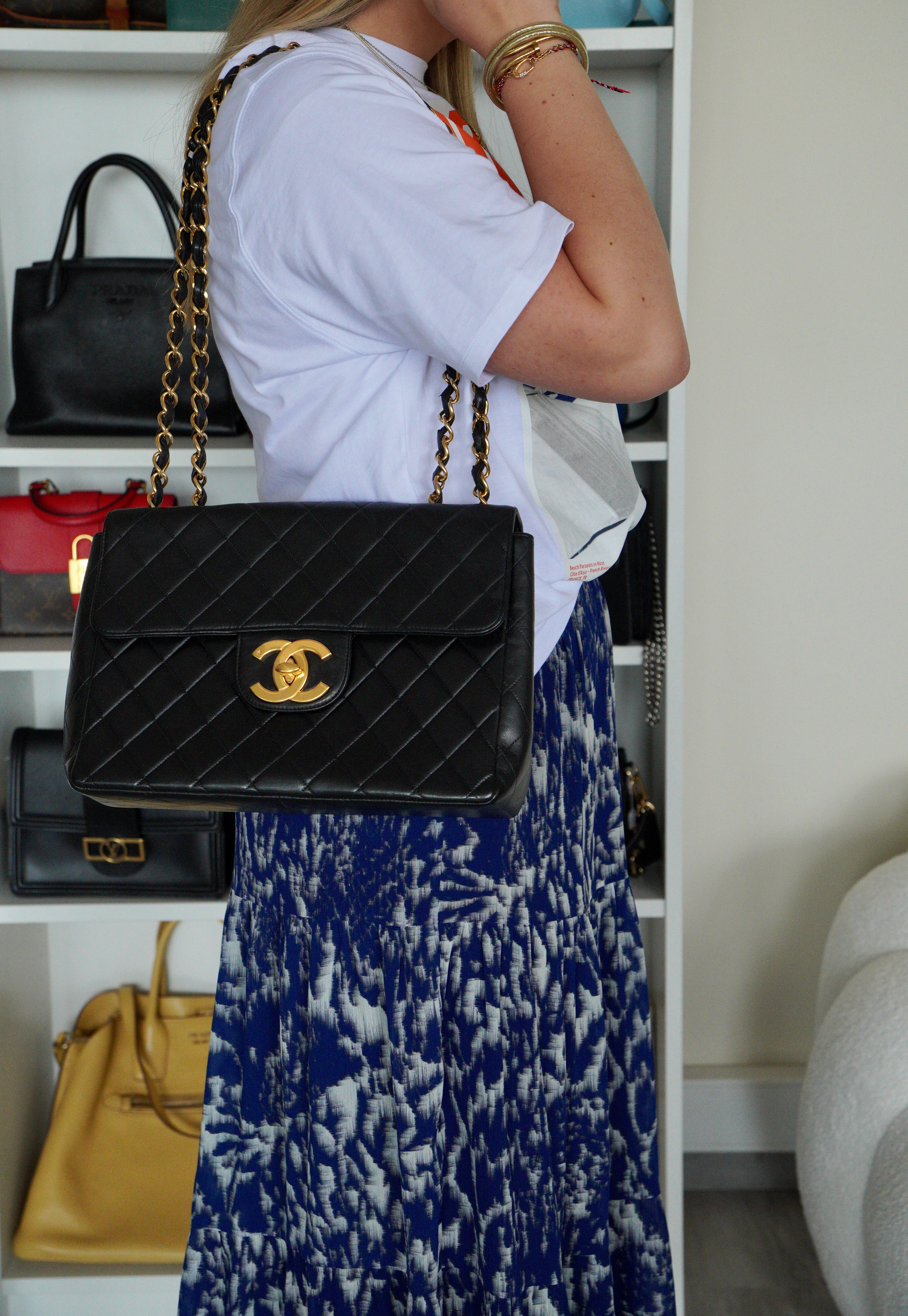 This Chanel Jumbo bag is in good condition. The leather is in good condition, it has been retinted on the leather. The corners are in good condition. The hardware is in good condition and gold plated. Inside is in good condition too. It's a vintage.
