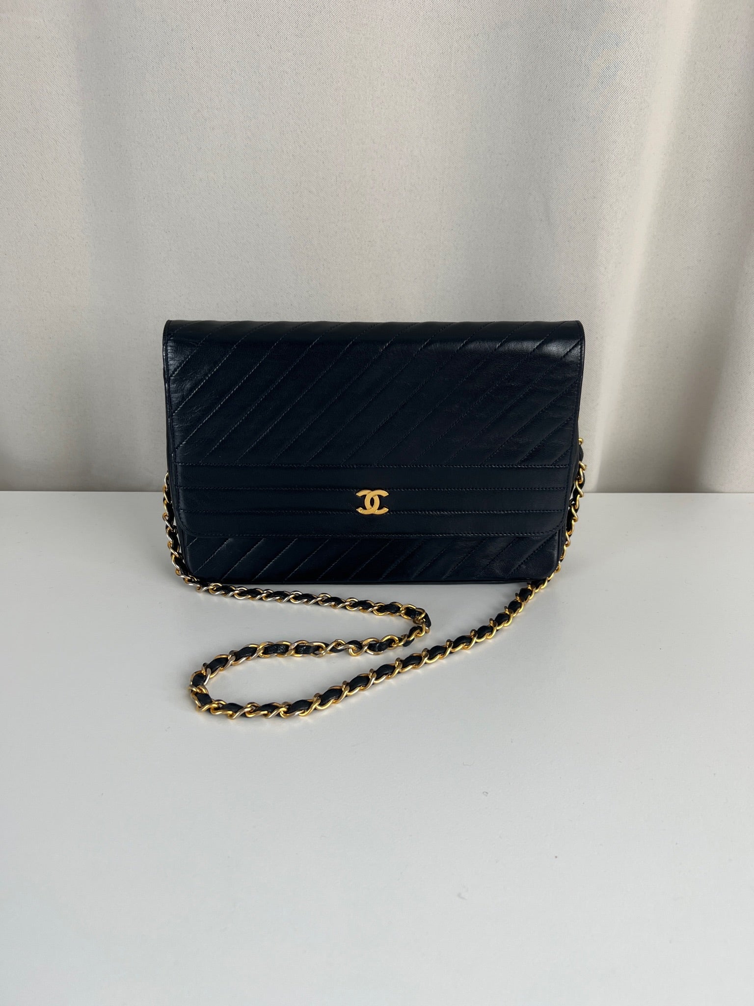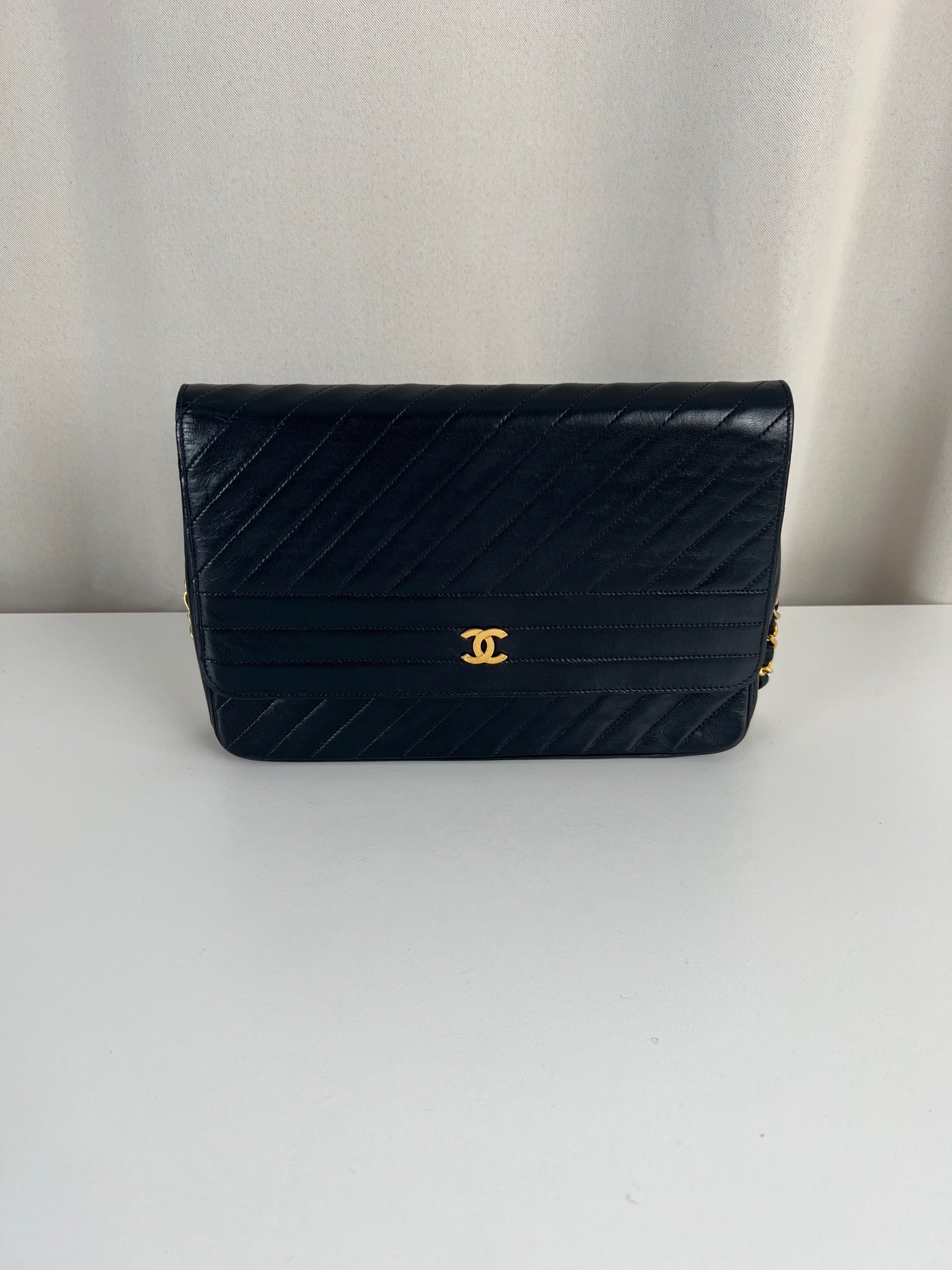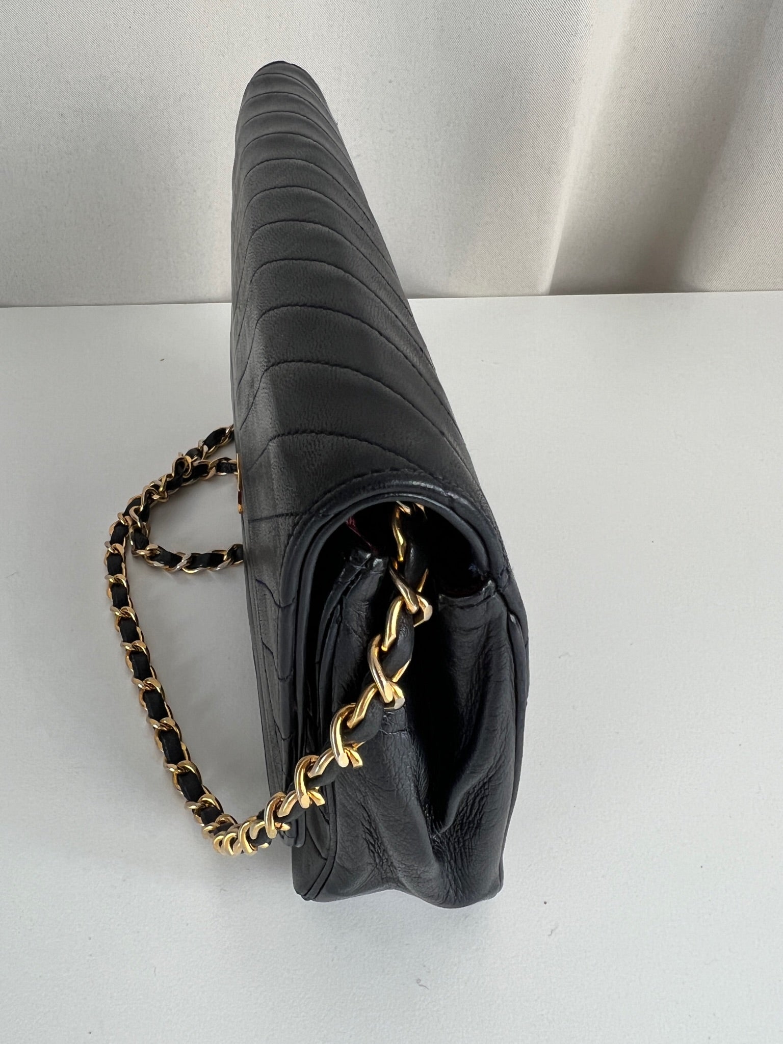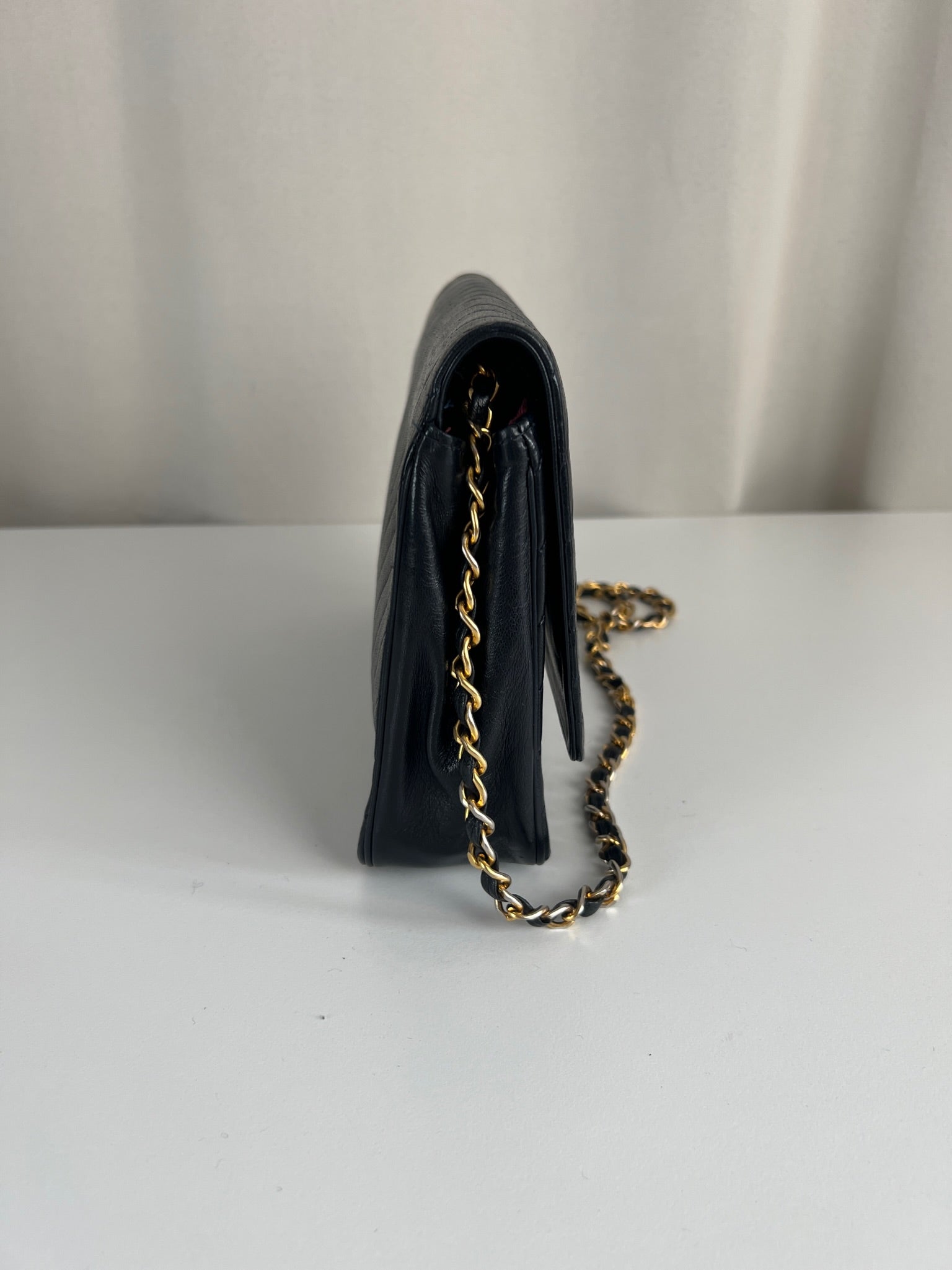 This Chanel VIntage bag is in very good condition. The leather and the corners are in very good condition. There is one corner that is a little bit rubbed. The hardware is a little bit scratched, it's a vintage bag. The strap is in very good condition. The interior is in very good condition. The bag has no sticker on this one.