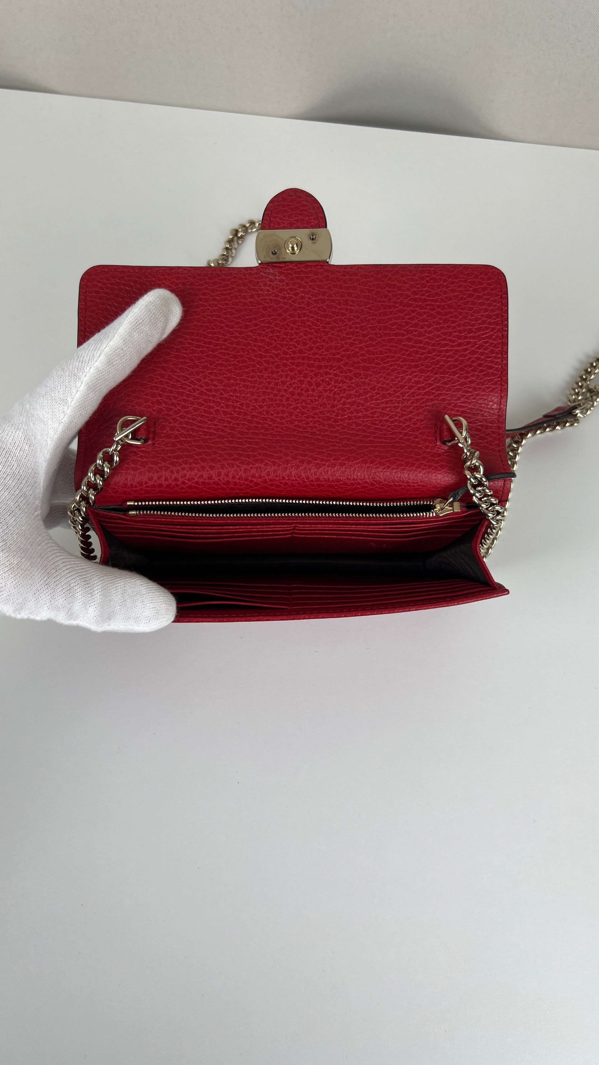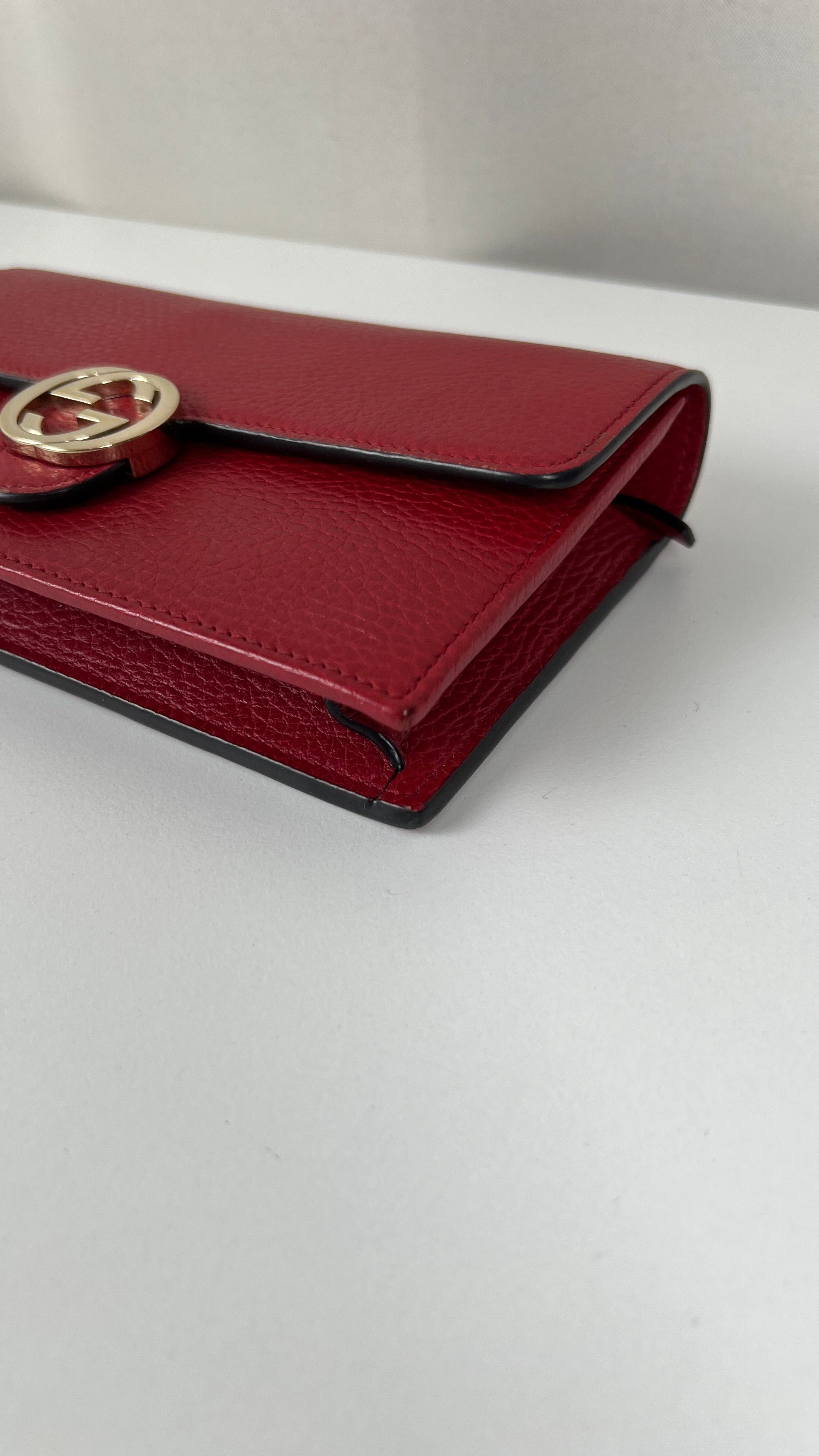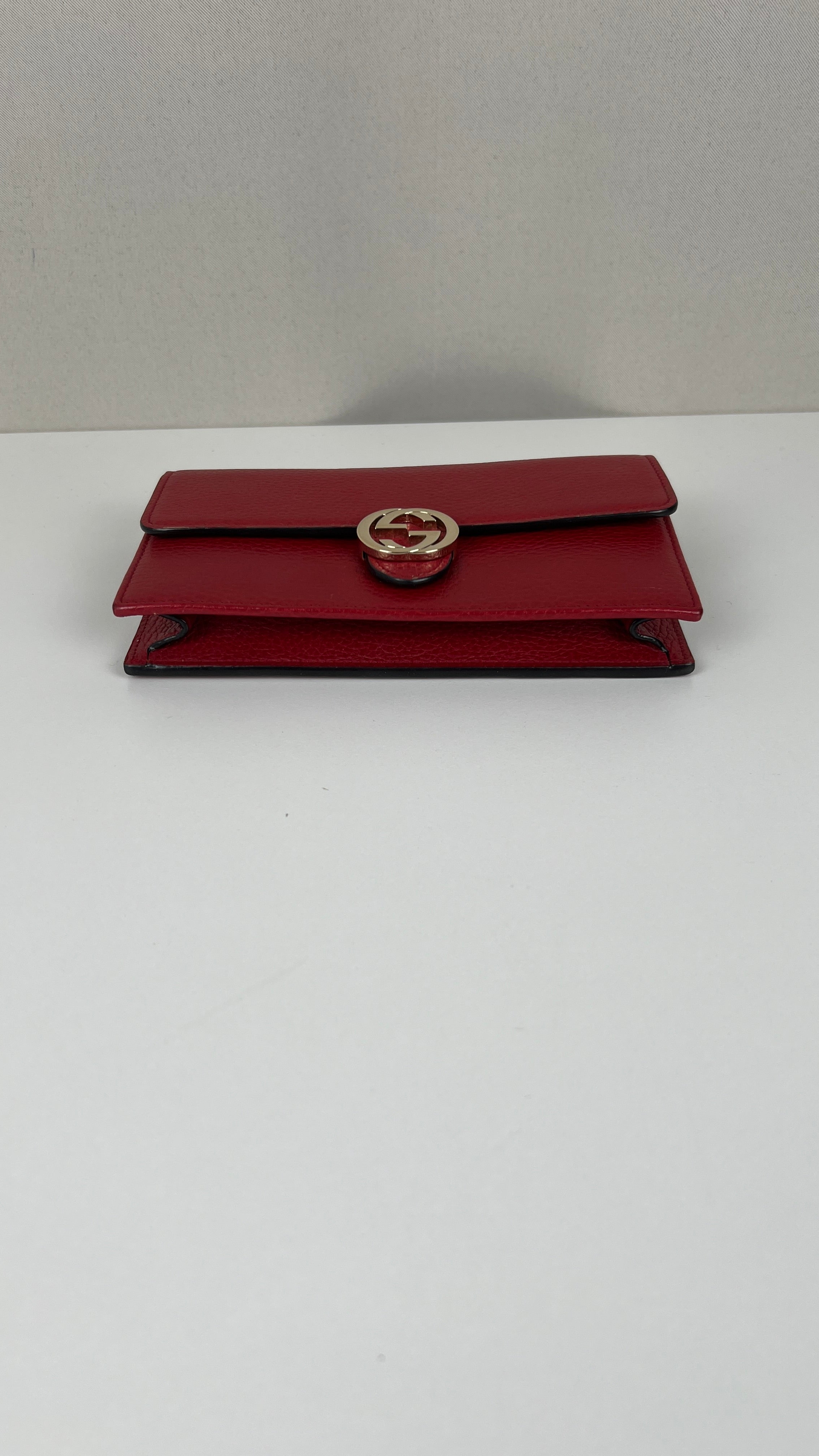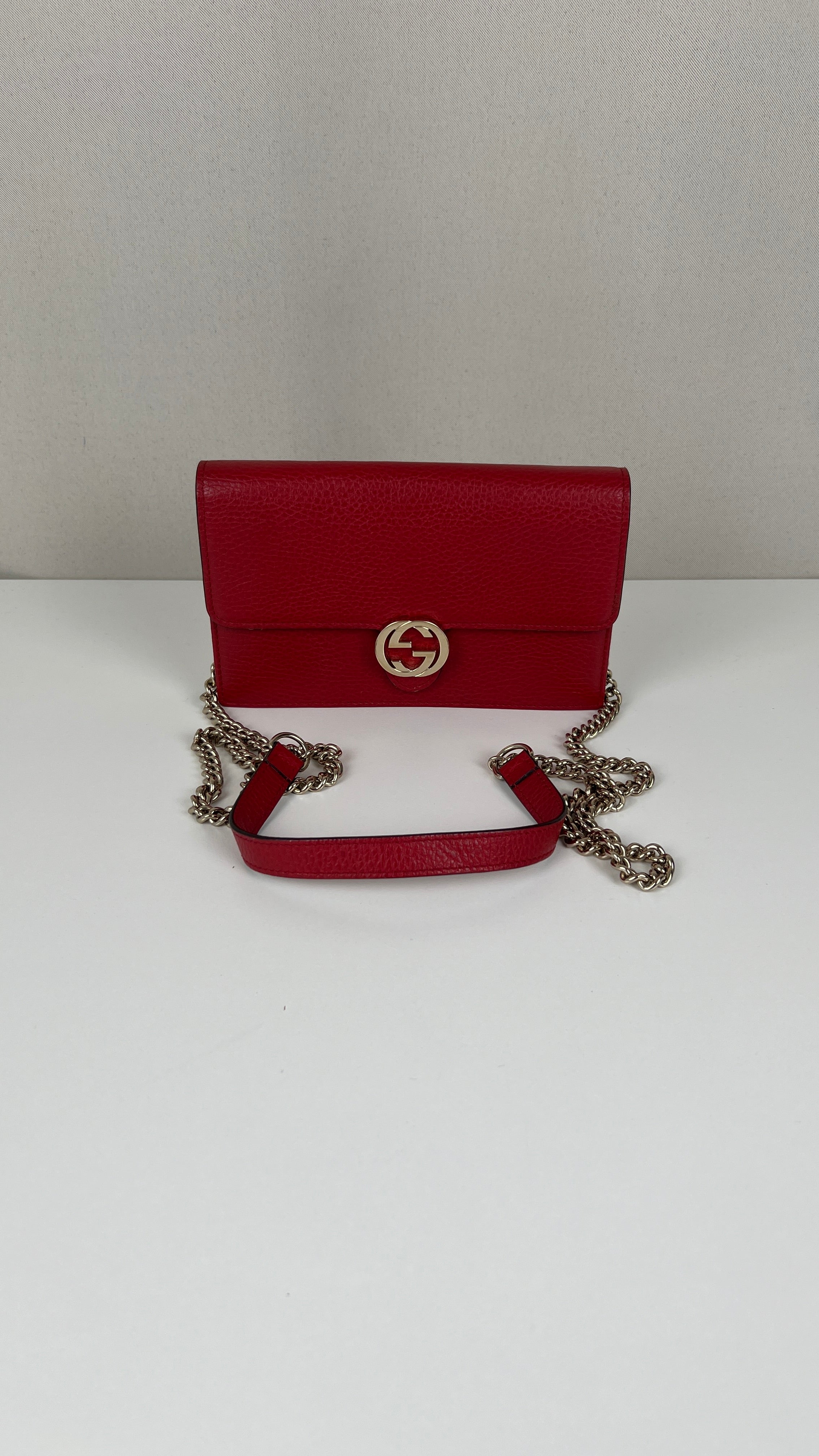This Gucci Interlocking is in very good condition. The leather is in very good condition. The corners are in very good condition. The hardware has scratches. The interior is in very good condition. The strap is in very good condition. Little bit darker on the back natural use.