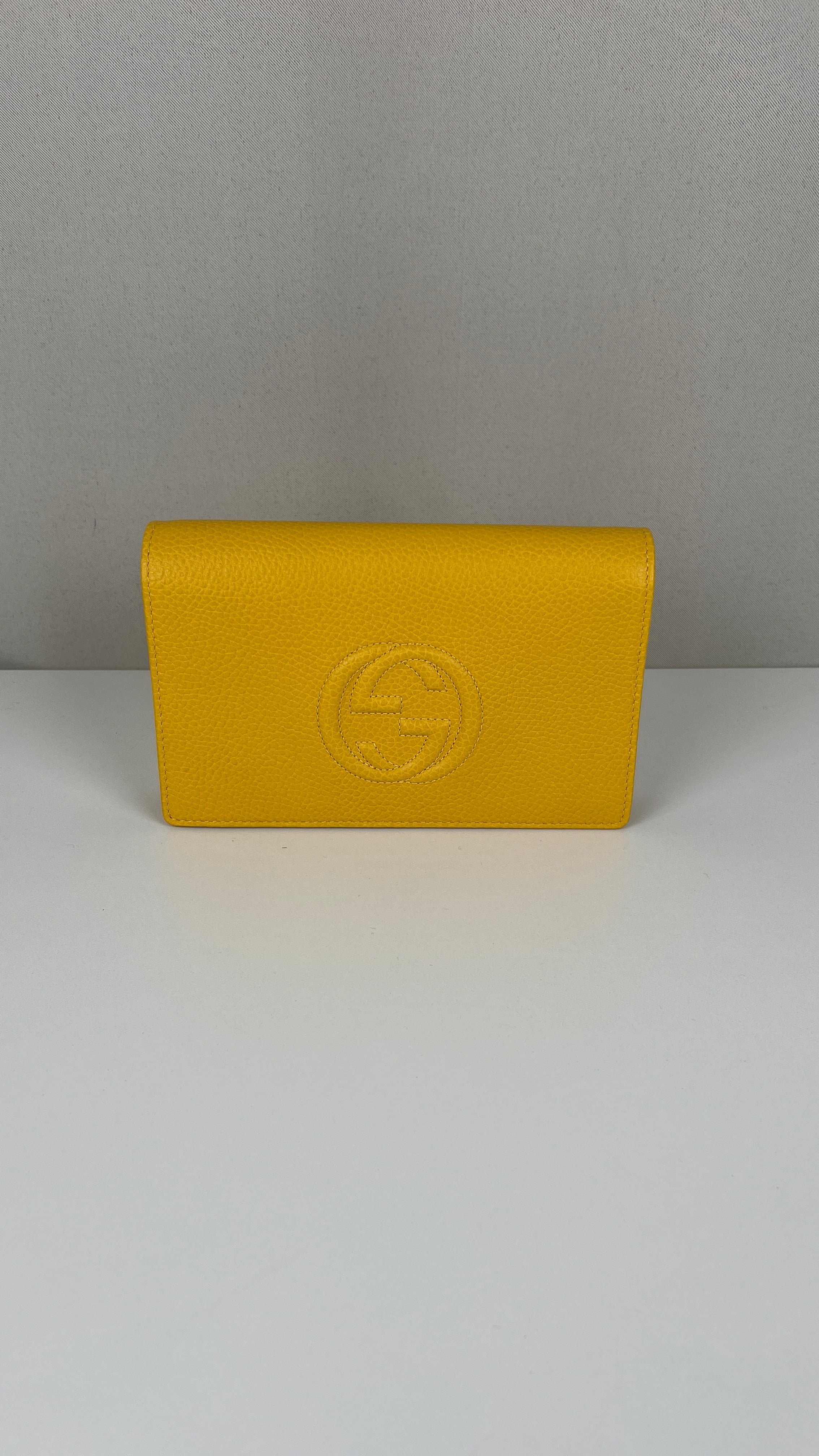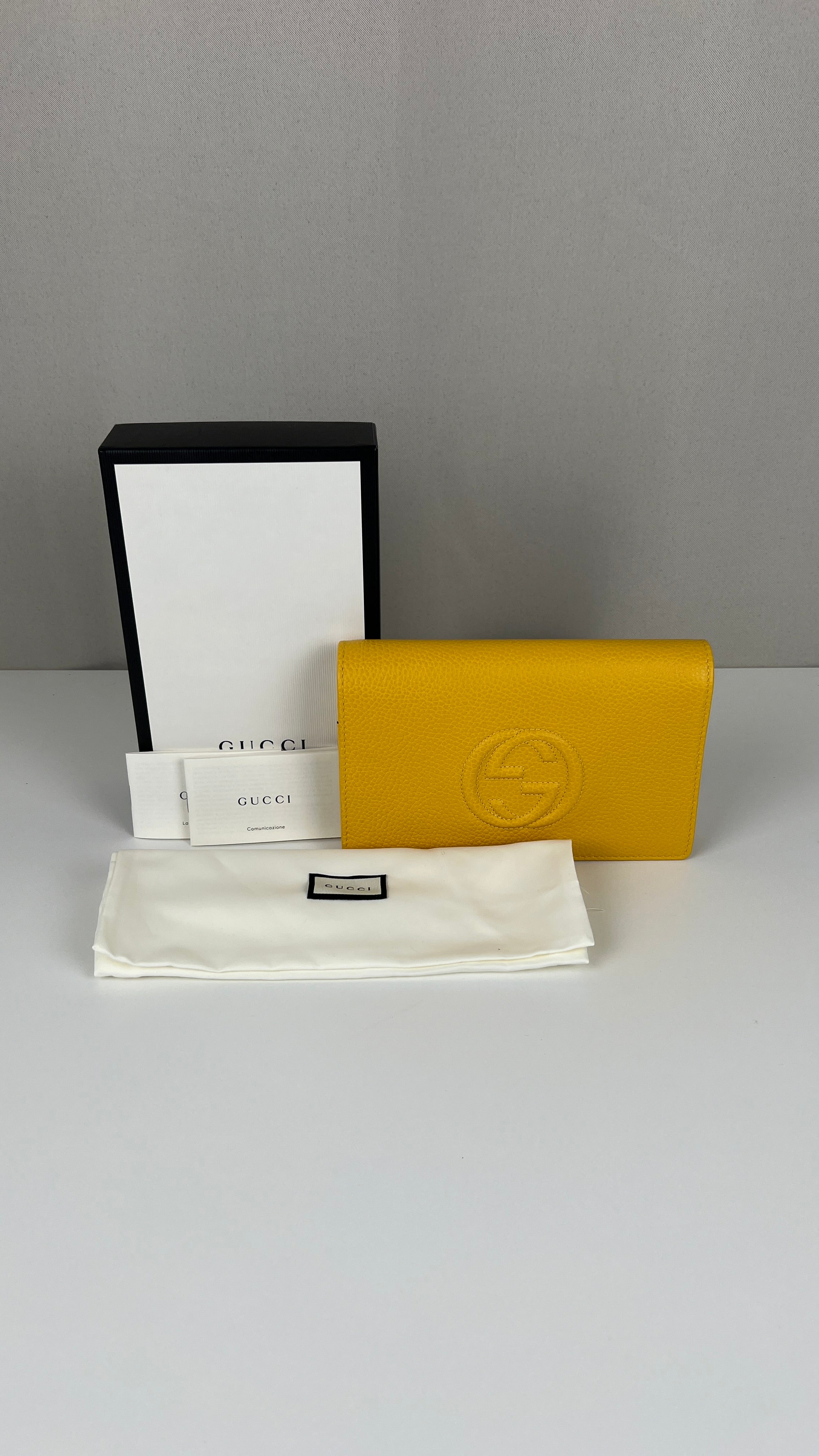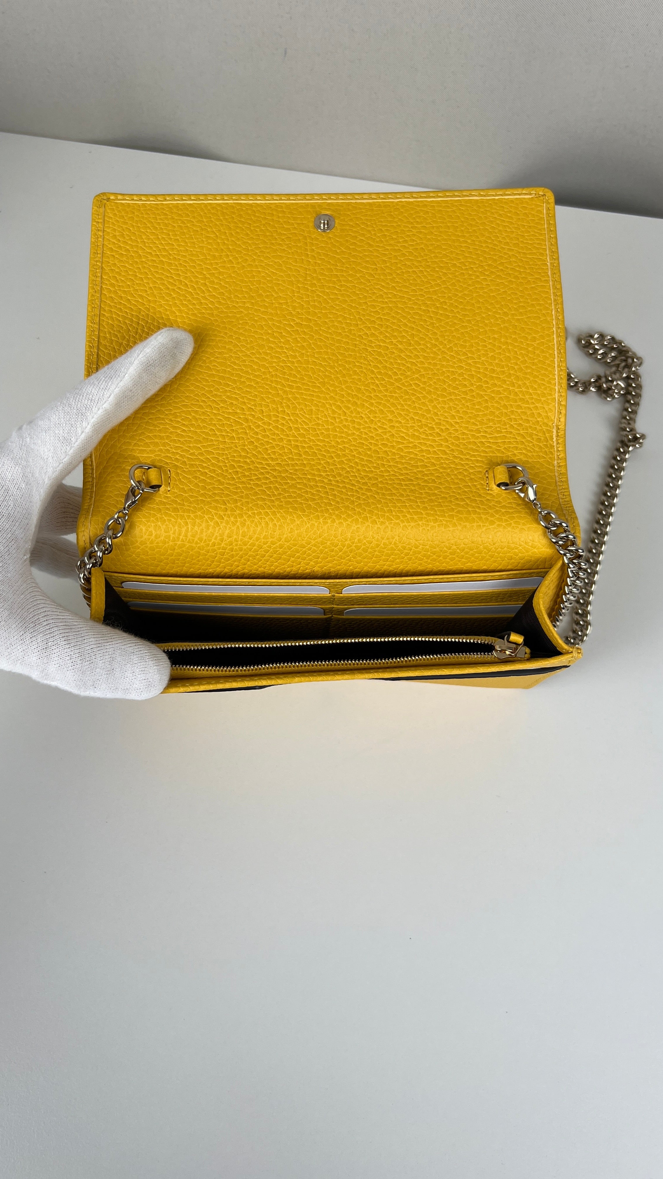 This Gucci WOC is brand new. The leather and the corners are in perfect condition. The hardware is in perfect condition.
