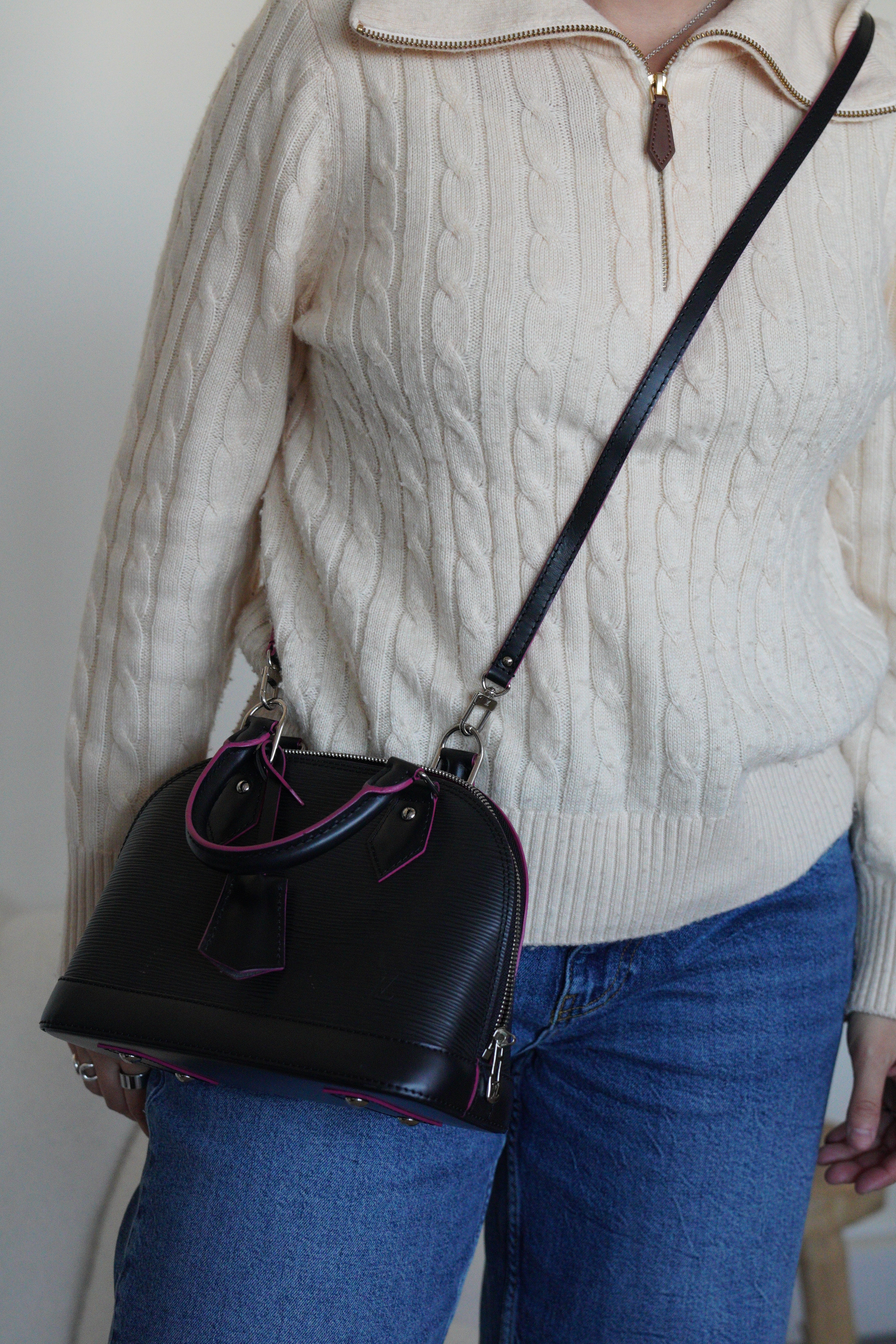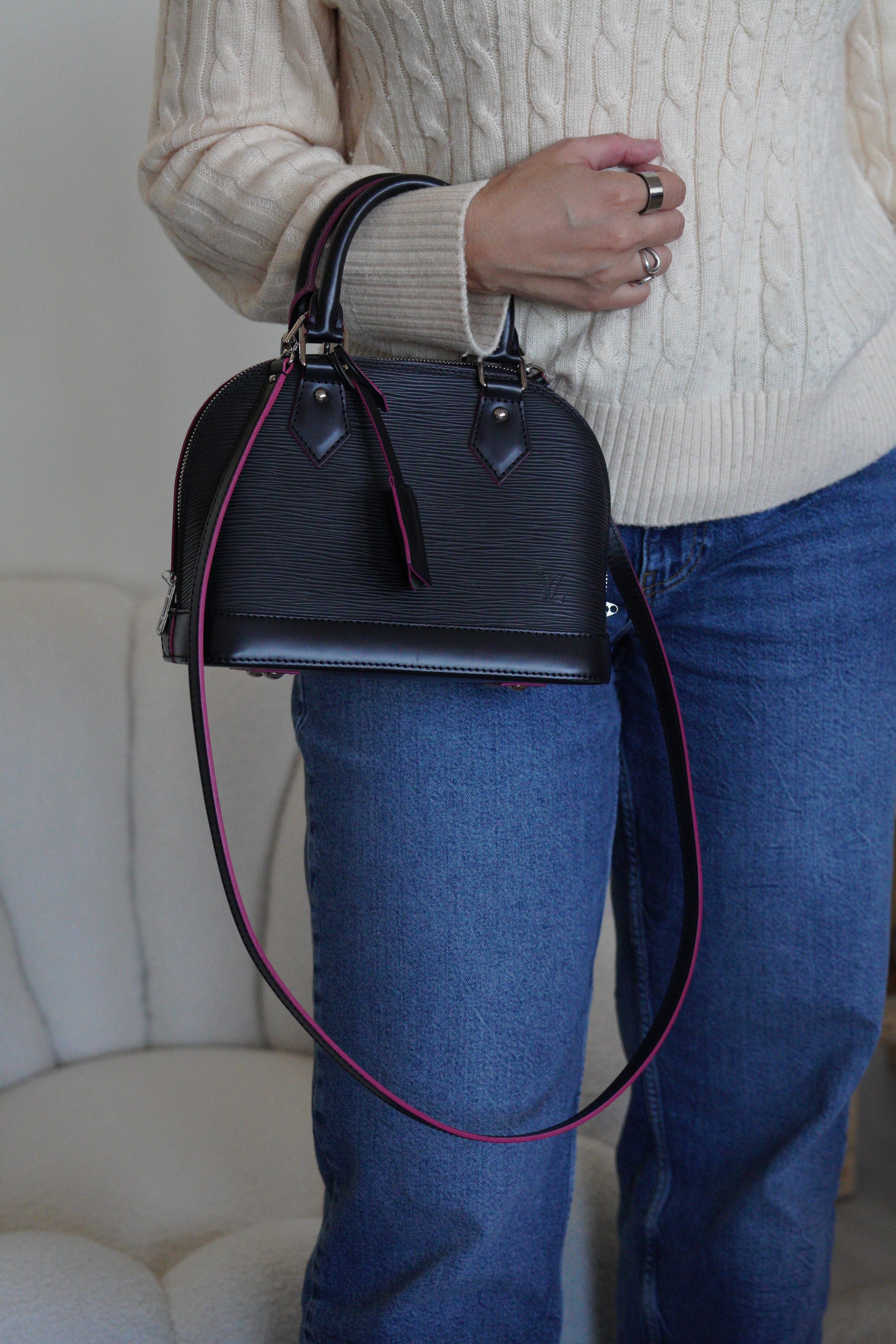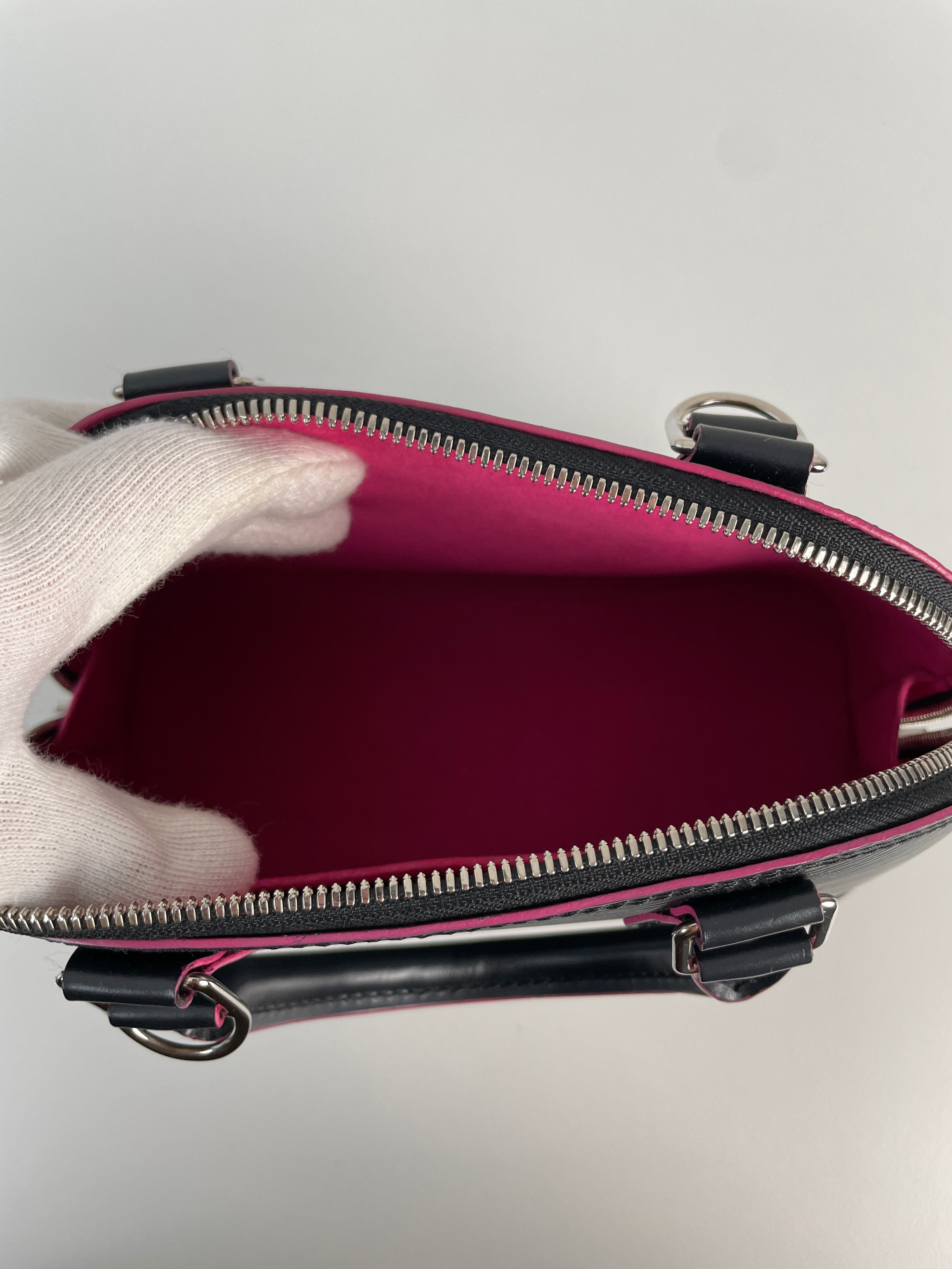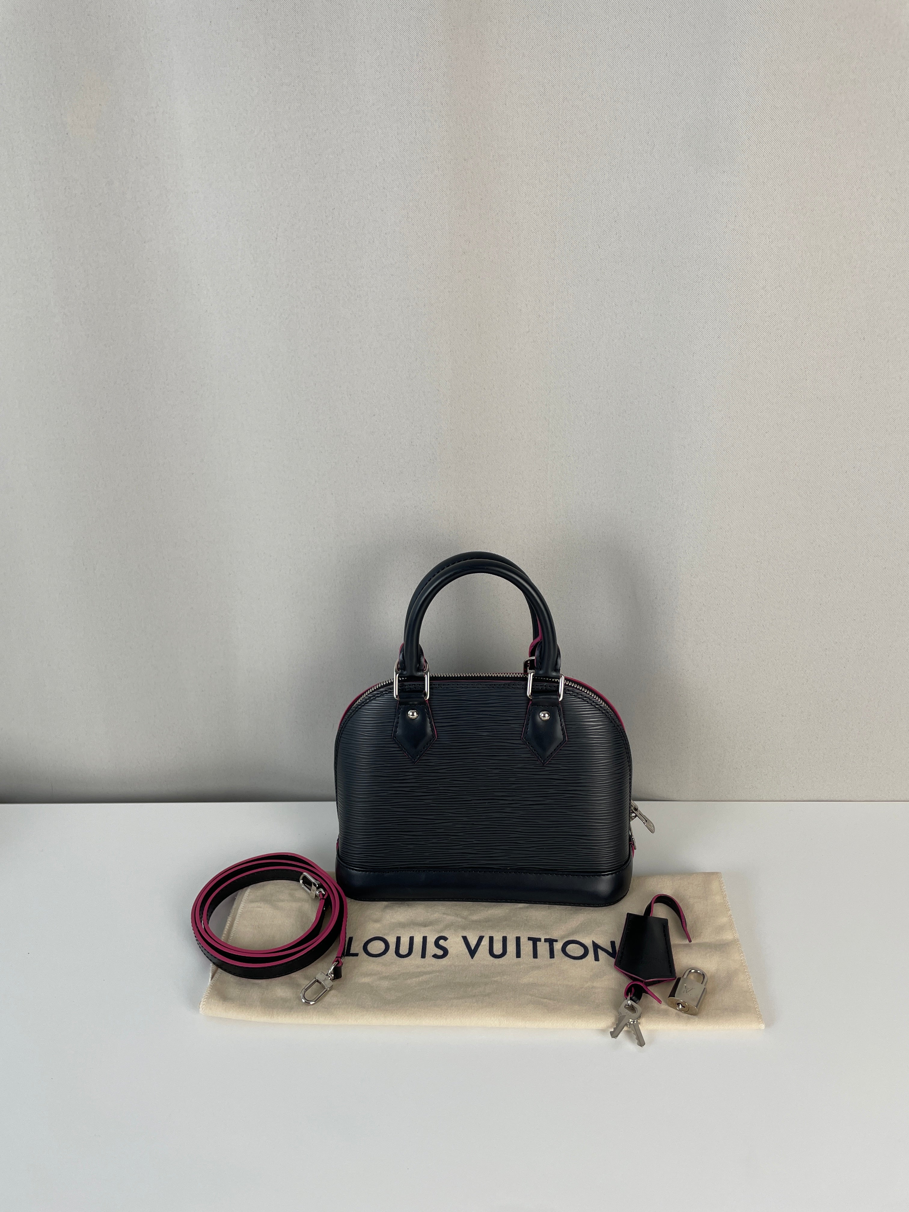 Louis Vuitton Alma BB black epi leather and pink