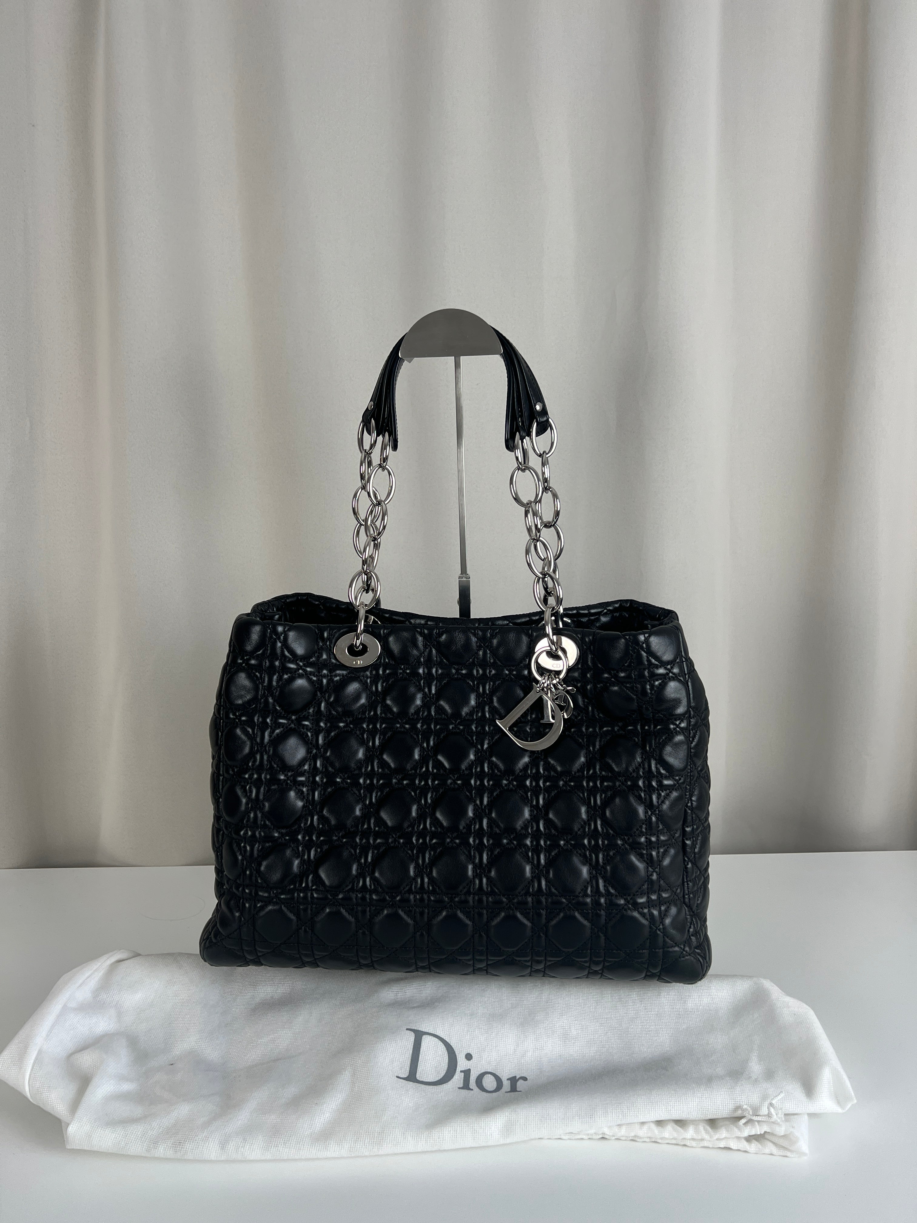 Sac Cabas Dior Soft noir en cuir bijouterie argentée