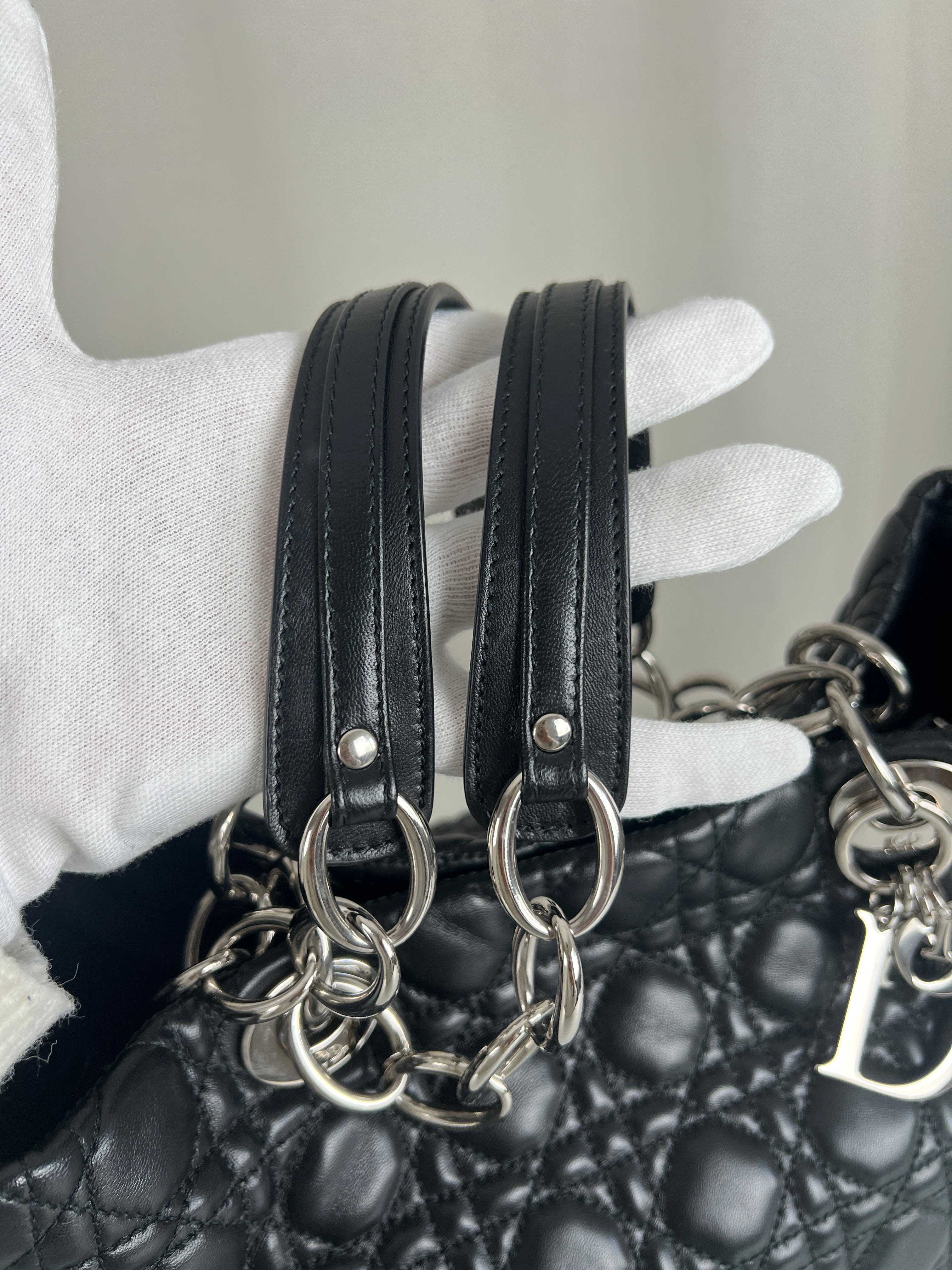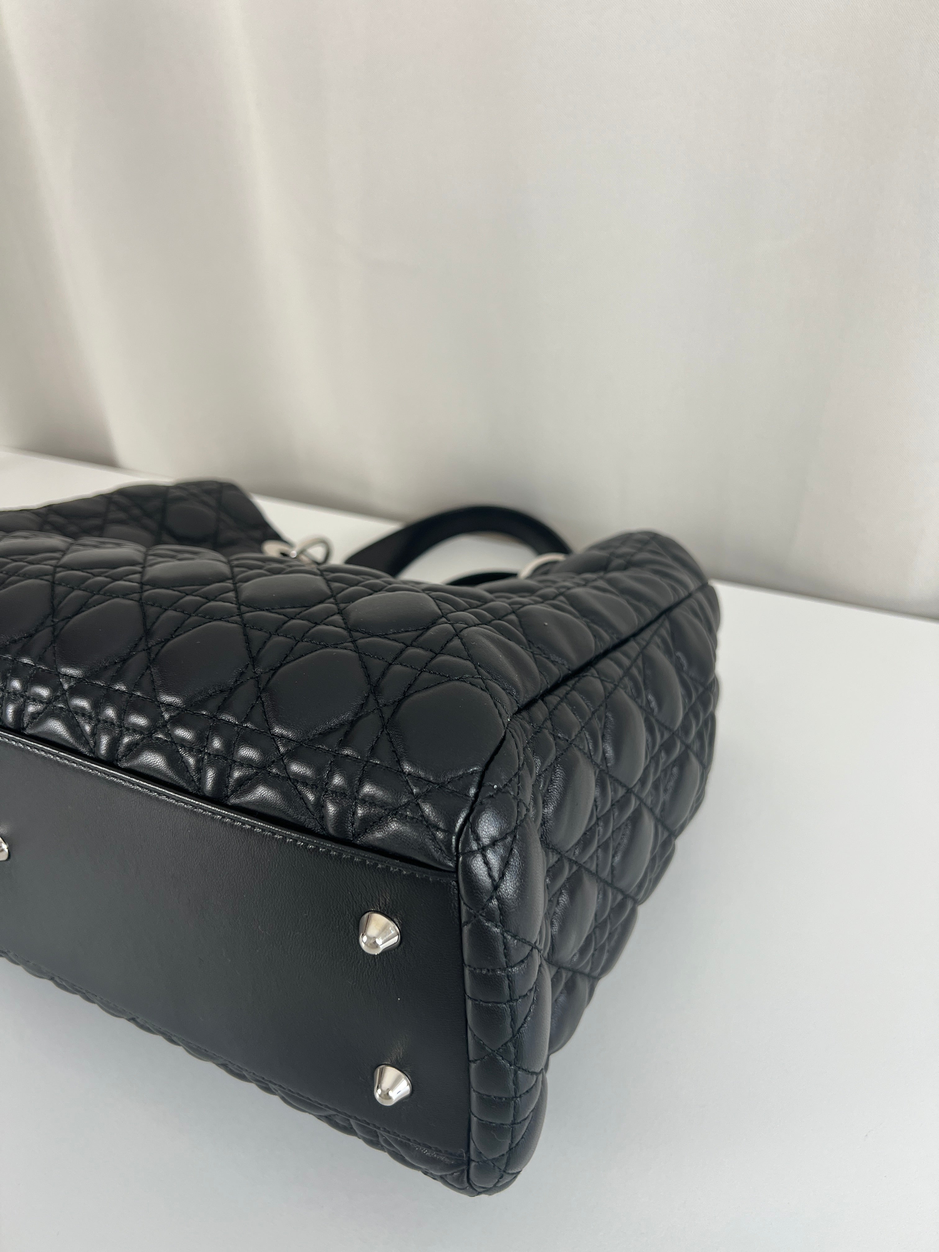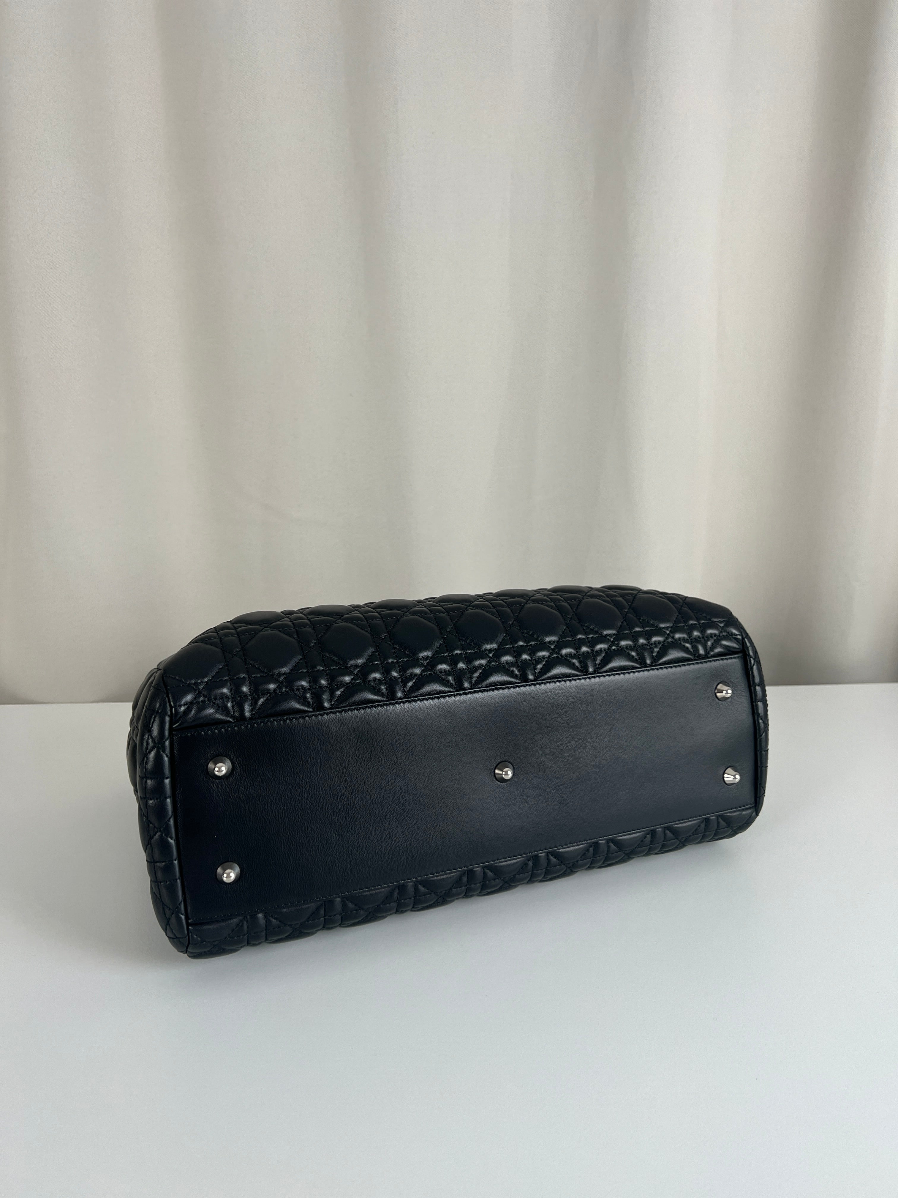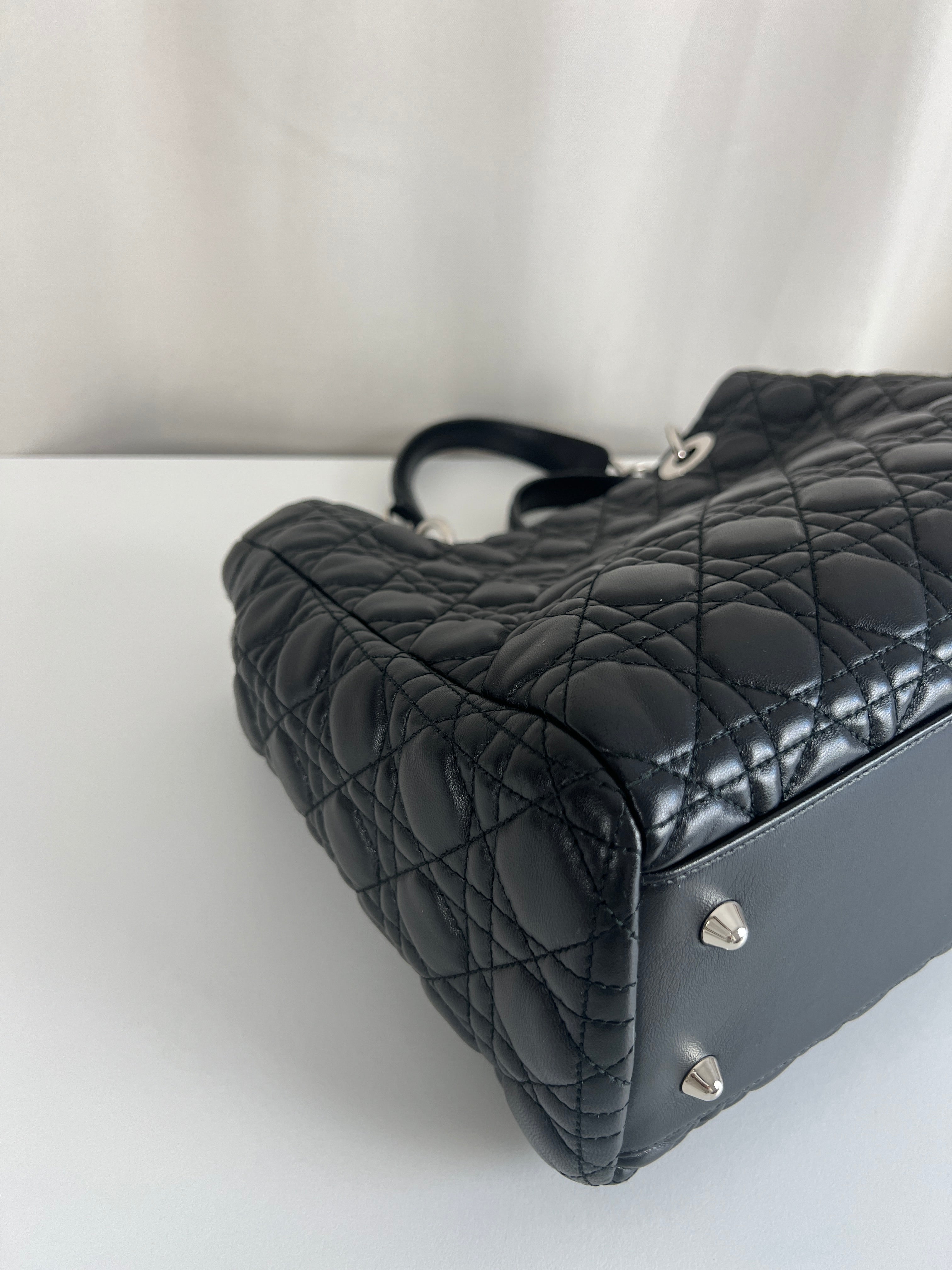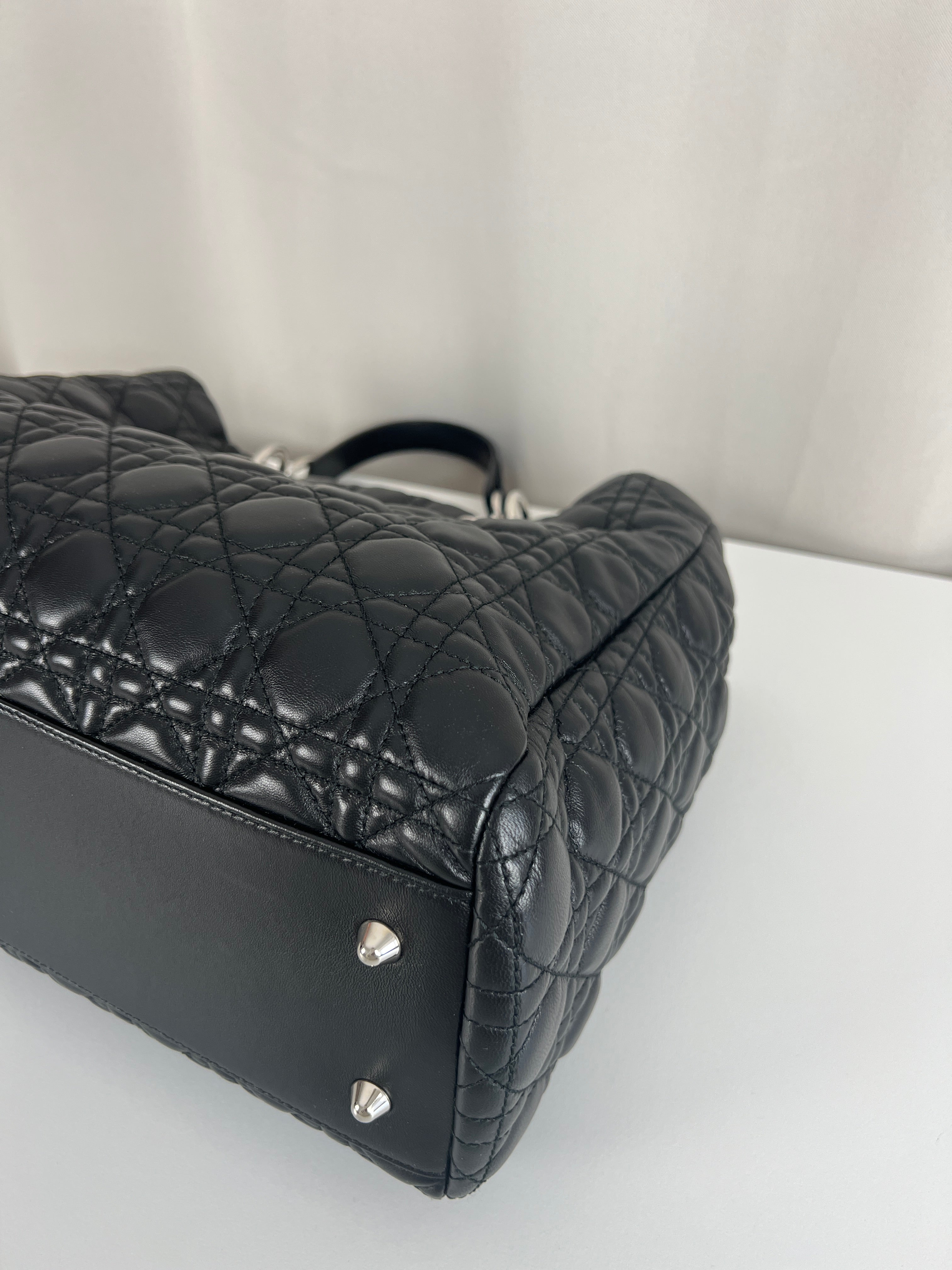 Ce cabas en cuir Dior Soft est de couleur noir avec bijouterie argentée. L'état du sac est très bon. Il est livré avec un dustbag et un certificat Entrupy. L'extérieur est très bien, le cuir est très bien. Les coins sont également très bons. Les poignées sont très bonnes. La bijouterie a de petites rayures mais c'est naturel. L'intérieur est également en super état. L'intérieur est assez grand avec divers espaces de rangement pochettes, c'est un sac parfait au quotidien !