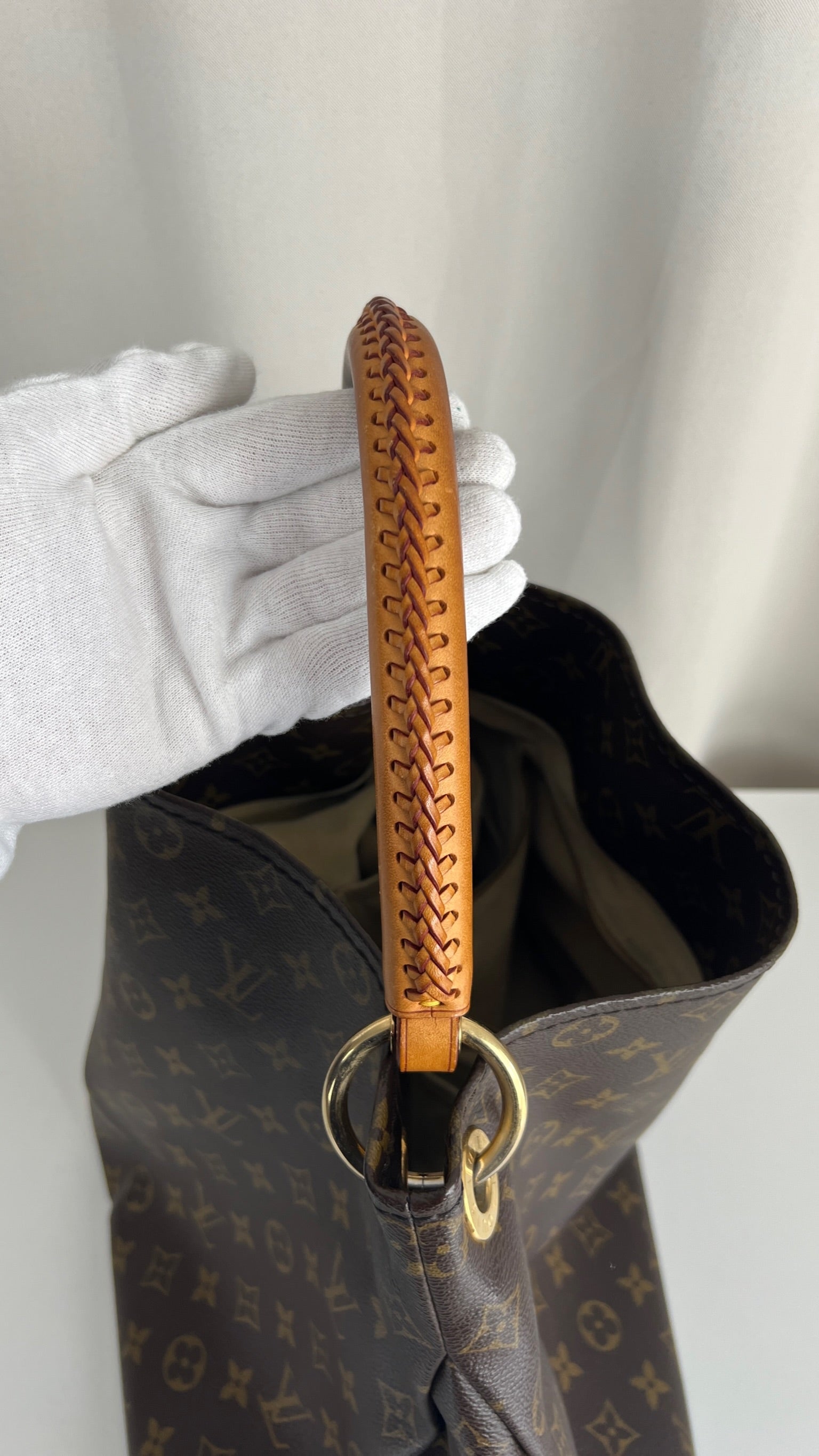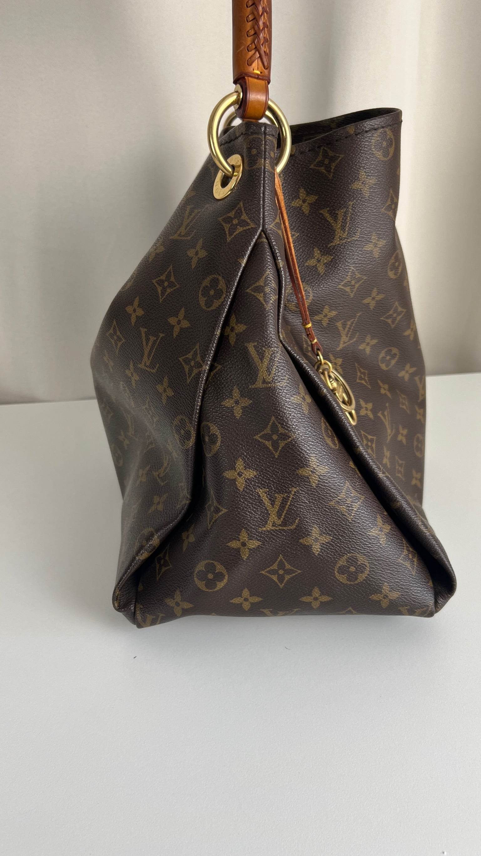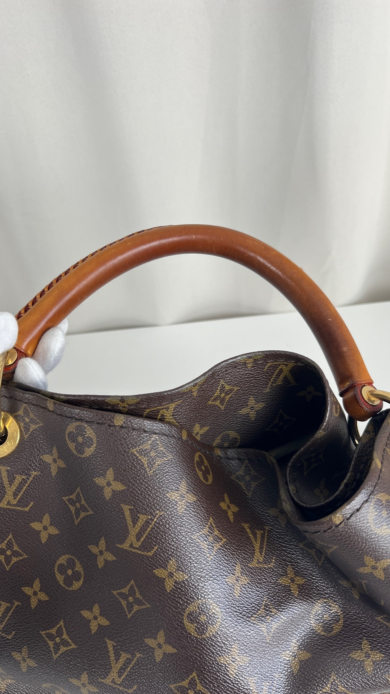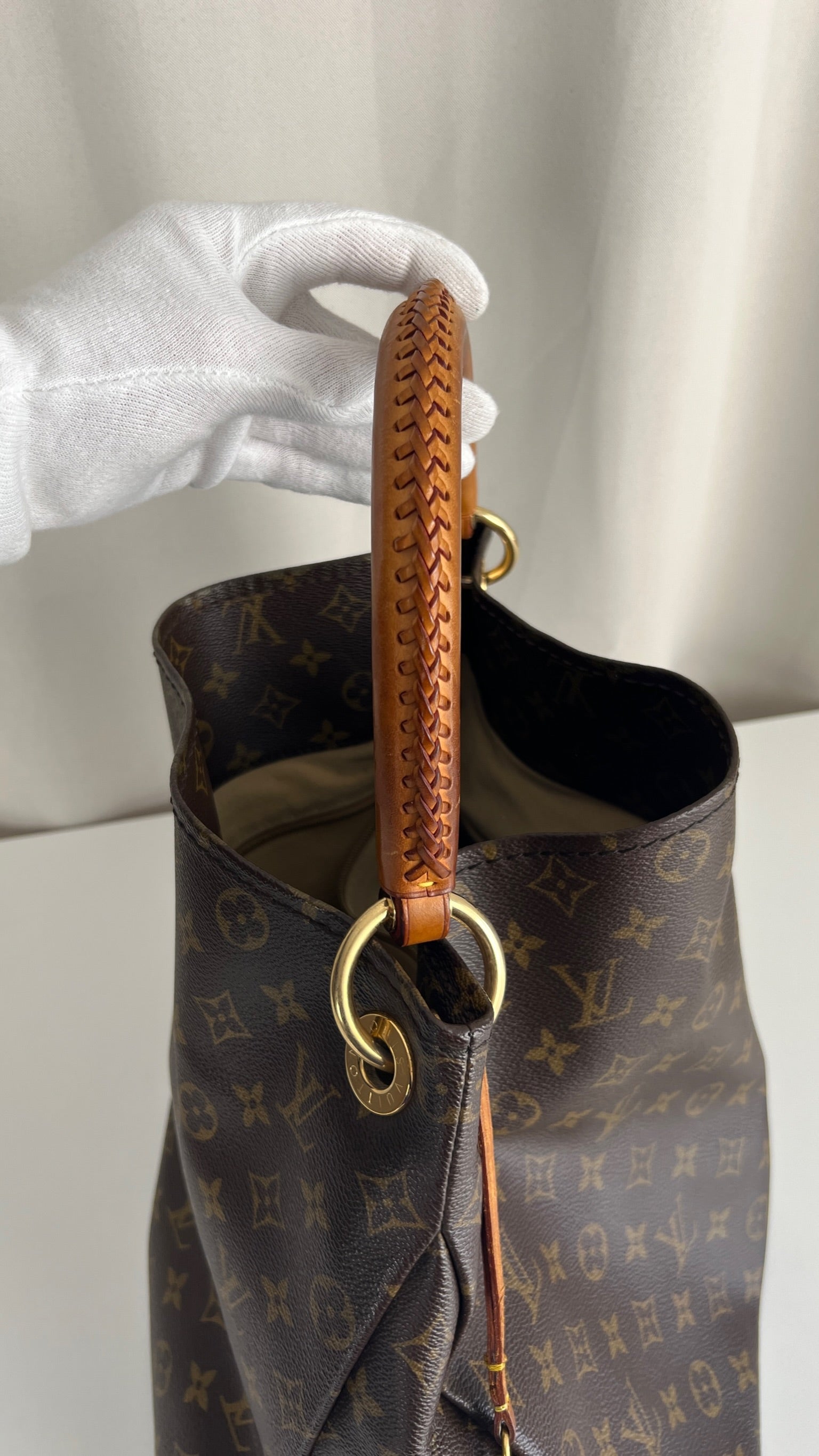 Ce sac Louis Vuitton Artsy MM Monogram est en très bon état. La toile est en très bon état. Les coins sont en très bon état. La poignée est tanné mais en très bon état. L'intérieur est en bon état avec quelques petits signes d'usure. La bijouterie présentent de petites rayures très classique sur un sac de seconde main.