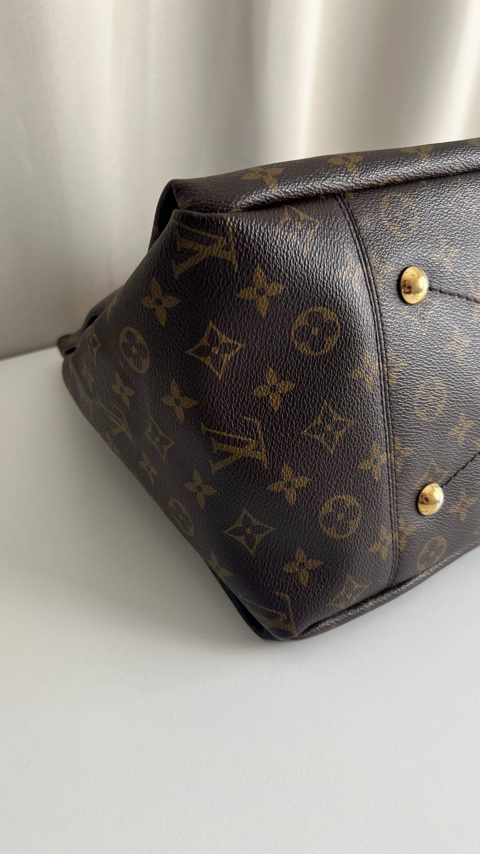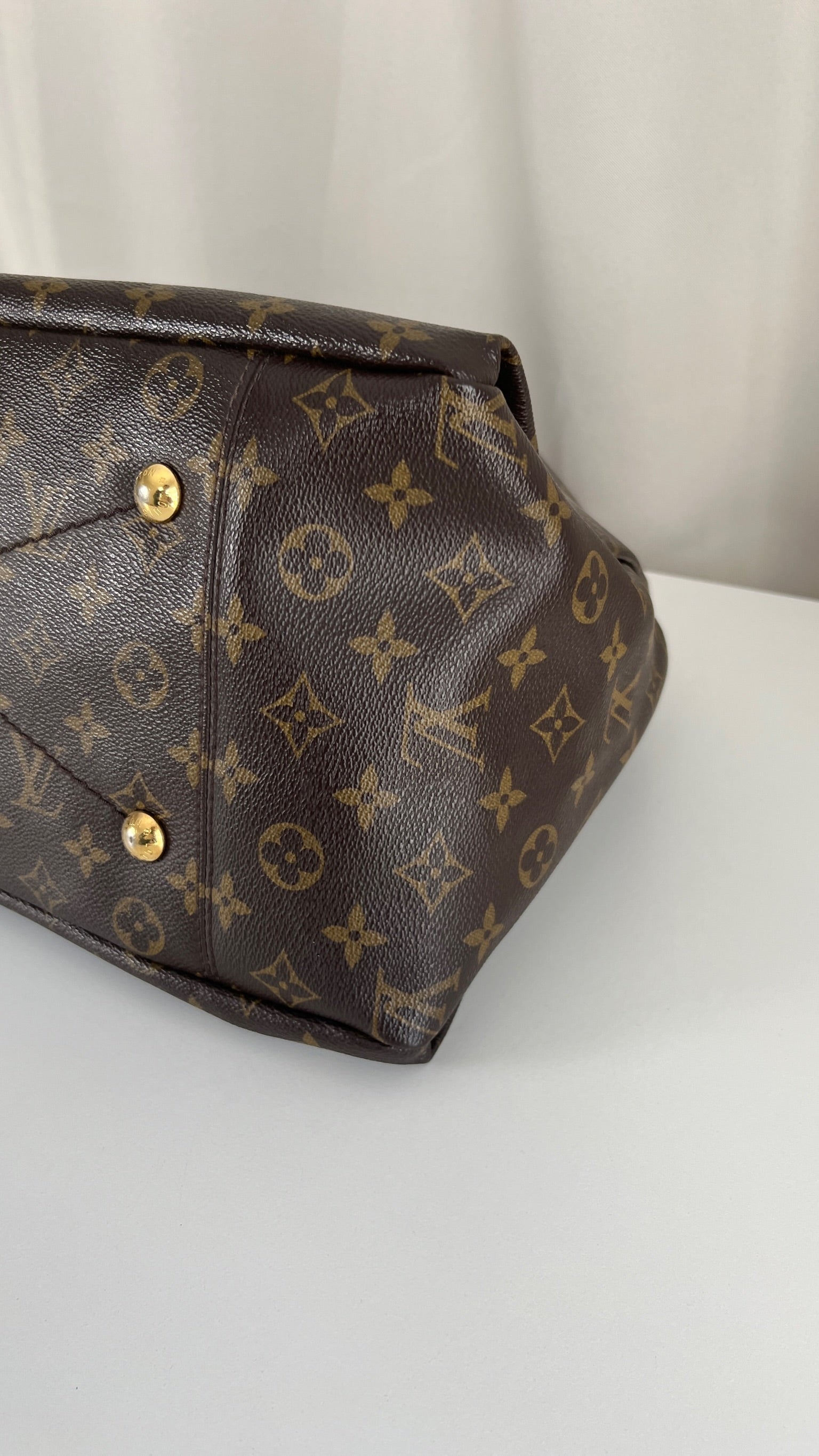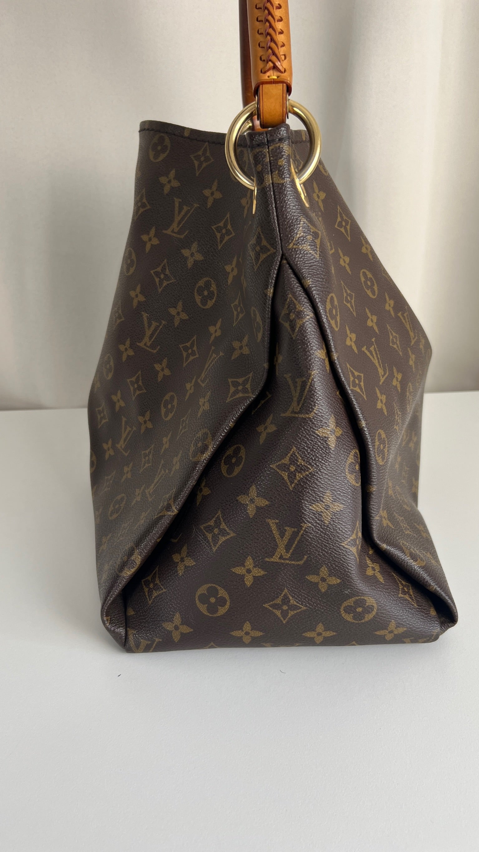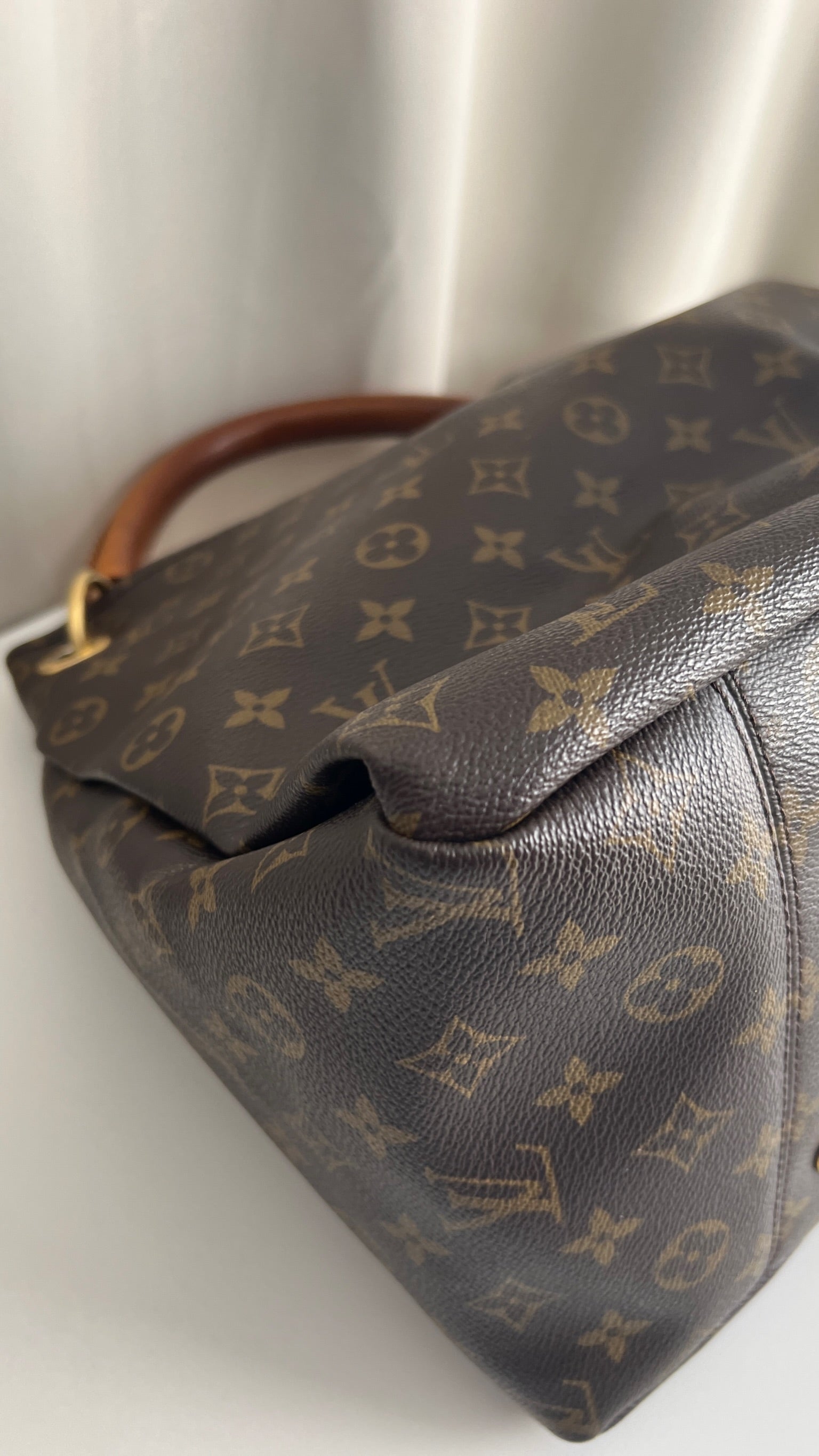 Ce sac Louis Vuitton Artsy MM Monogram est en très bon état. La toile est en très bon état. Les coins sont en très bon état. La poignée est tanné mais en très bon état. L'intérieur est en bon état avec quelques petits signes d'usure. La bijouterie présentent de petites rayures très classique sur un sac de seconde main.