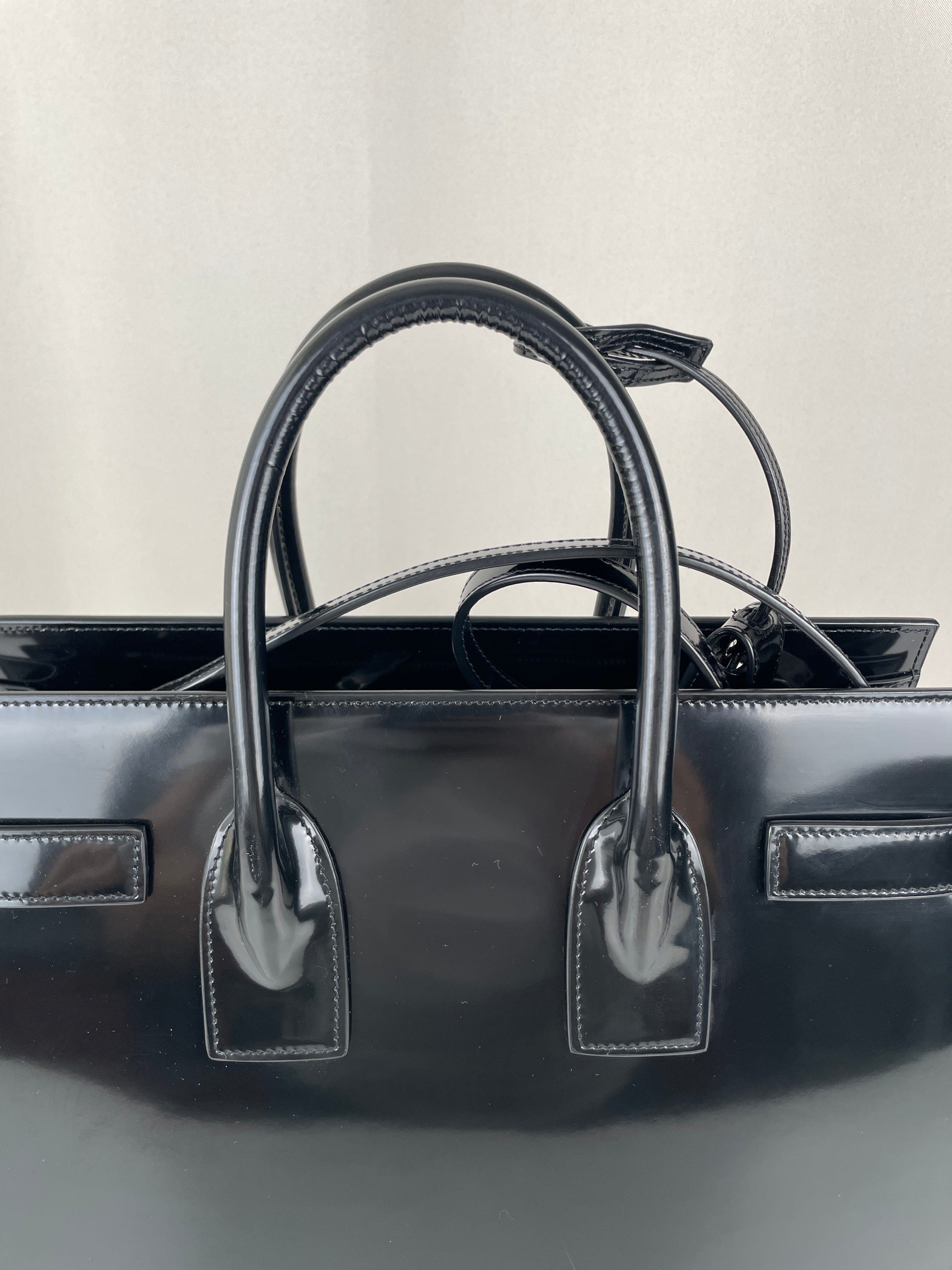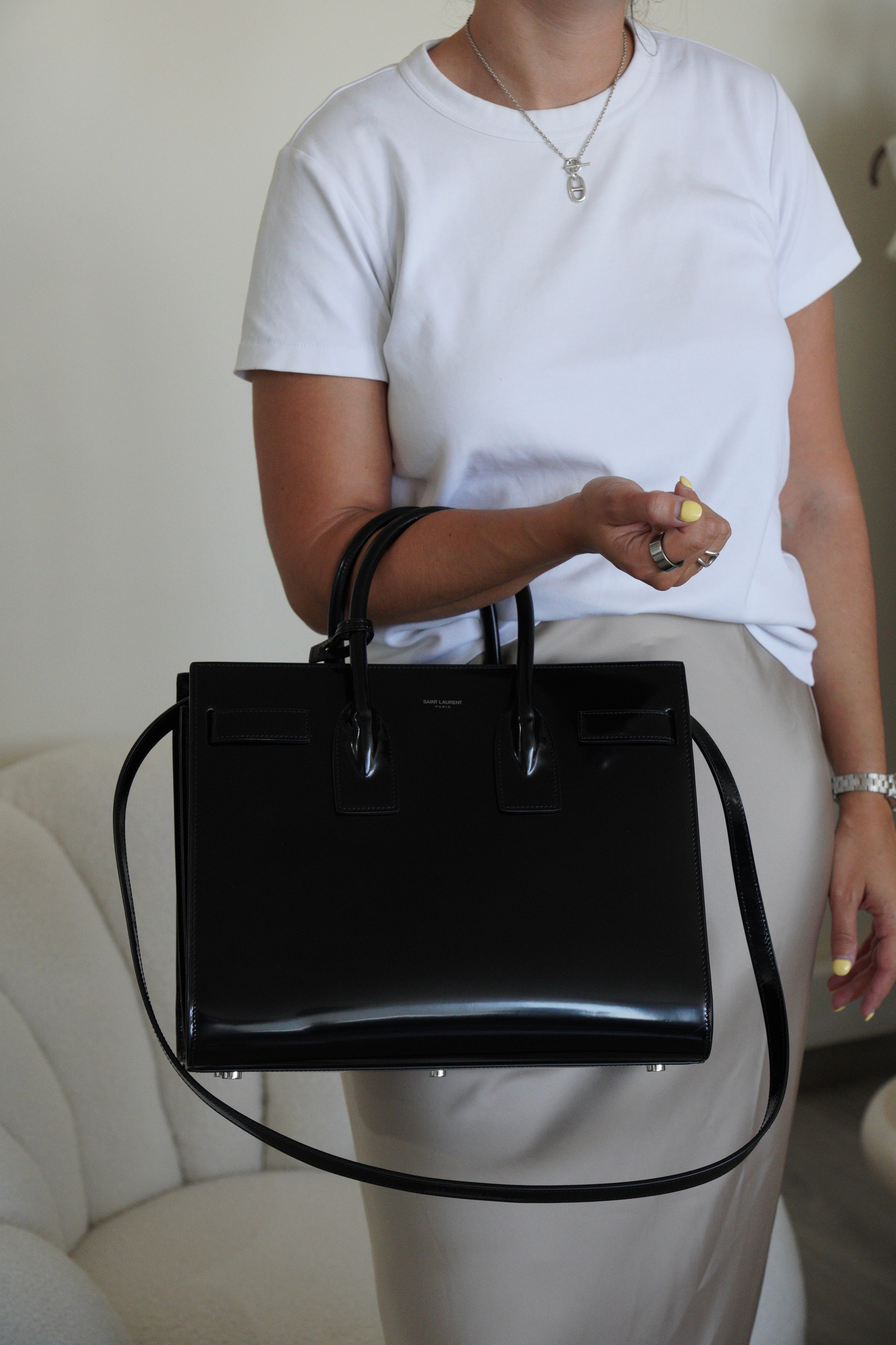 Ce sac Saint Laurent Sac de Jour en noir est une pièce si sophistiquée - c'est un de ces sacs qui élève instantanément n'importe quelle tenue. Le design structuré et le cuir noir élégant lui donnent ce chic parisien sans effort pour lequel Saint Laurent est connu. Il est assez spacieux pour les essentiels de travail mais reste assez raffiné pour les événements du soir. En plus, en avoir un avec tout l'emballage d'origine est toujours un bonus.