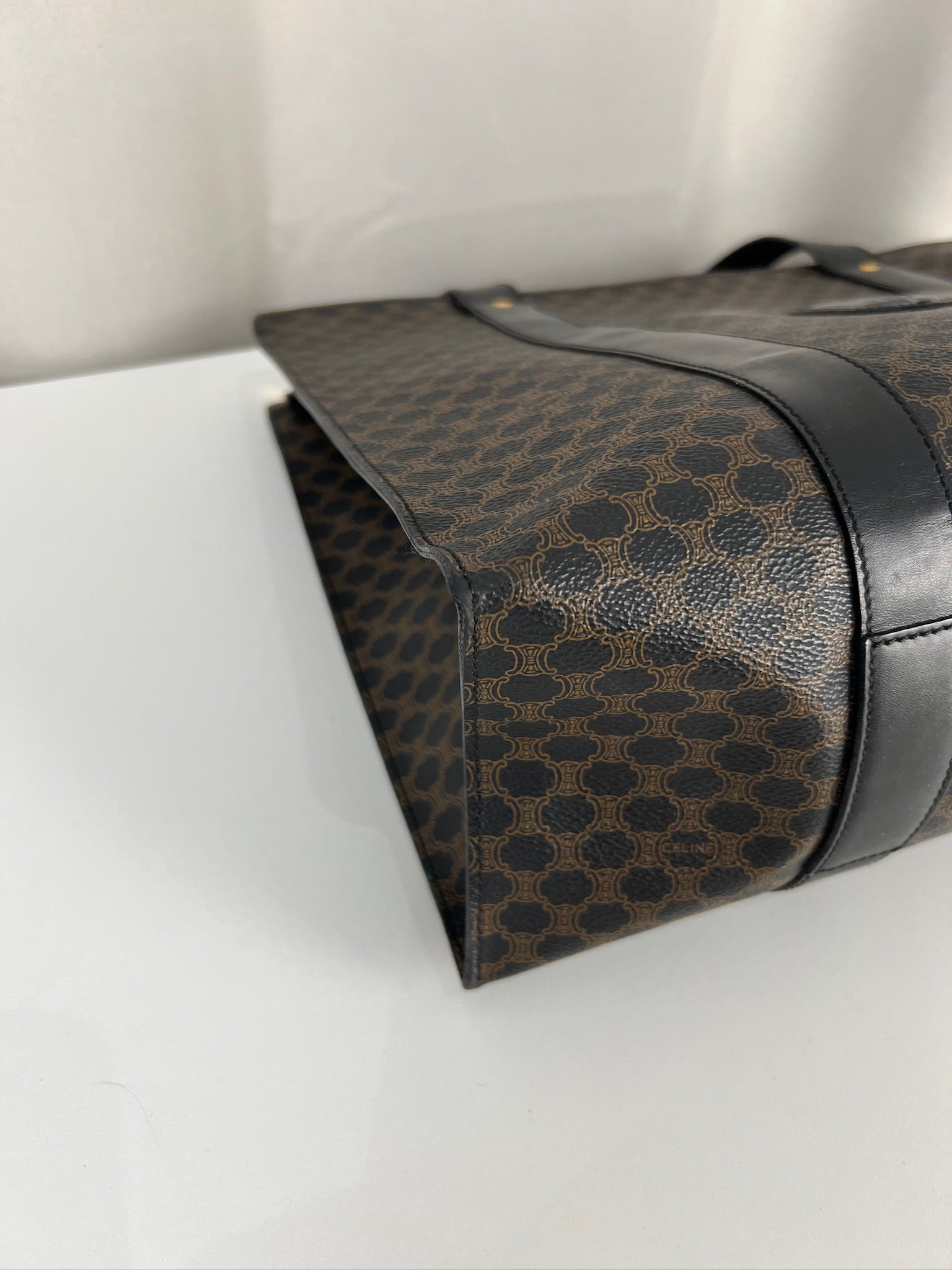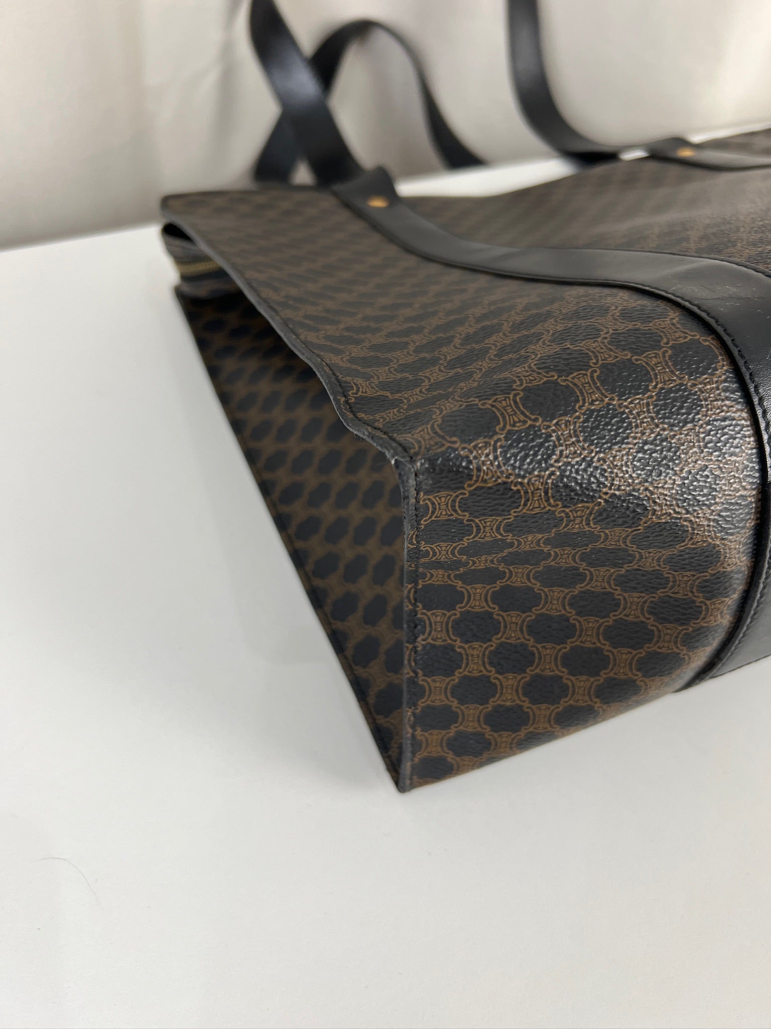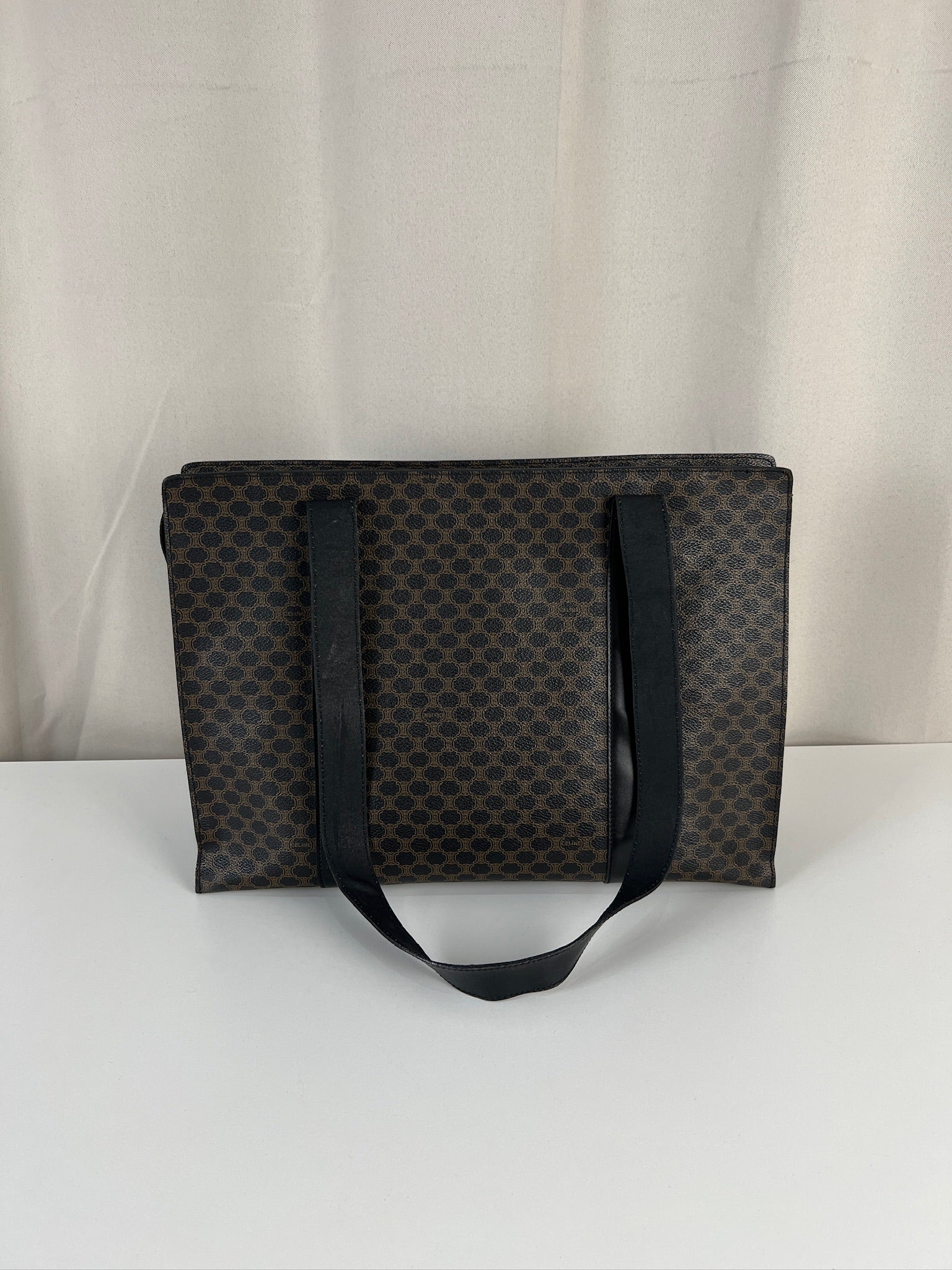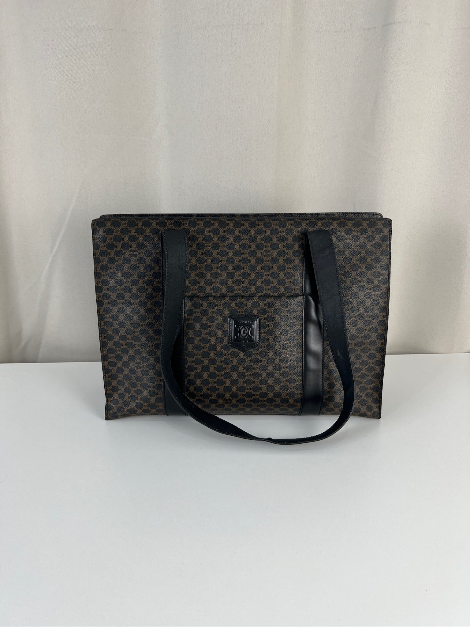 Ce sac cabas Céline Macadam est en bon état. La toile est en très bon état. Les coins sont en bon état un peu frottés. Les anses sont en bon état mais avec quelques petits dommages sur les anses. L'intérieur est en très bon état.