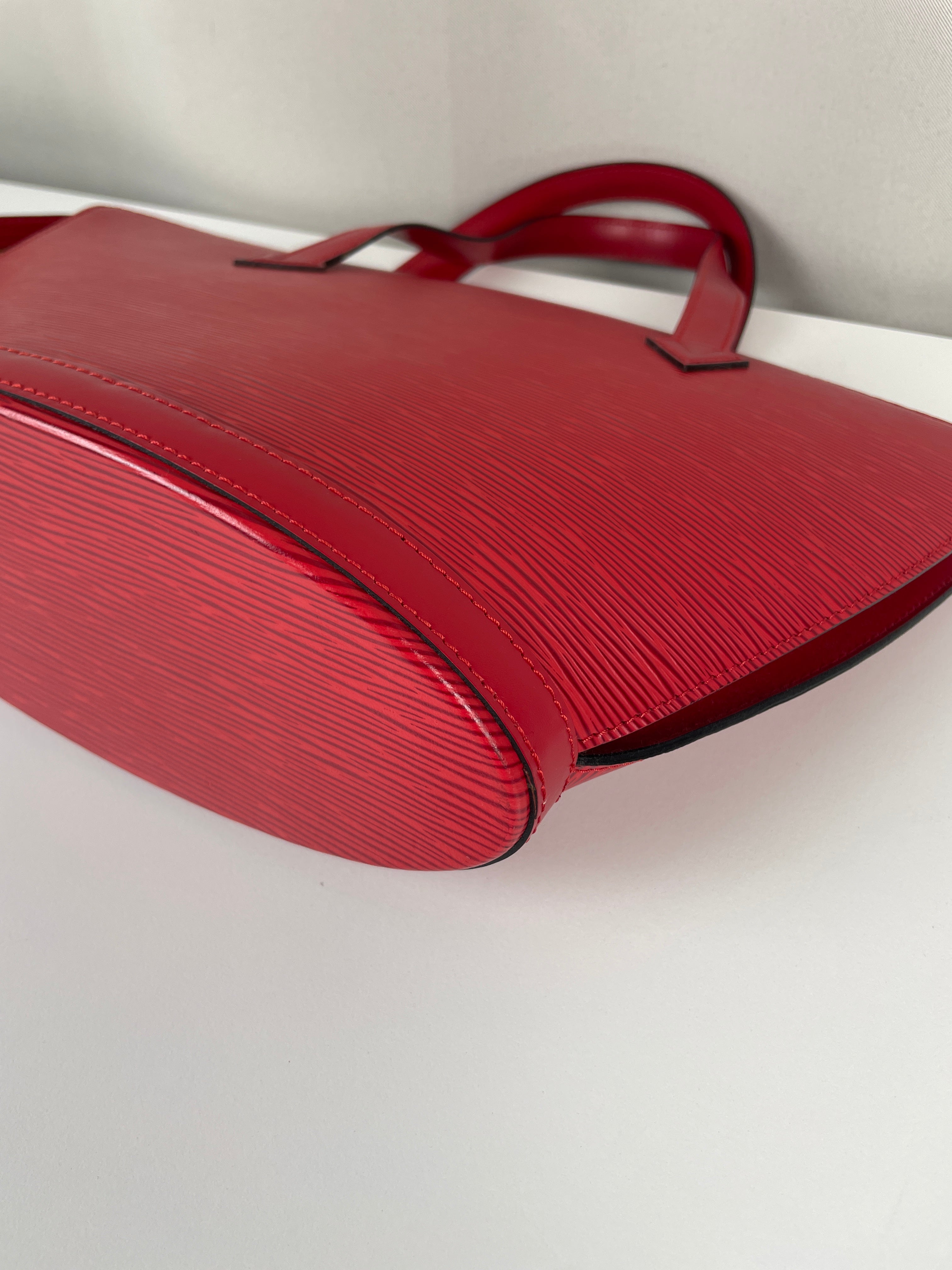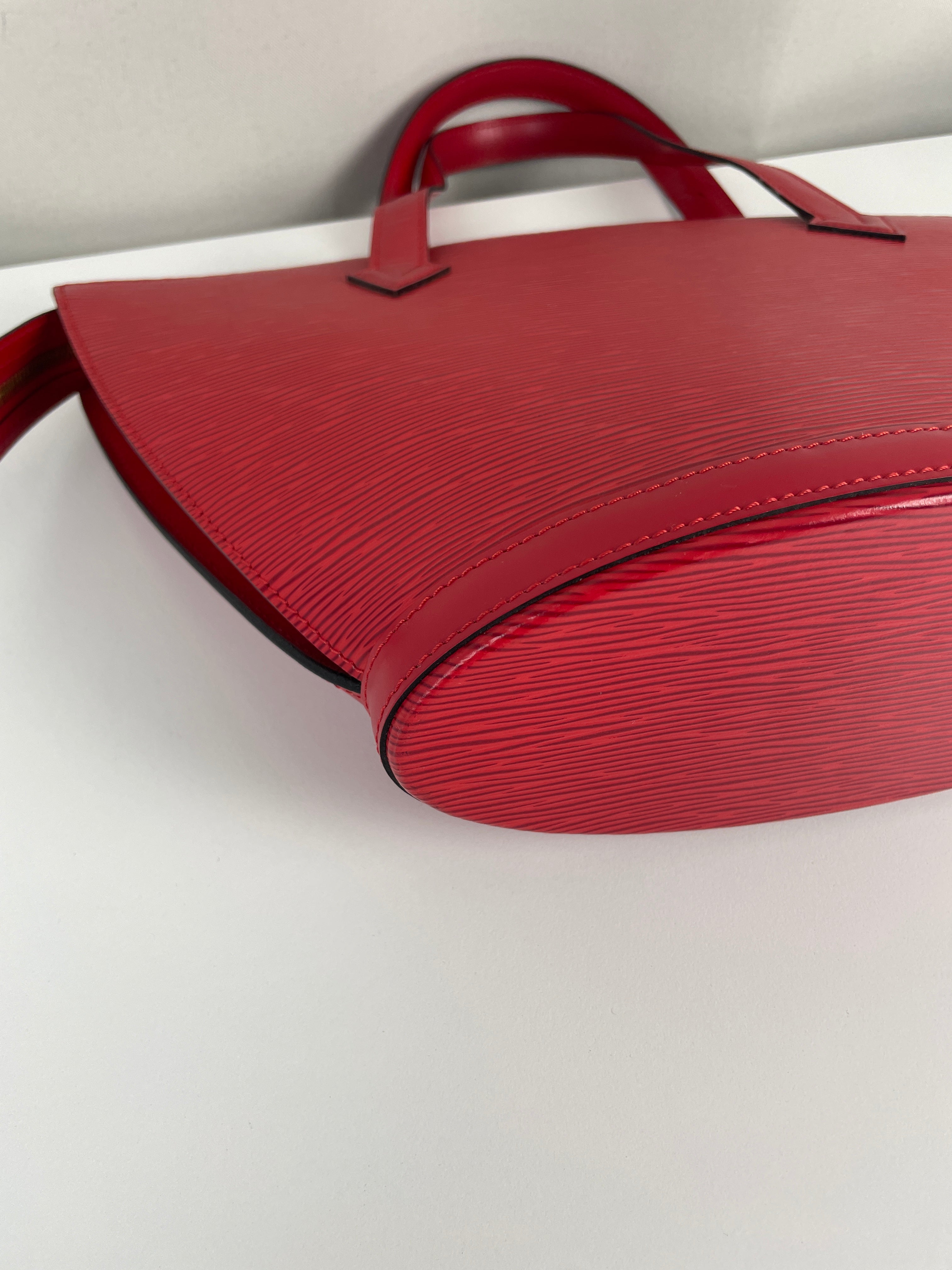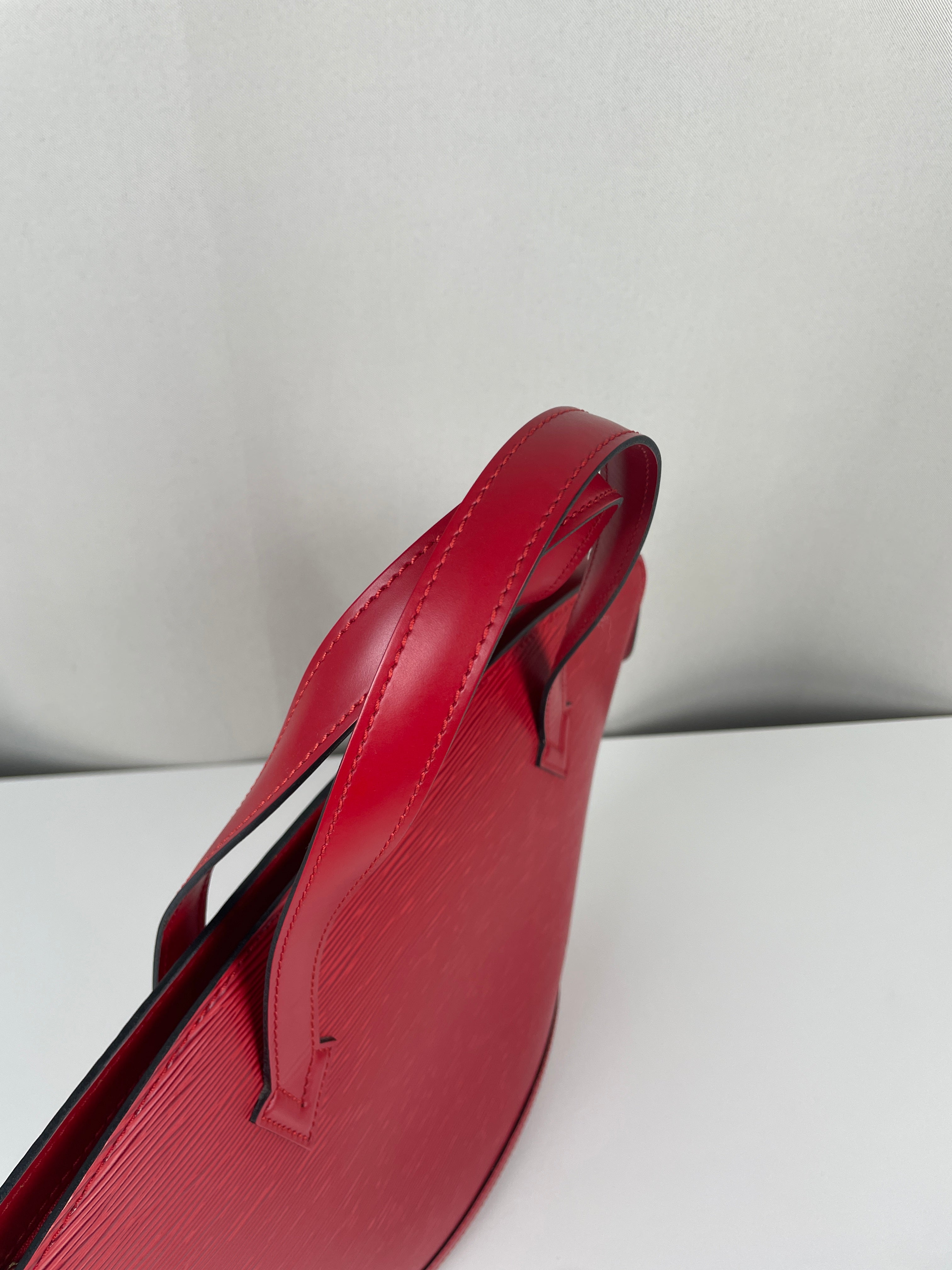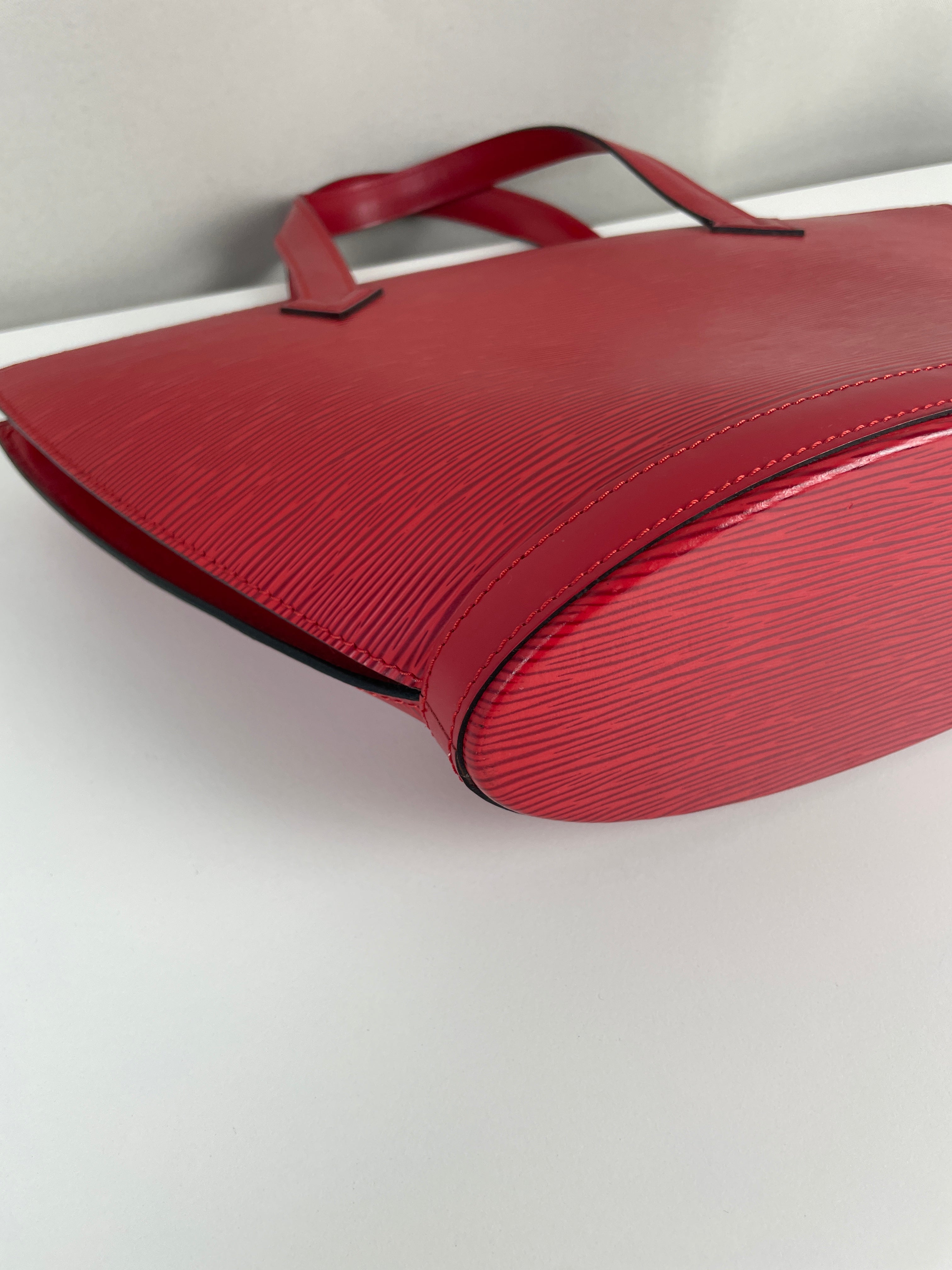 Ce Louis Vuitton Saint Jacques est en très bon état. Le daim à l'intérieur du sac est en très bon état, ainsi que la petite pochette à l'intérieur du sac. Le cuir est en très bon état mais les anses du sac présentent quelques traces d'usure très légères.