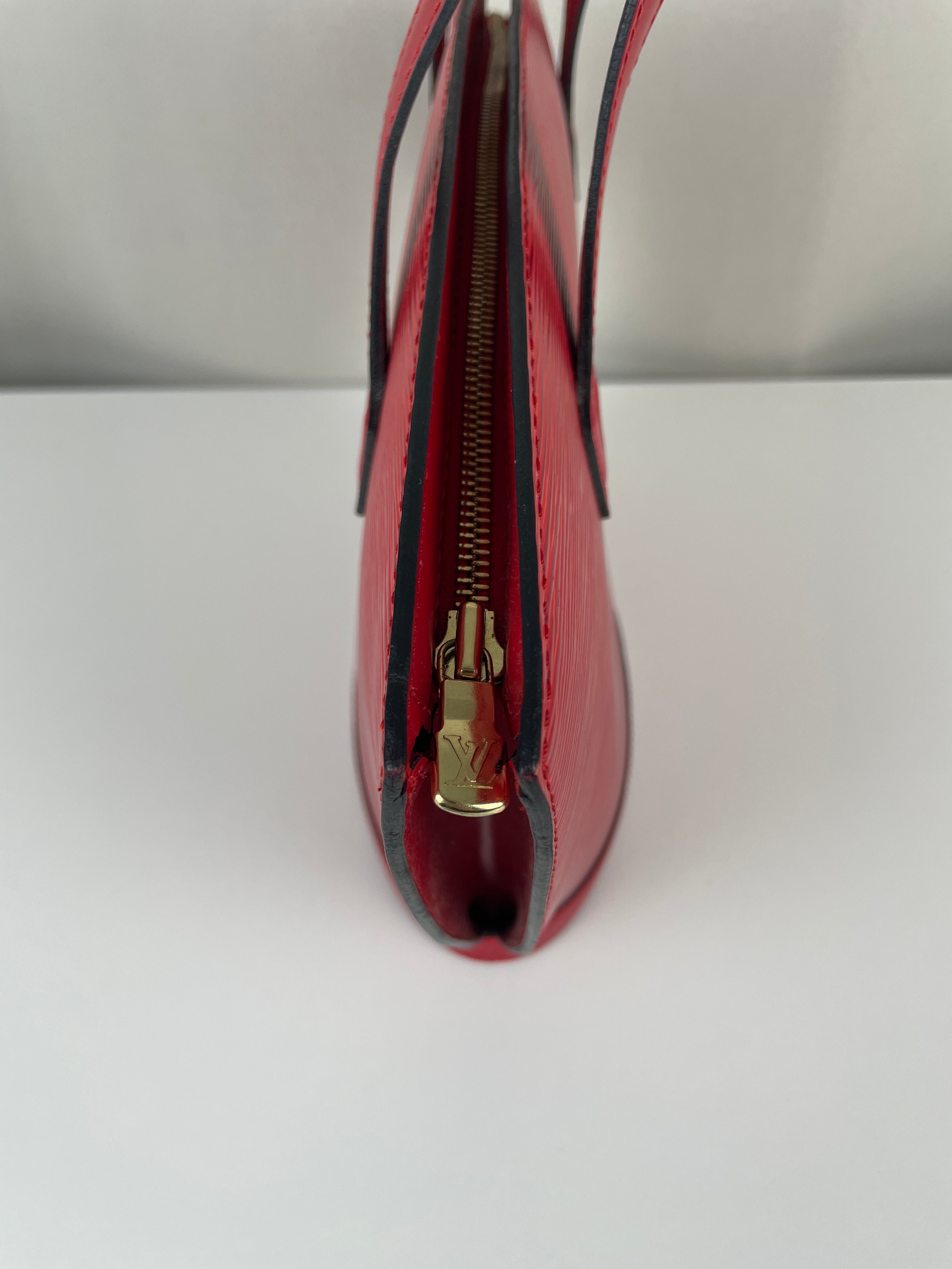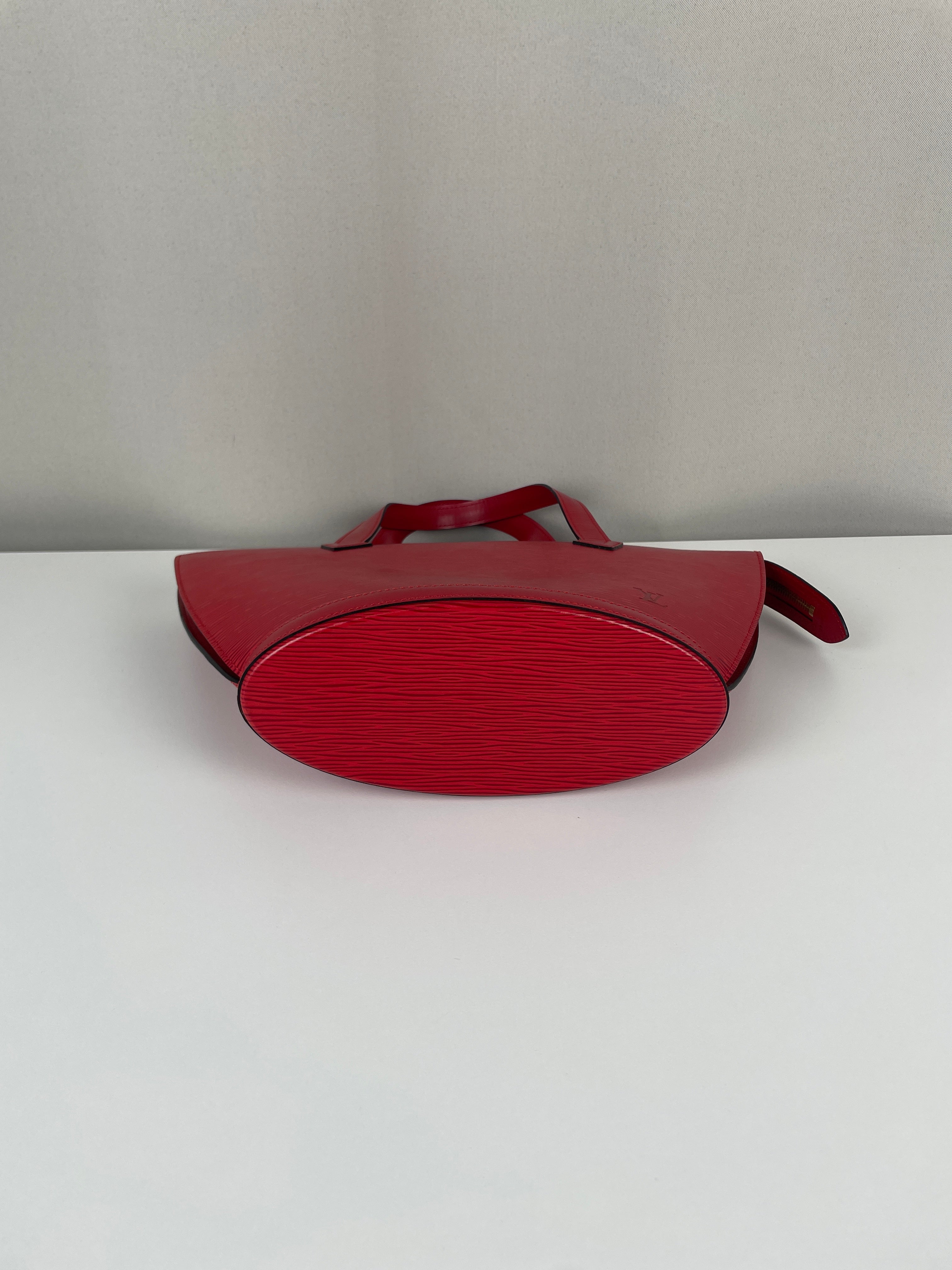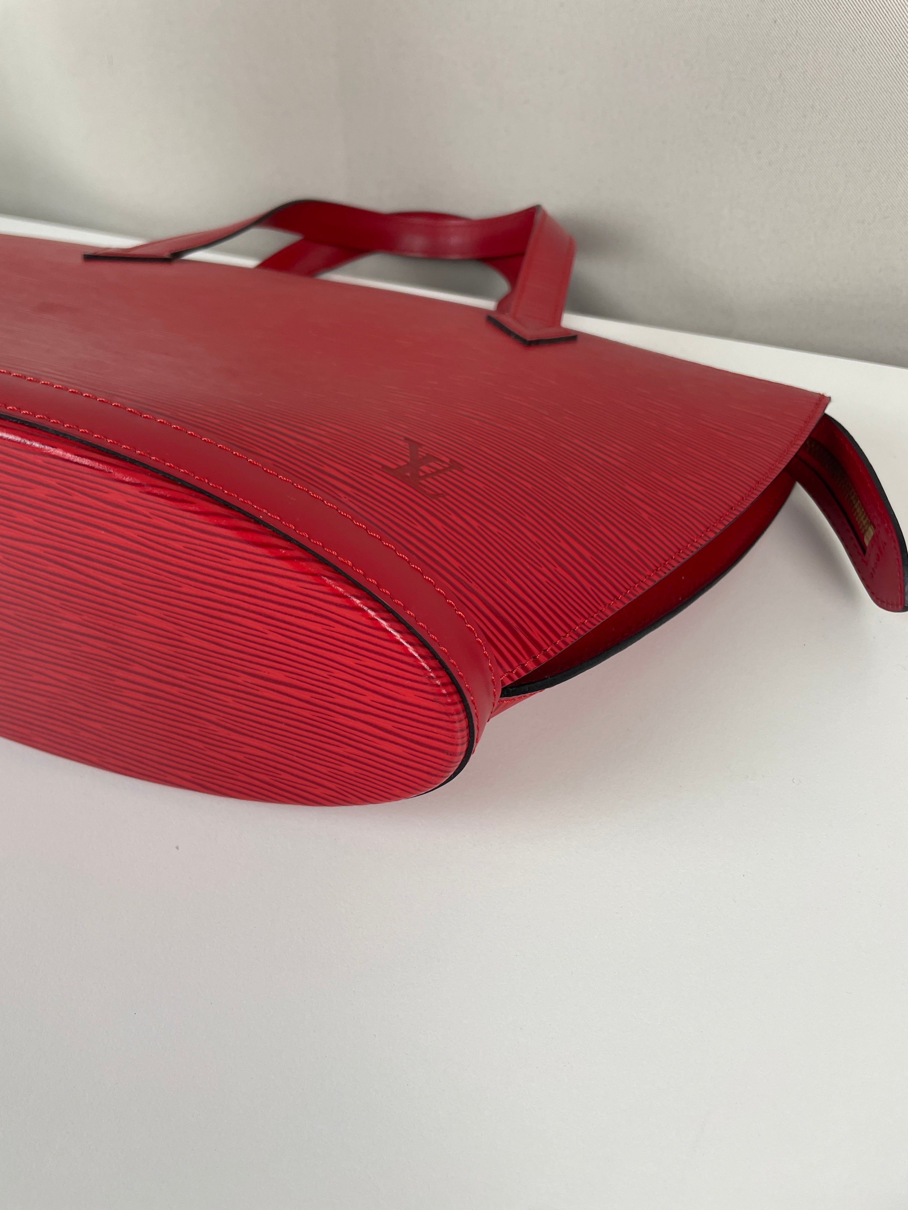 Ce Louis Vuitton Saint Jacques est en très bon état. Le daim à l'intérieur du sac est en très bon état, ainsi que la petite pochette à l'intérieur du sac. Le cuir est en très bon état mais les anses du sac présentent quelques traces d'usure très légères.