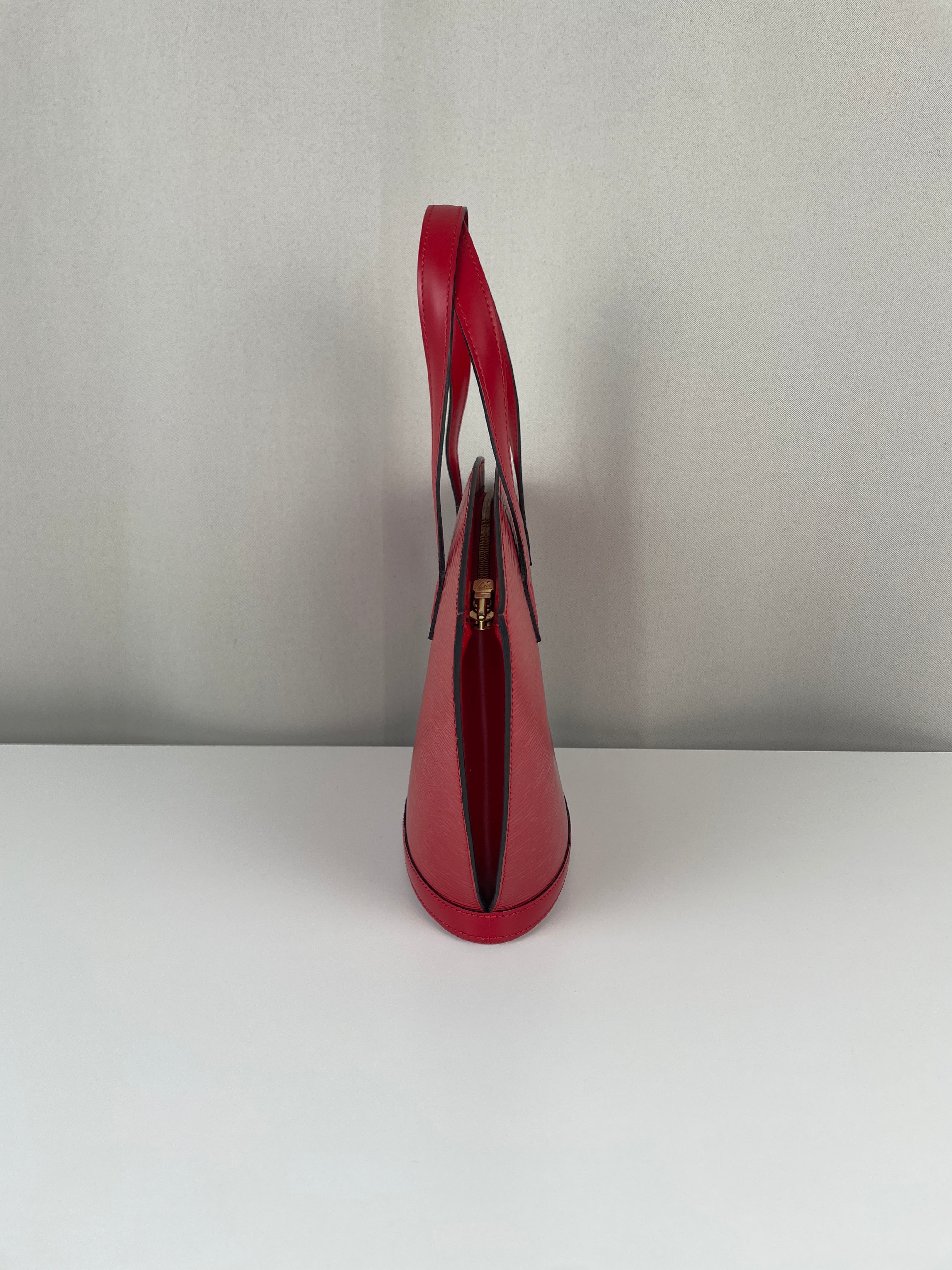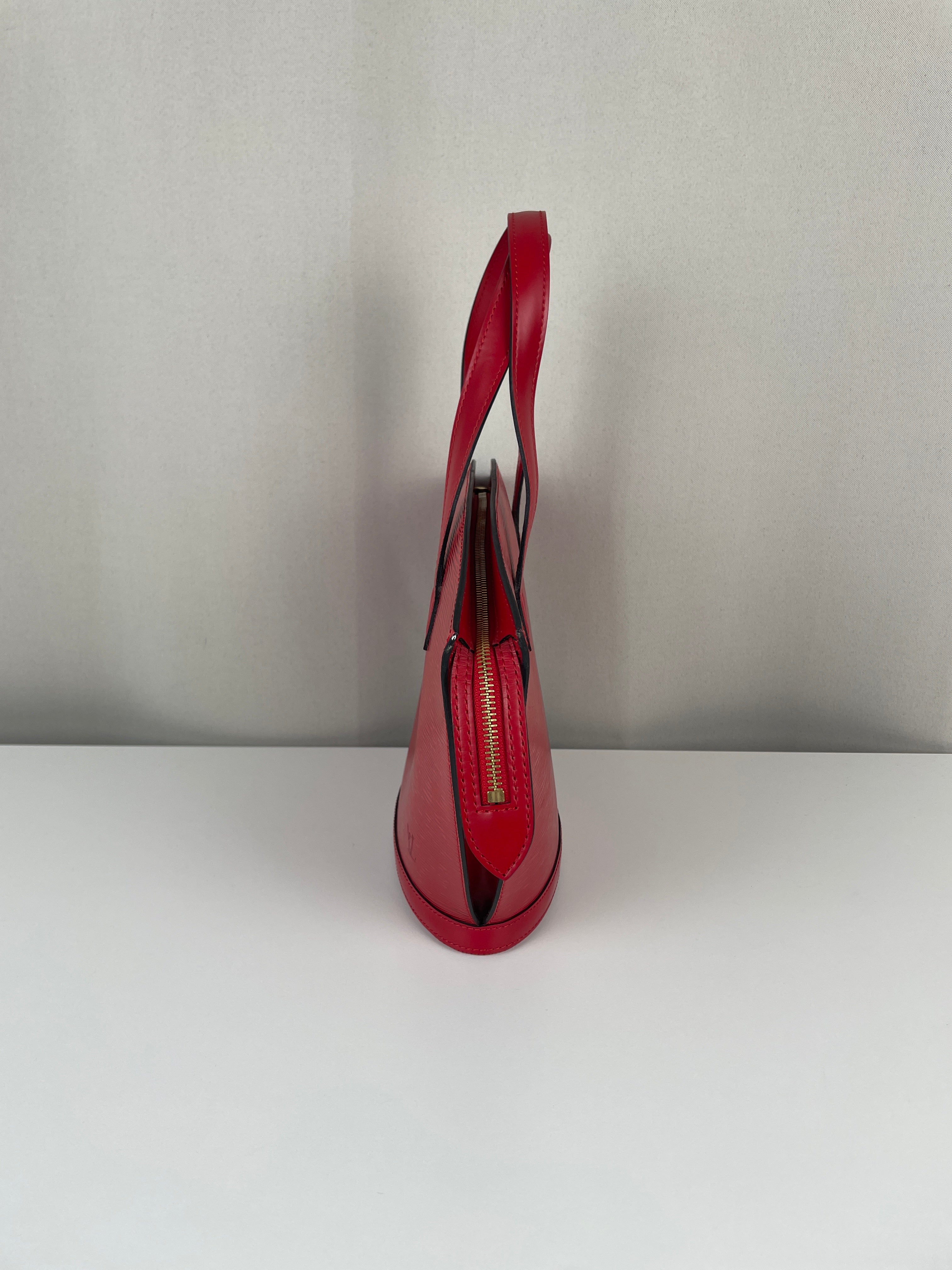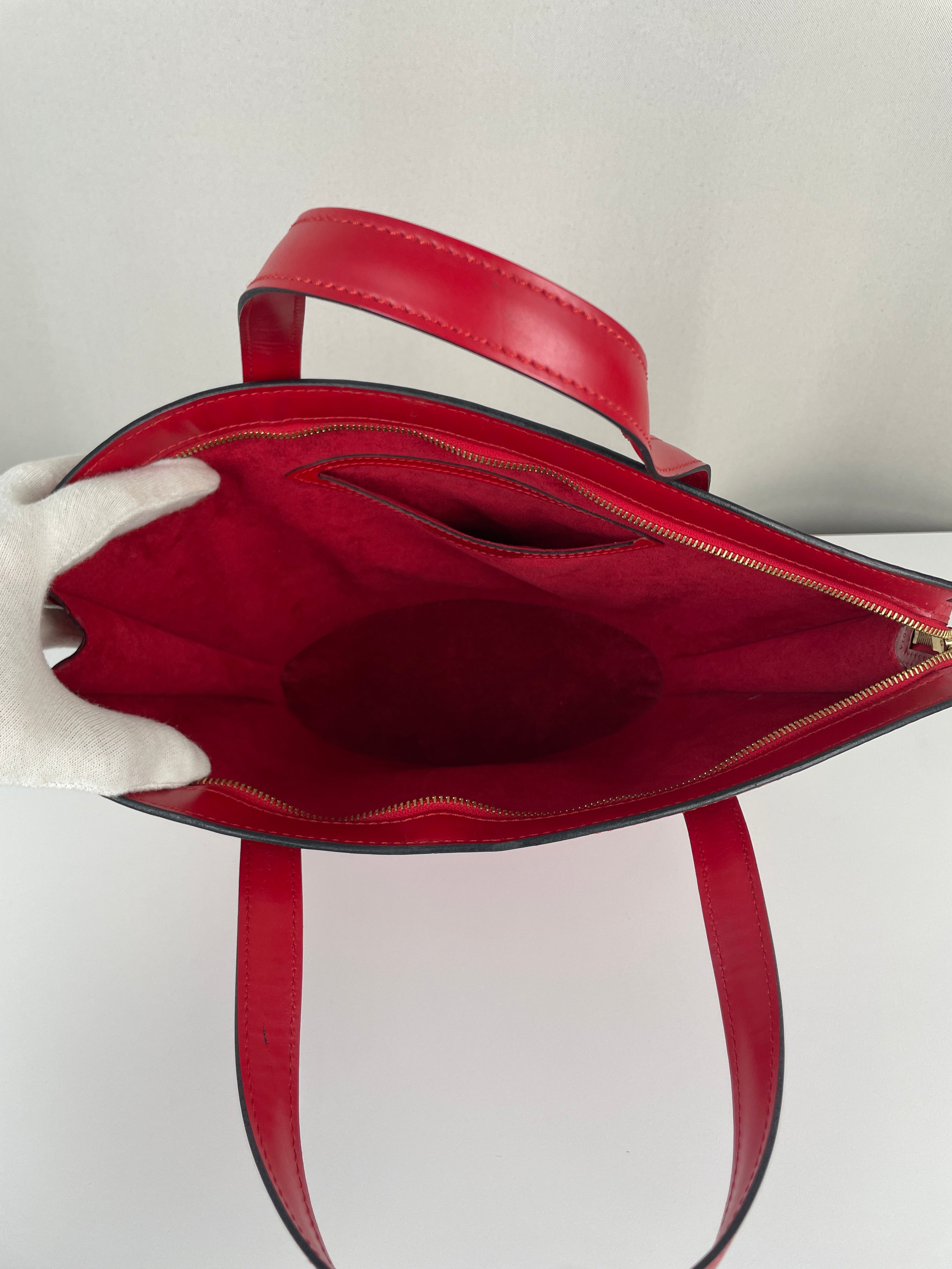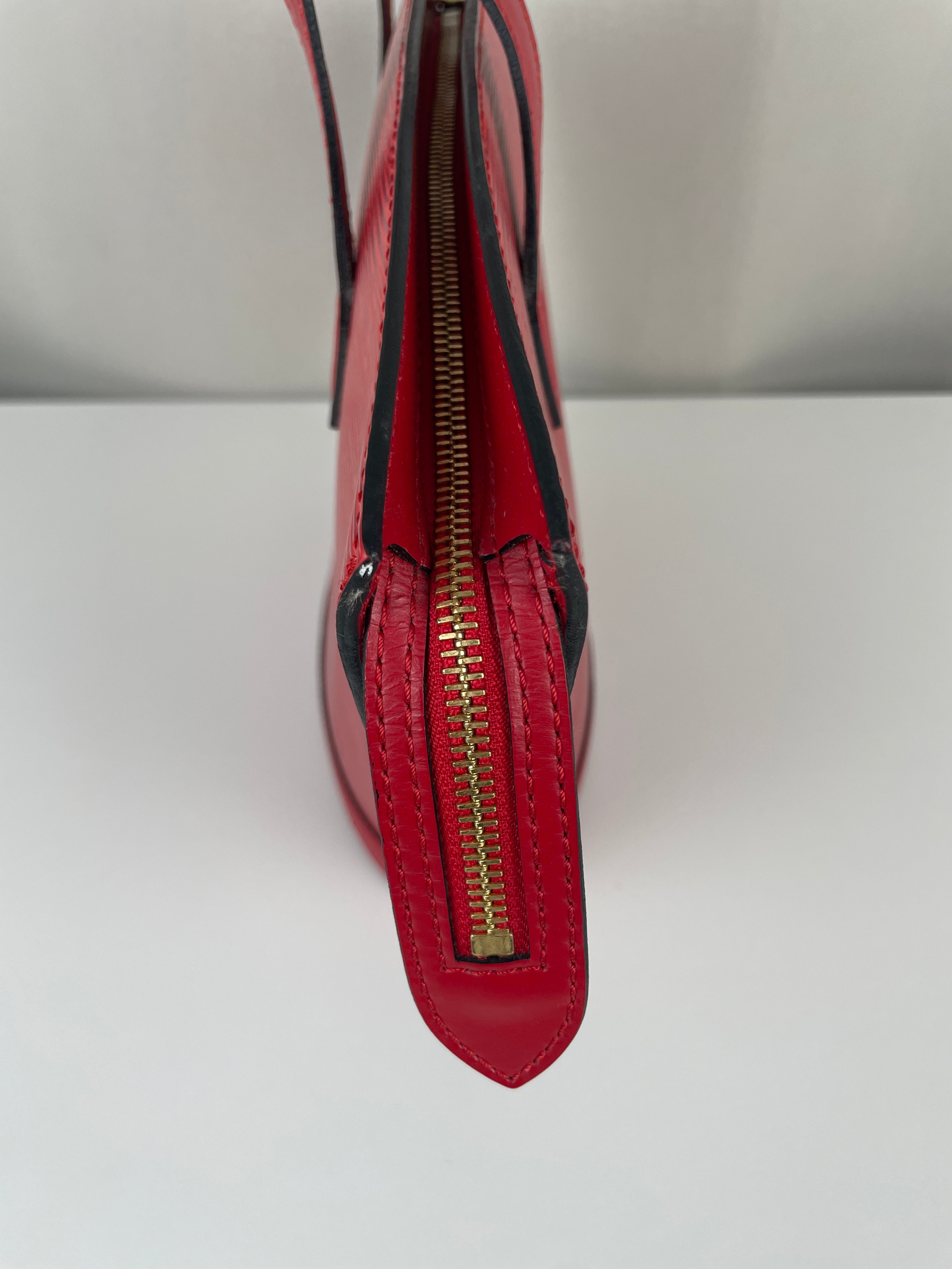 Ce Louis Vuitton Saint Jacques est en très bon état. Le daim à l'intérieur du sac est en très bon état, ainsi que la petite pochette à l'intérieur du sac. Le cuir est en très bon état mais les anses du sac présentent quelques traces d'usure très légères.