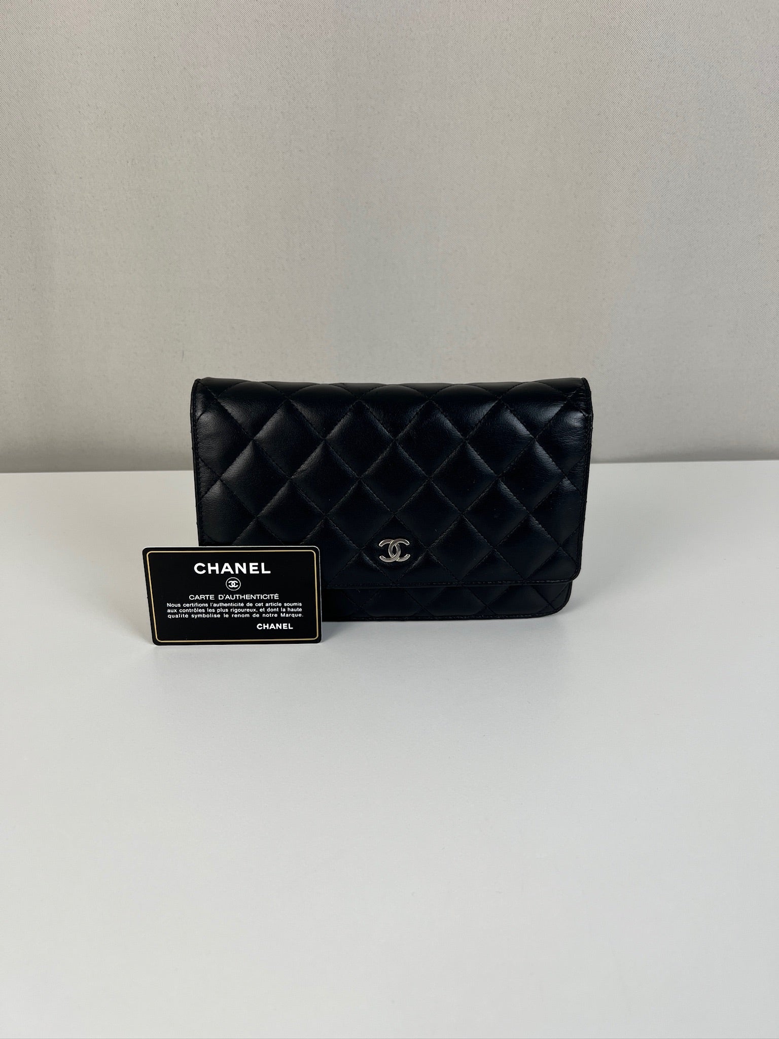Chanel wallet on chain cuir d'agneau noir bijouterie argentée