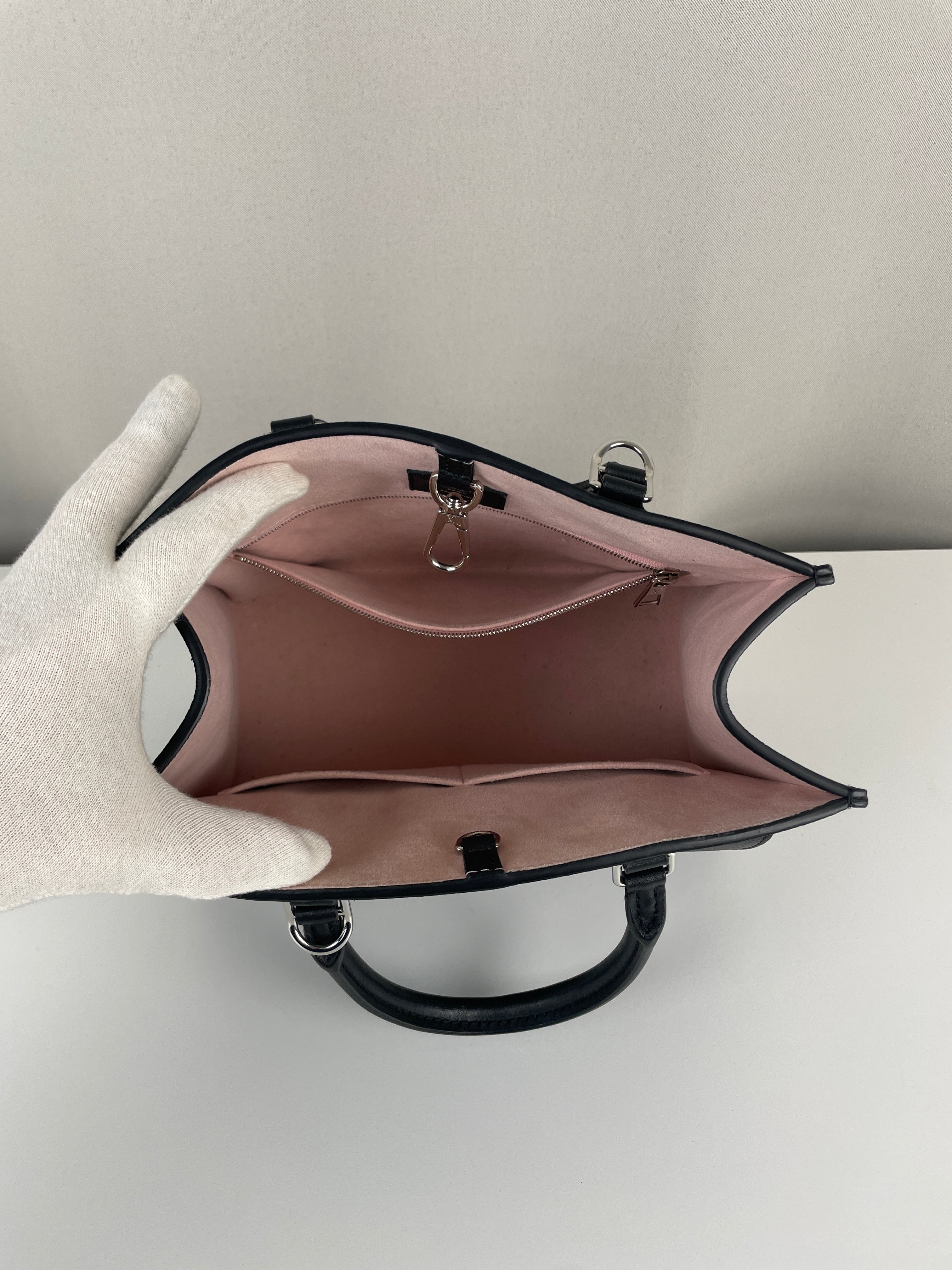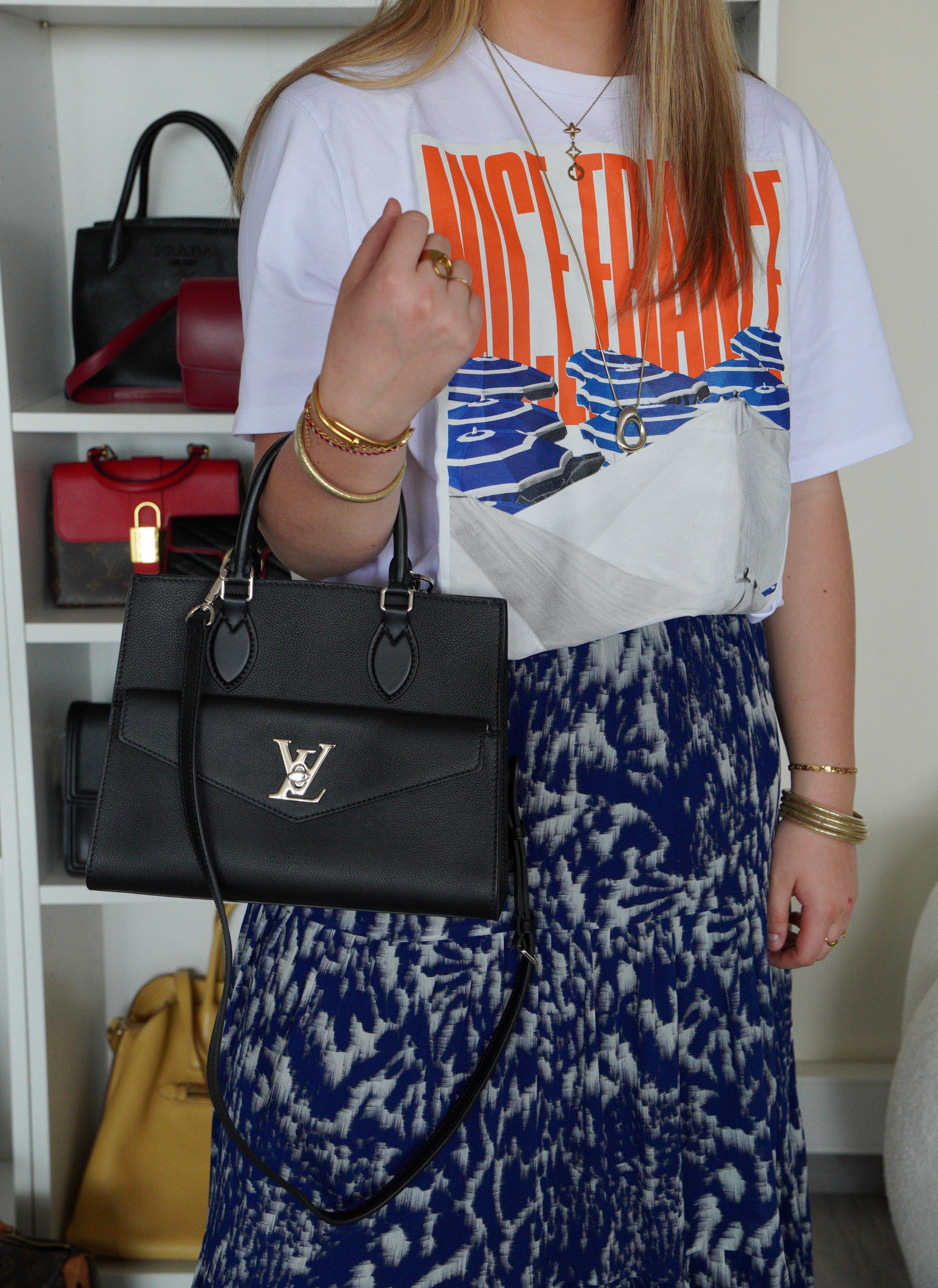 Ce sac Louis Vuitton Lock & go est le sac cabas parfait. Le cuir est en très bon état ainsi que les coins. La bandoulière est également en très bon état et réglable. Vous pouvez voir que le sac a été un peu utilisé car vous avez quelques petites traces à l'intérieur. C'est un sac cabas mais qui peut aussi se porter en bandoulière.